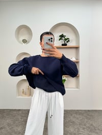 Meksa Lacivert Bisiklet Yaka Şardonlu Sweatshirt