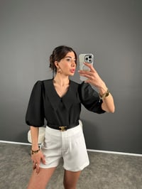 Misu Siyah Bebe Yaka Balon Kol Bluz