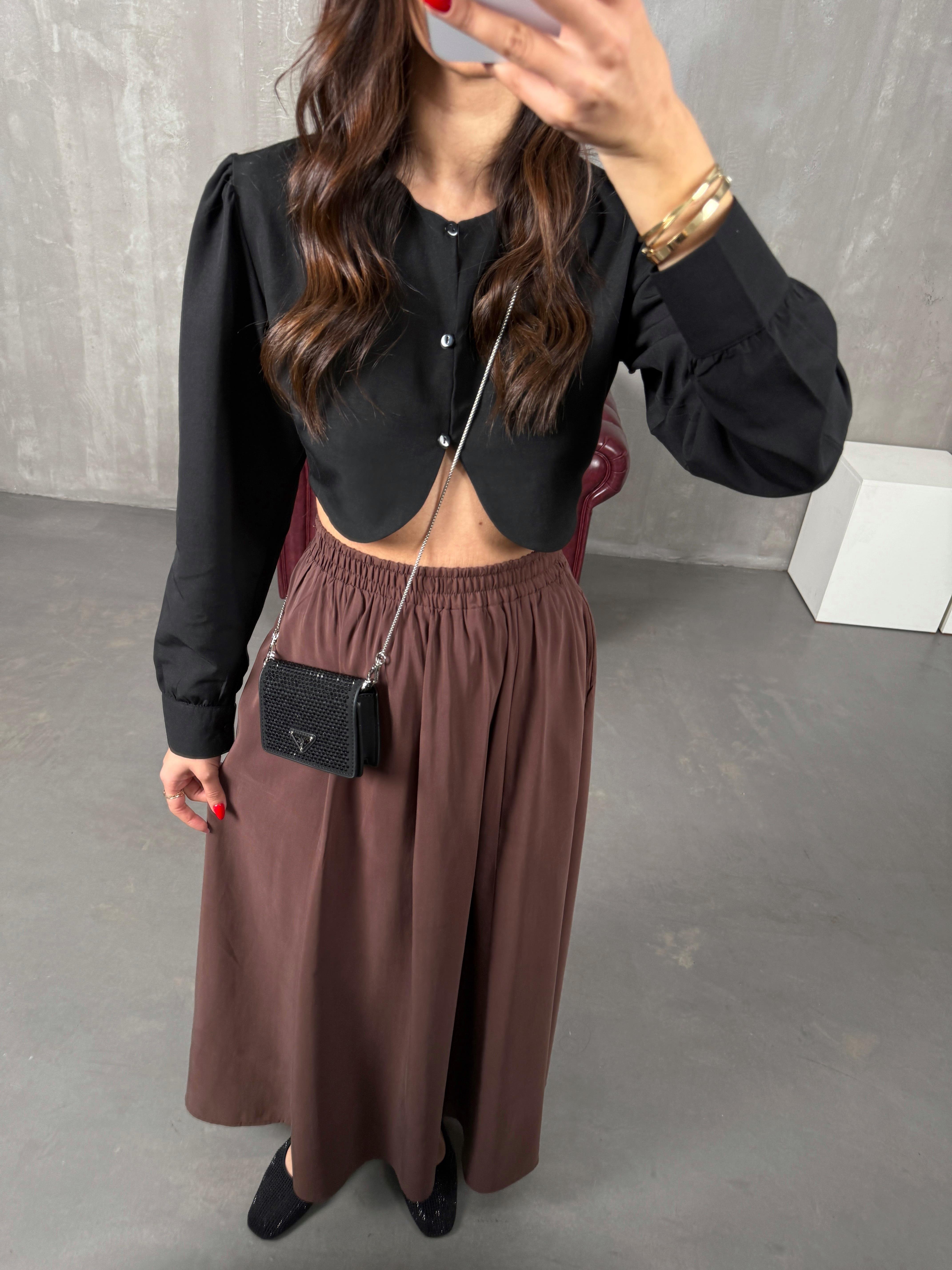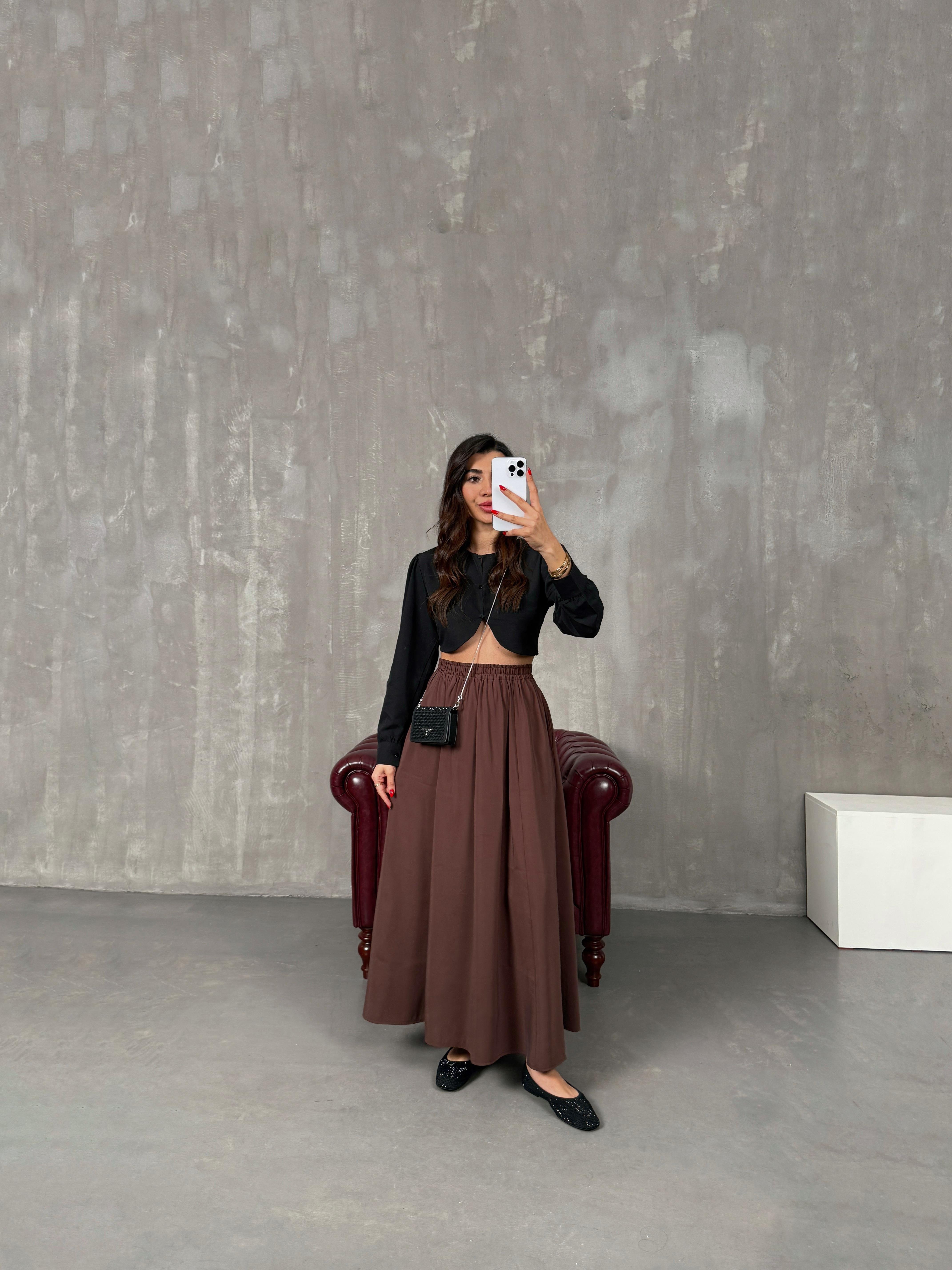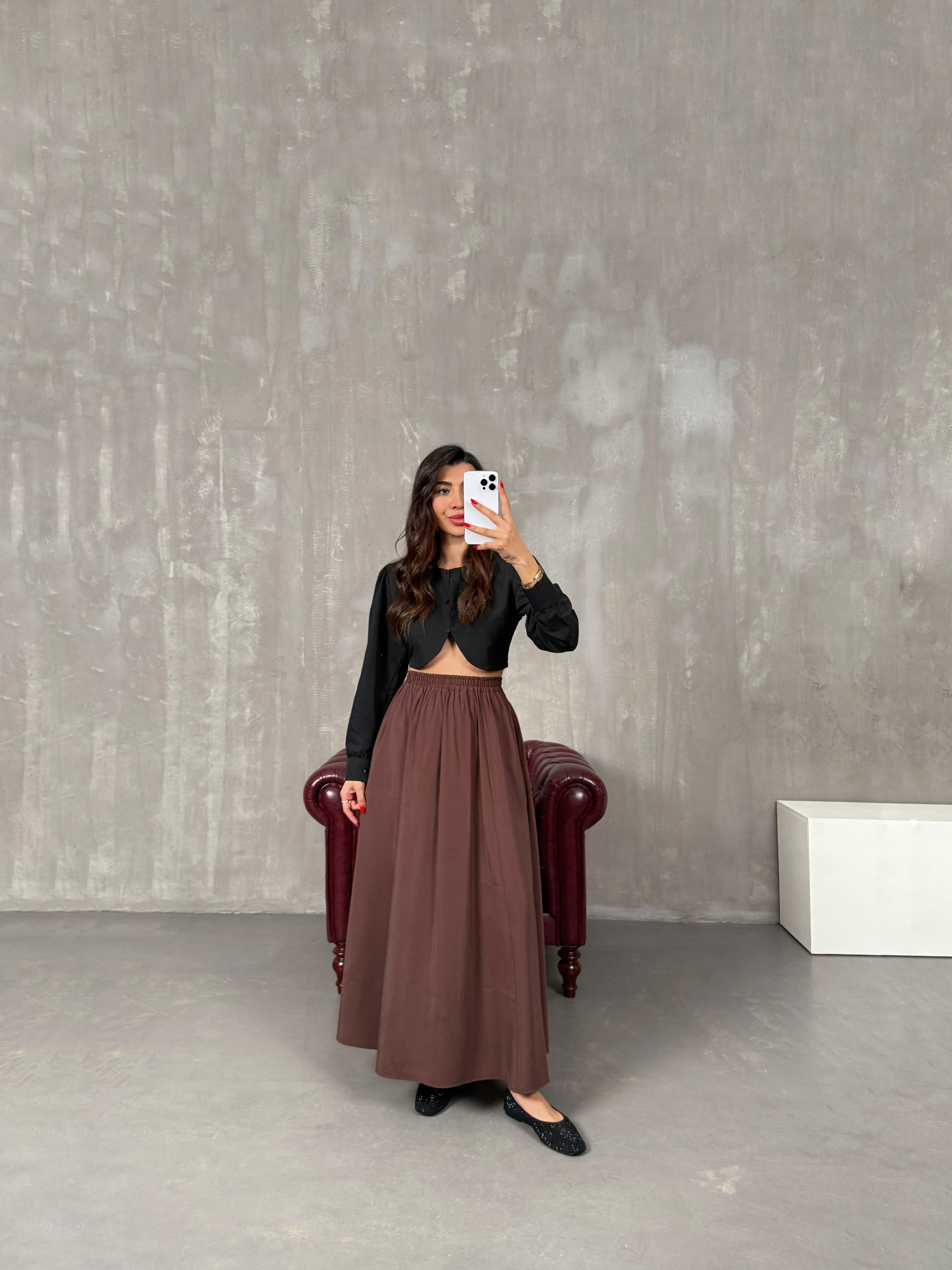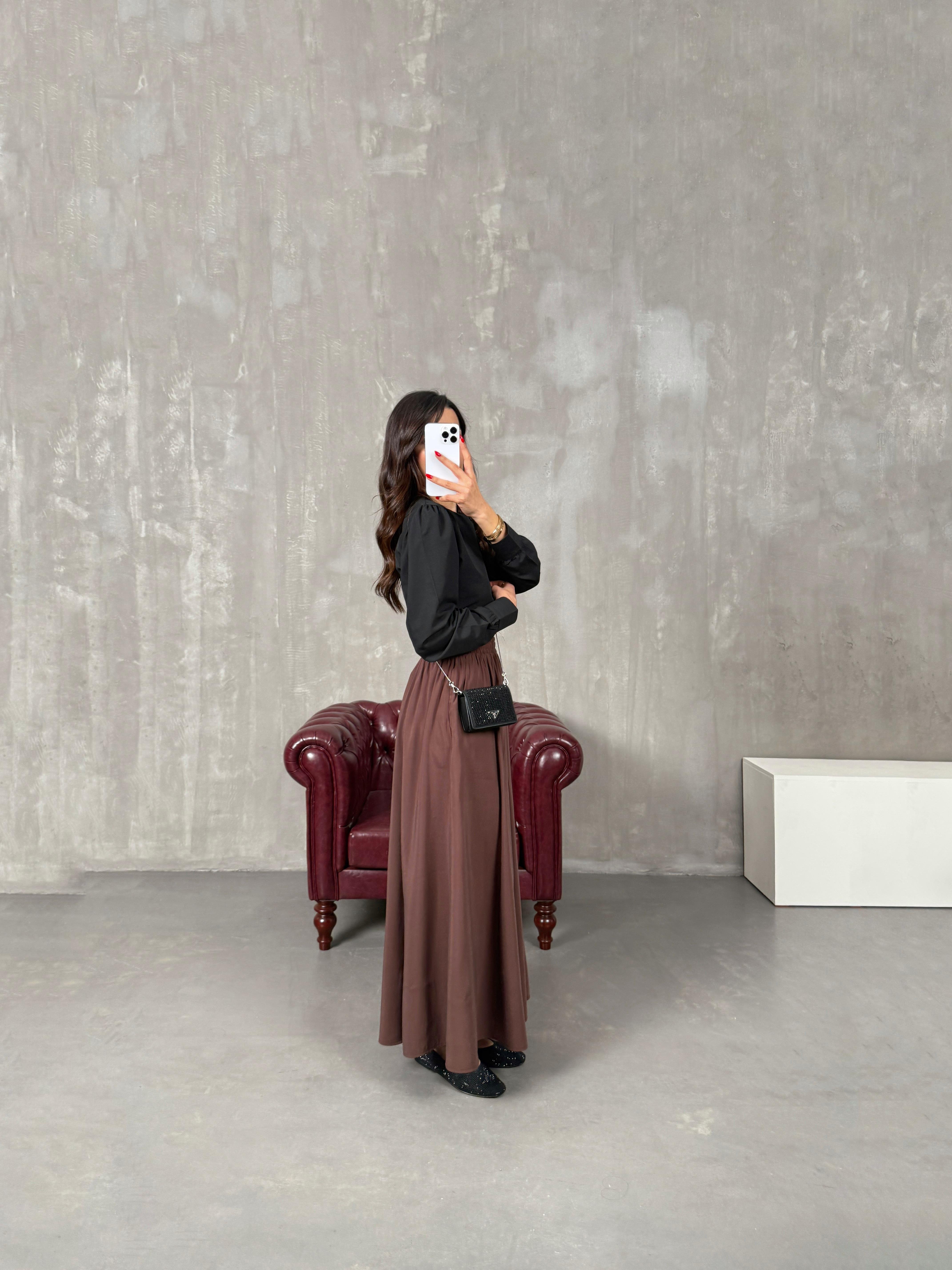مونا تنورة طويلة بني مع جيب قماش تينسيل