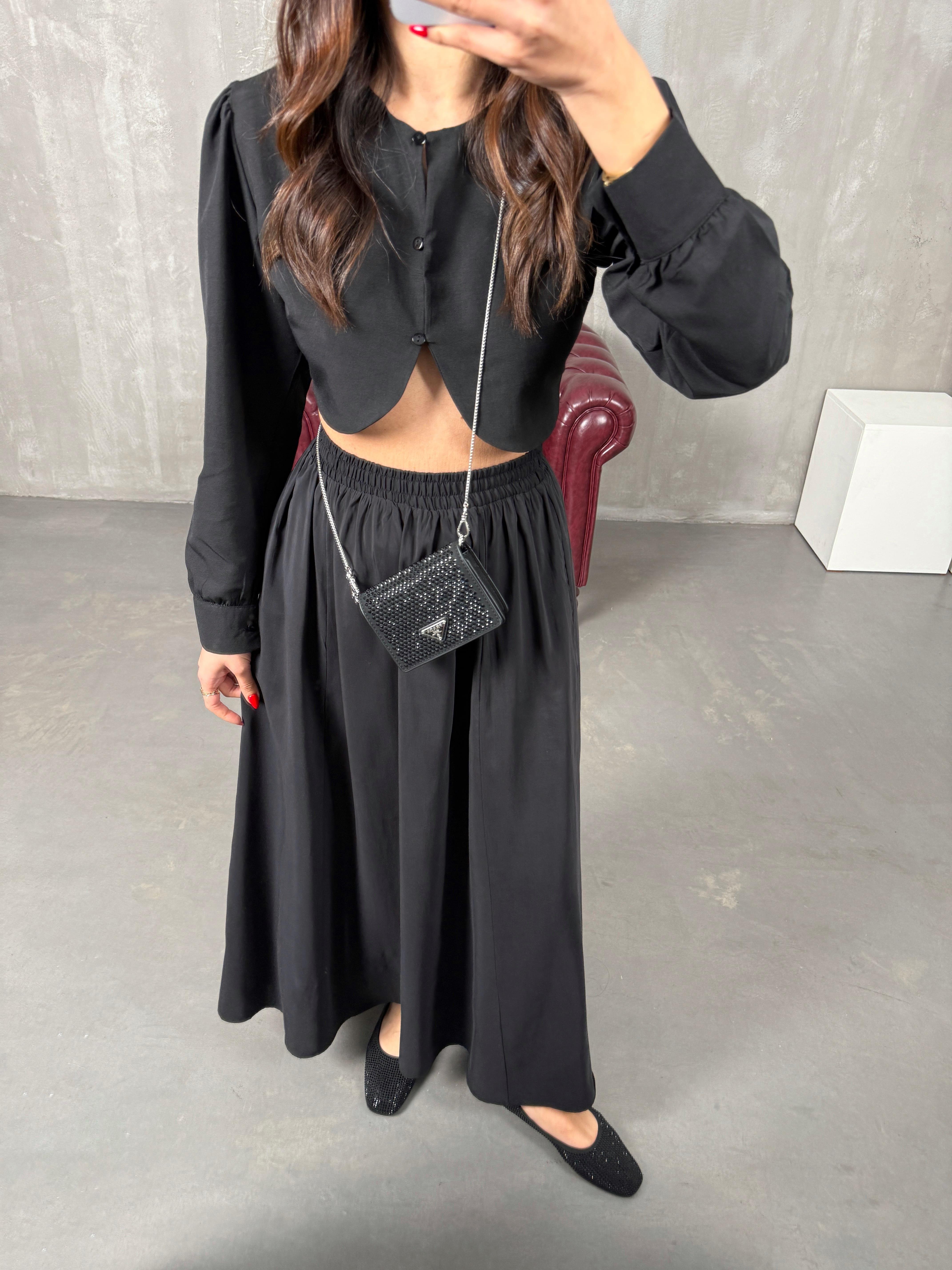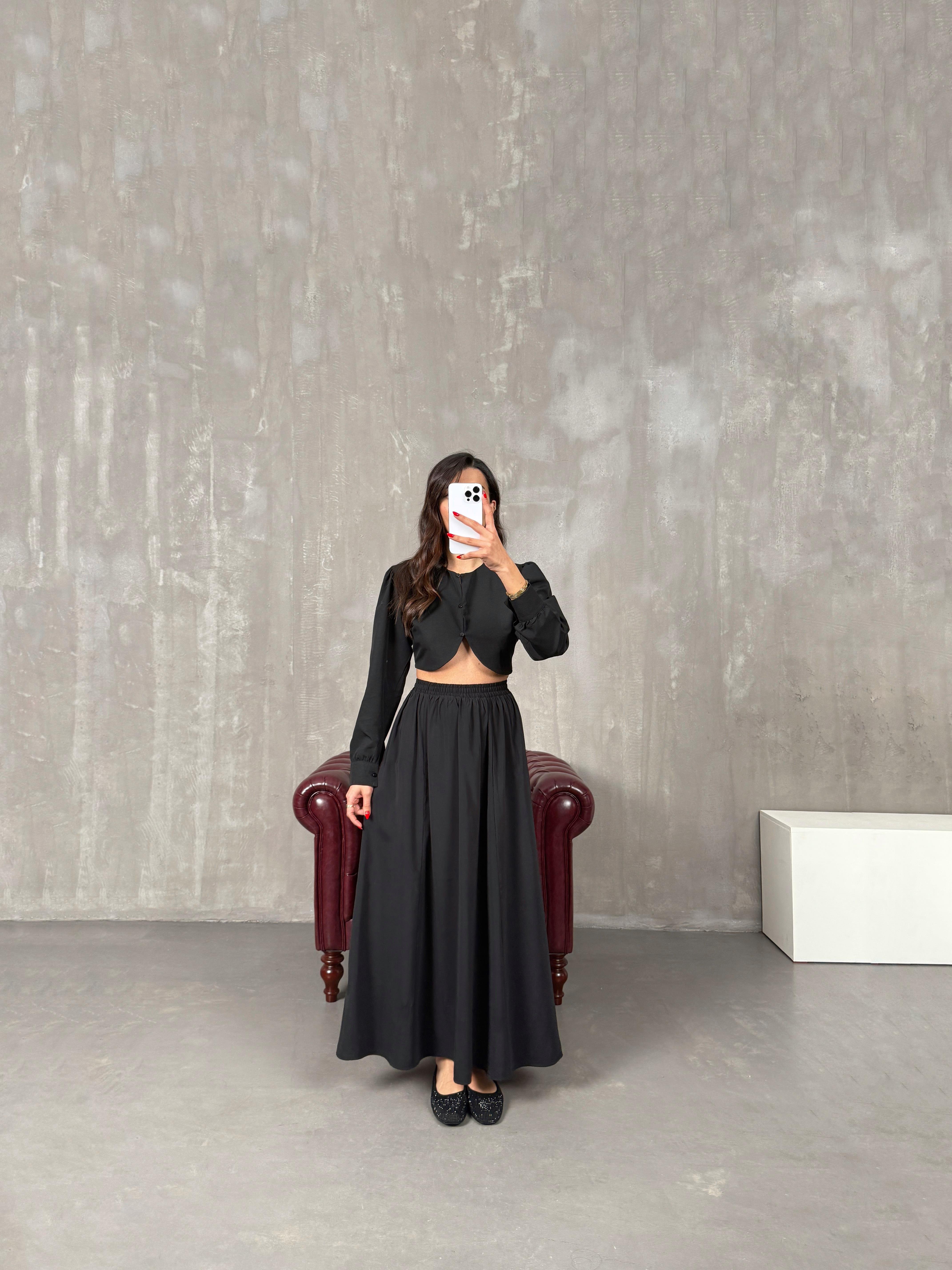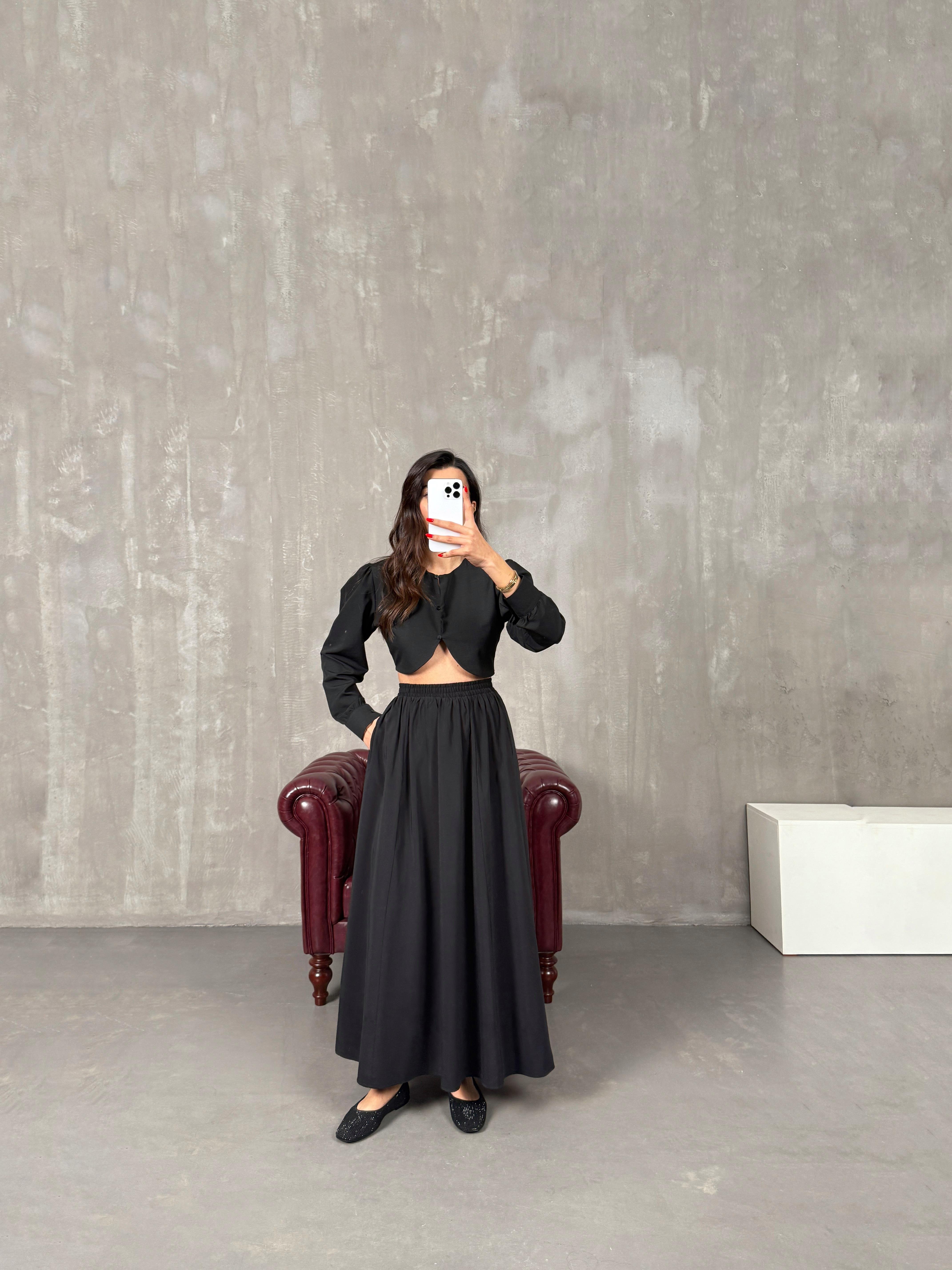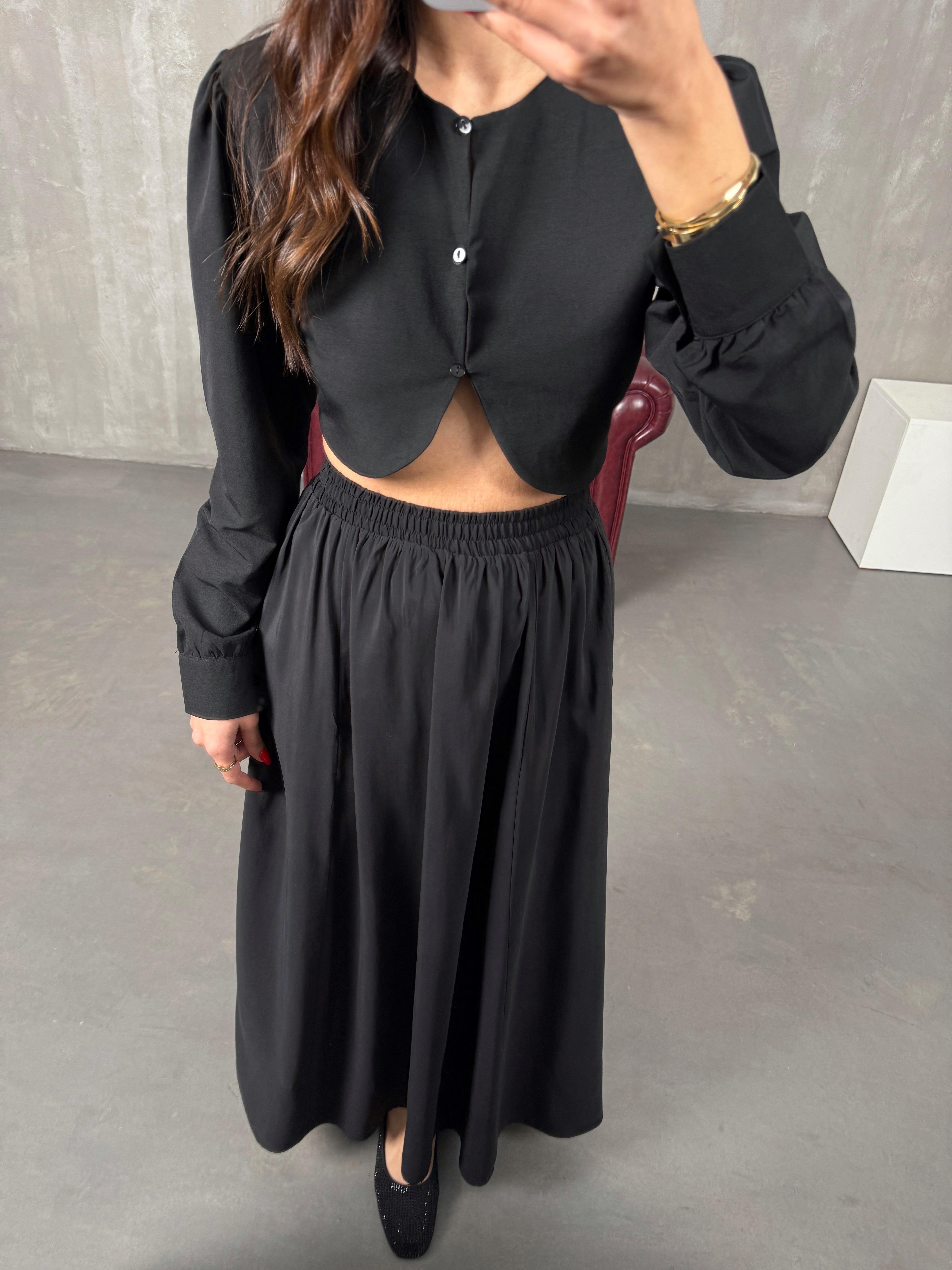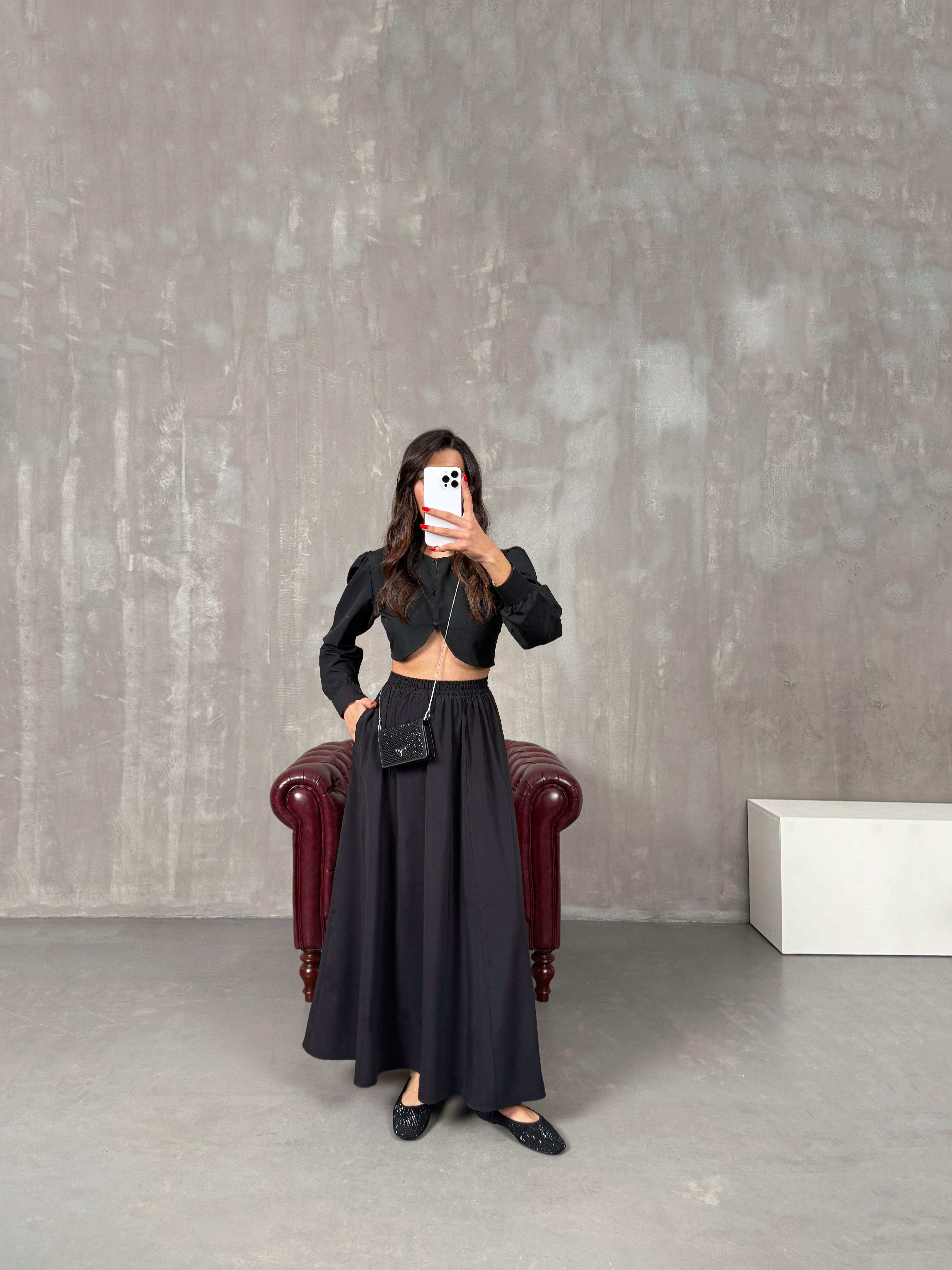 مونا تنورة طويلة أسود مع جيب قماش تينسيل