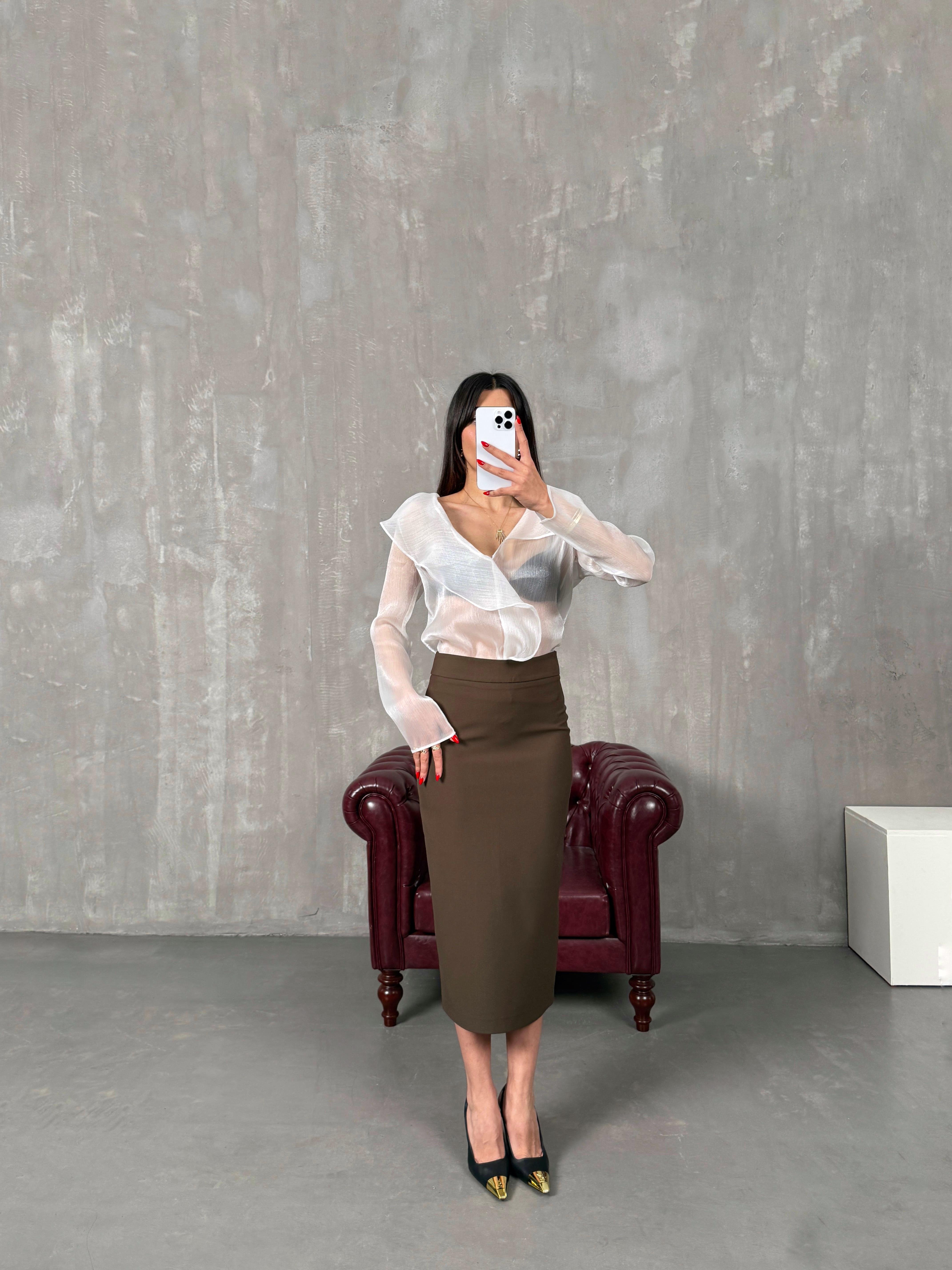 نايلا تنورة قلم مع شق لون بني موديل زد آر