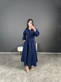 Nees Lacivert Uzun Poplin Elbise