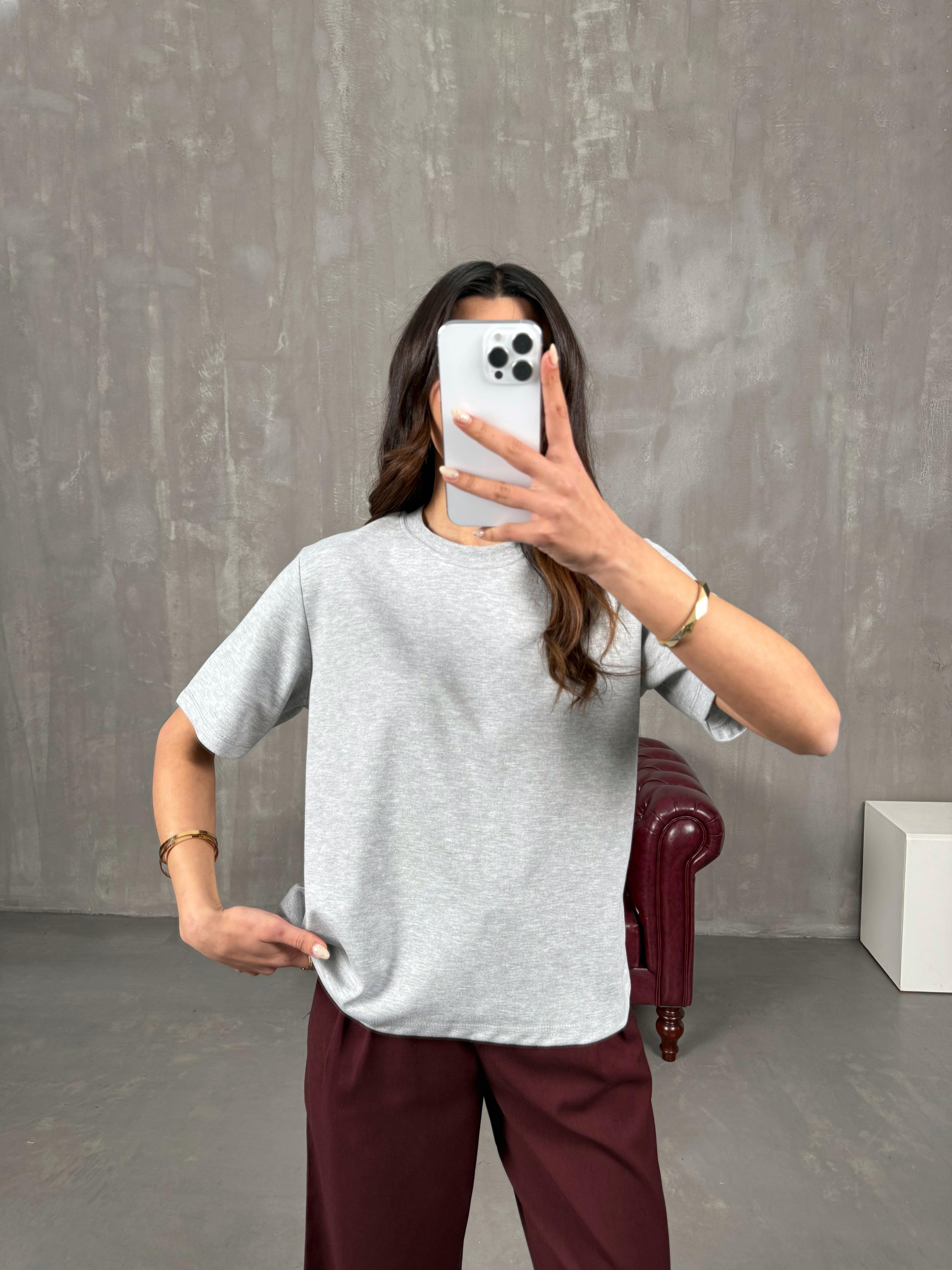 نيفون تيشيرت بيسيك قطن لون رمادي بياقة دائرية