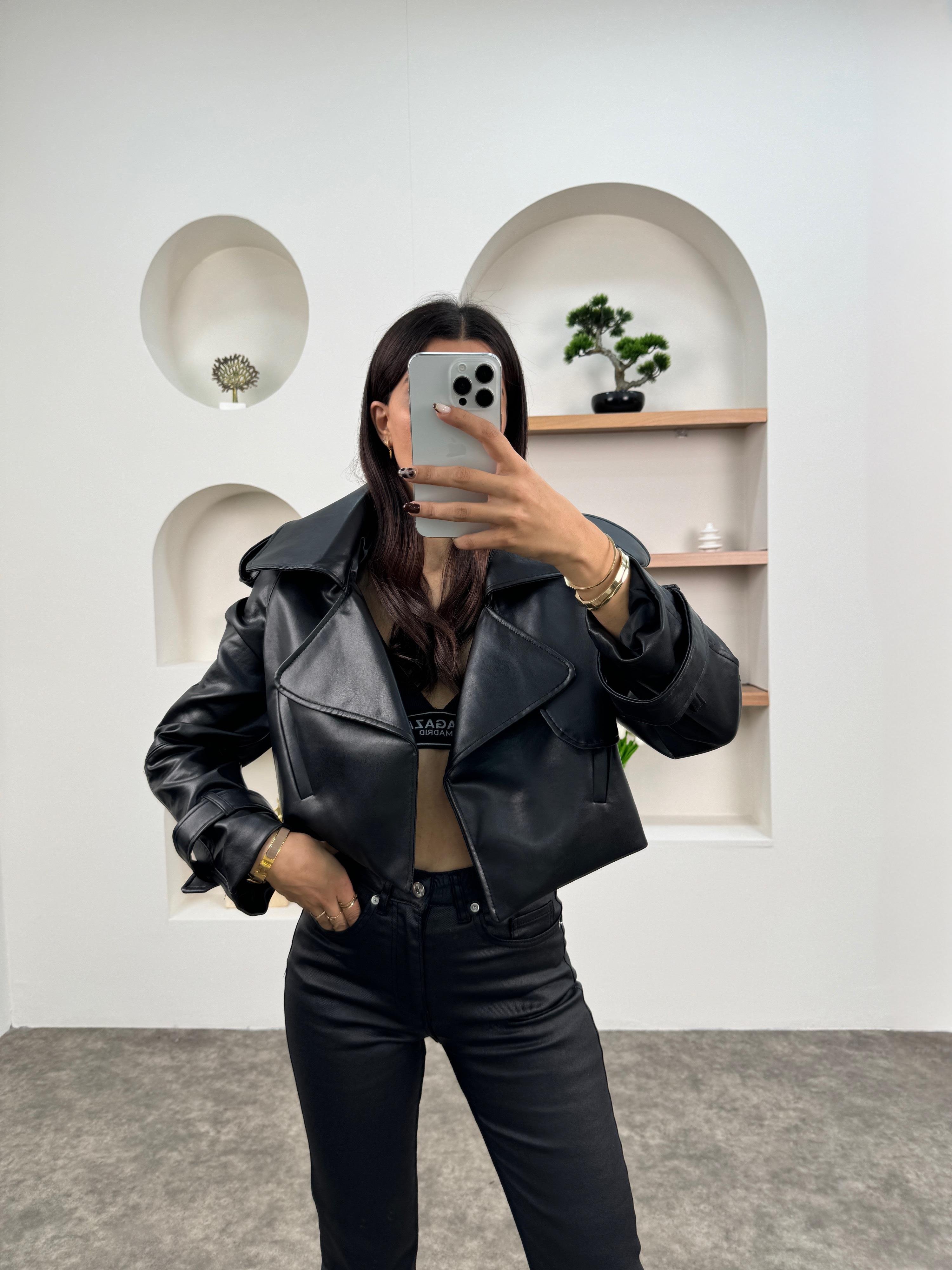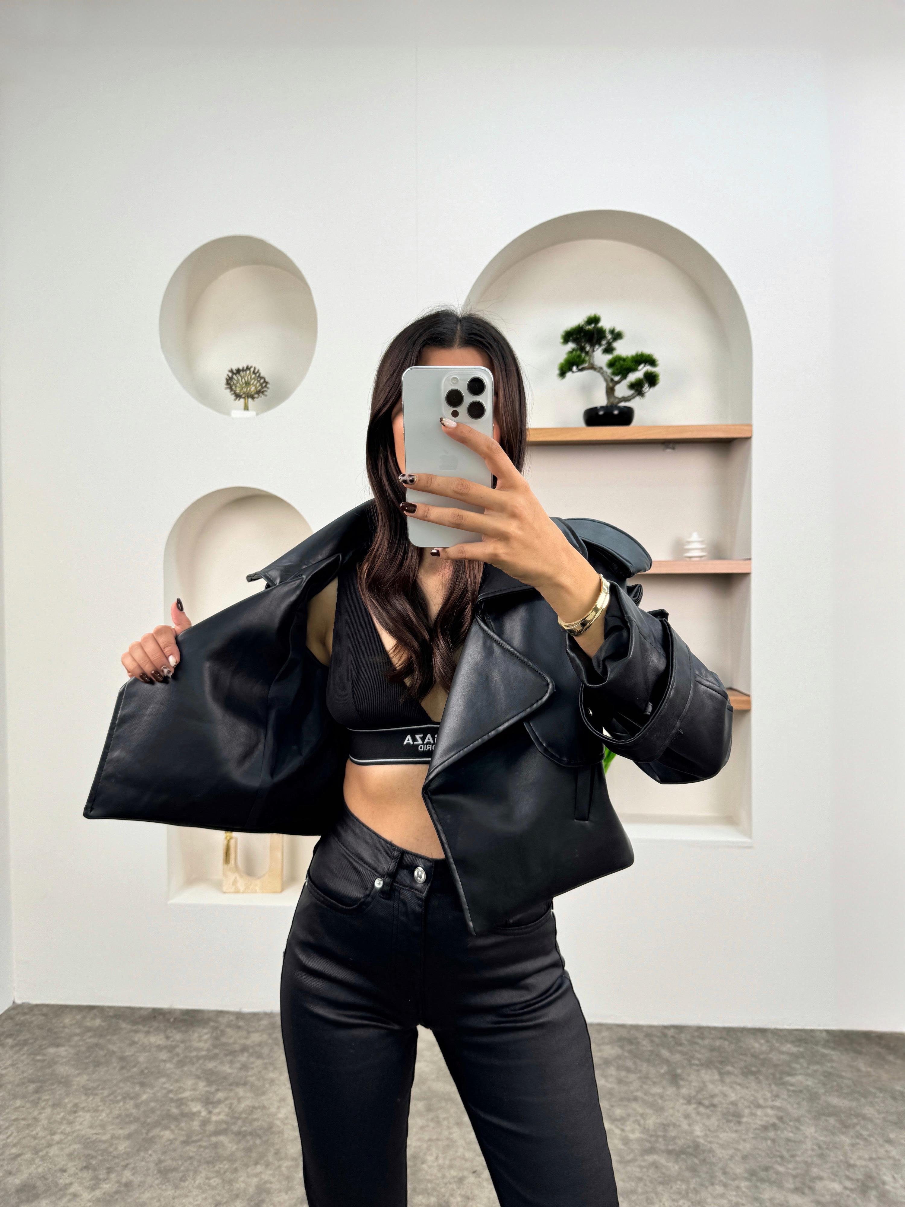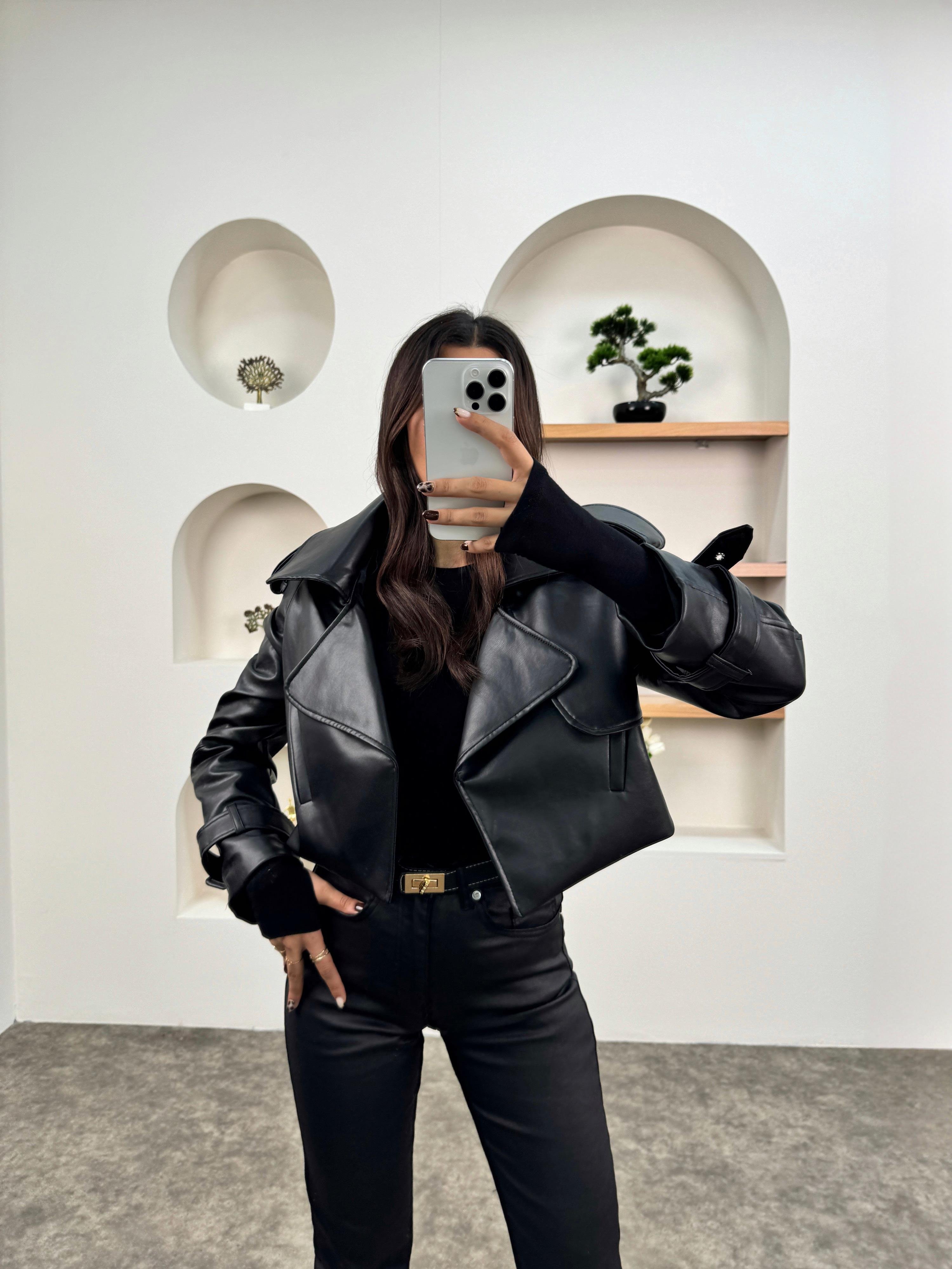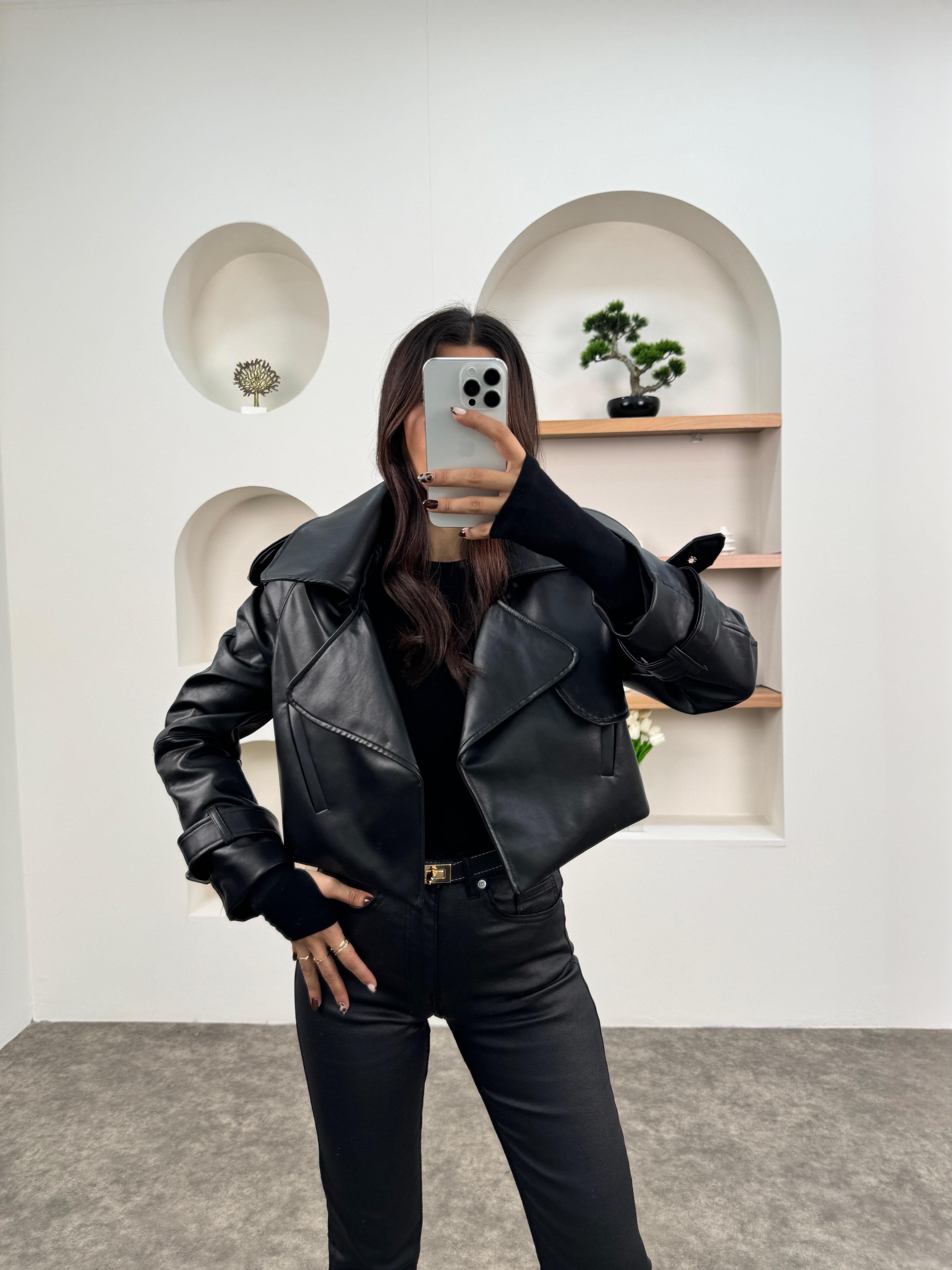 Nova Siyah Premium Tasarım Astarlı Deri Ceket