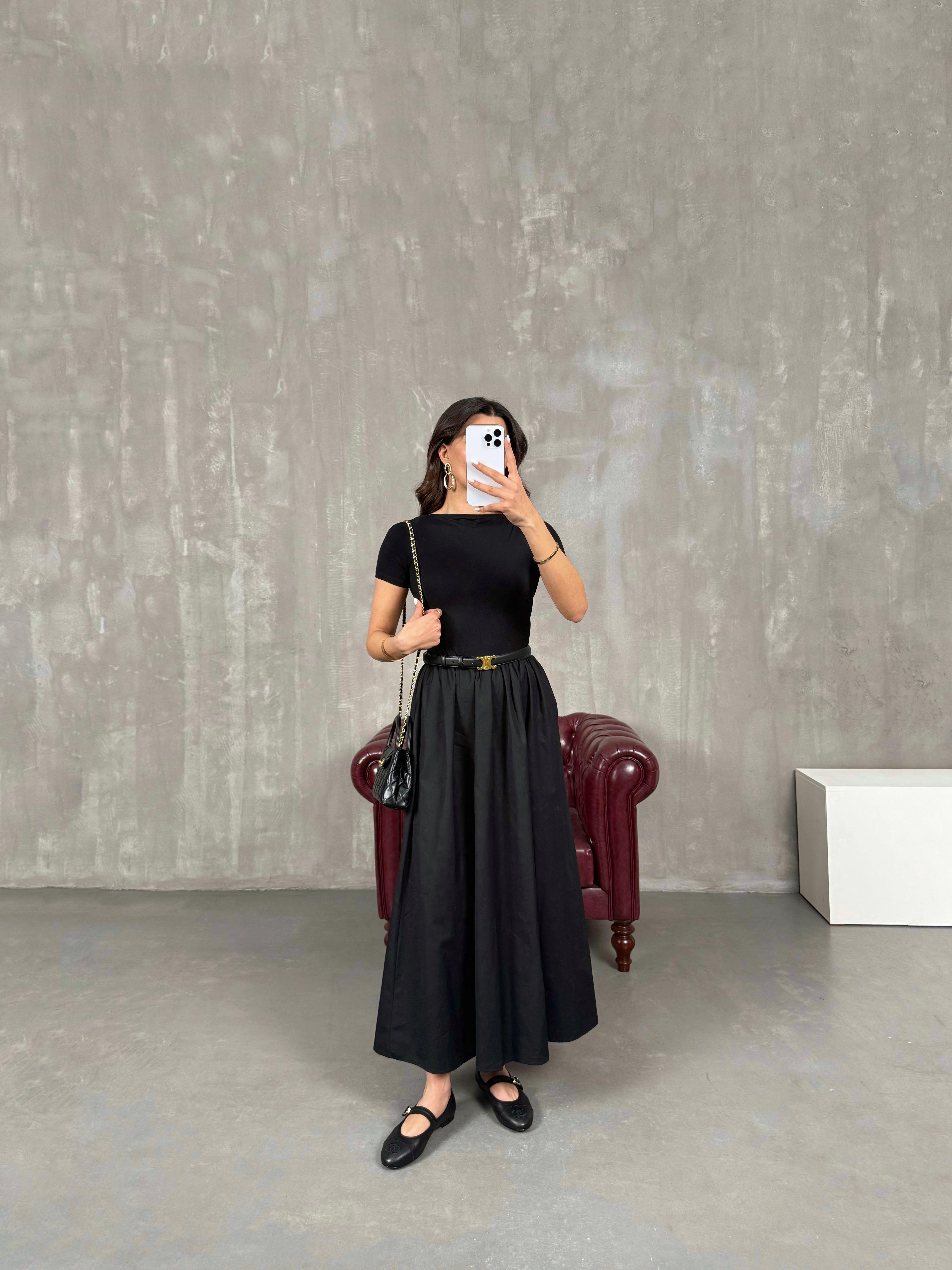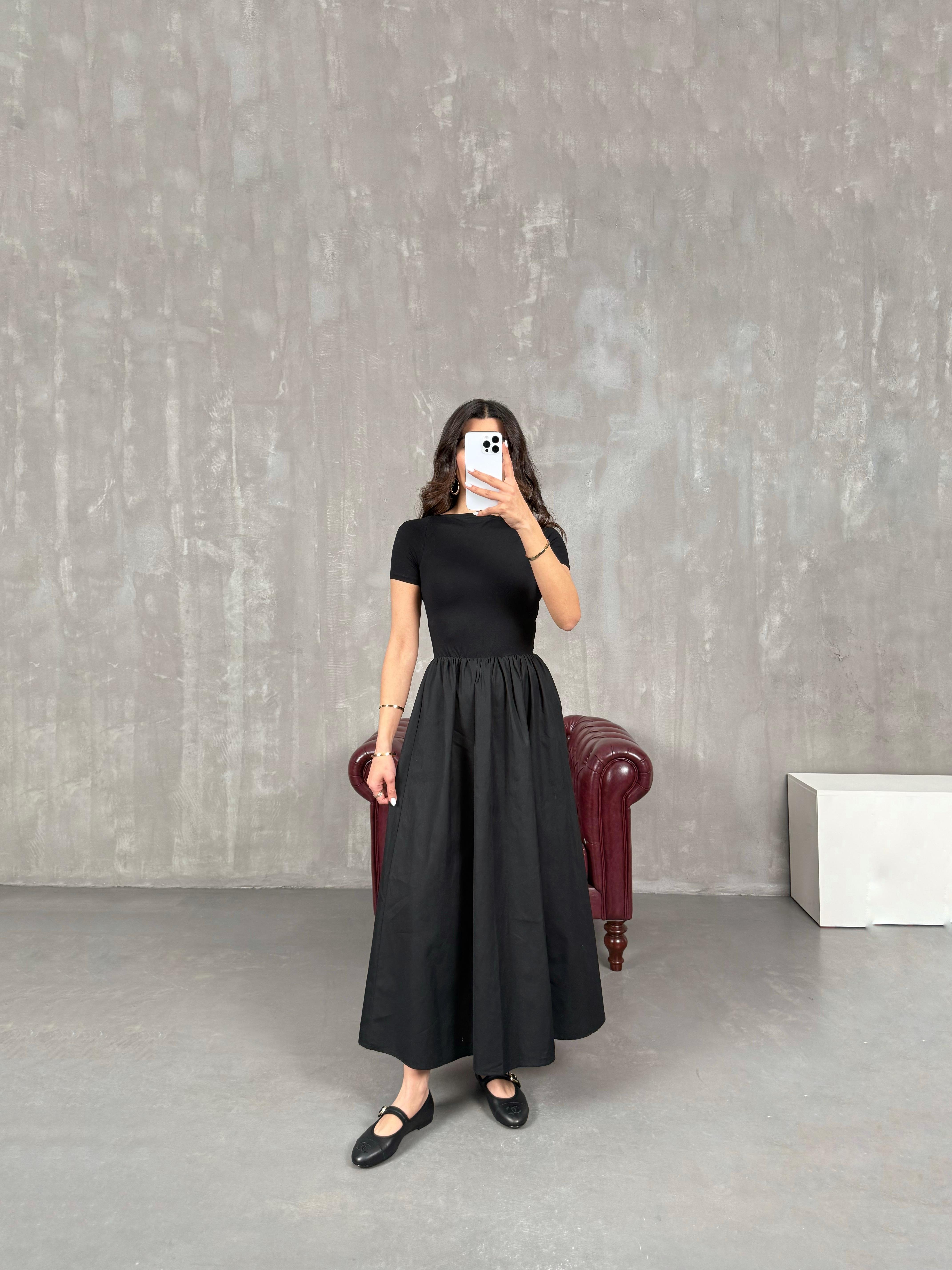 نوكس فستان بينتيريست أسود بأكمام قصيرة