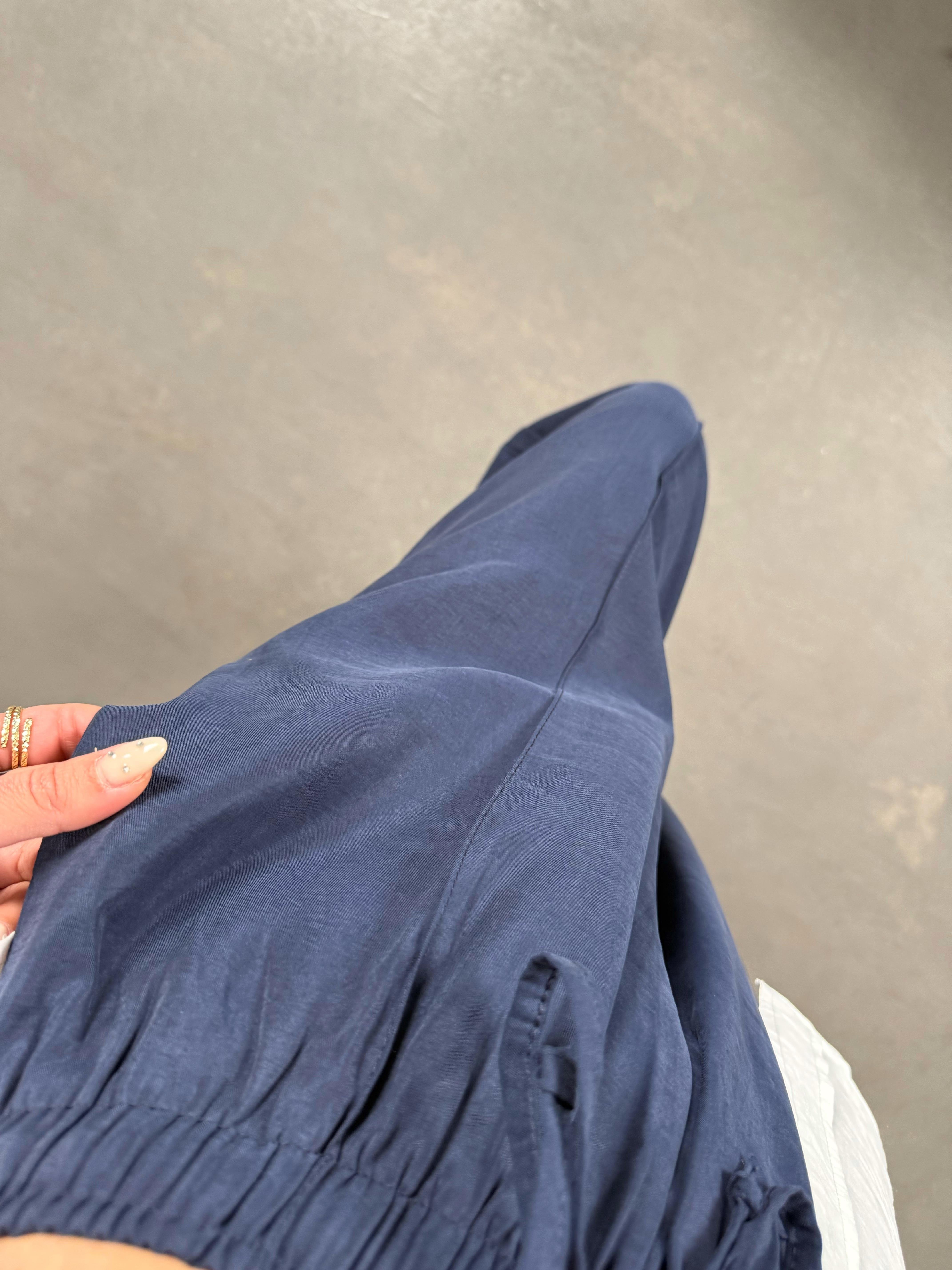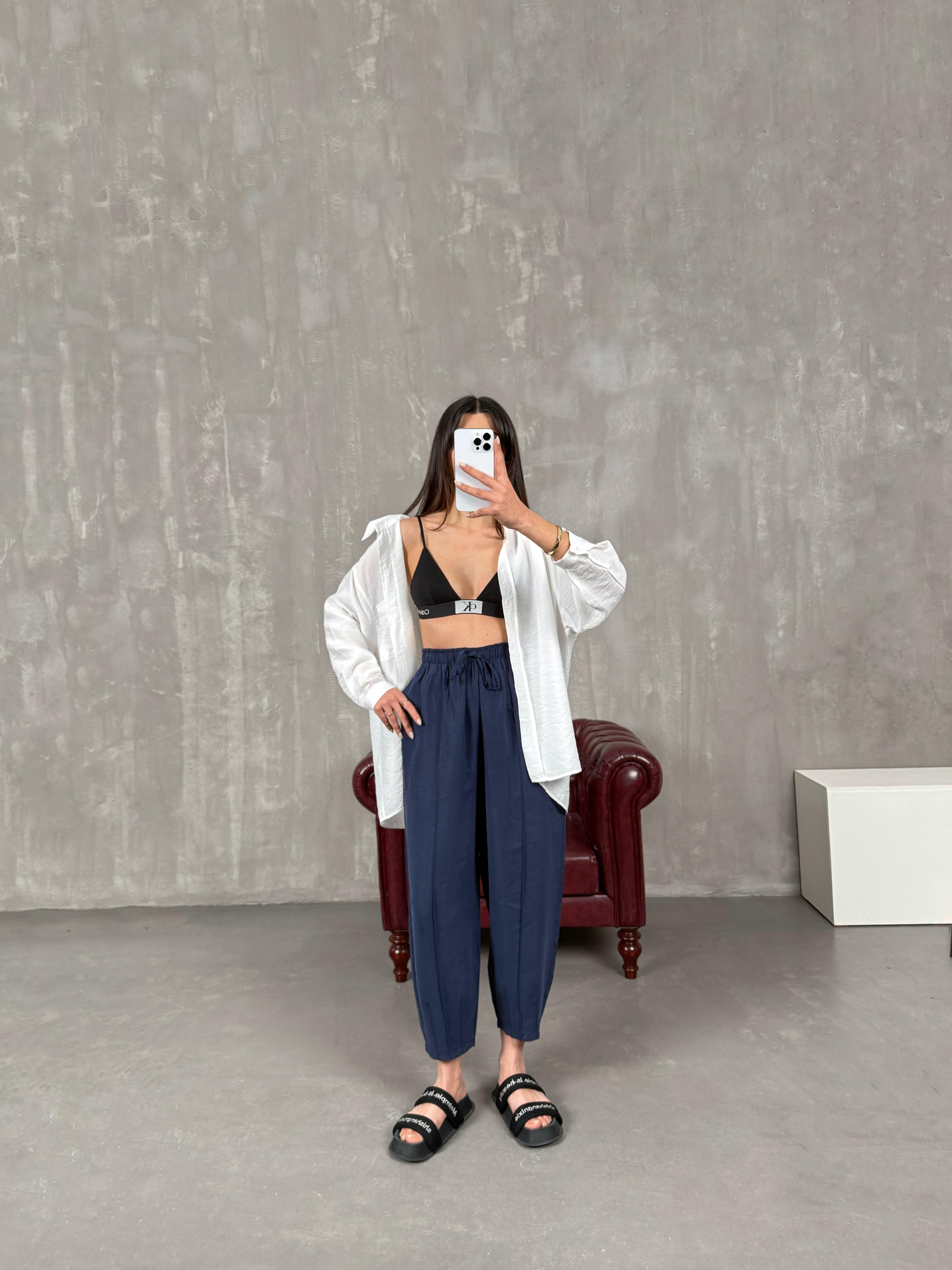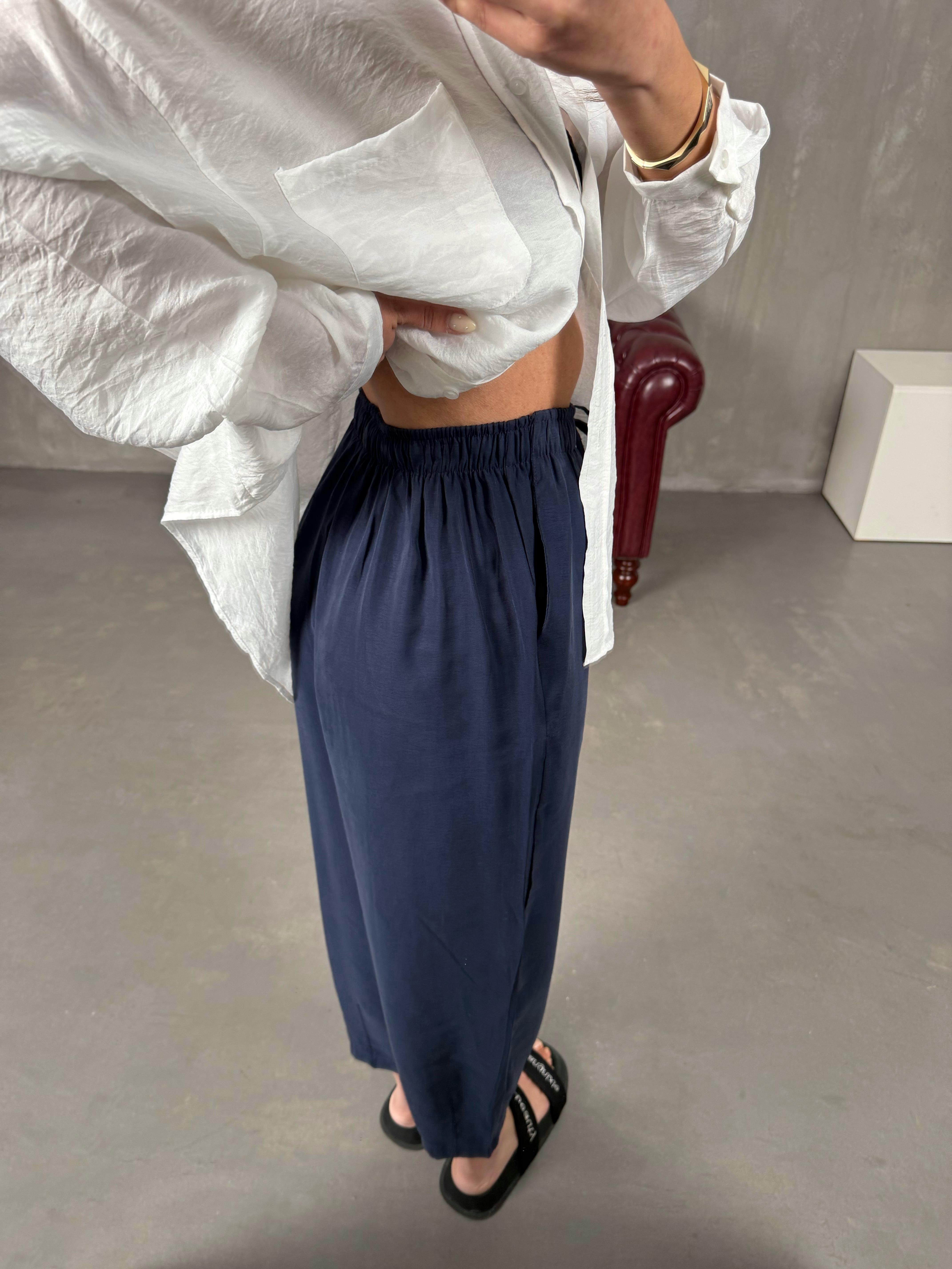 Orfi Lacivert Çımalı Tensel Şalvar Pantolon