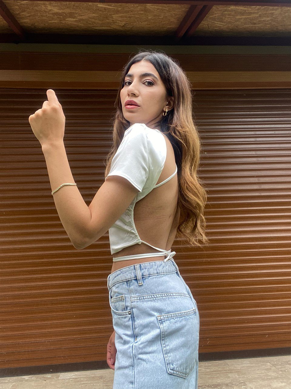 Orijinal Marka Beyaz Saten Sırt dekolteli Crop