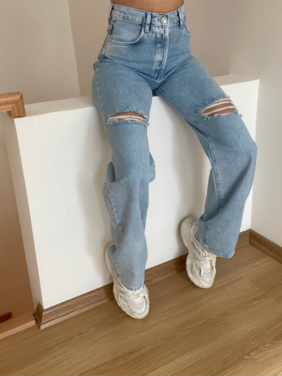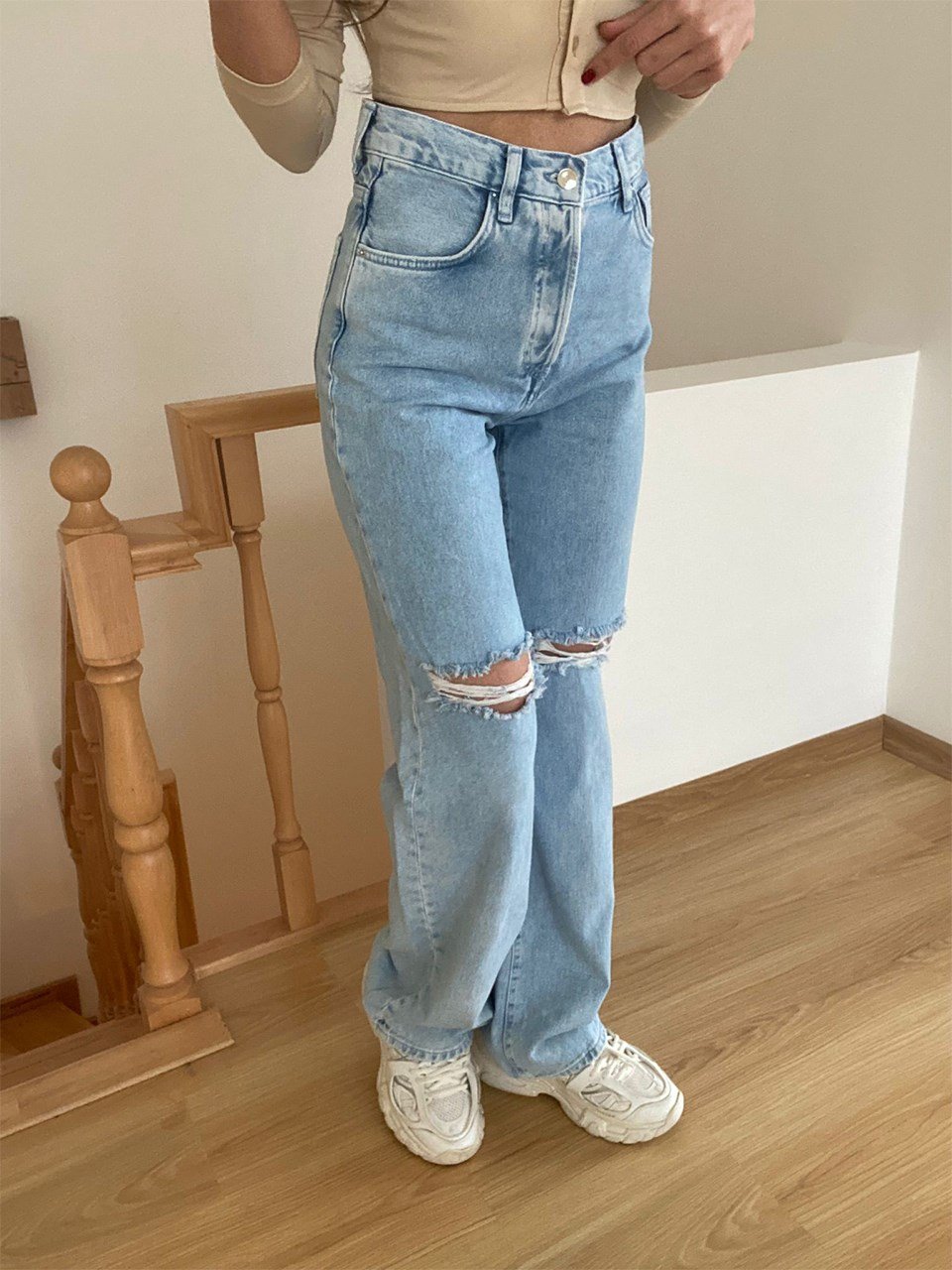 Orijinal Marka Yırtık Yüksek Bel Denim Pantolon