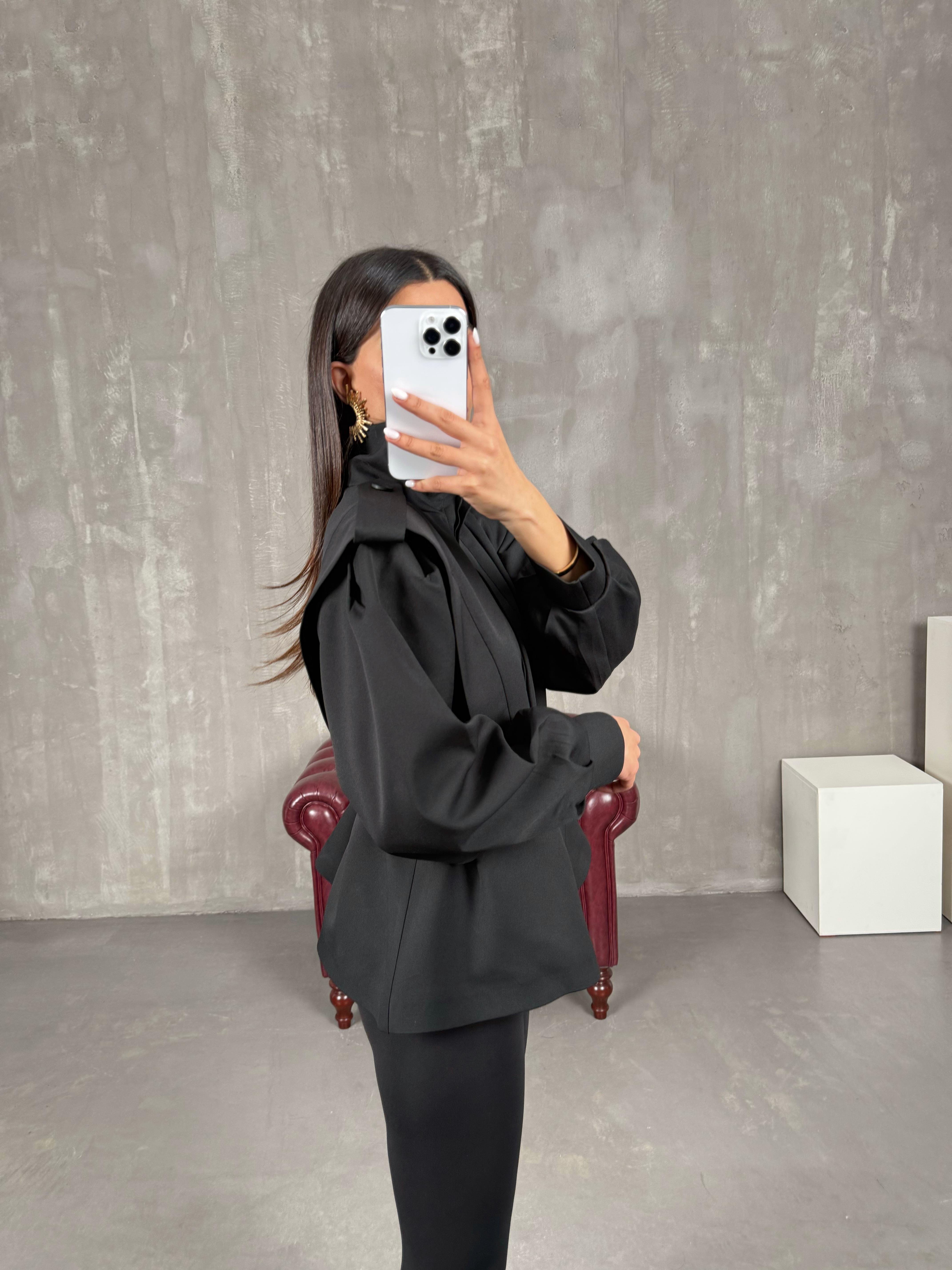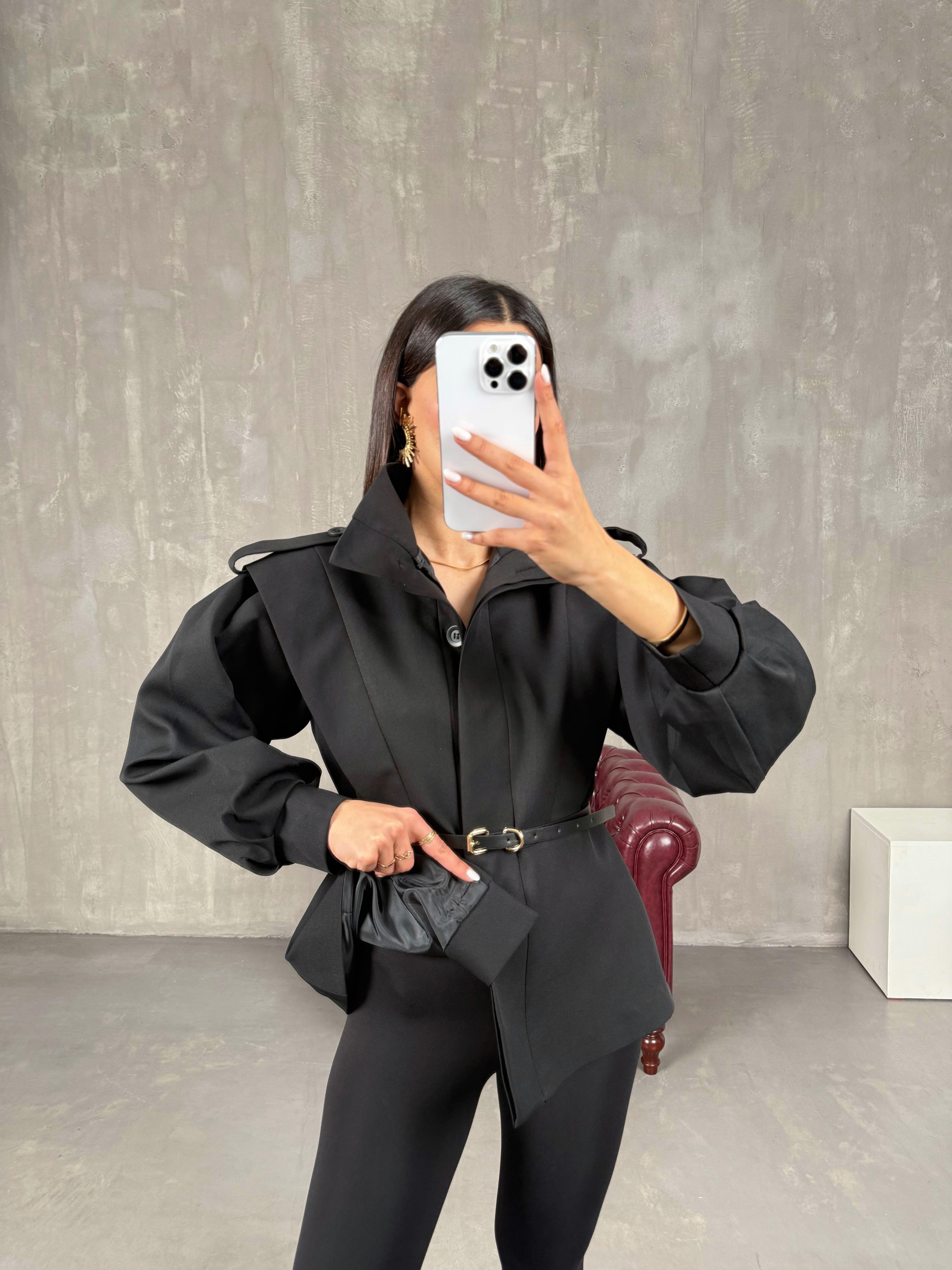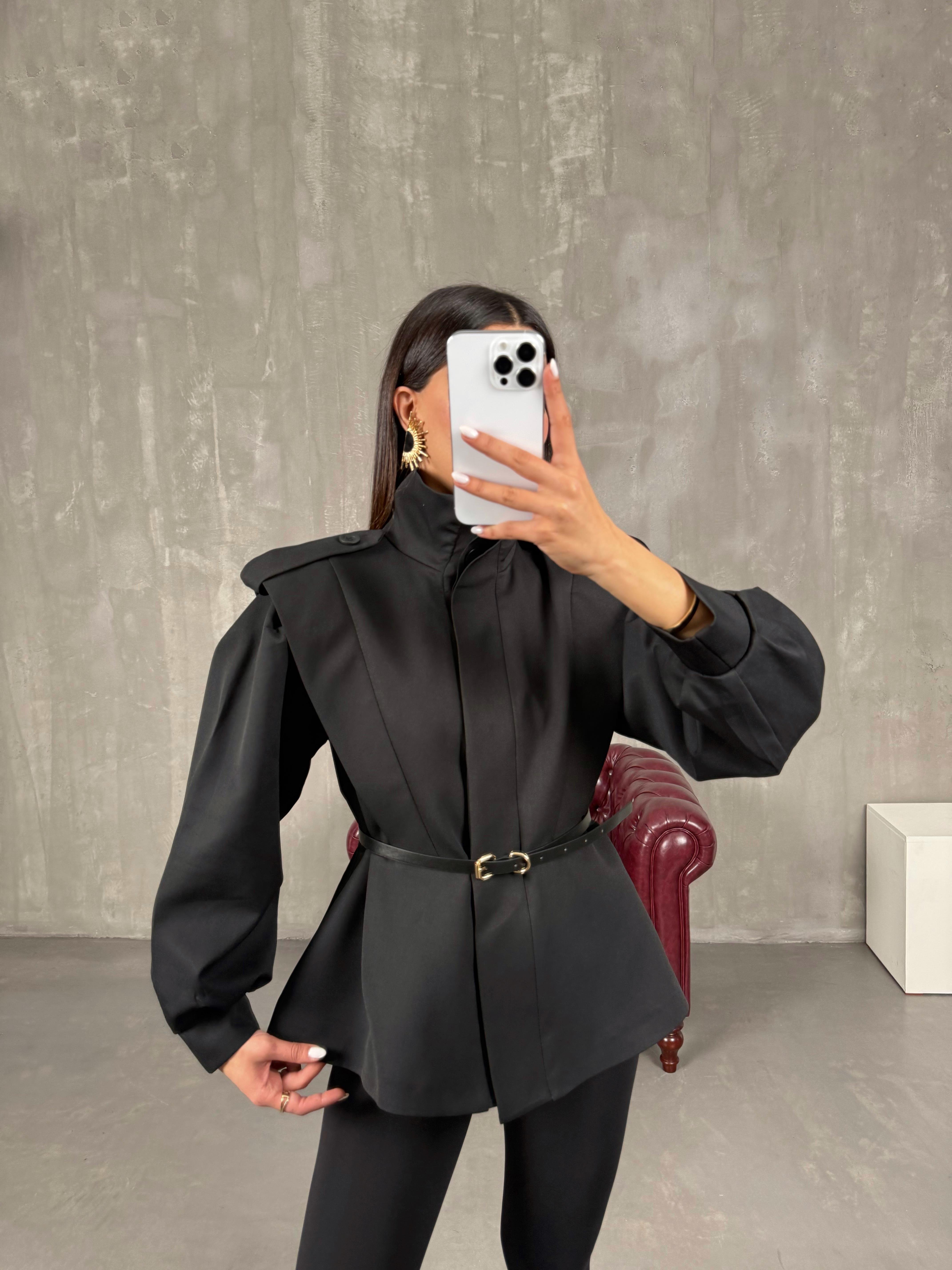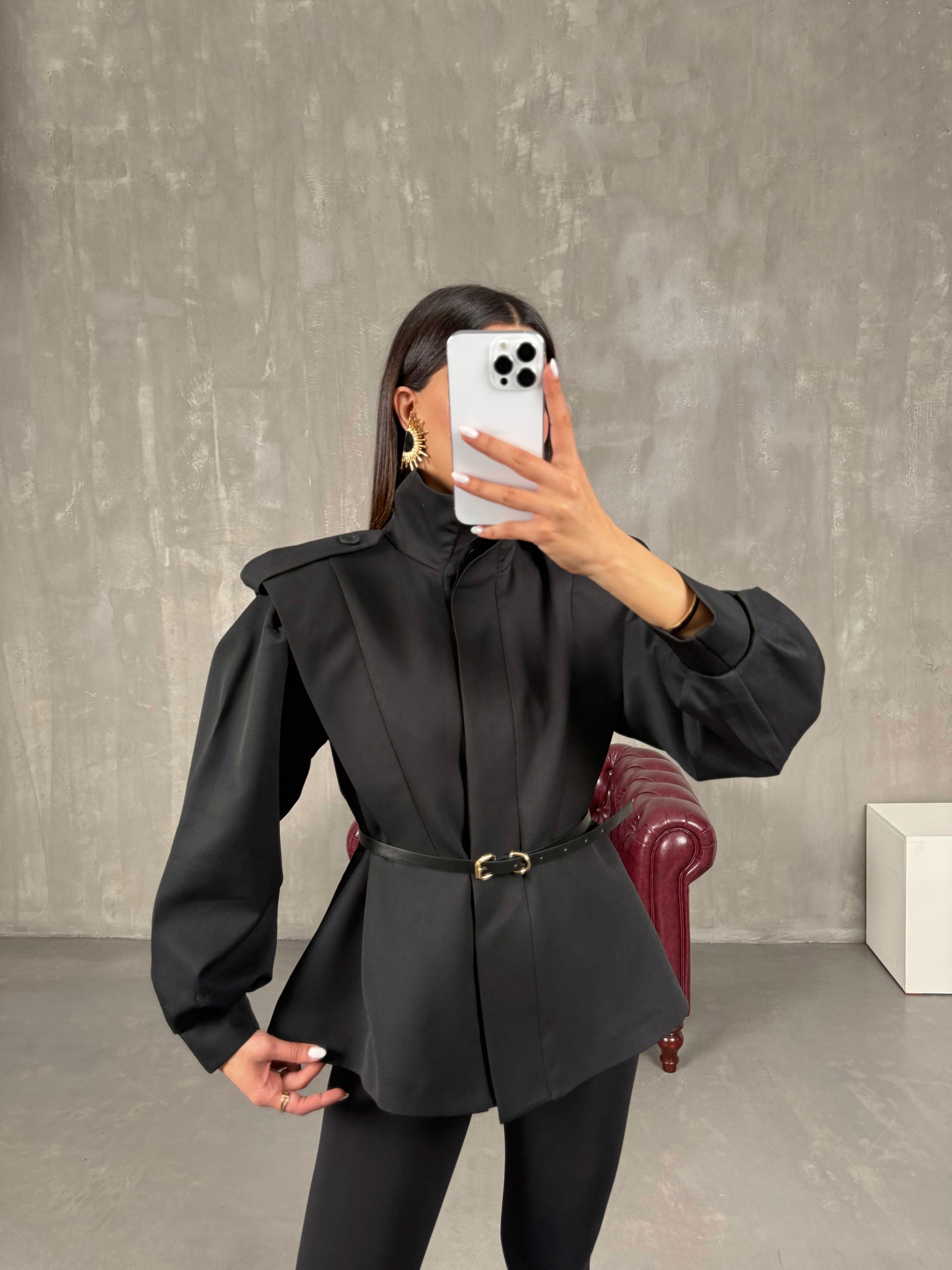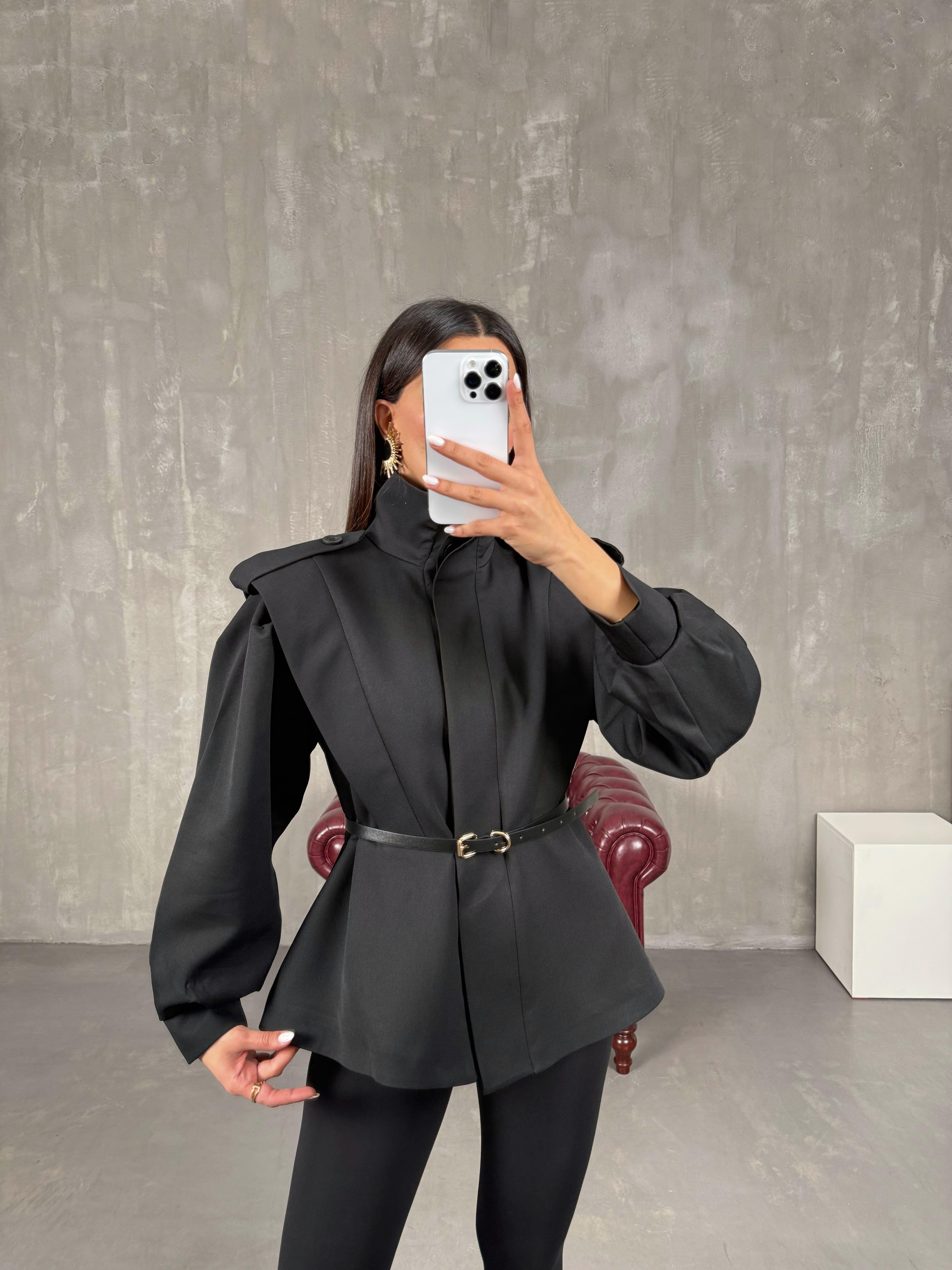 أورليس جاكيت أسود تصميم مبطن بتفاصيل حزام