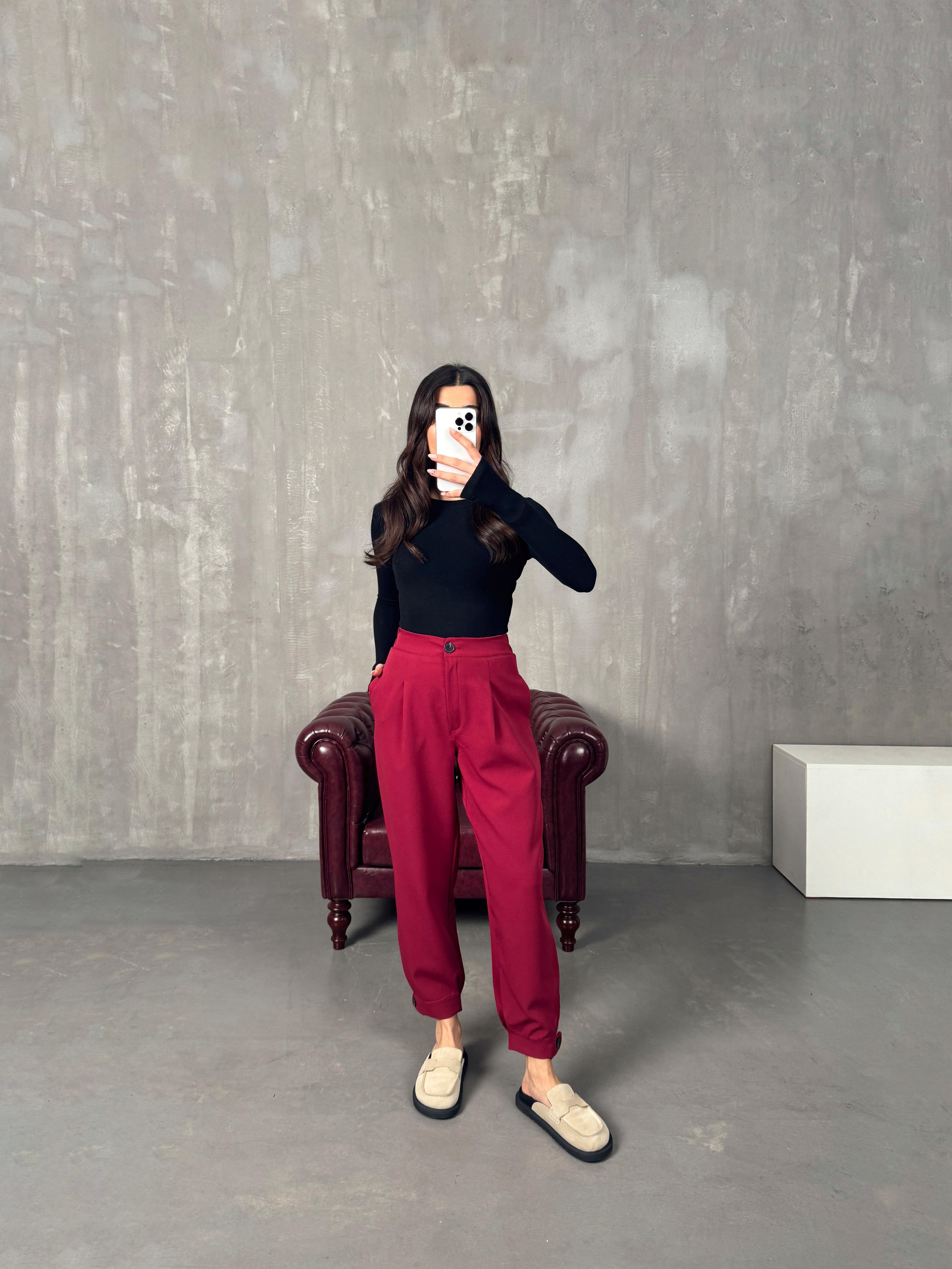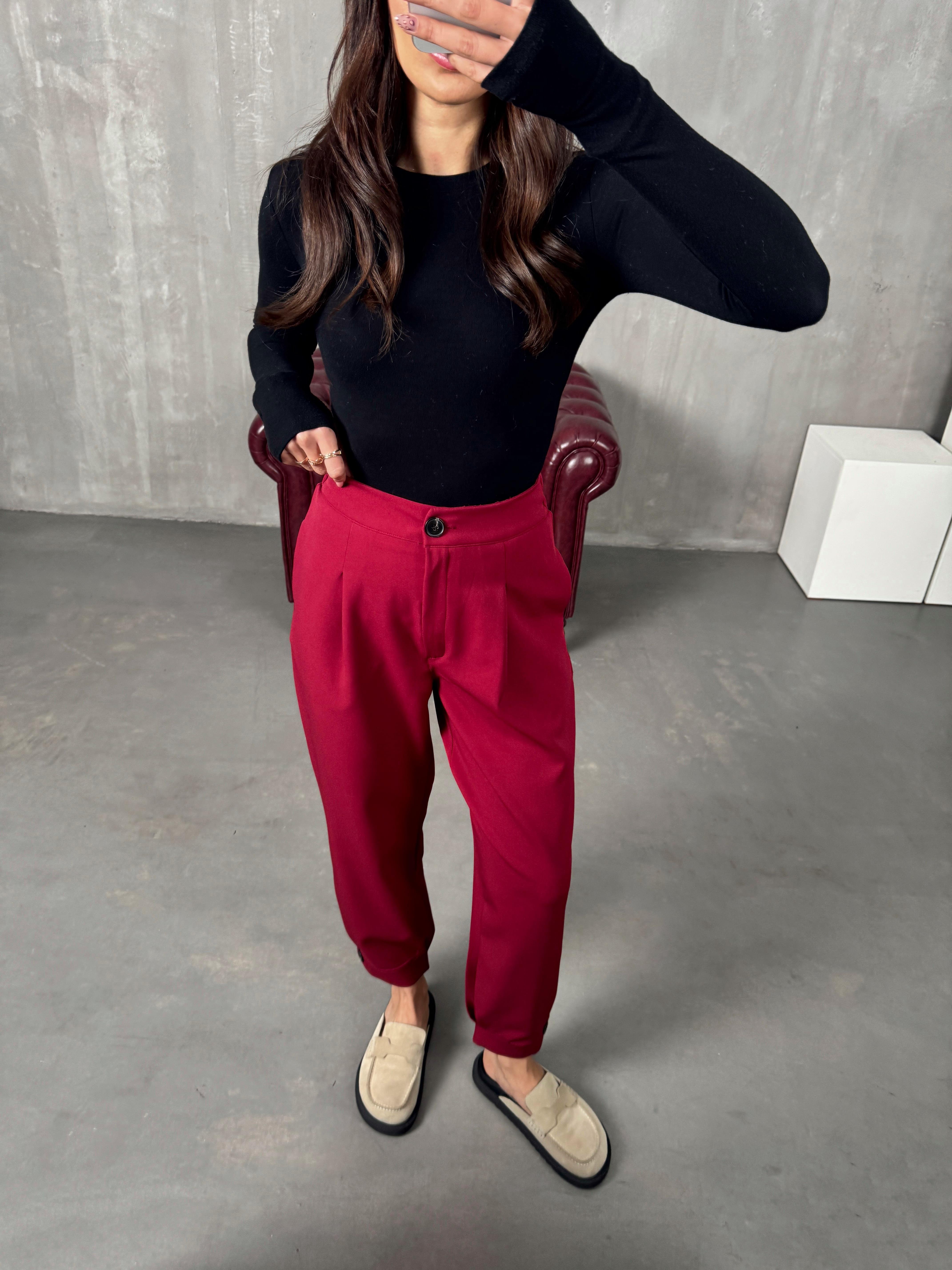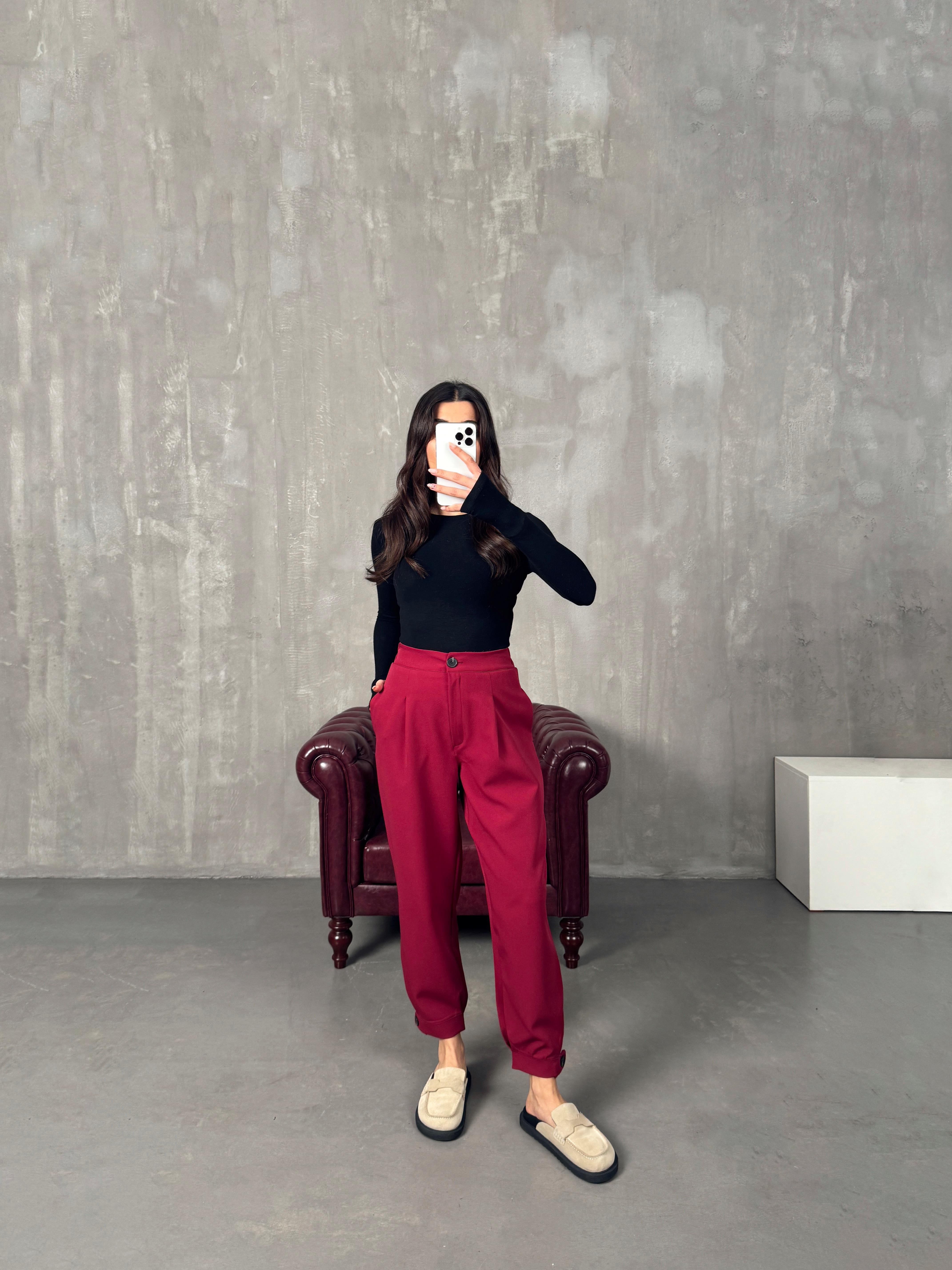 أوسلو بنطال جزرة لون بوردو بخصر مطاطي