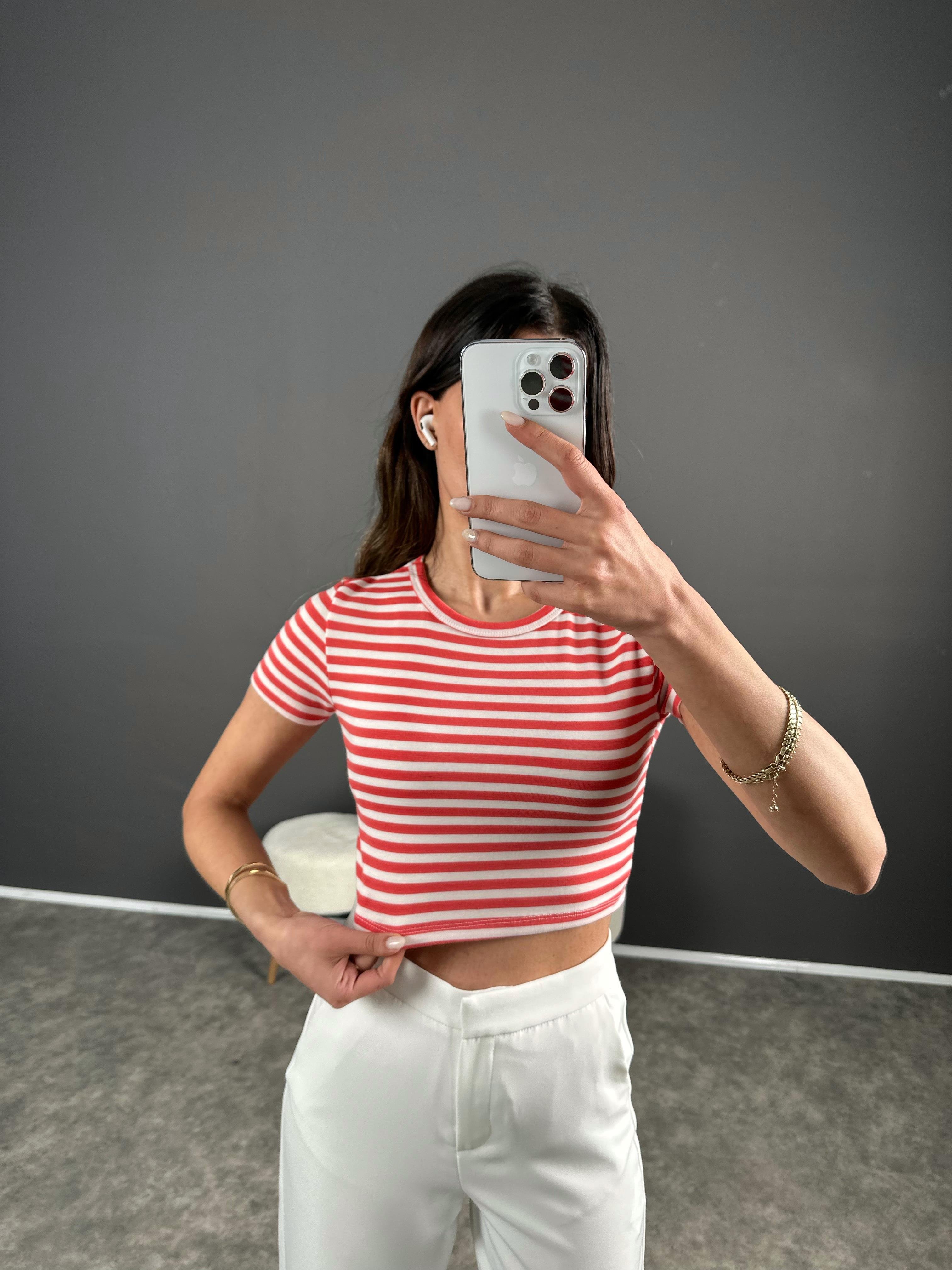 Oys Kırmızı Çizgili Corp Tshirt