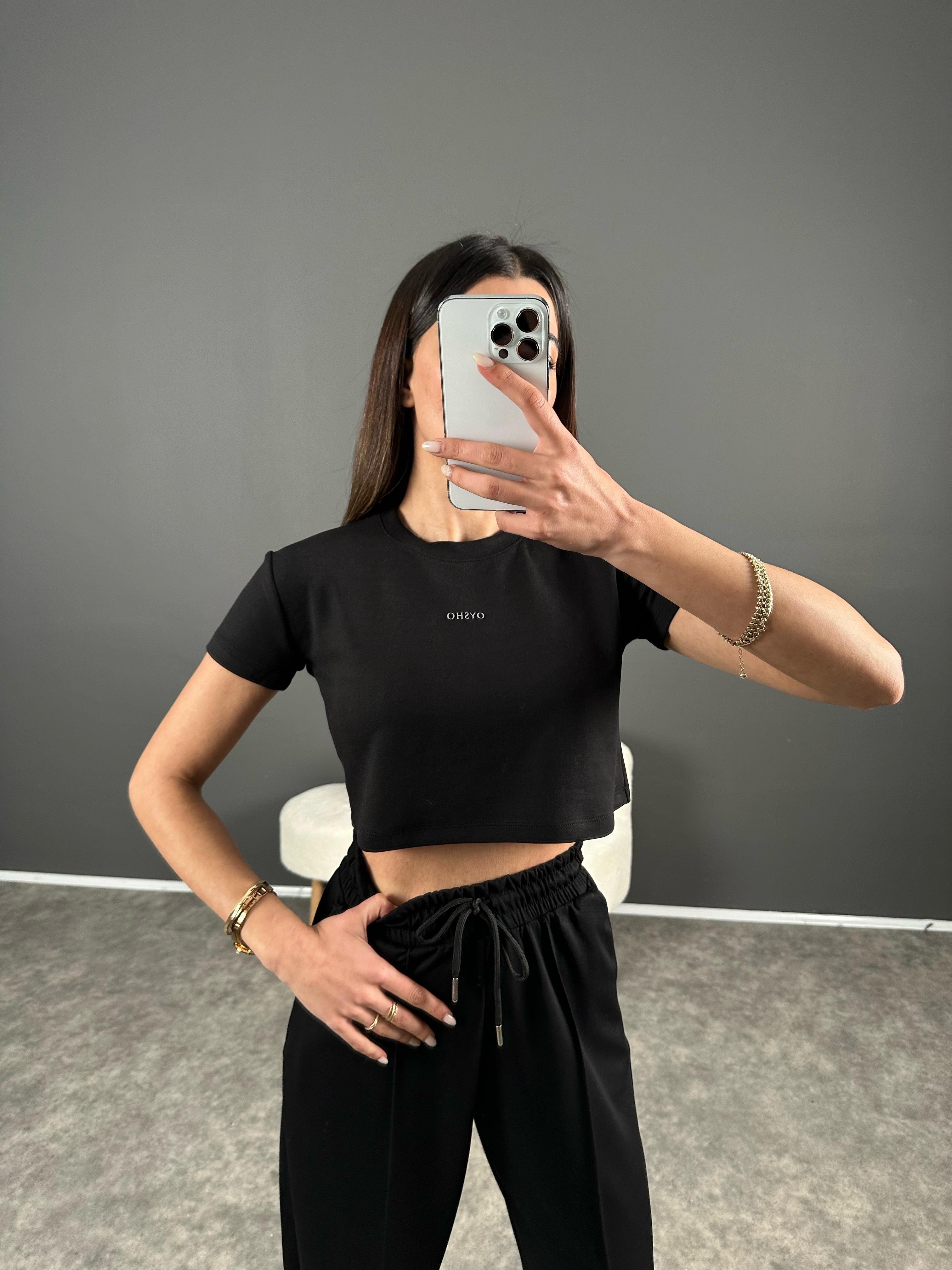Oysh Siyah Modal Kumaş Baskılı Tshirt