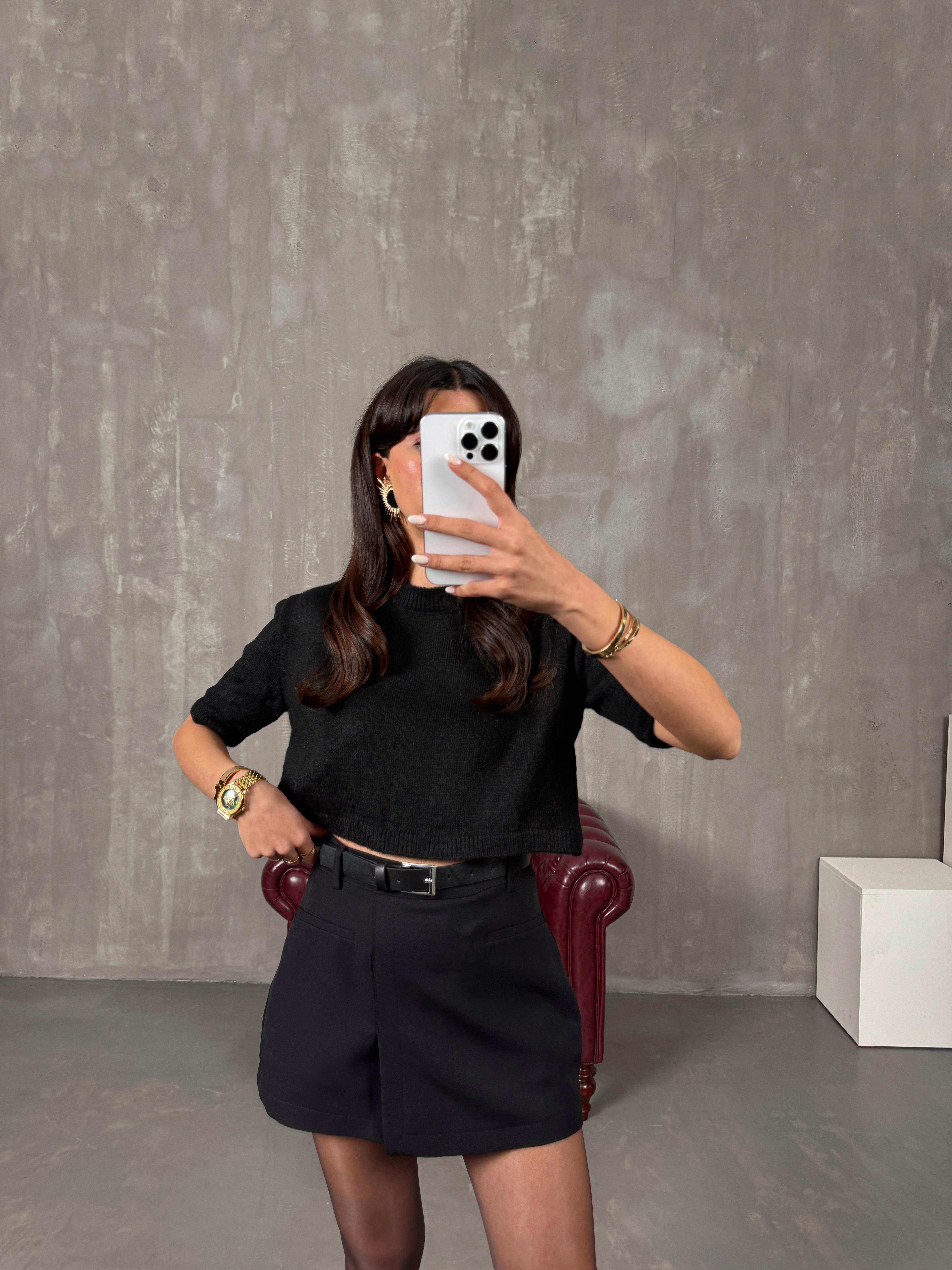 Pastel Siyah Kemerli Şort Etek