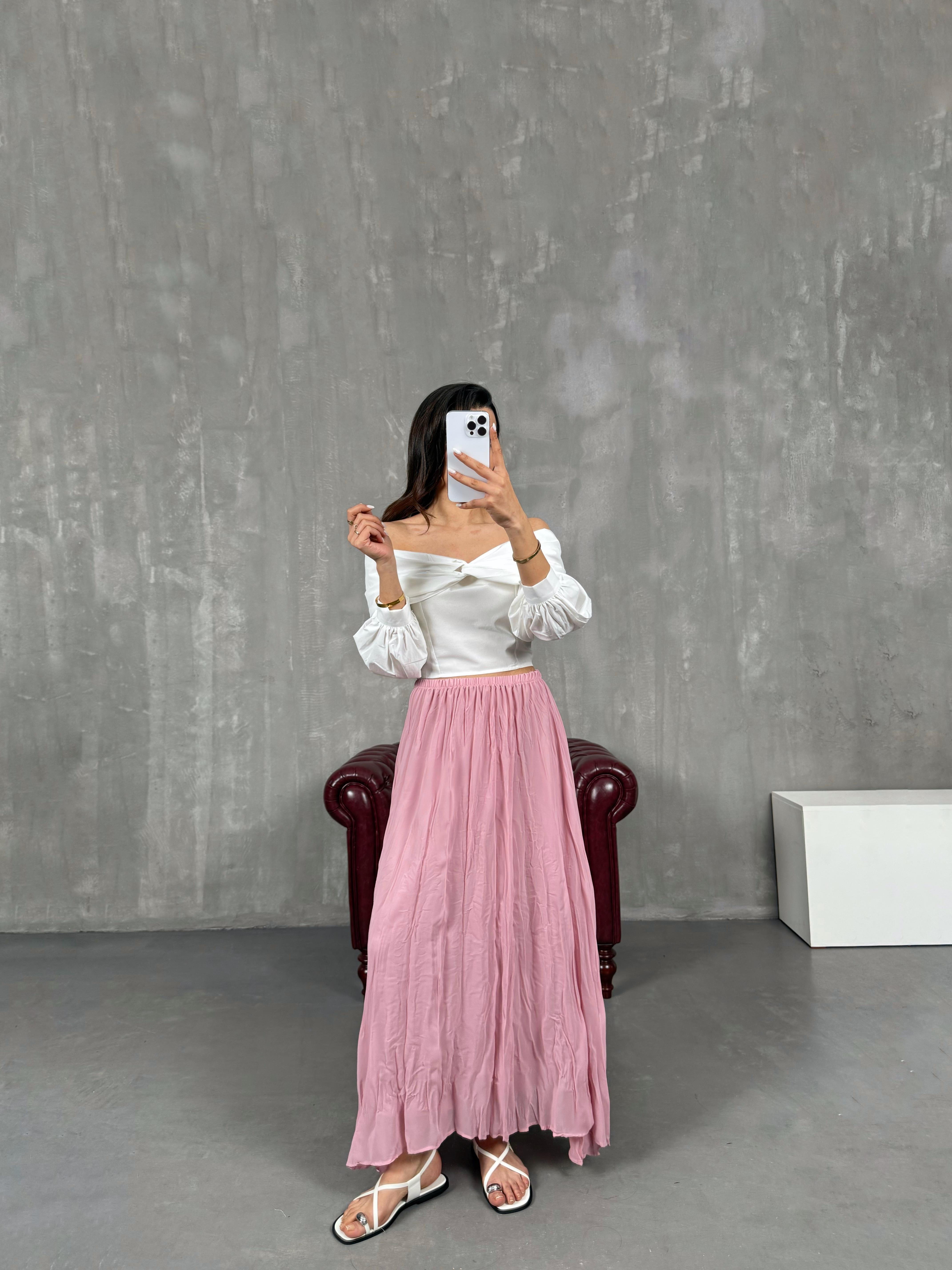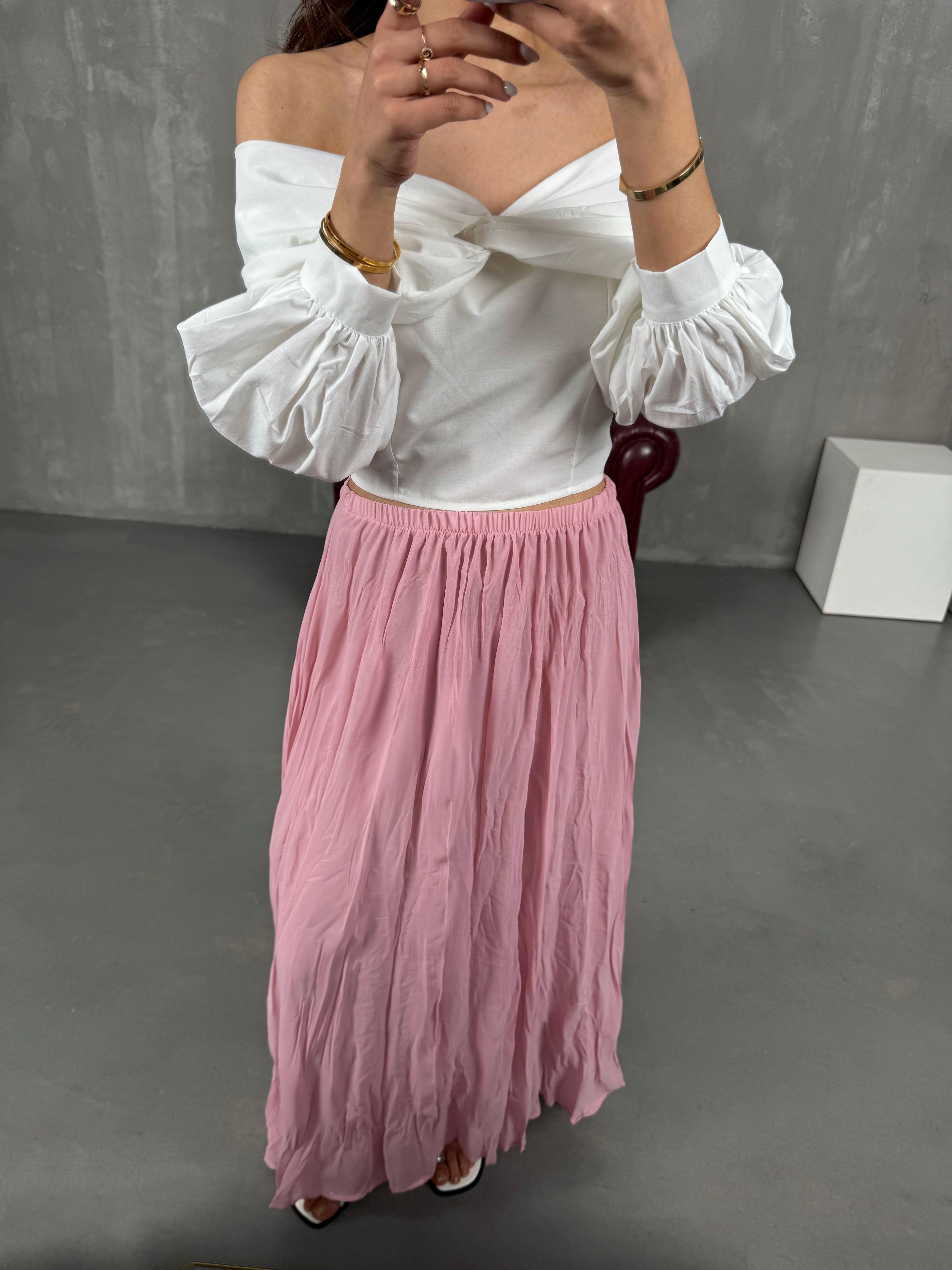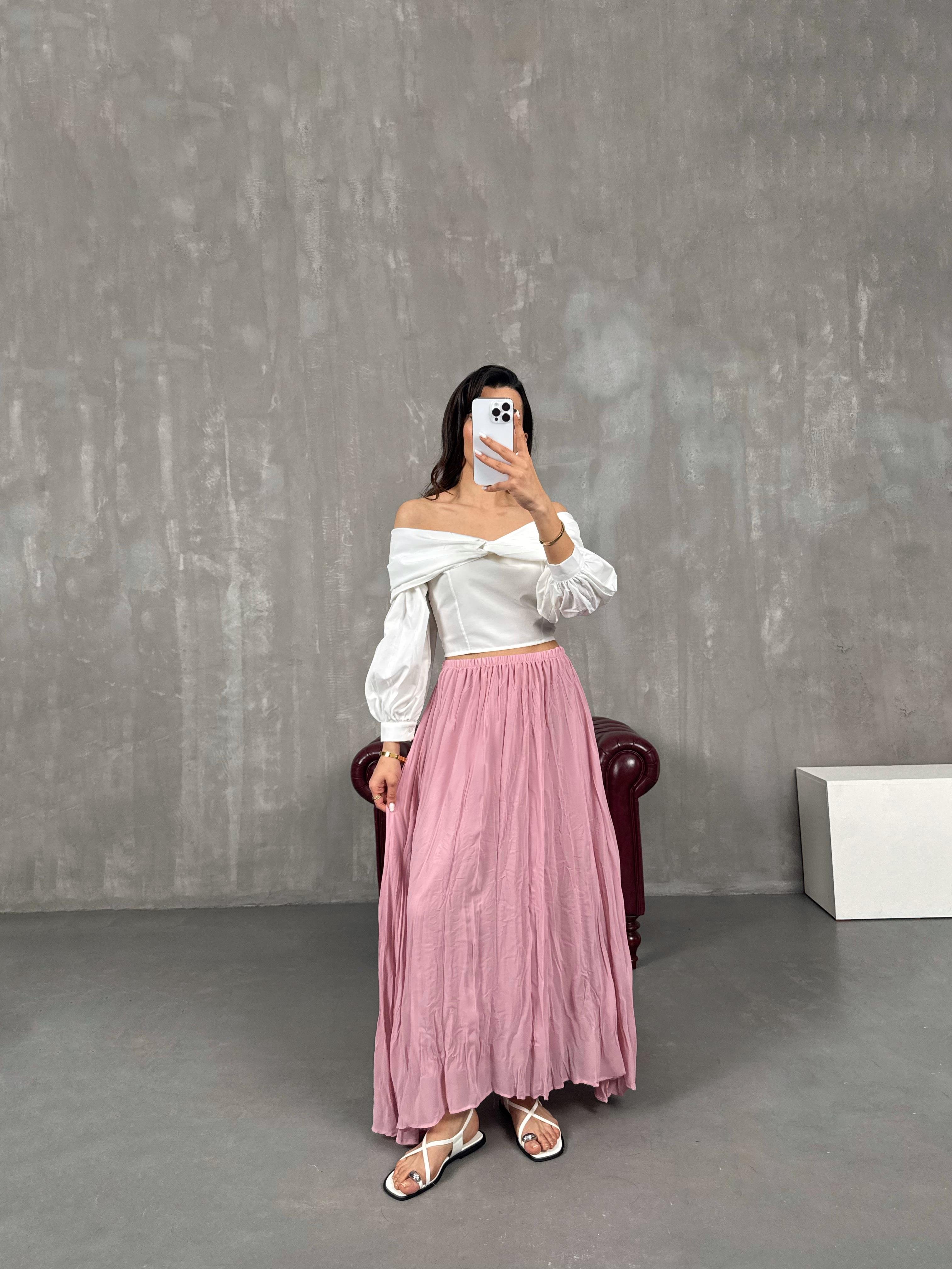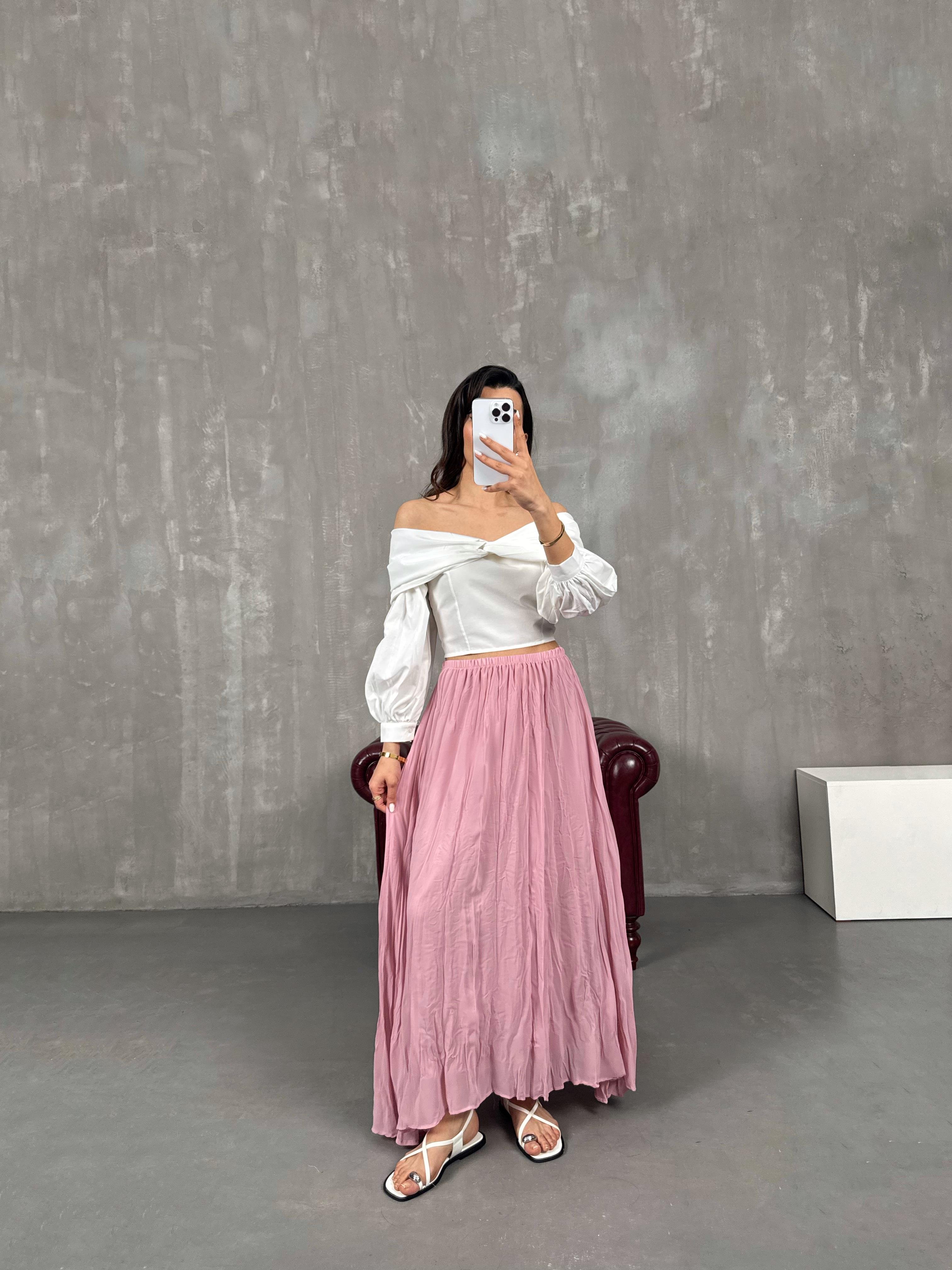 تنورة لون وردي مبطنّة وبتفاصيل تول مجعّد Gaus00052