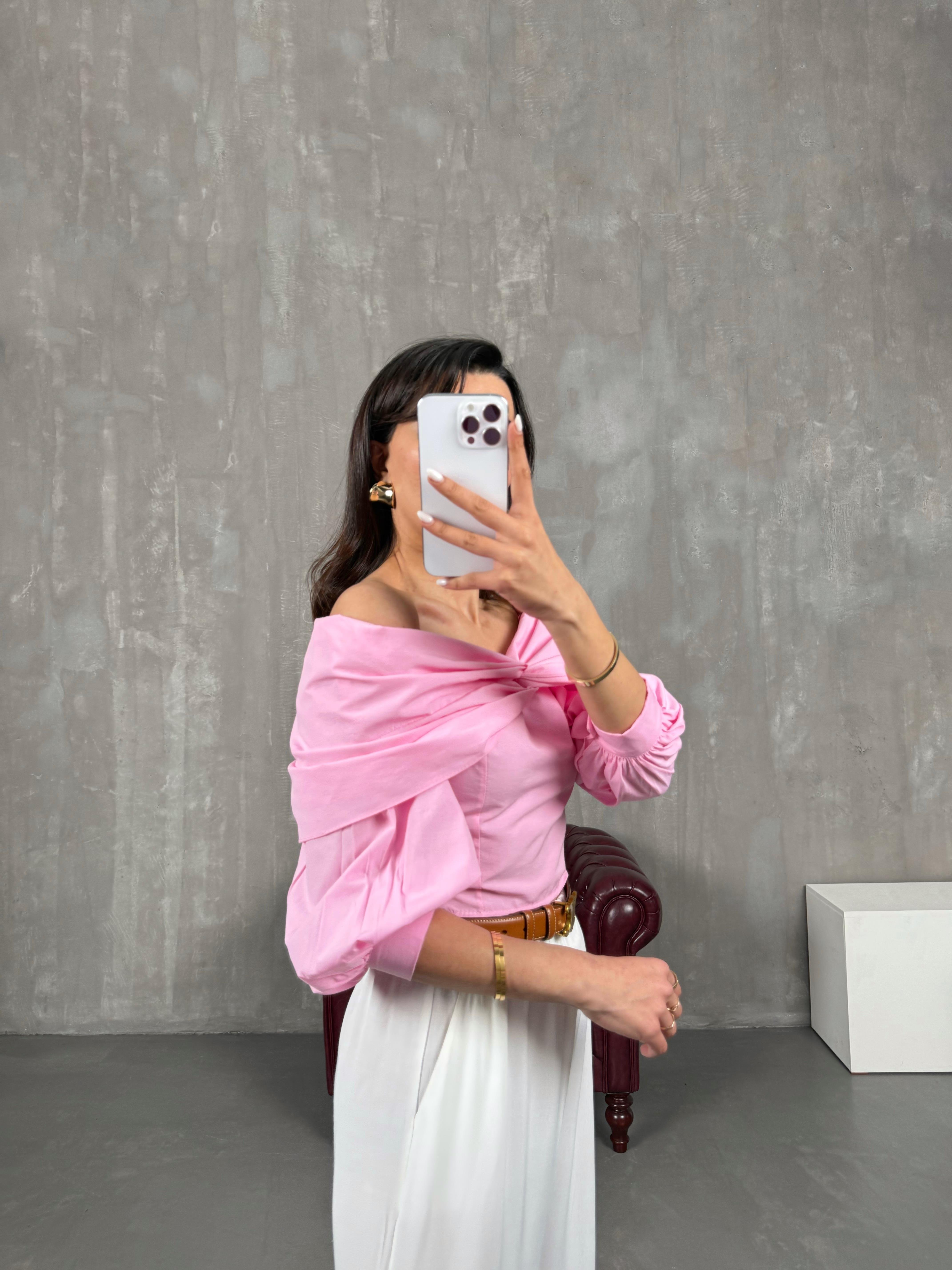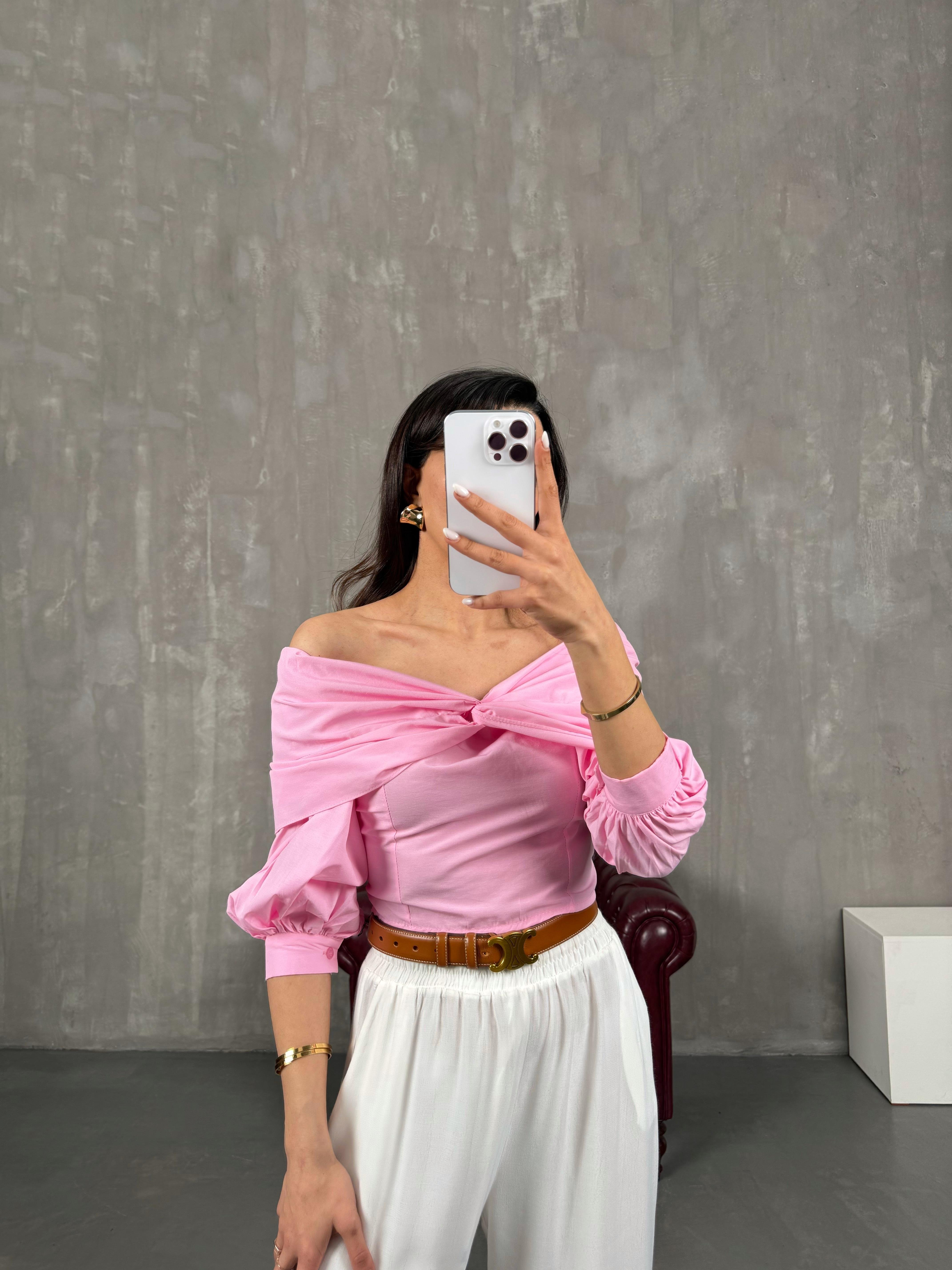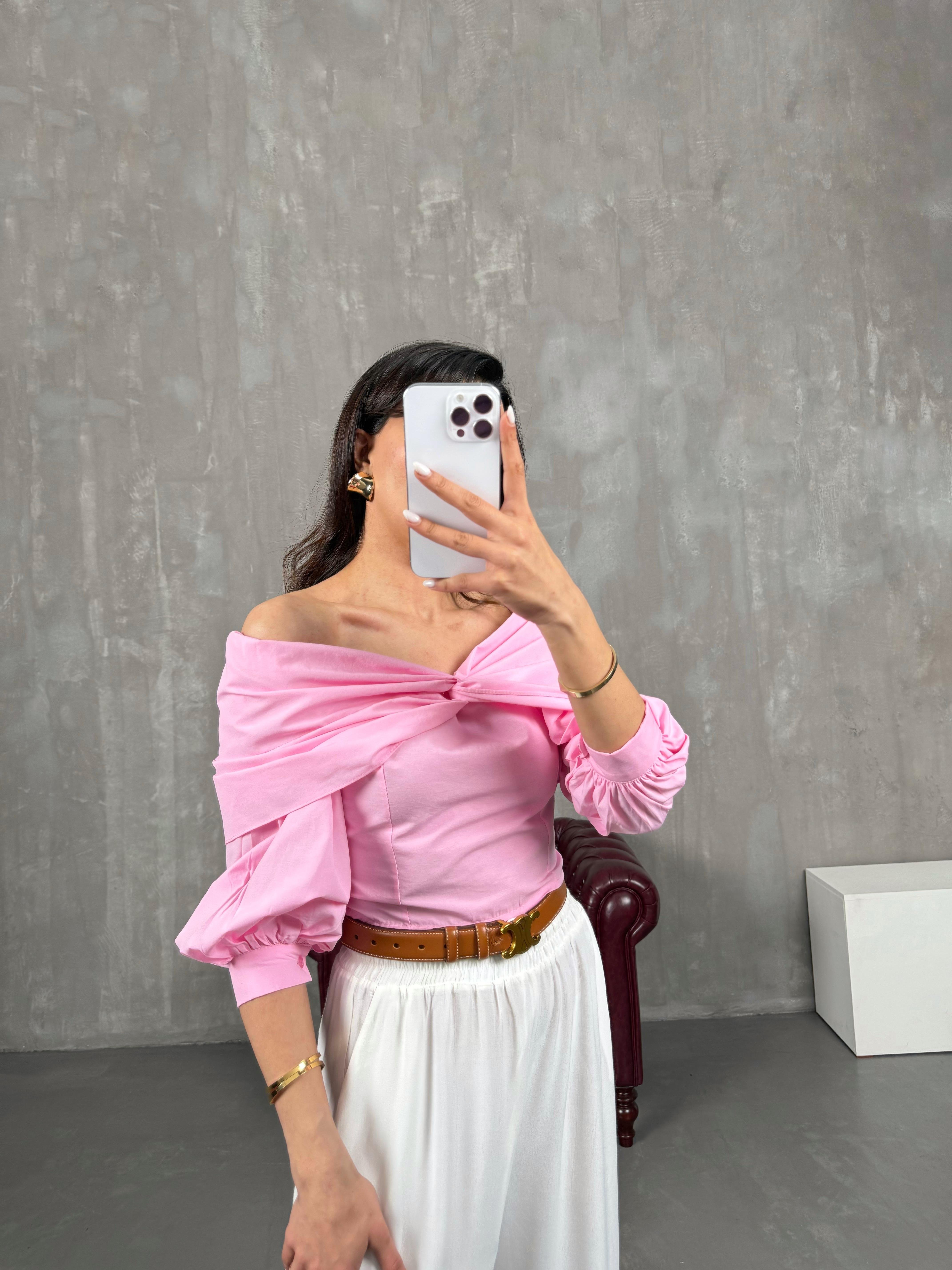 قميص قصير وردي بياقة مادونا Gaus00053