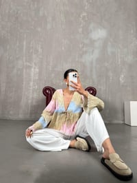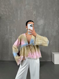 بلوزة لون وردي قماش موسلين بصبغة متعددة الألوان مع ربّاط أمامي Gaus00088