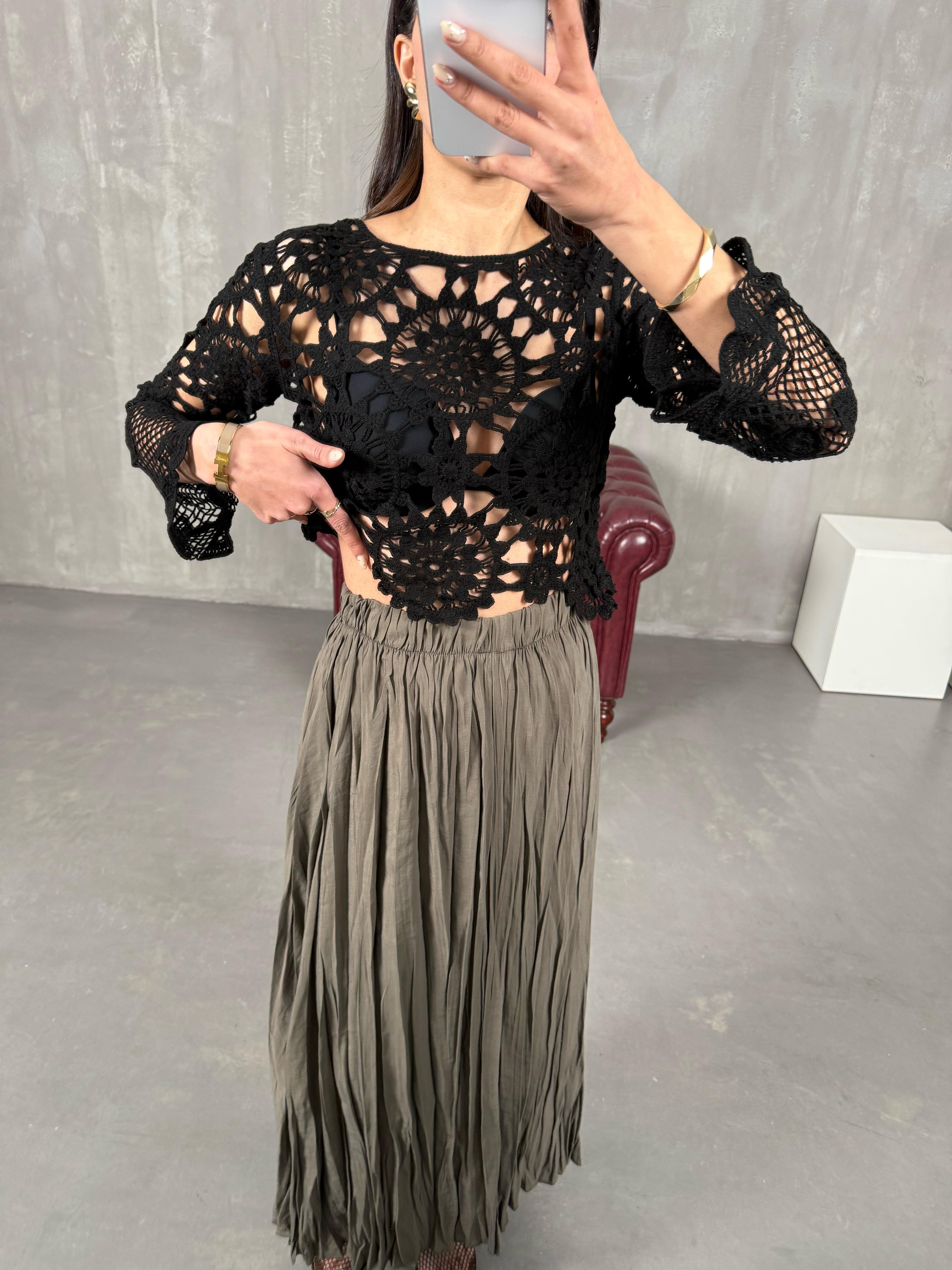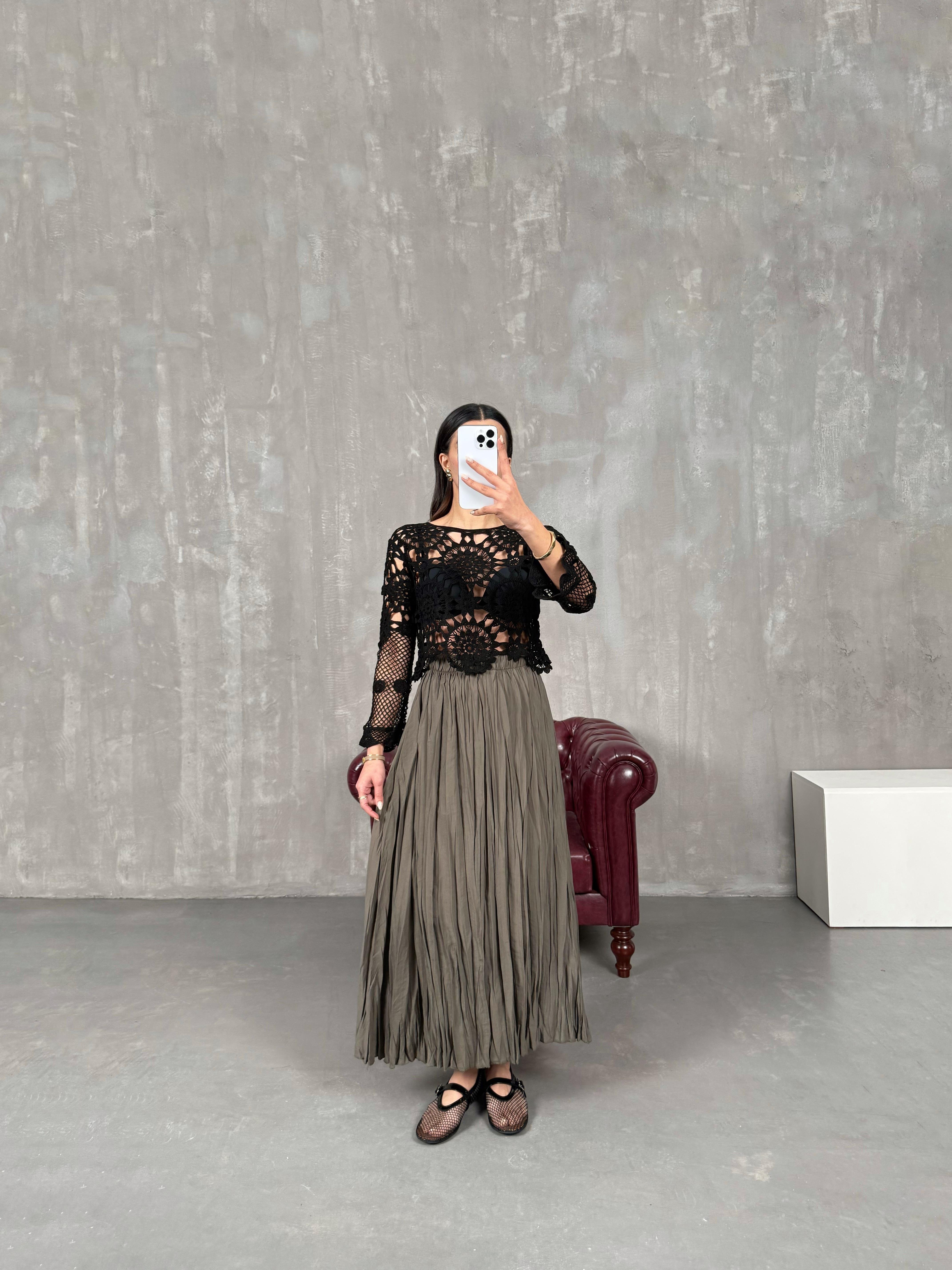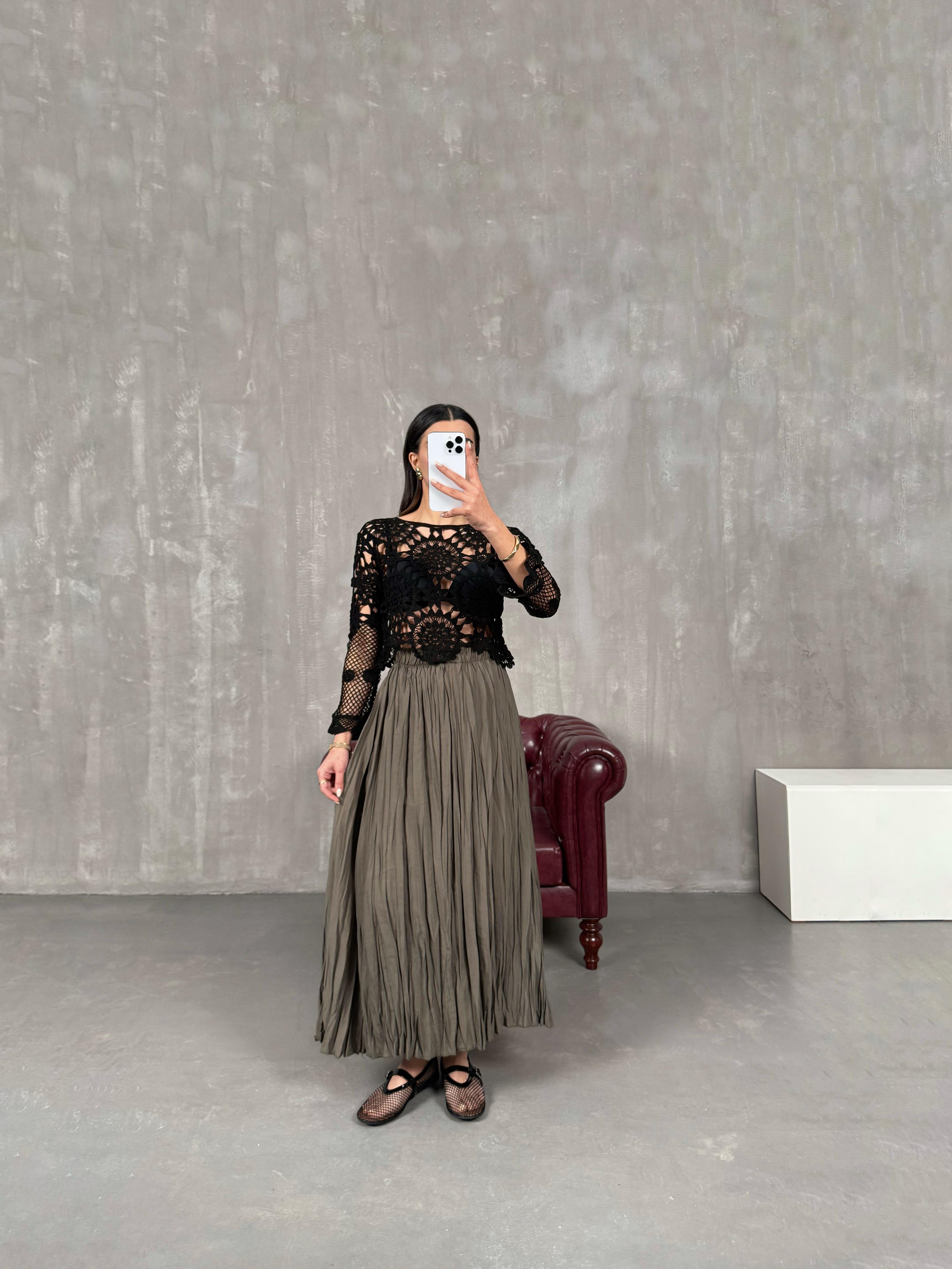 Penole Taş Kırışık Tensel Etek Penole Acı Kahve Kırışık Tensel Etek Penole Kiremit Kırışık Tensel Etek Penole Yağ Yeşili Kırışık Tensel Etek بينوله تنورة لون أسود قماش تينسيل مجعّد