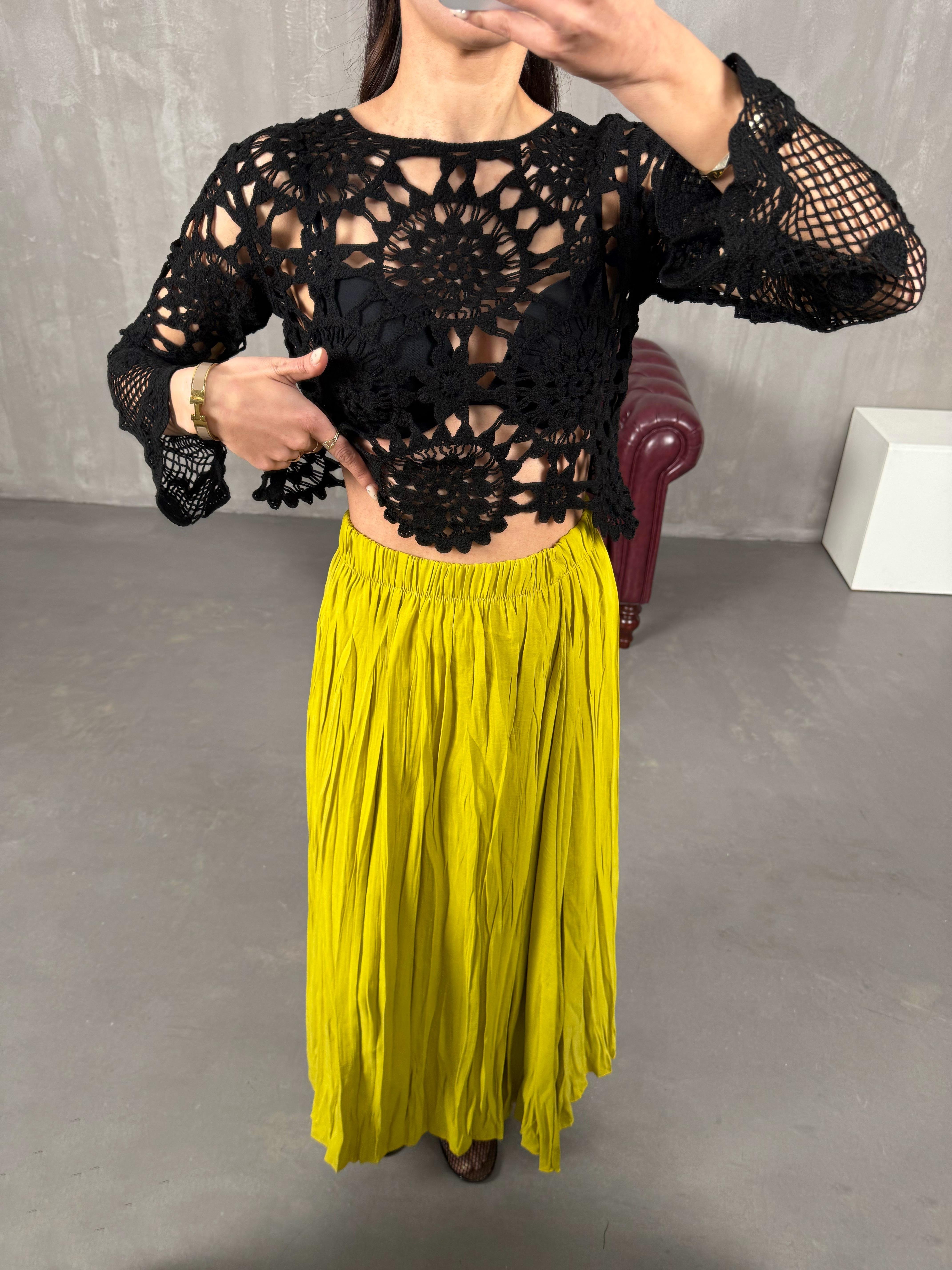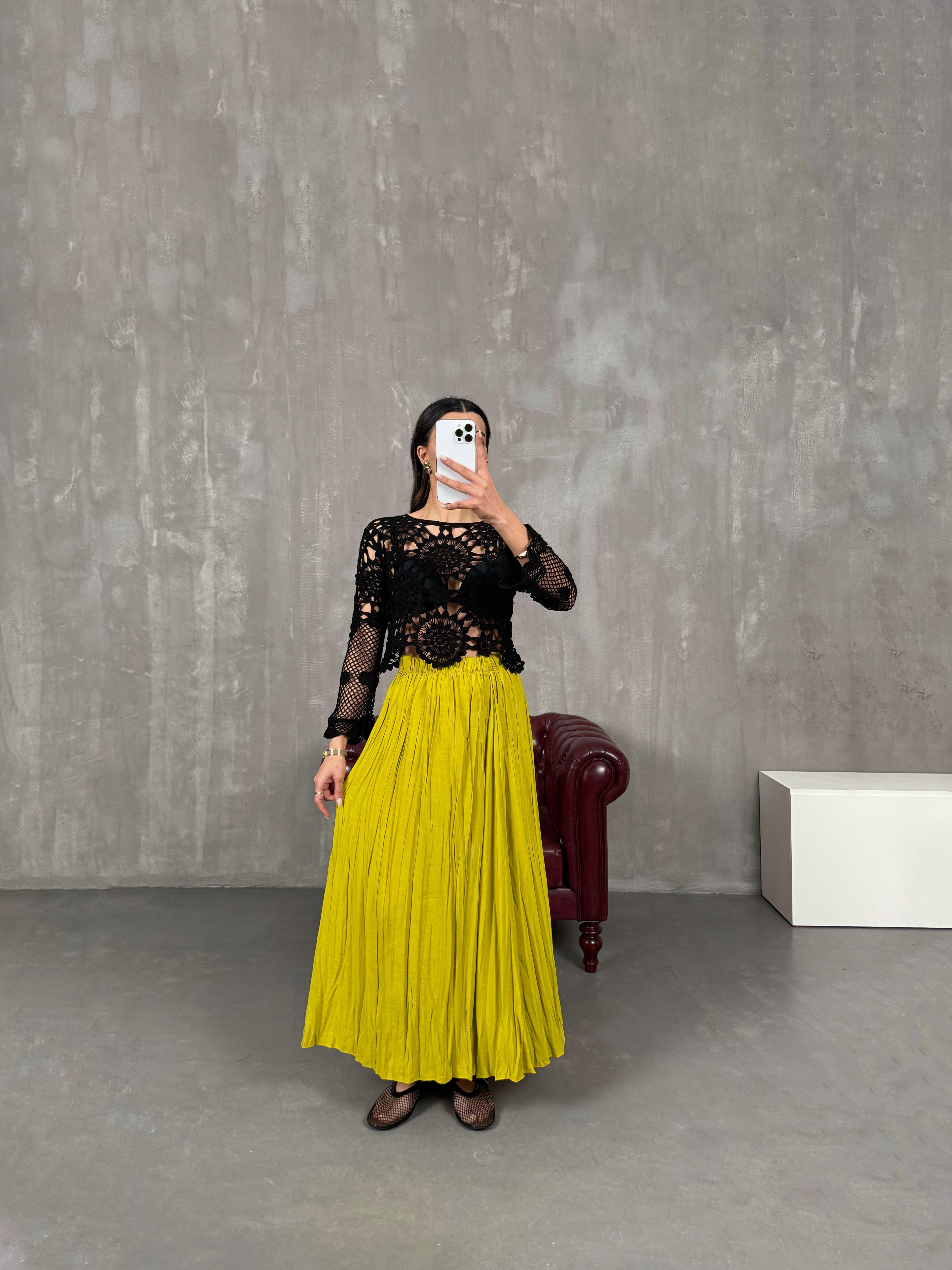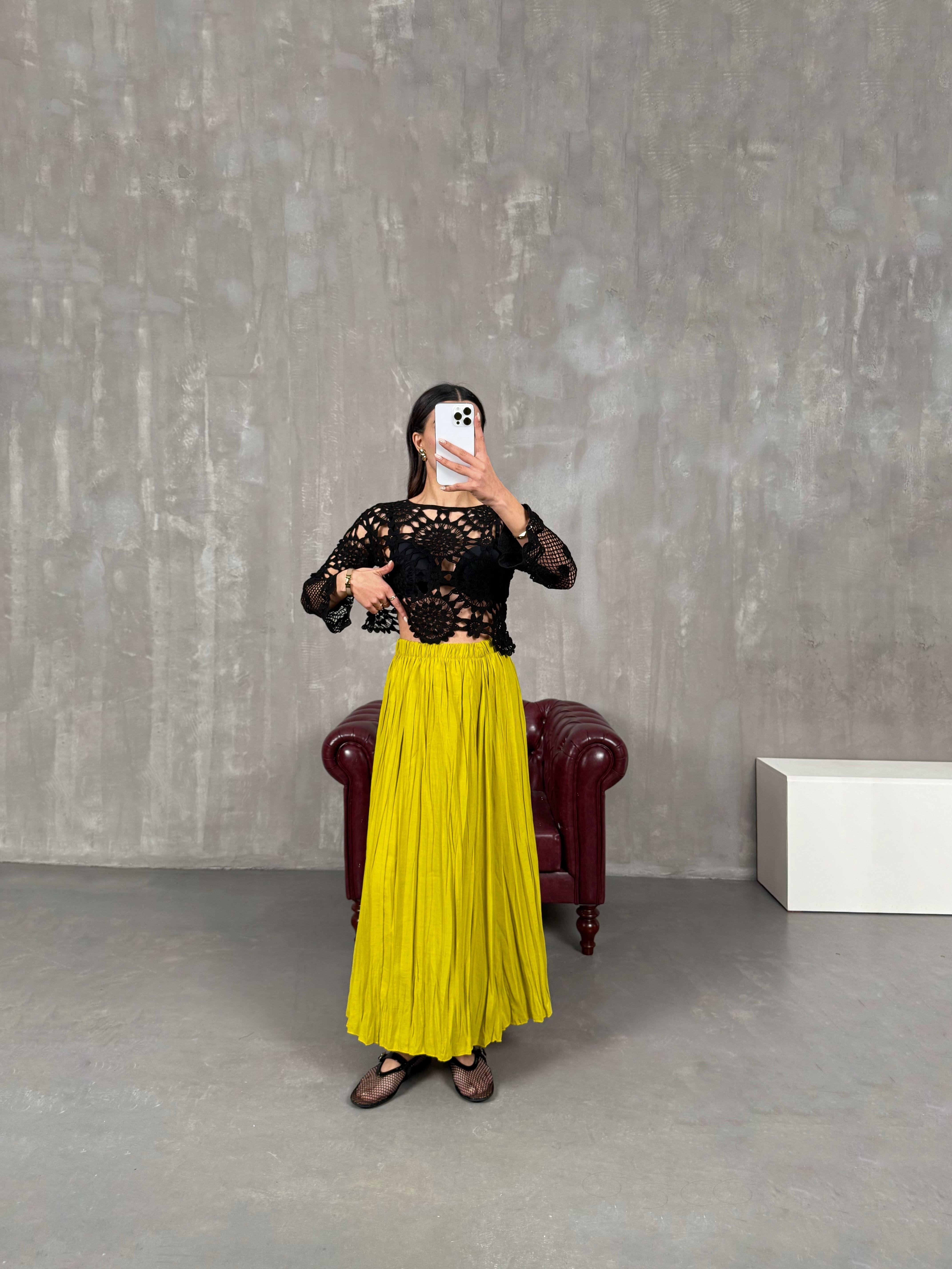 Penole Yağ Yeşili Kırışık Tensel Etek