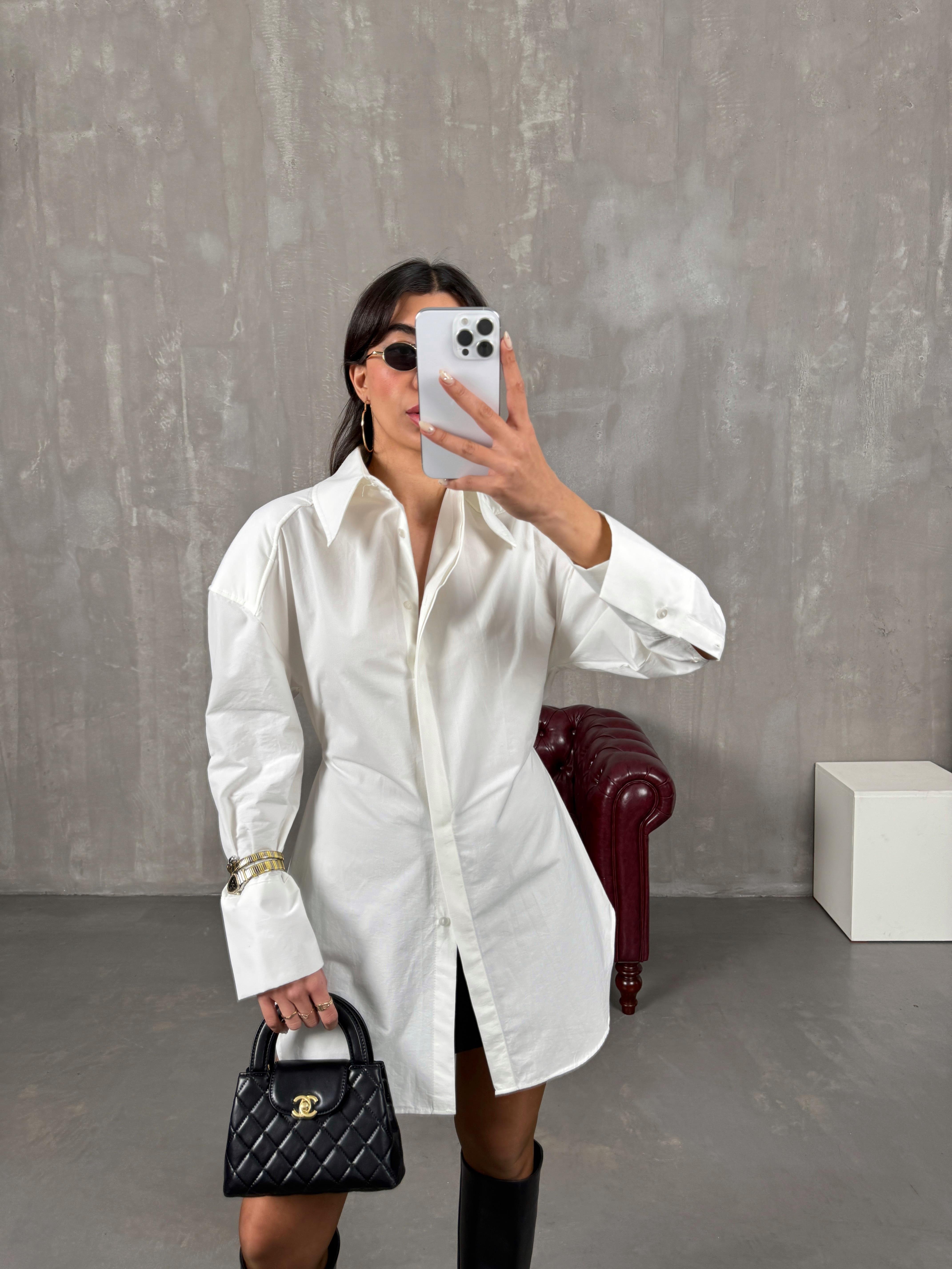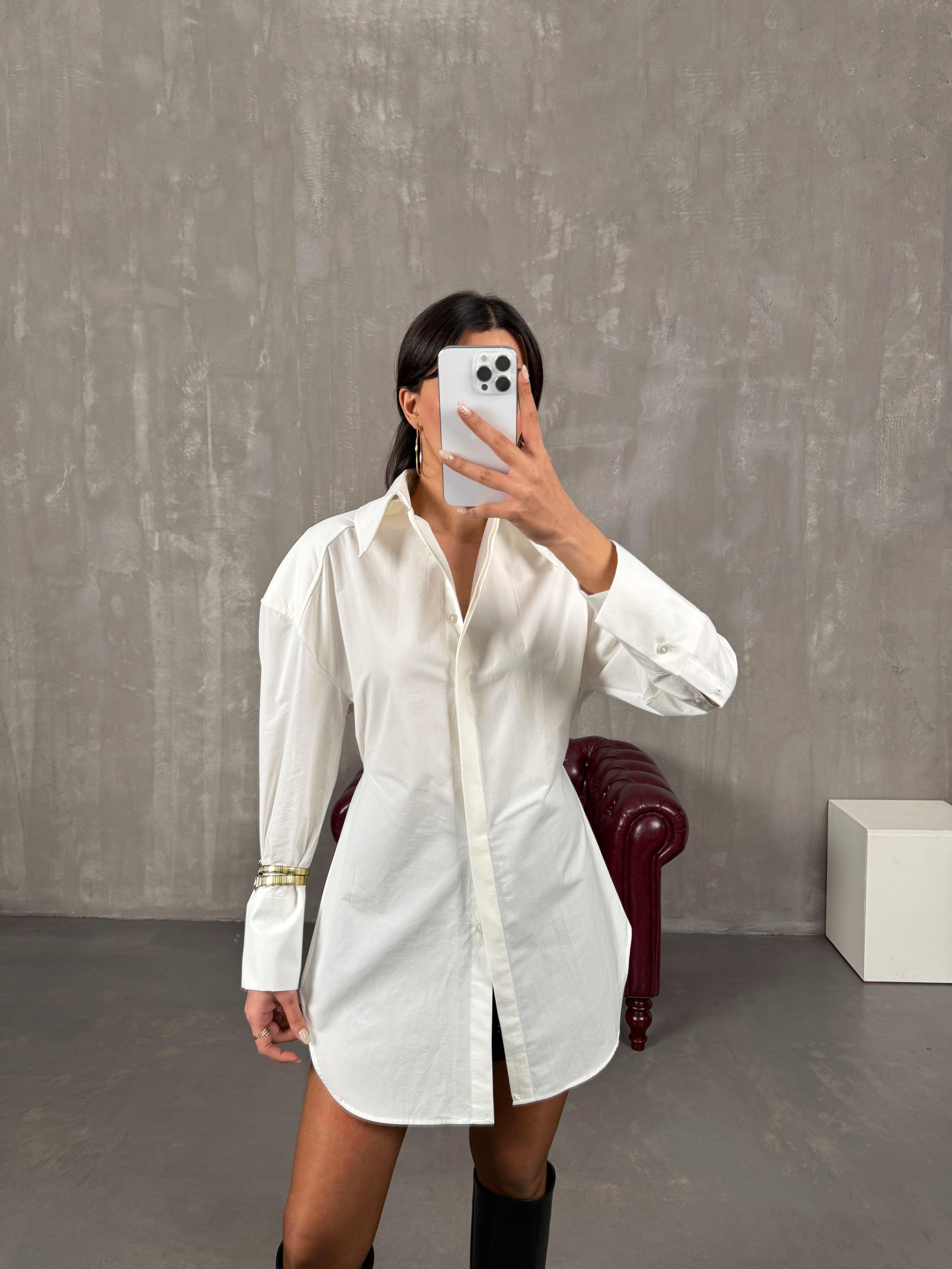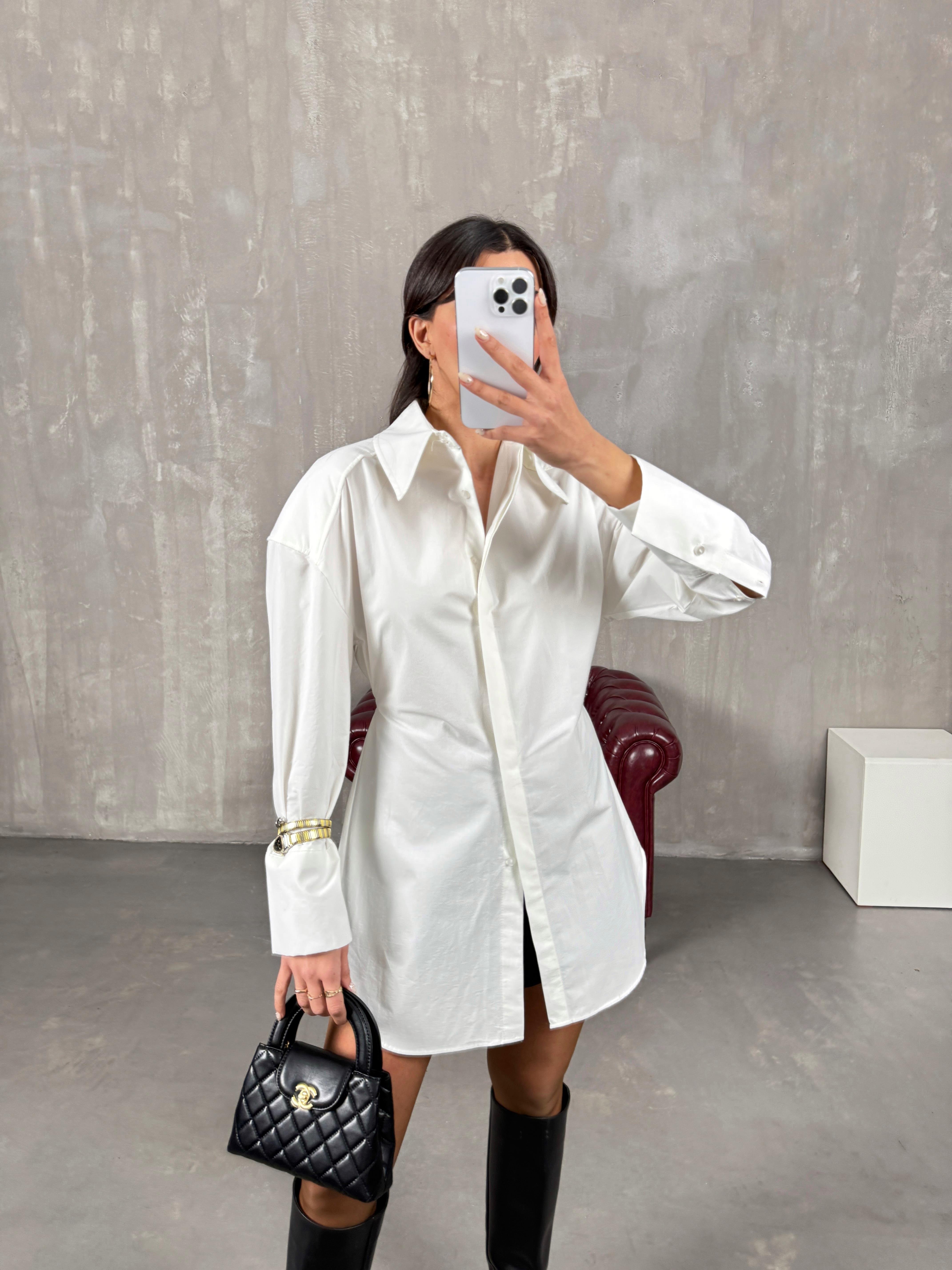 Poffi Beyaz Bağlama Detaylı Vatkalı Gömlek