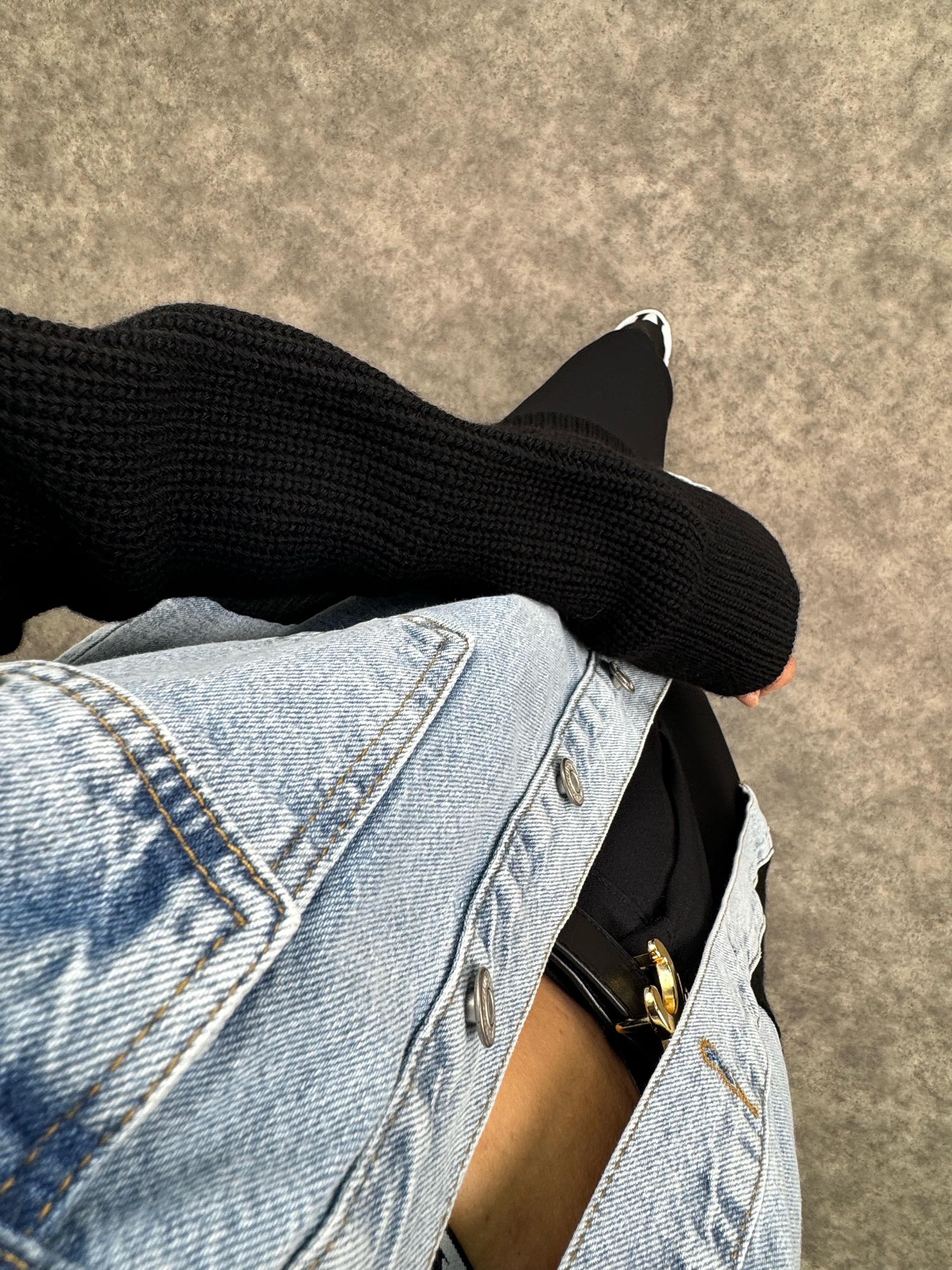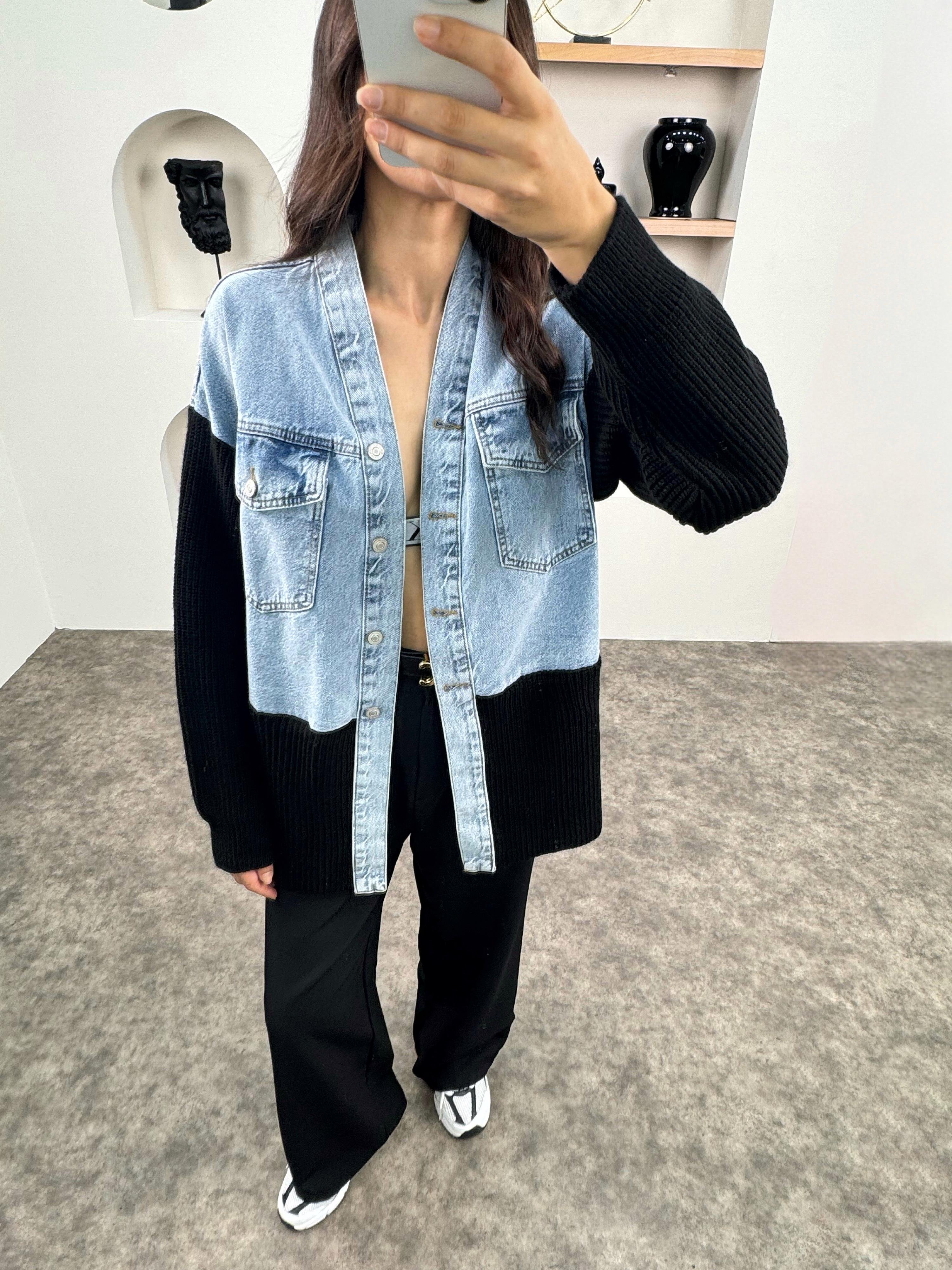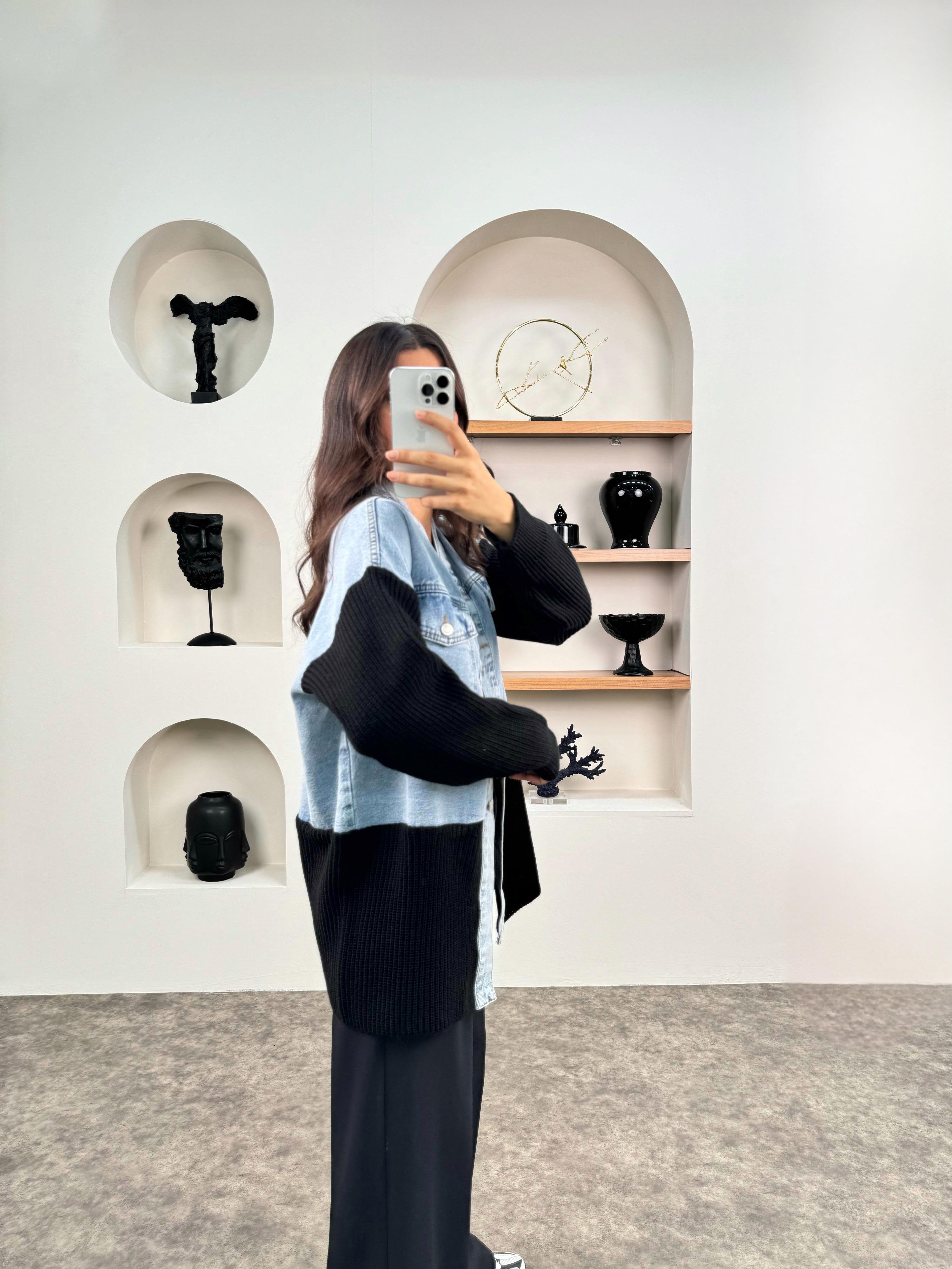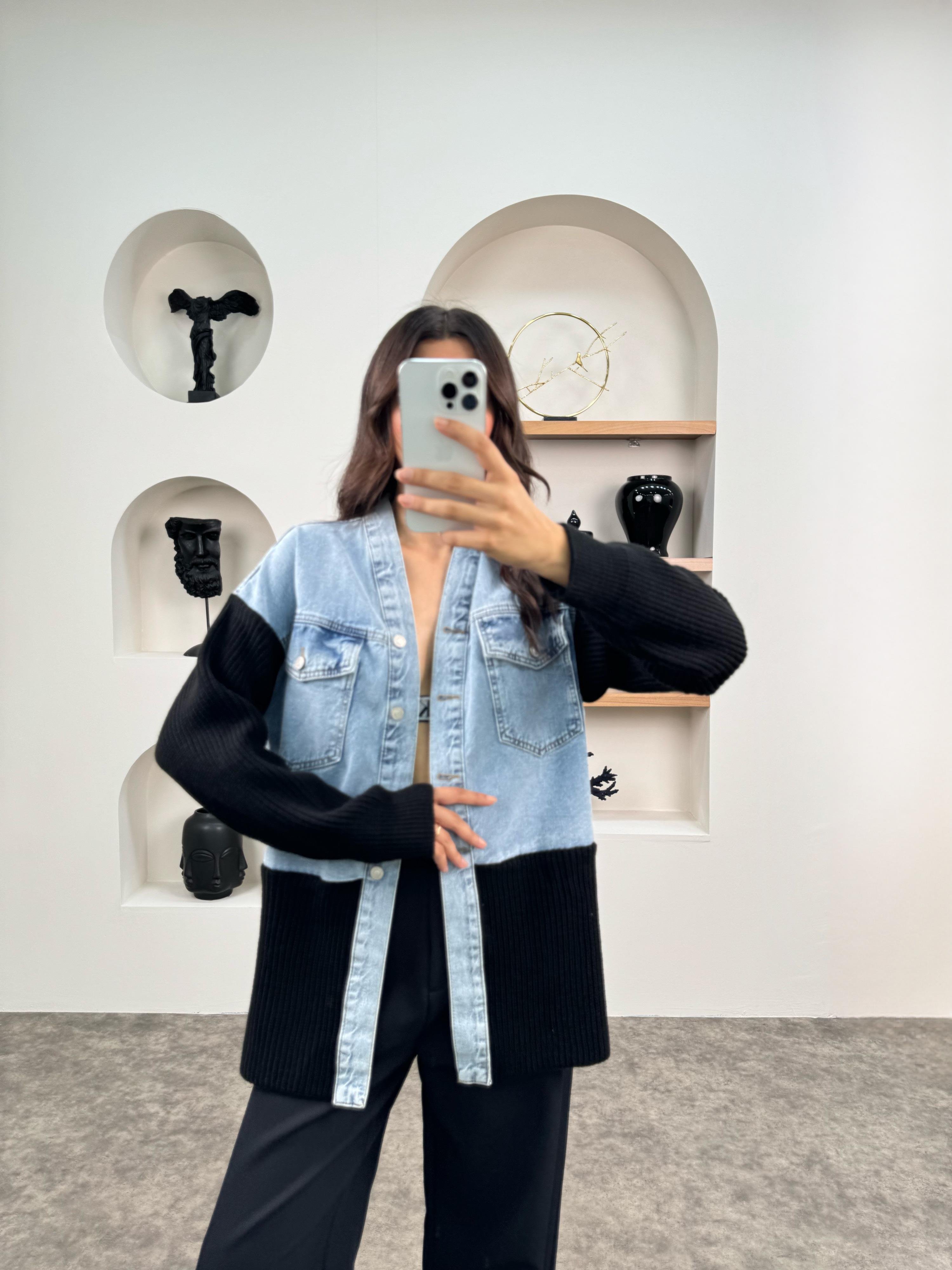 RC Triko ve Denim Karışımlı Tasarım Kot Ceket
