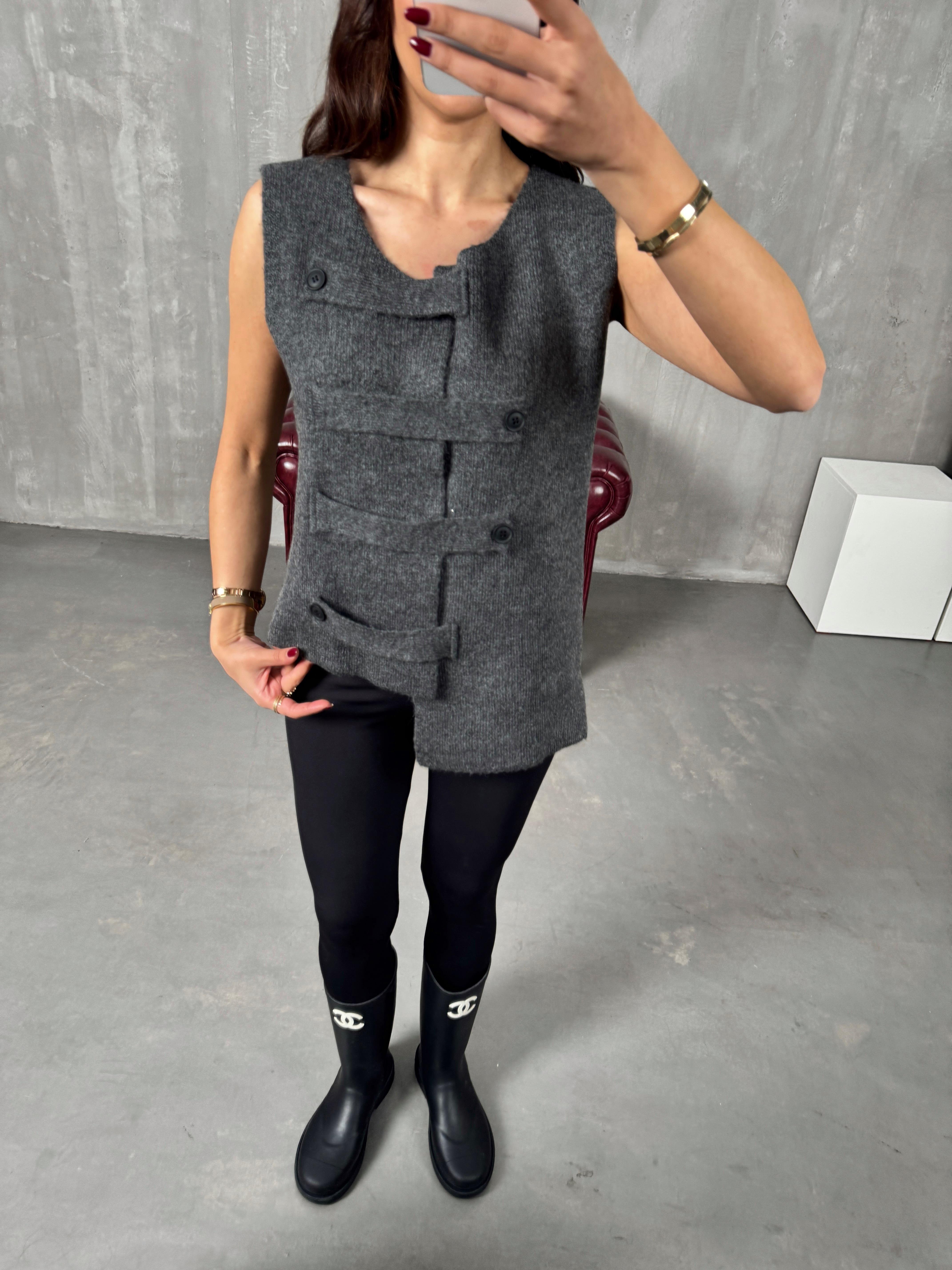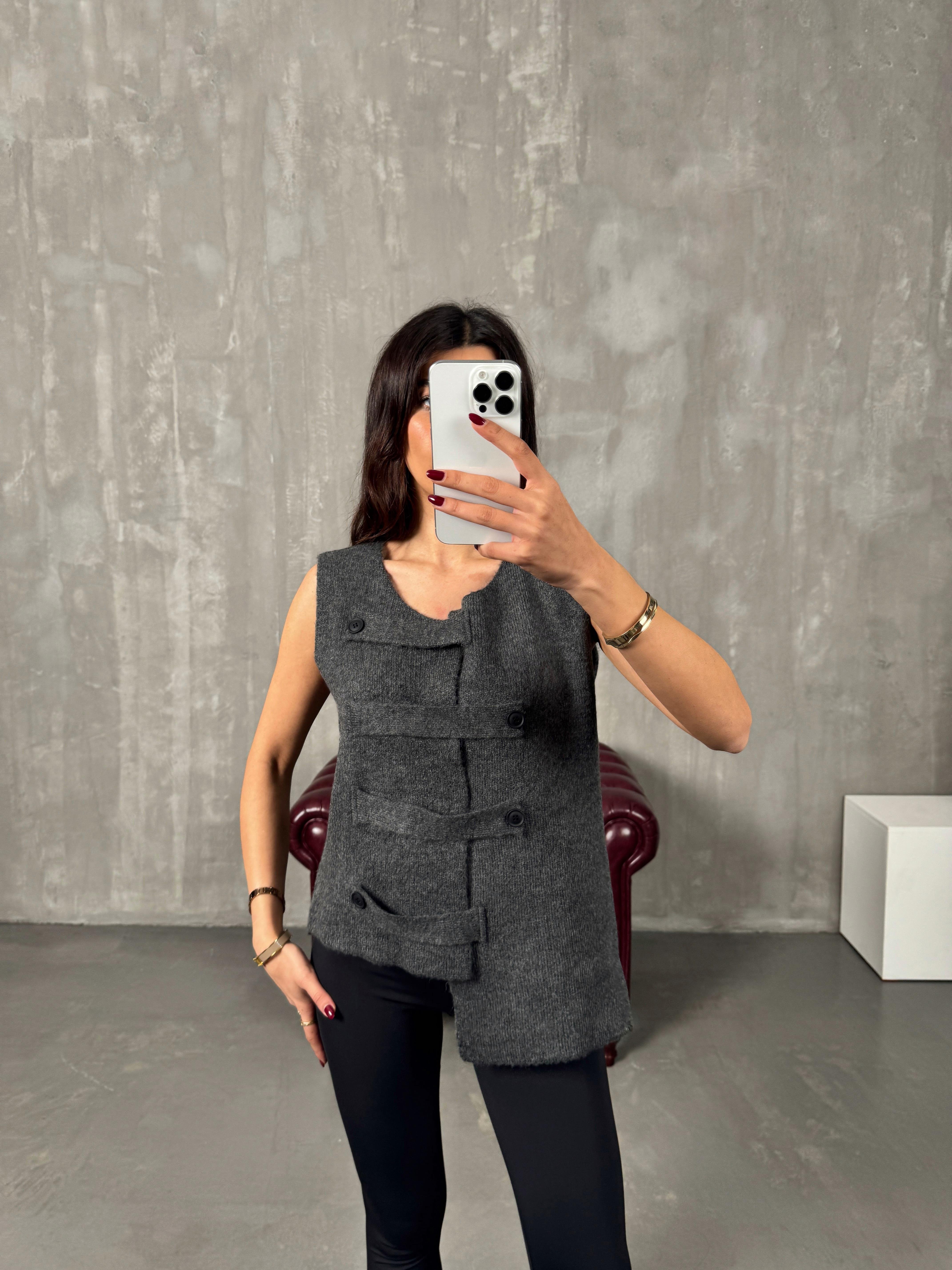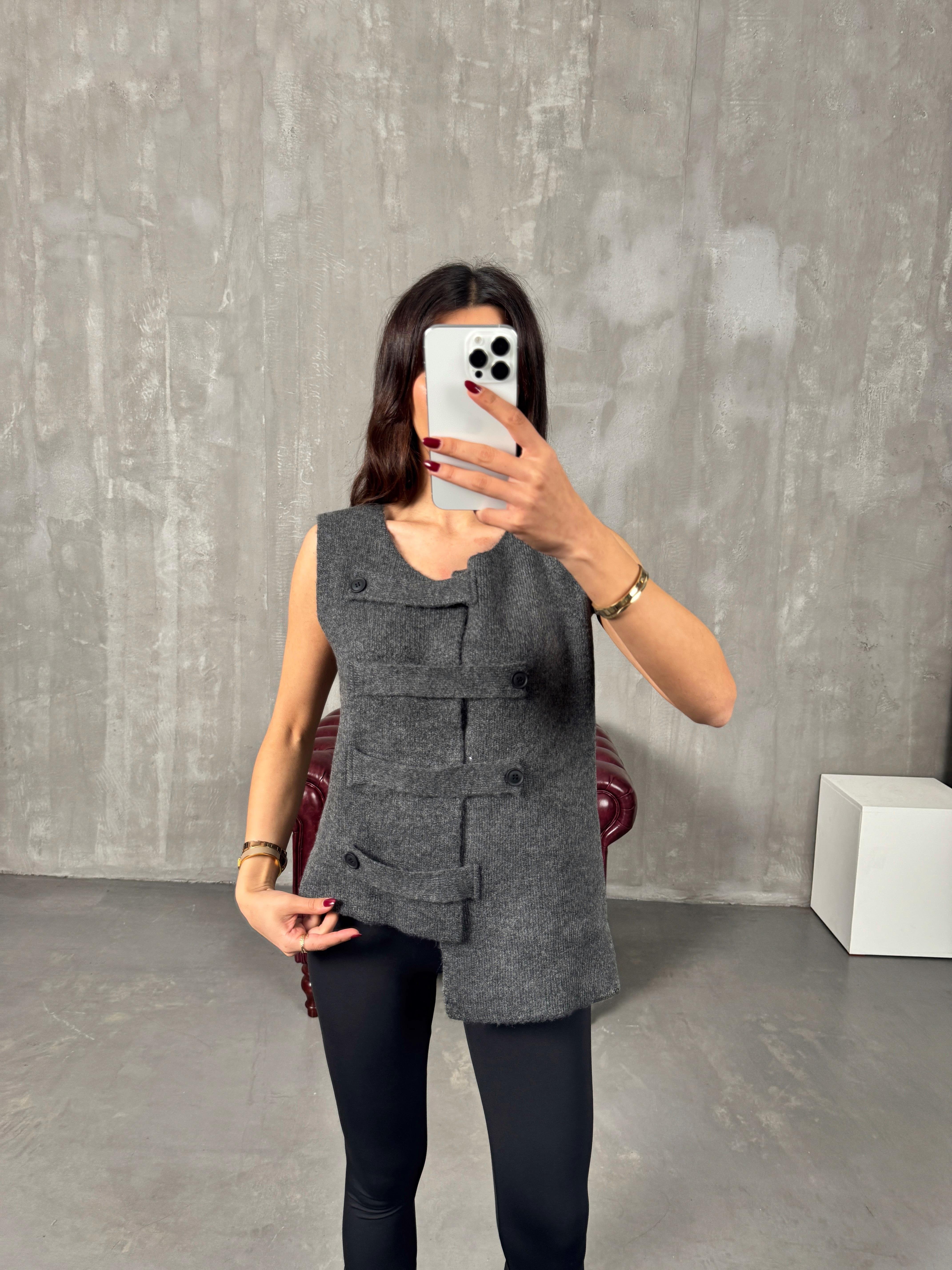 Rego Antrasit Düğme Bağlamalı Yelek Hırka