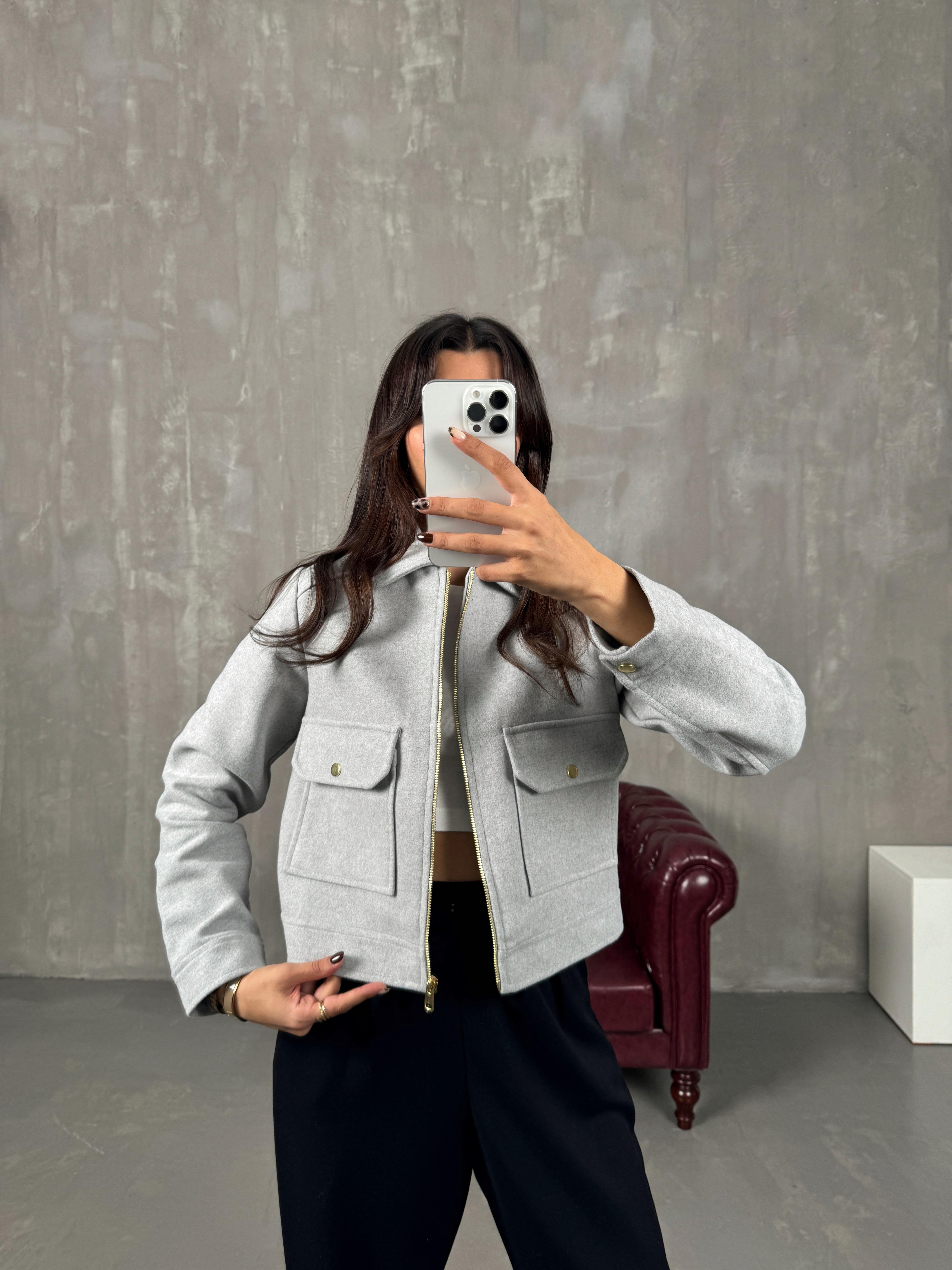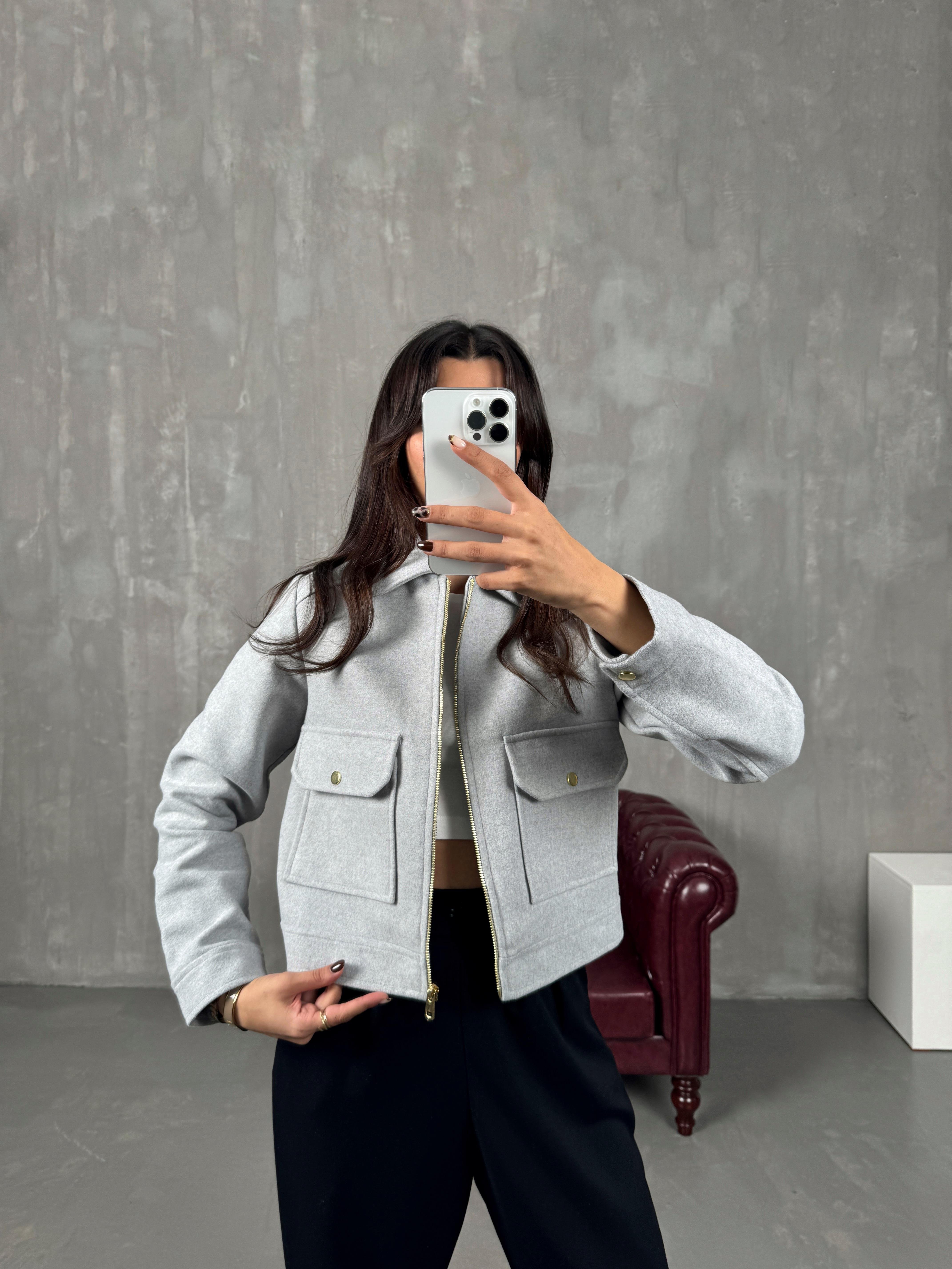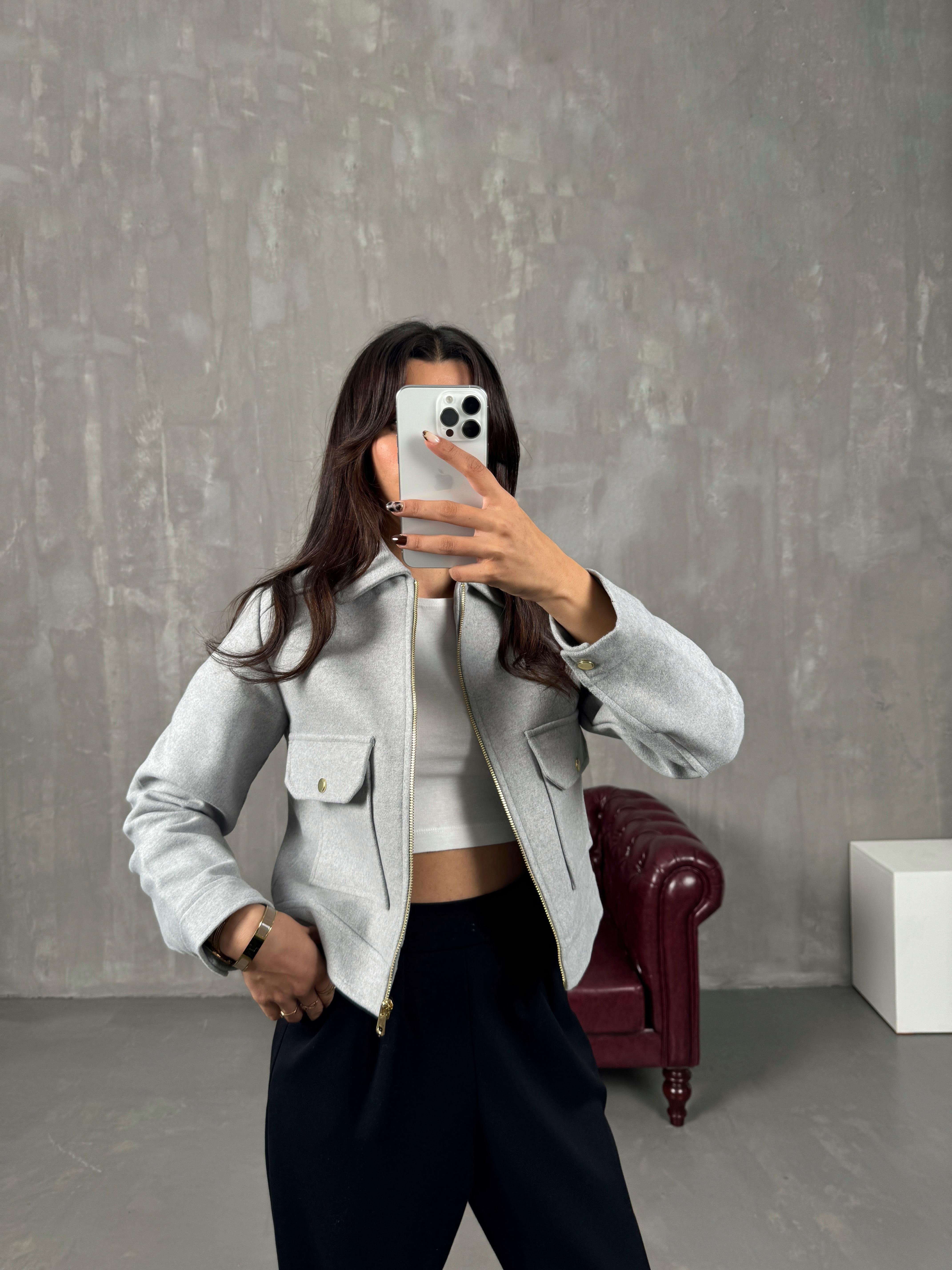 Ressa Gri Fermuarlı Astarlı Cepli Kaşe Muadil Ceket