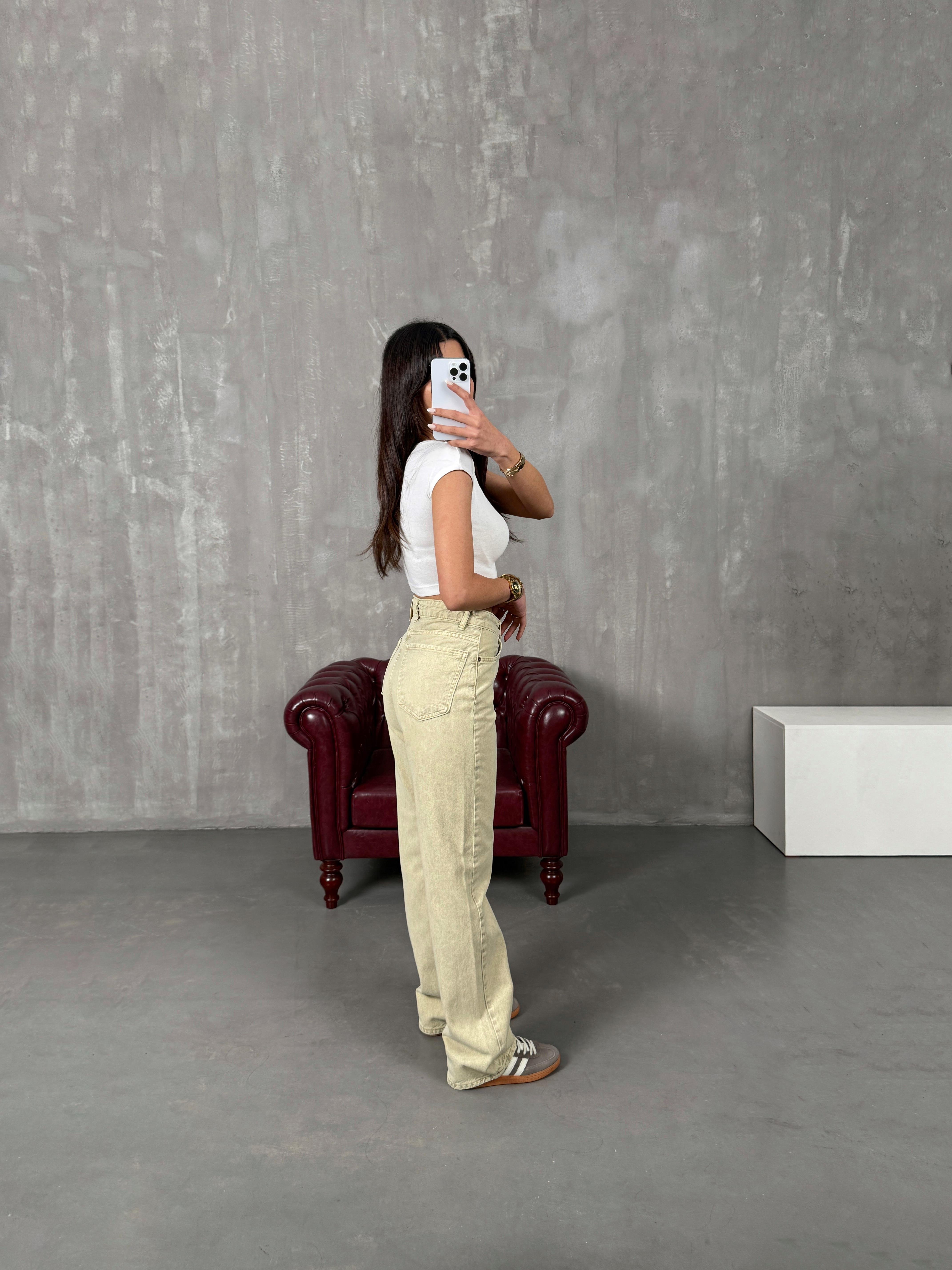 ريكو ‎جينز مغسول واسع الساق لون عاجي