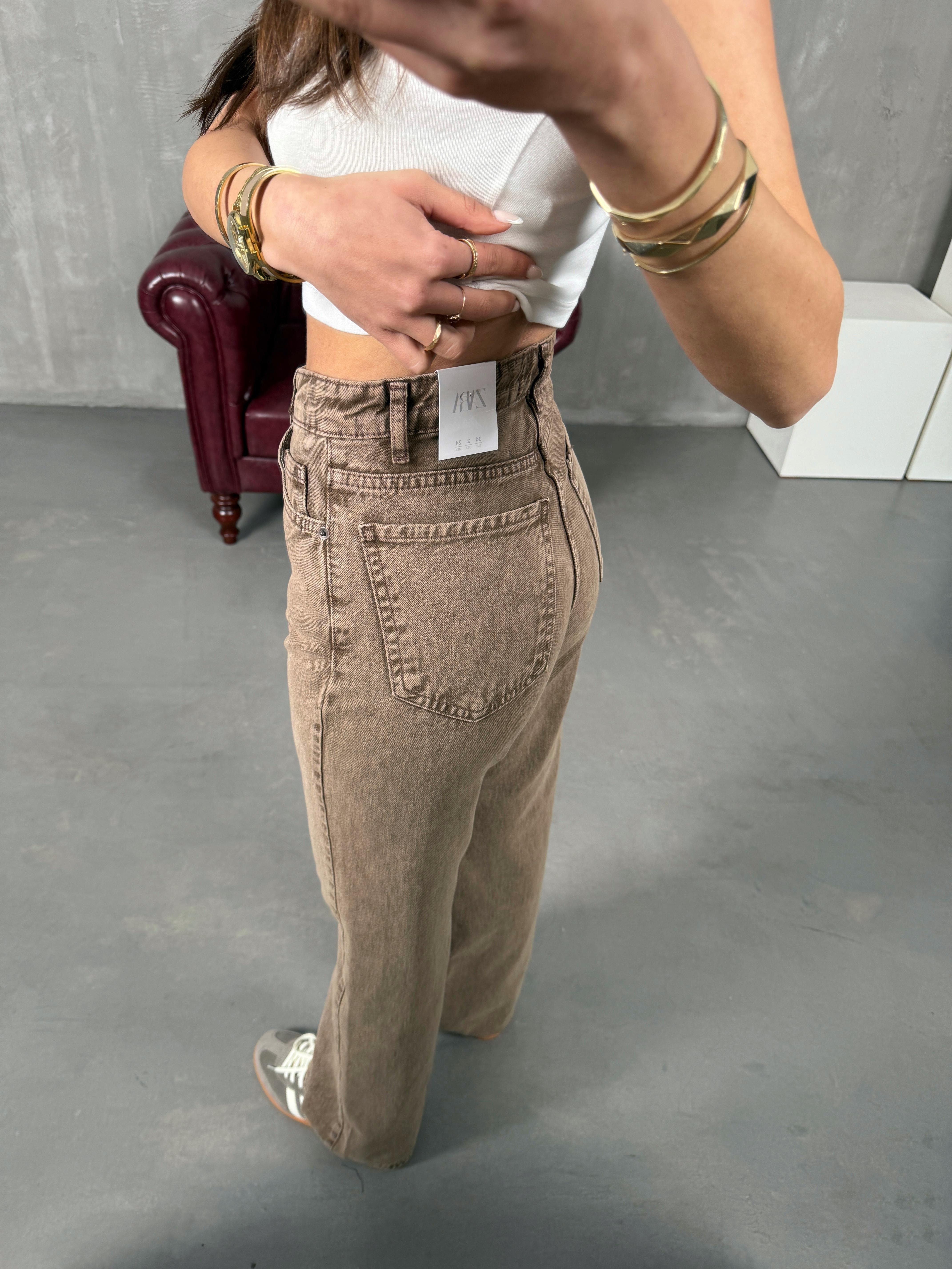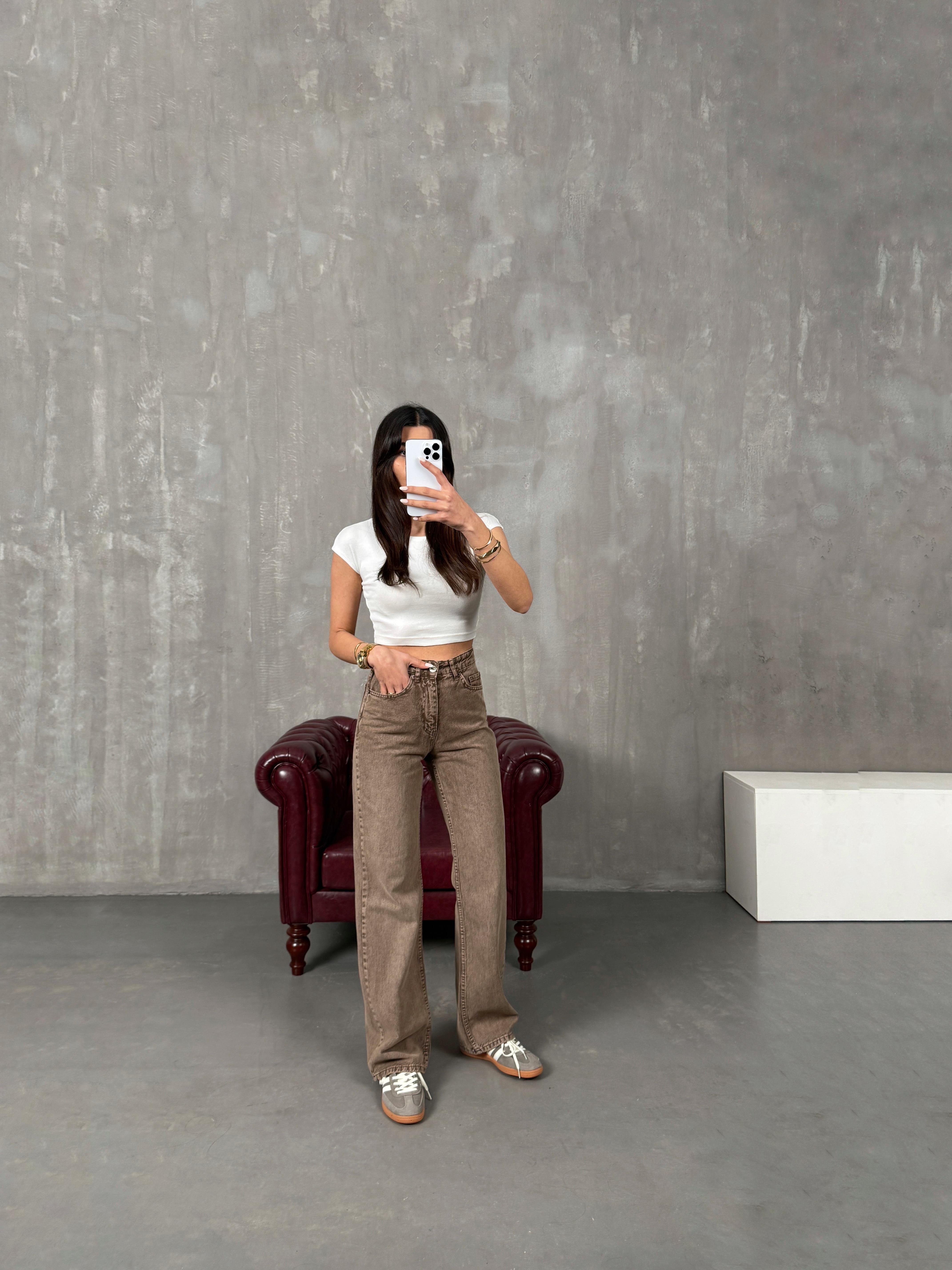 Ricco Yıkamalı Vizon Wide Leg Jean