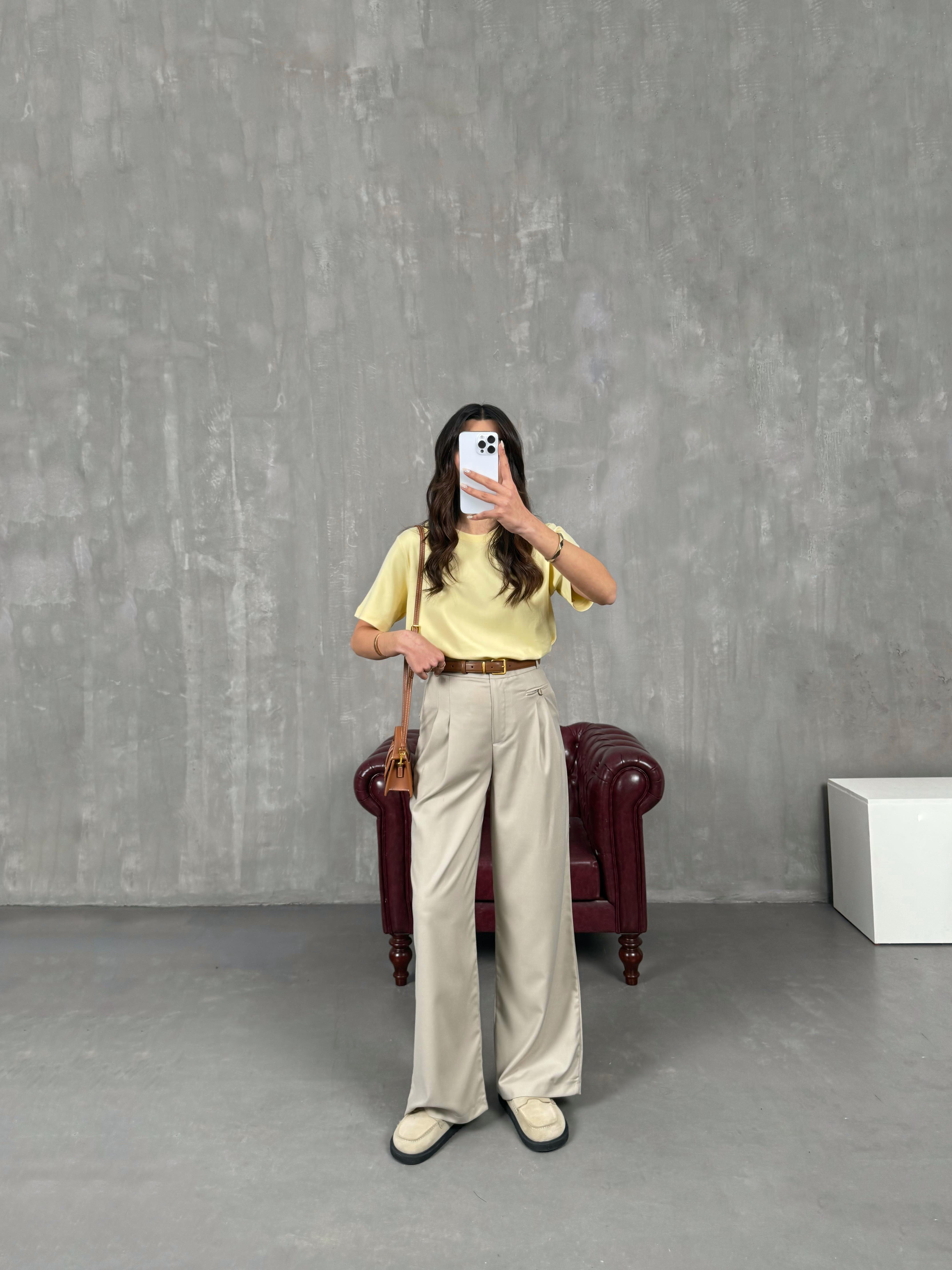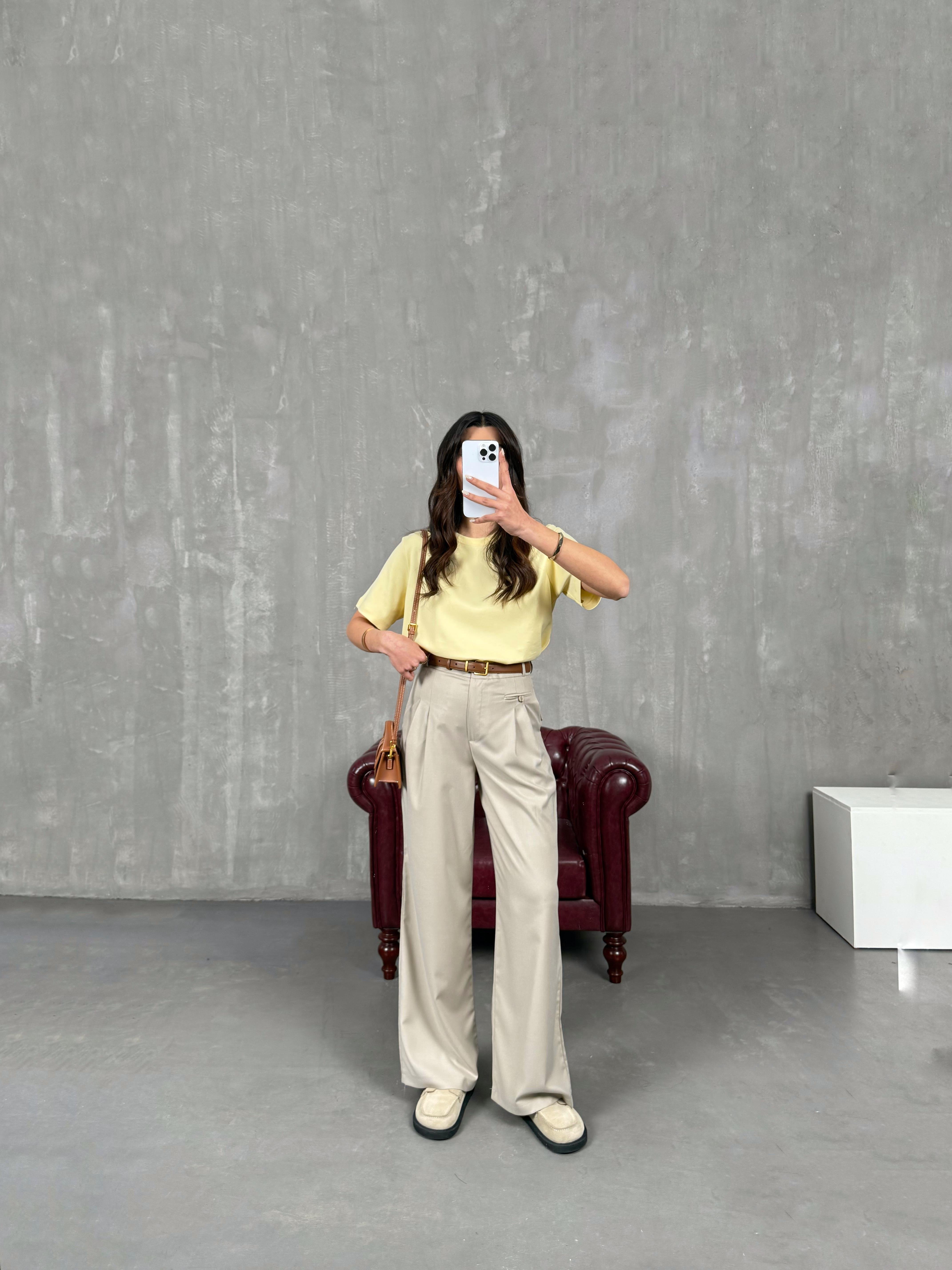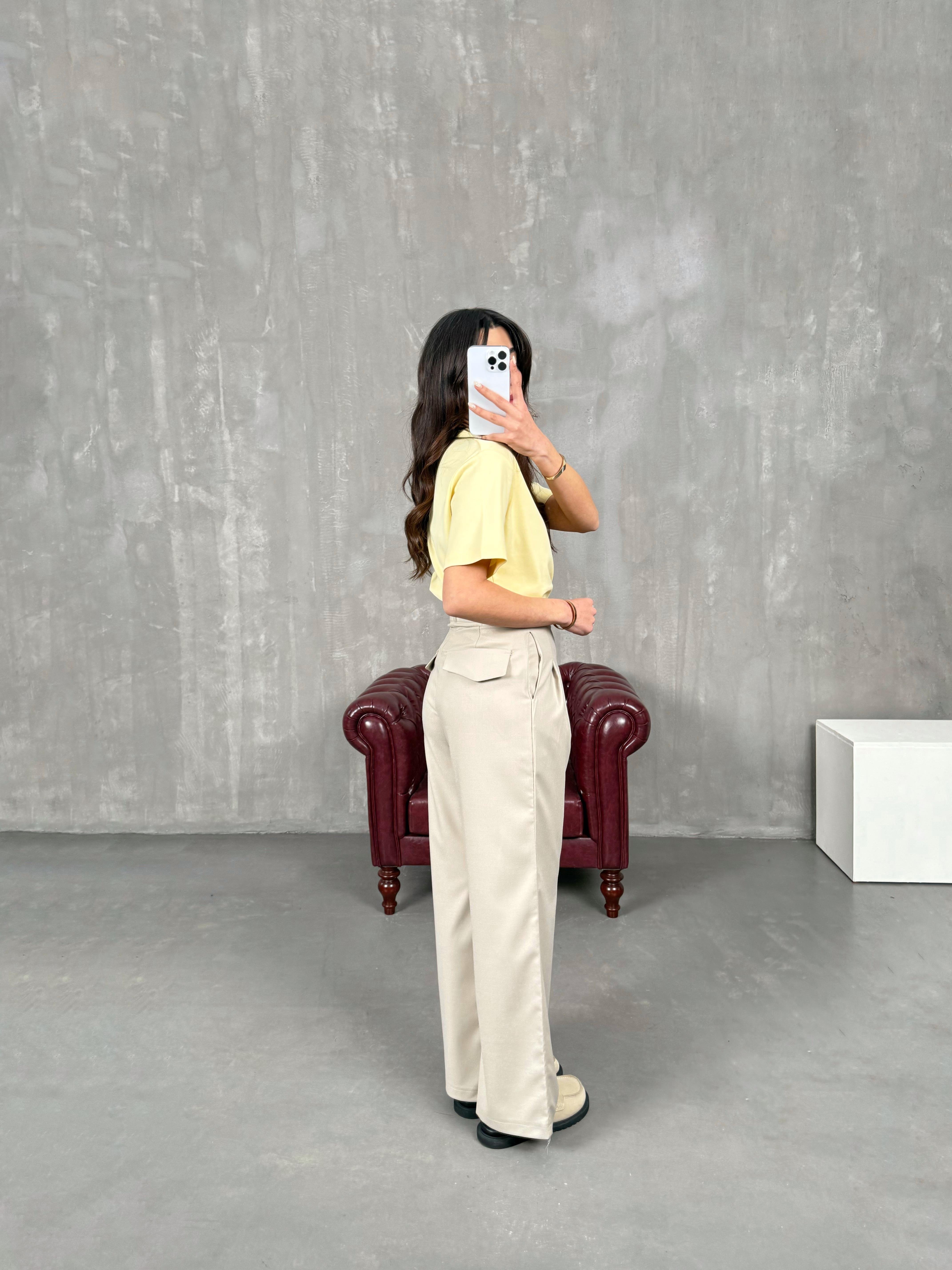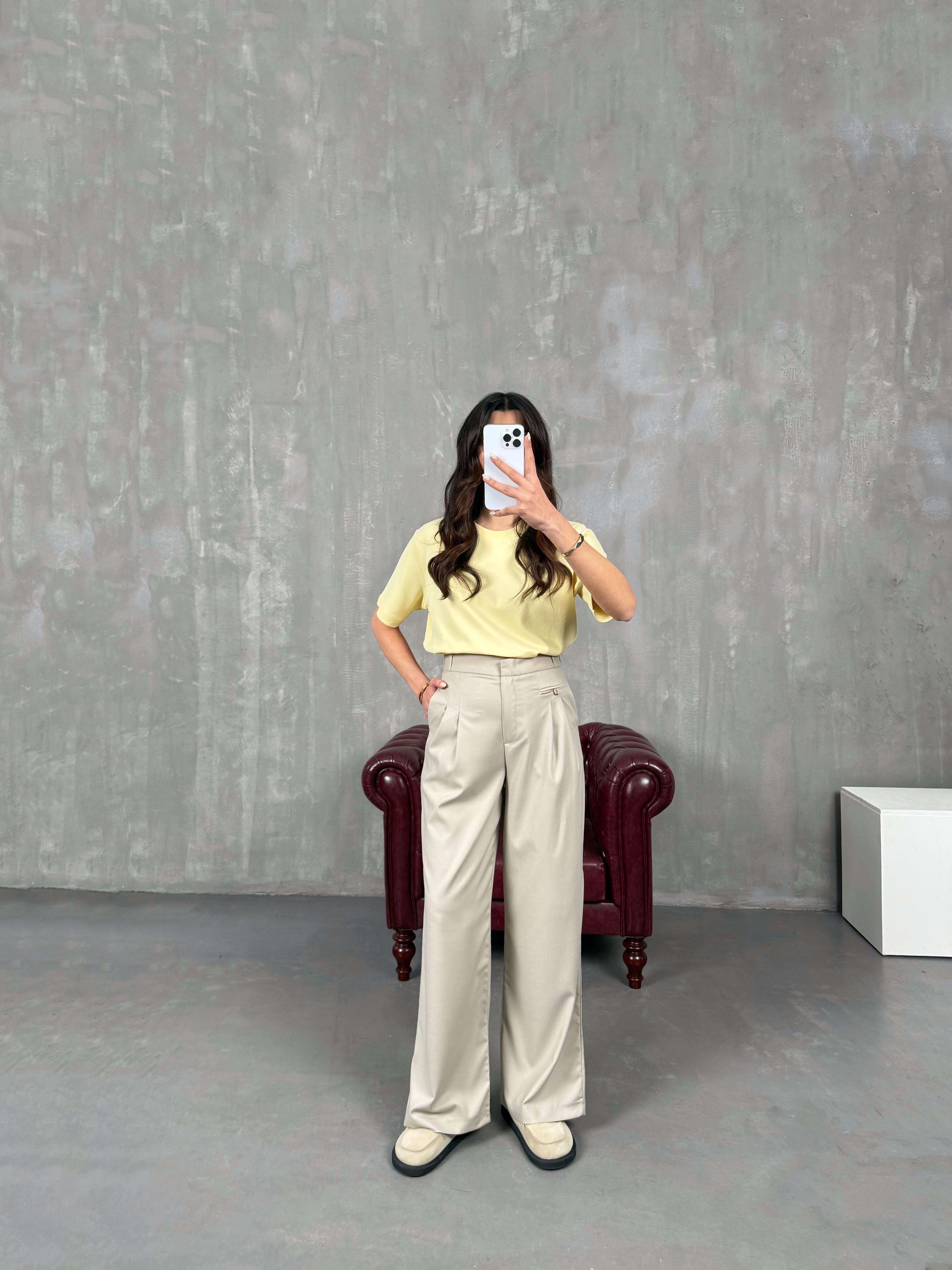 Rigal Taş Ön Düğme Detaylı Kumaş Pantolon
