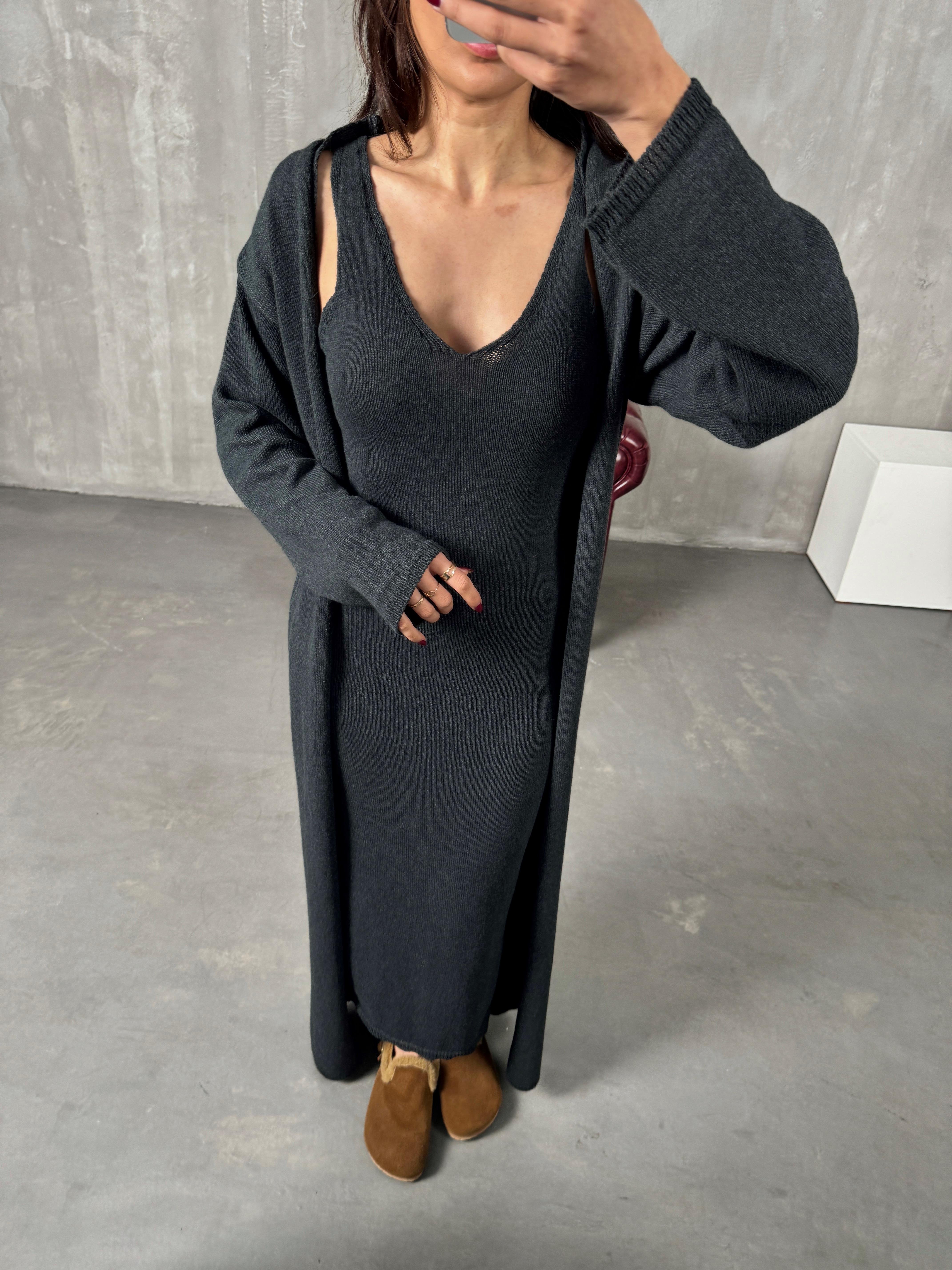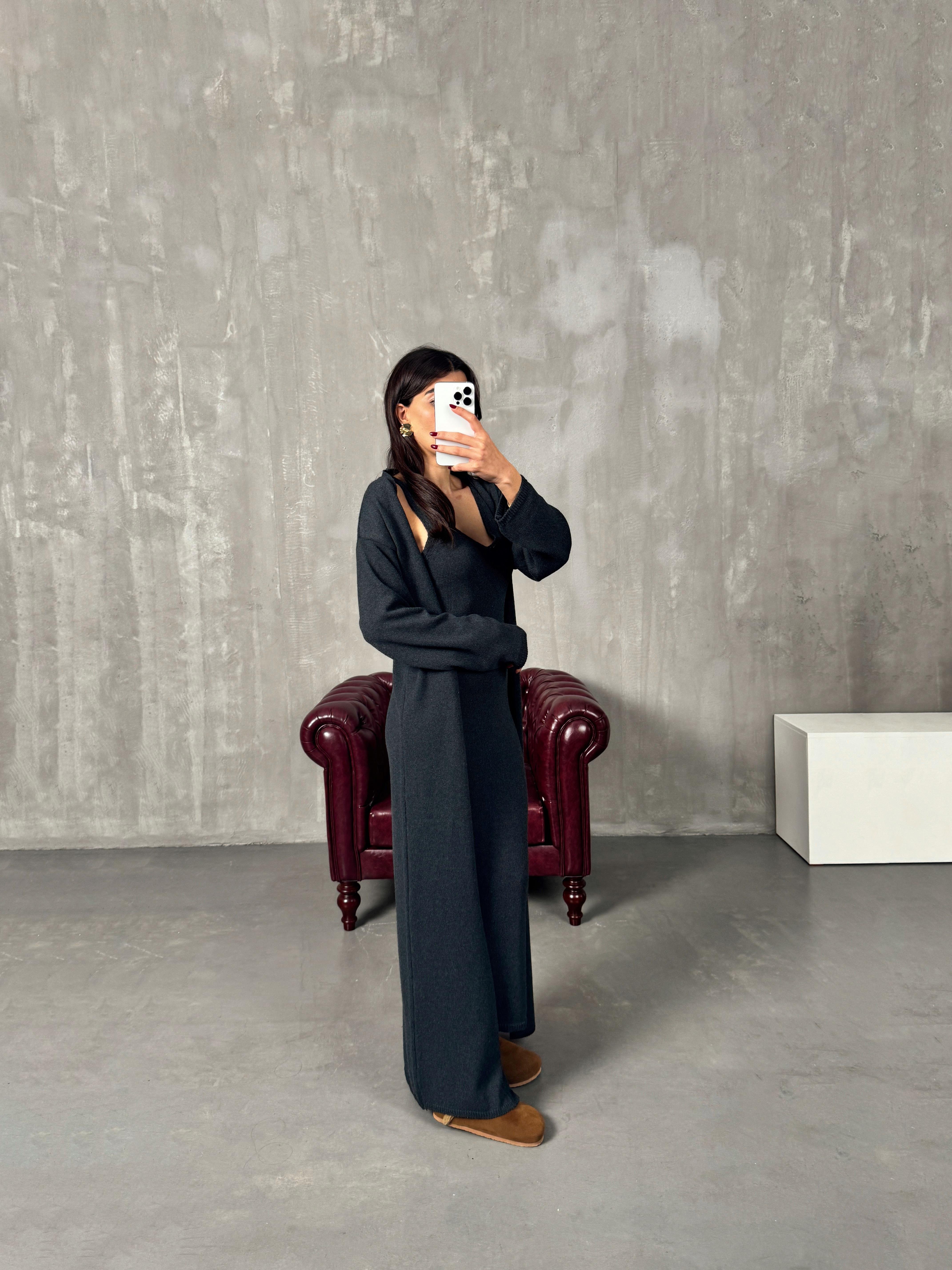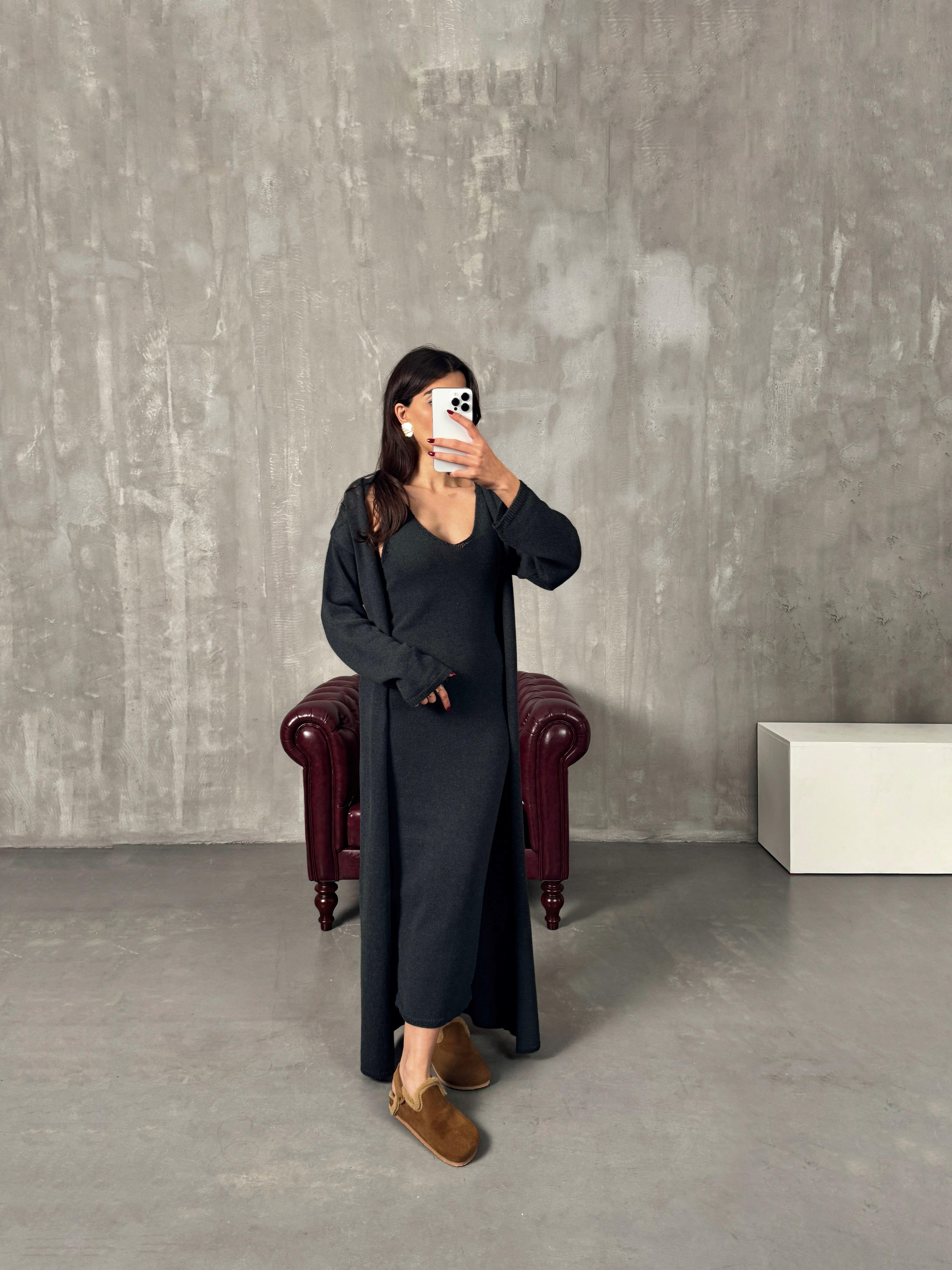Rila Antrasit Hırkalı Triko Elbise İkili Takım