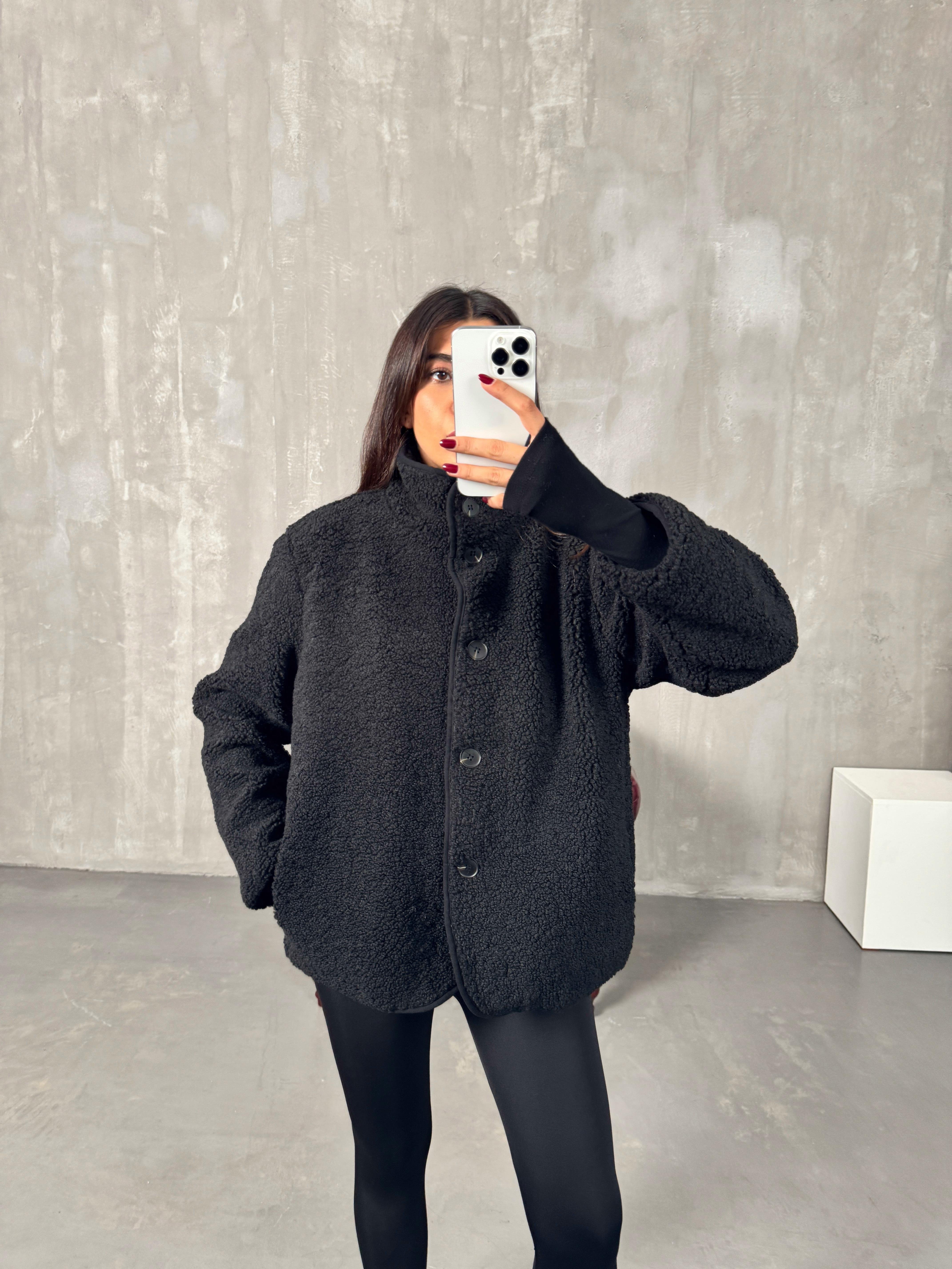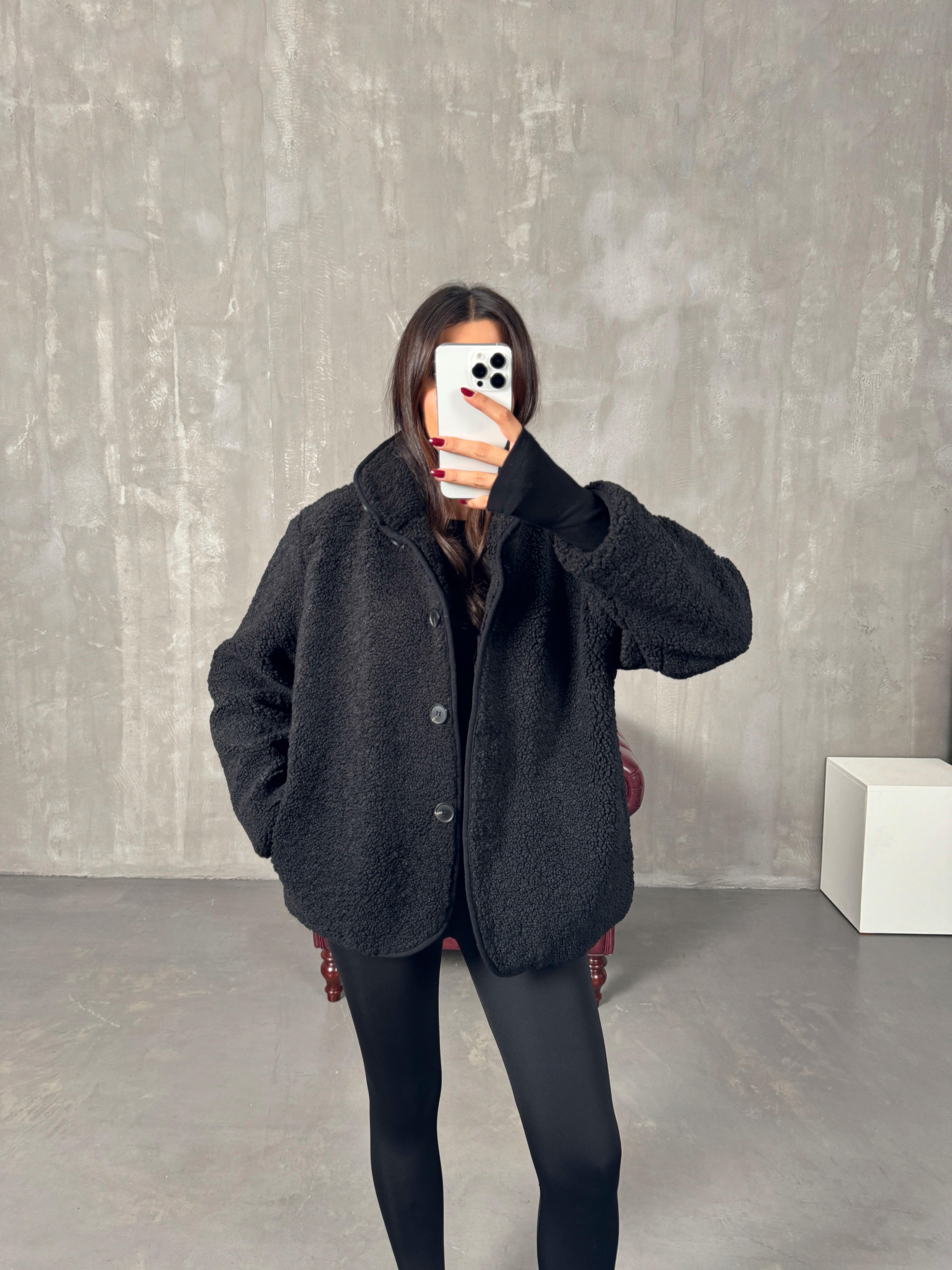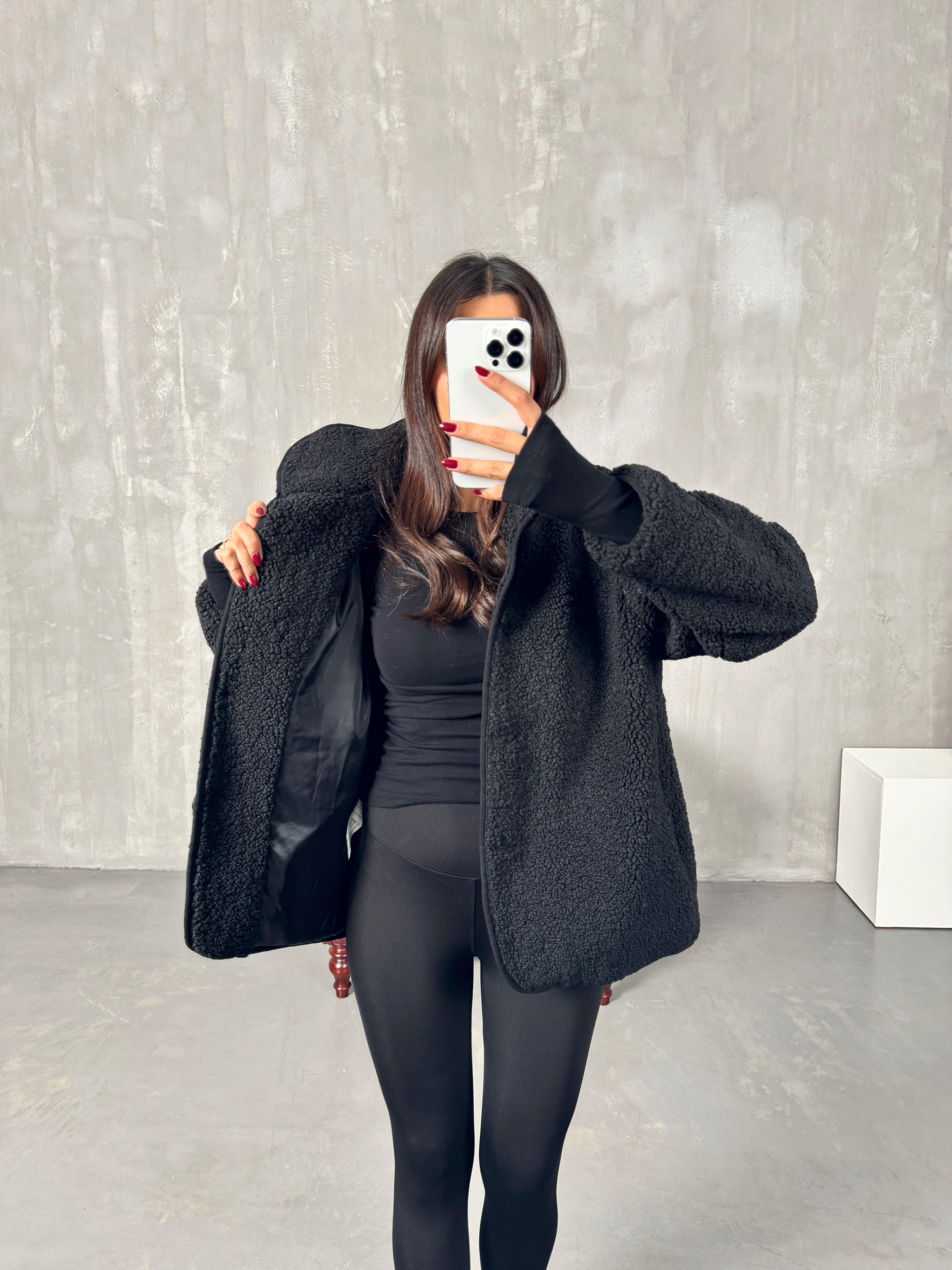 Robert Siyah Astarlı Peluş Orta Boy Ceket