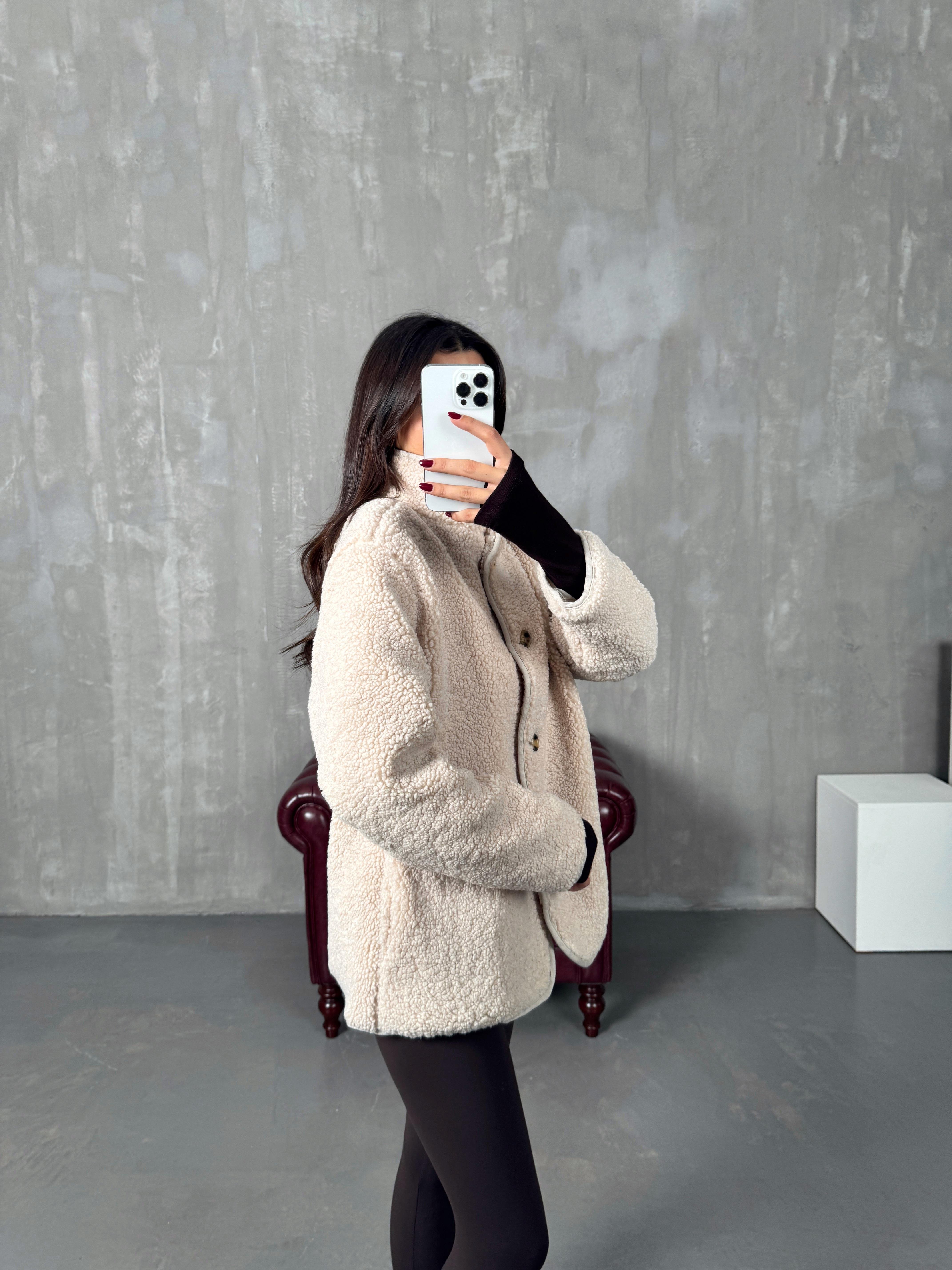 Robert Taş Astarlı Peluş Orta Boy Ceket