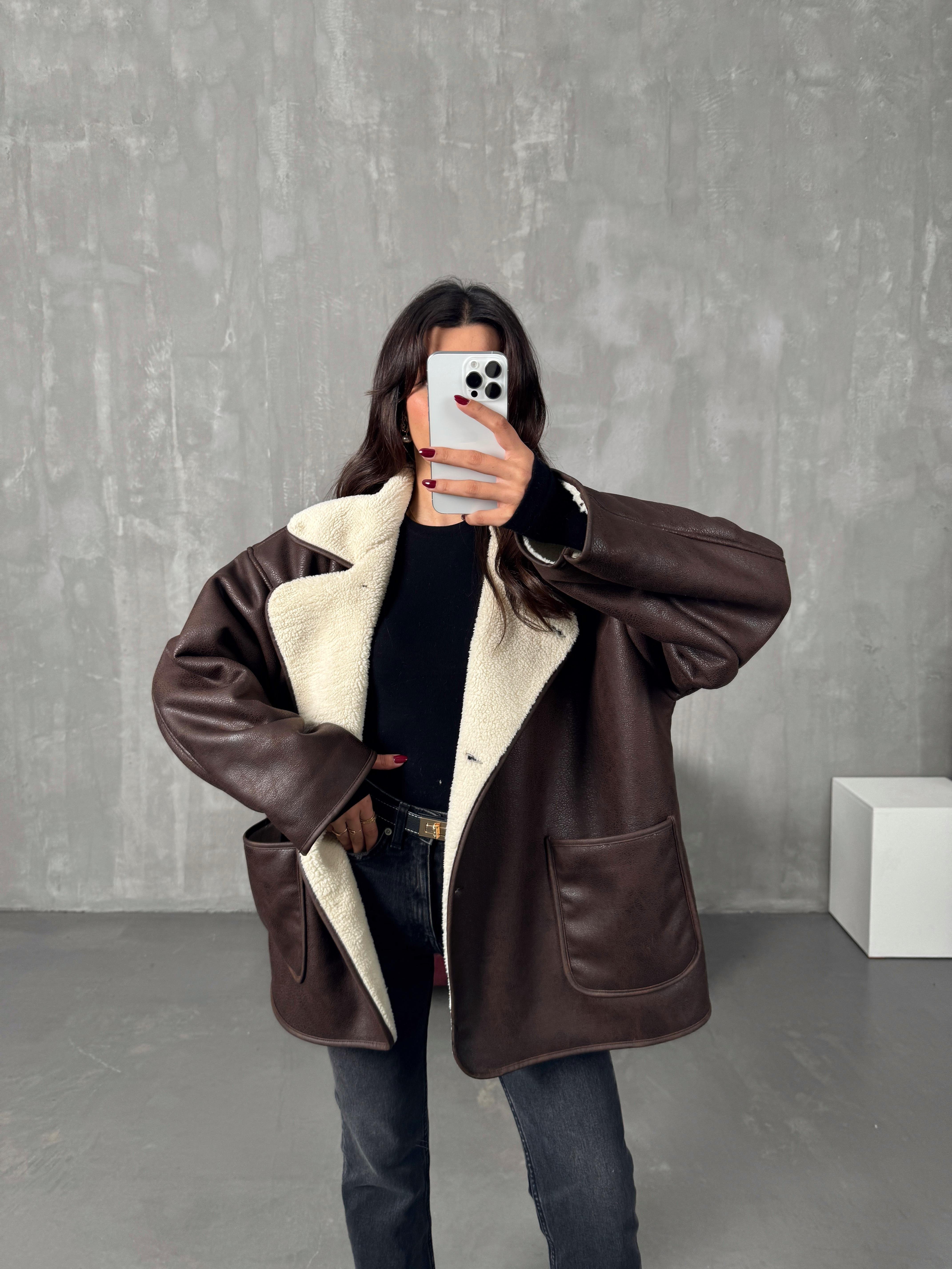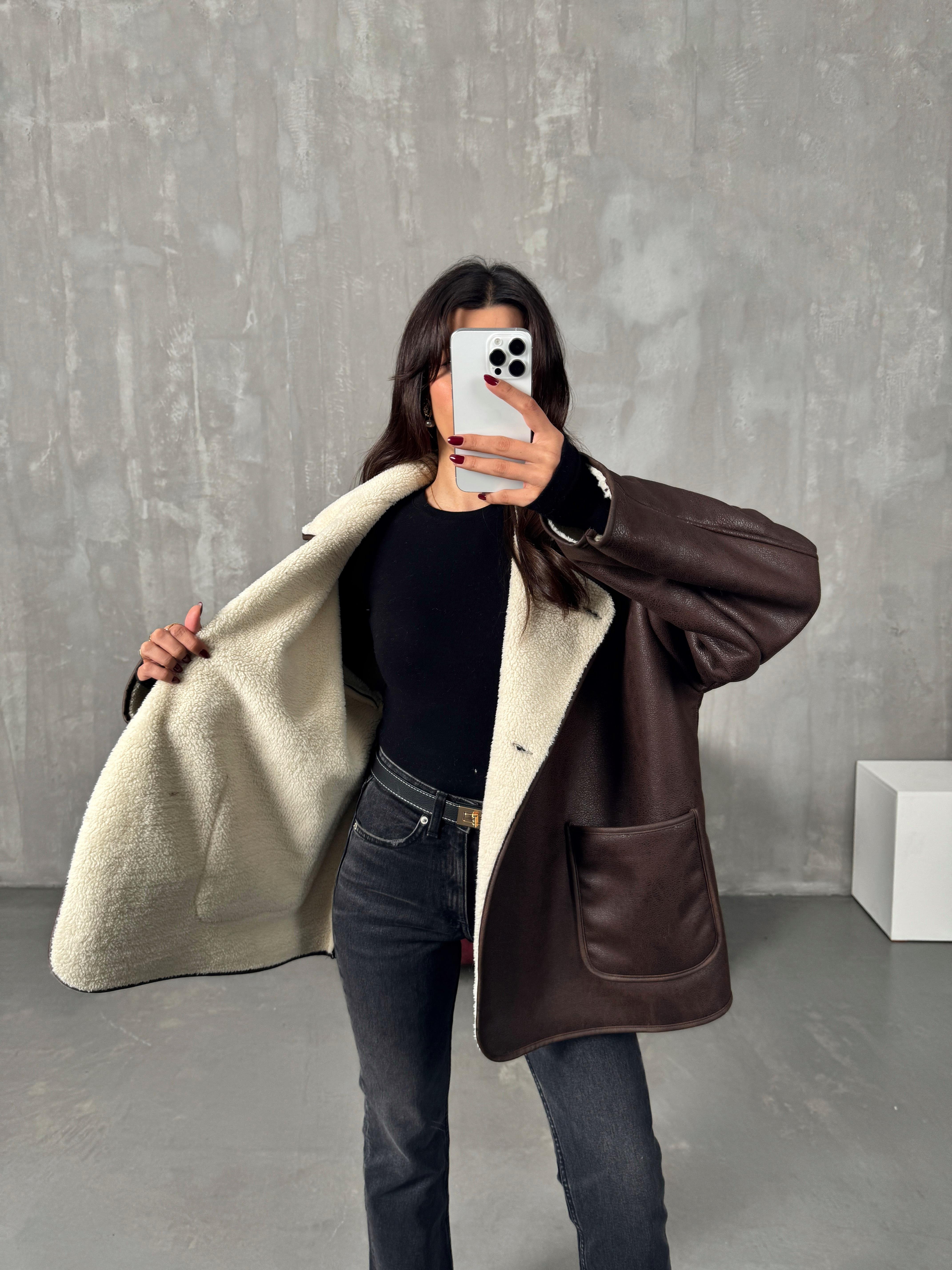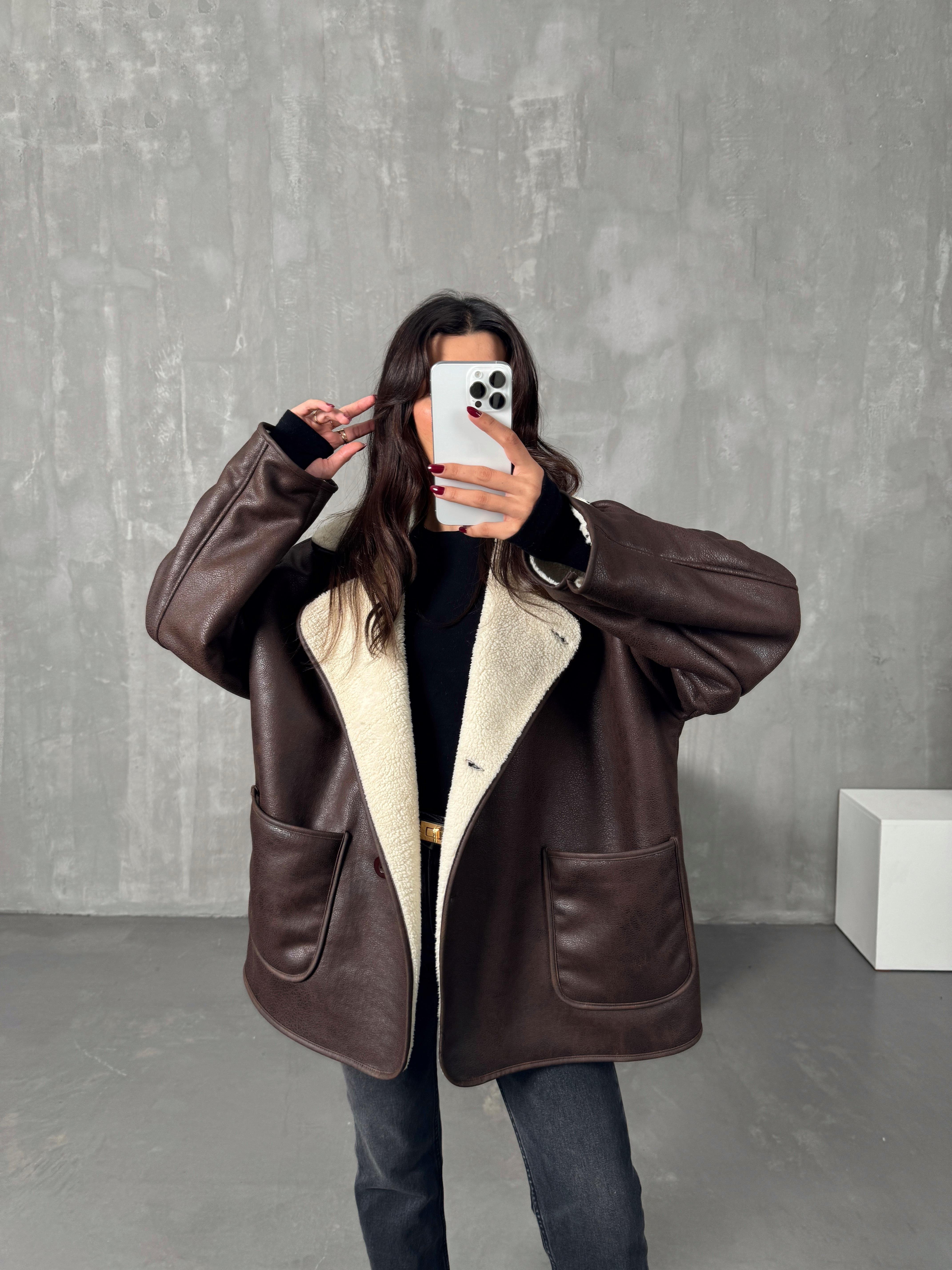 Rosen Kahve ZR Model Taş Kürklü Ceket