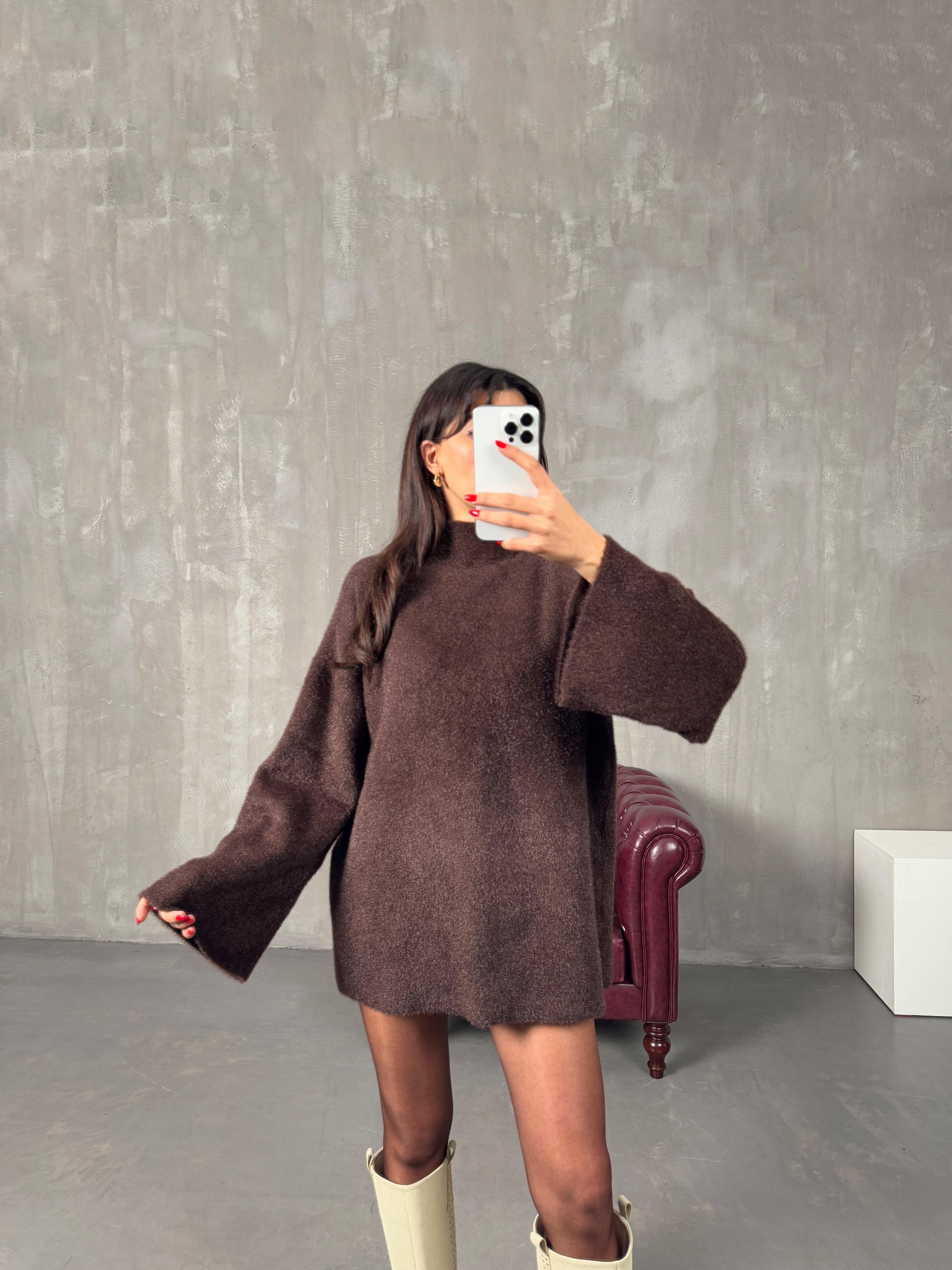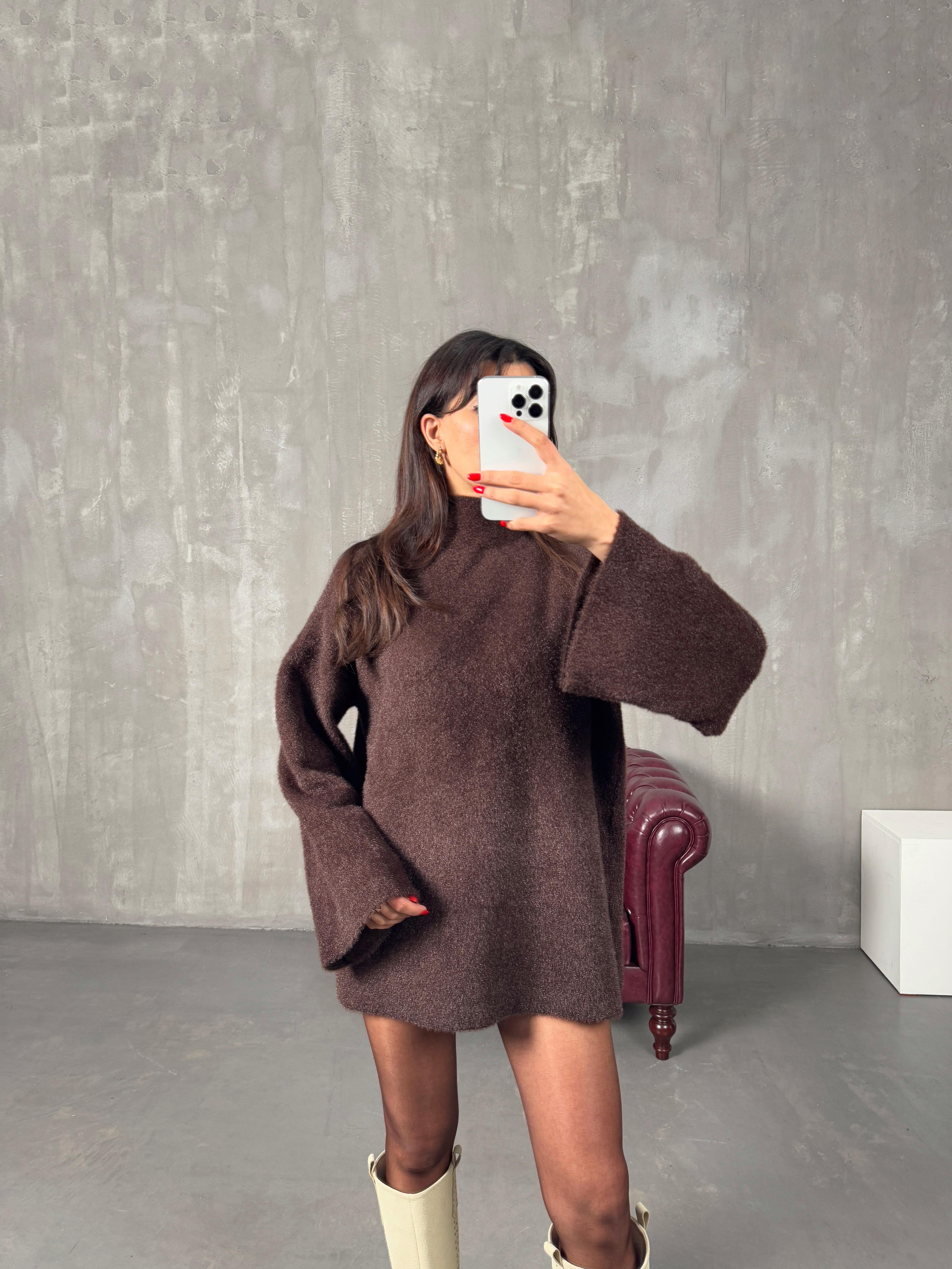 Roven Acı Kahve Yarım Balıkçı Yaka Yumuşak Triko Kazak