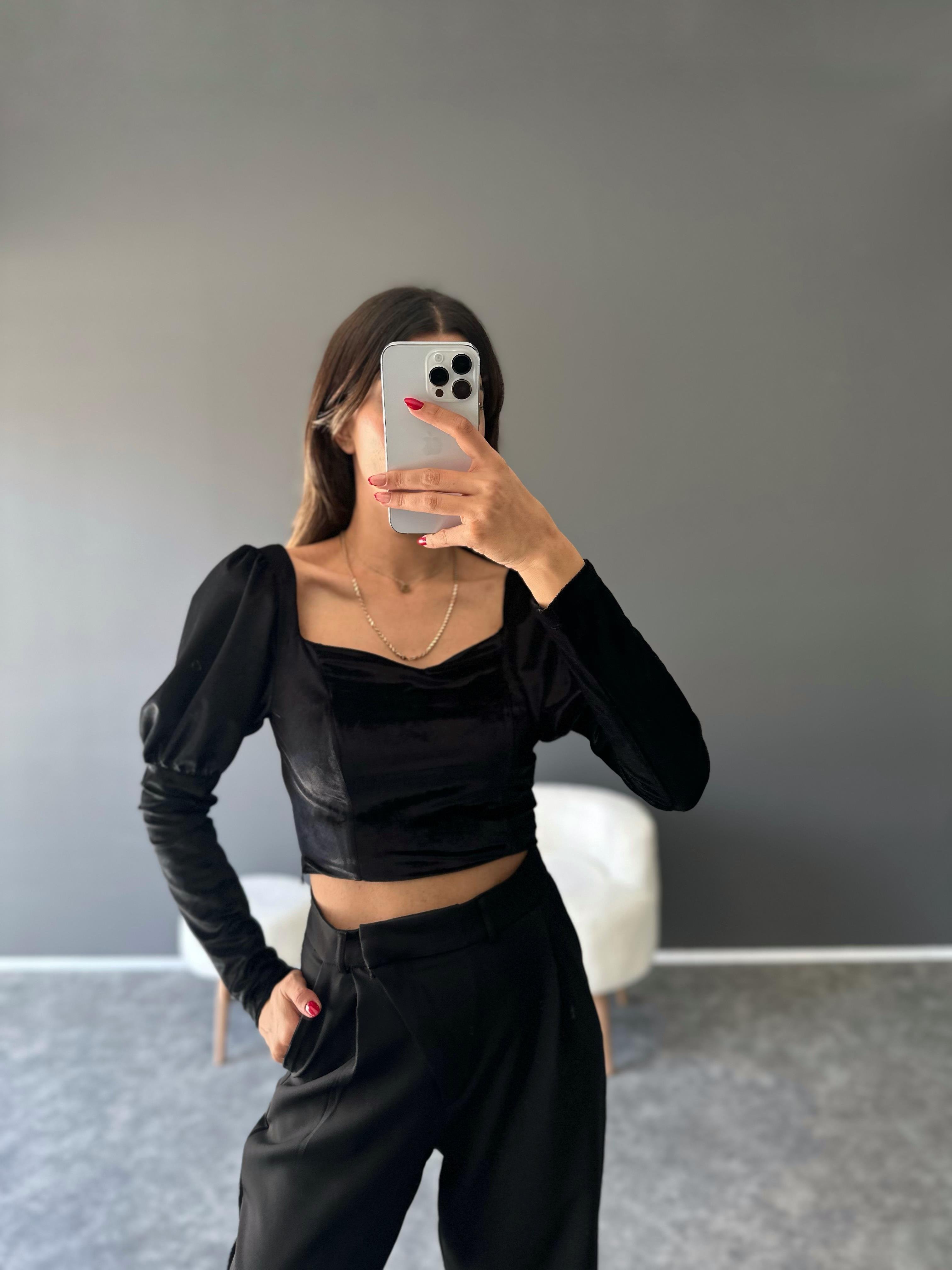 RY Siyah Kadife Crop