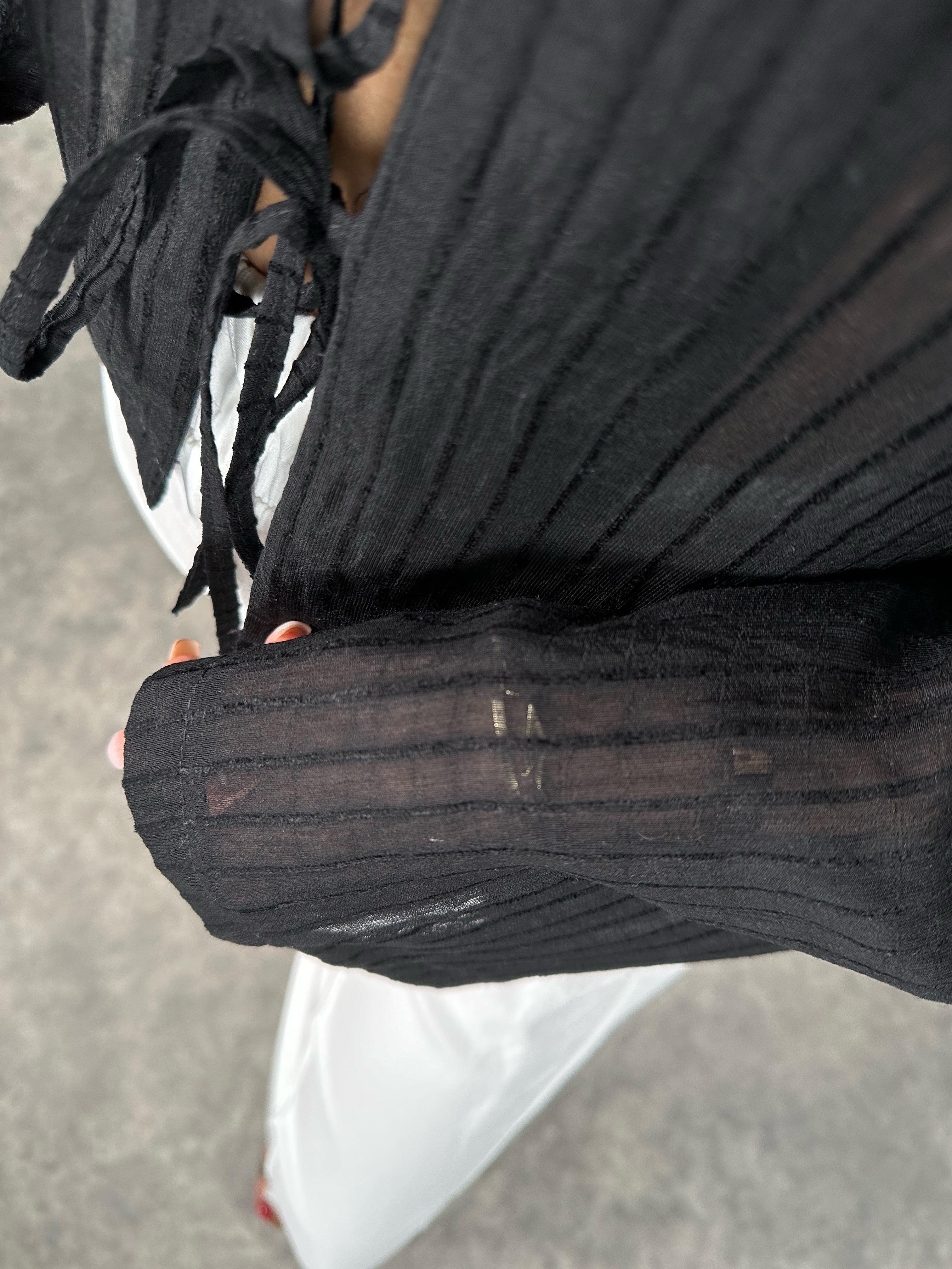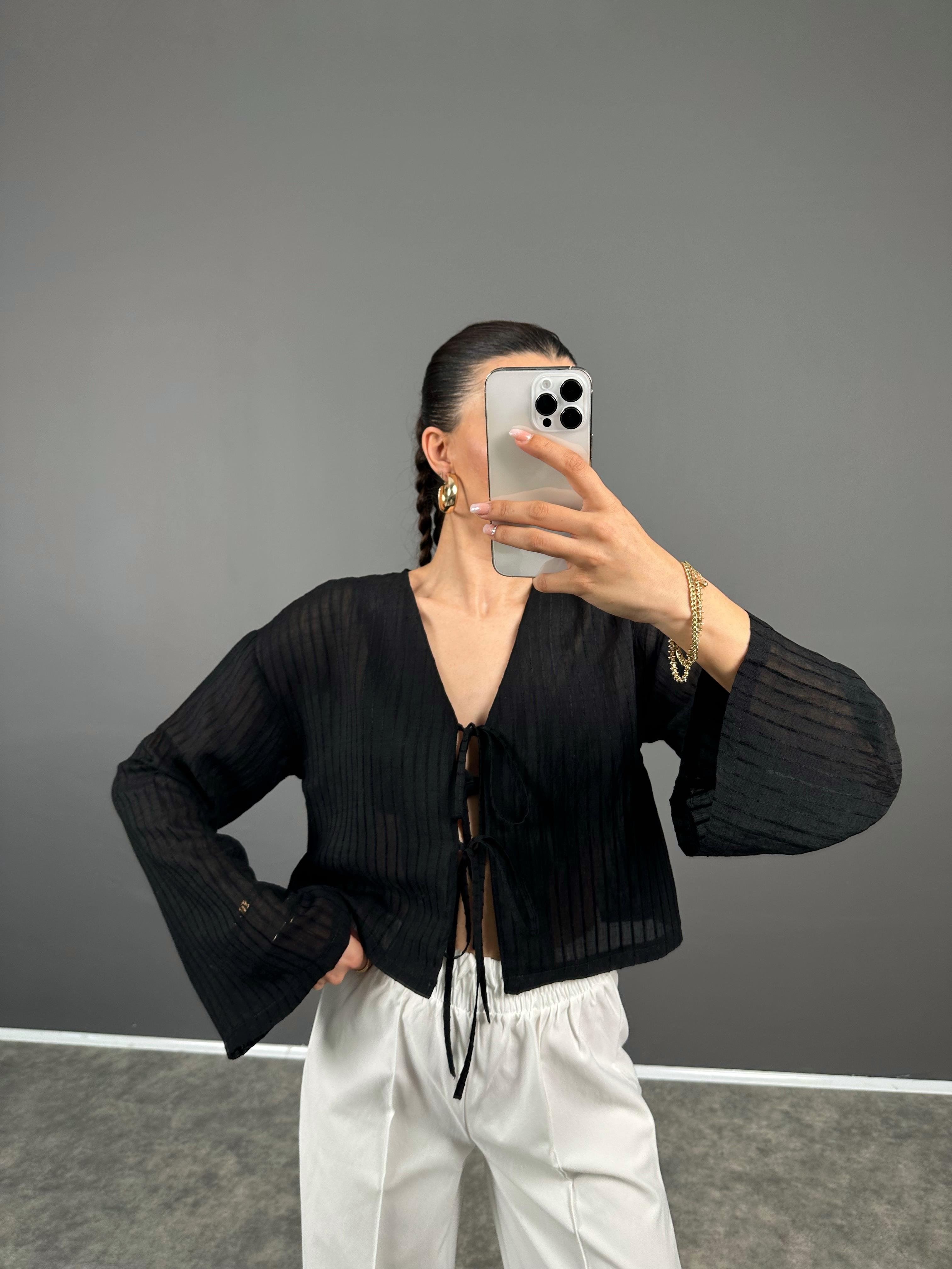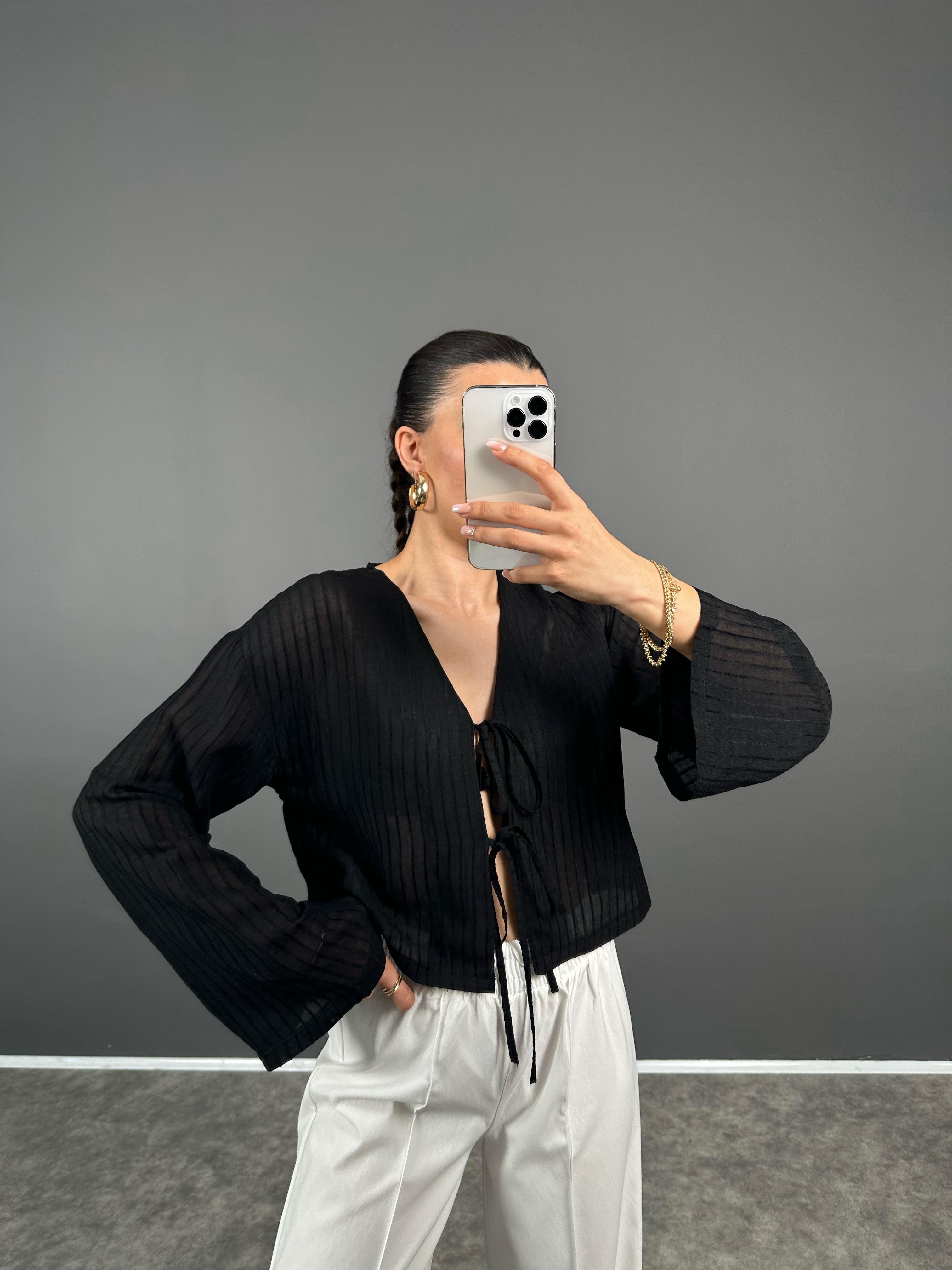 RY Siyah Transparan Önden Bağlamalı Bluz