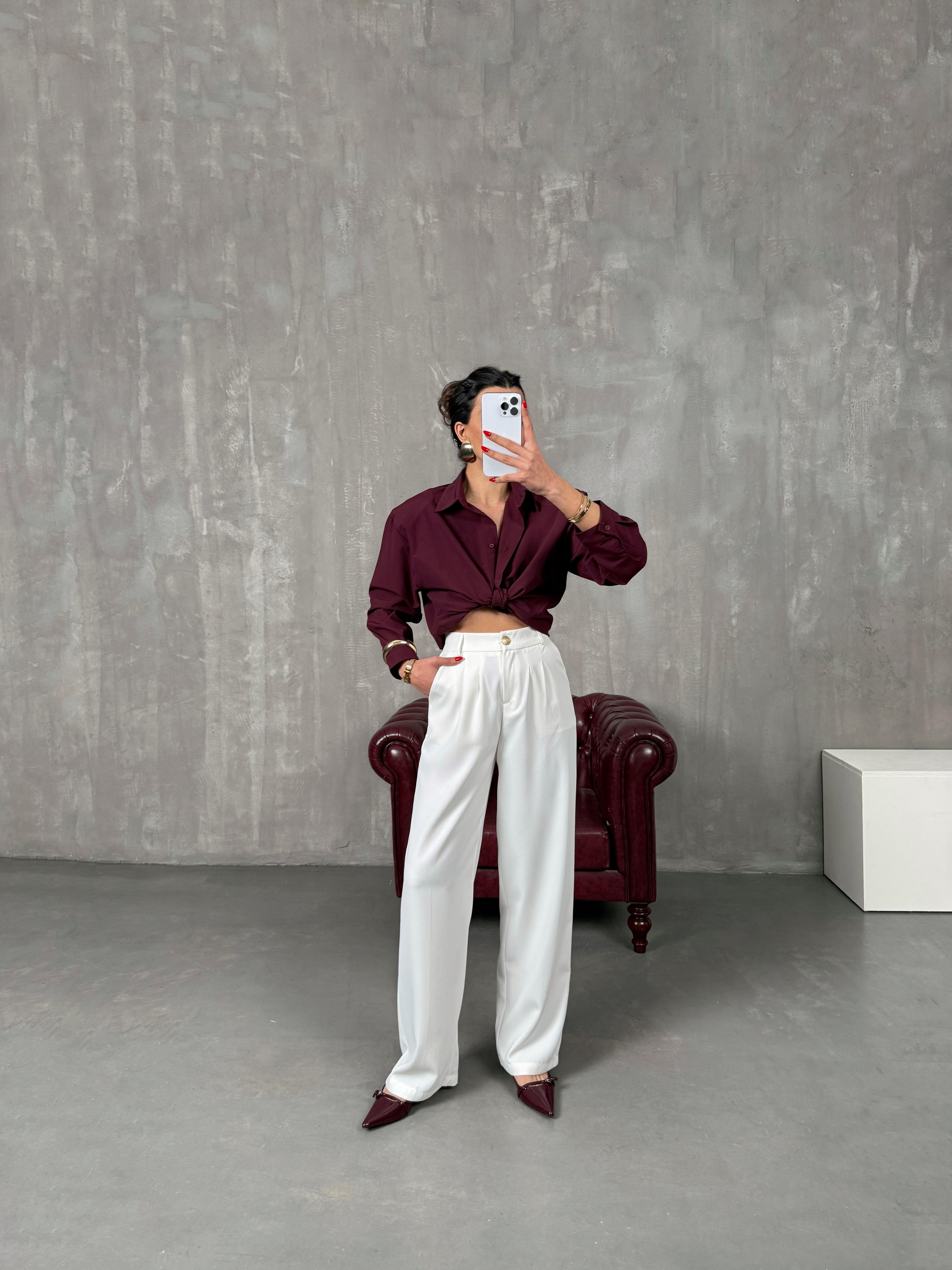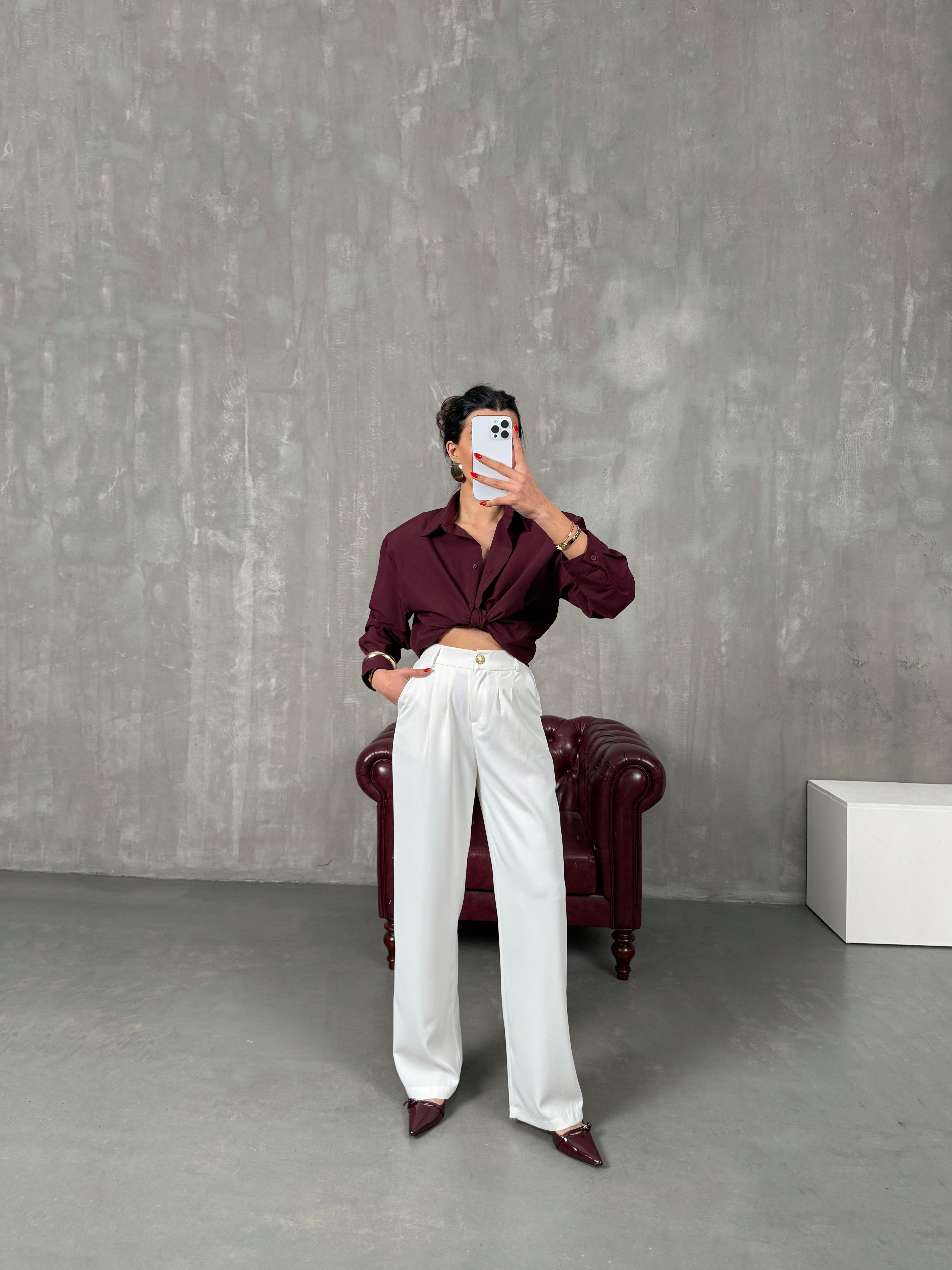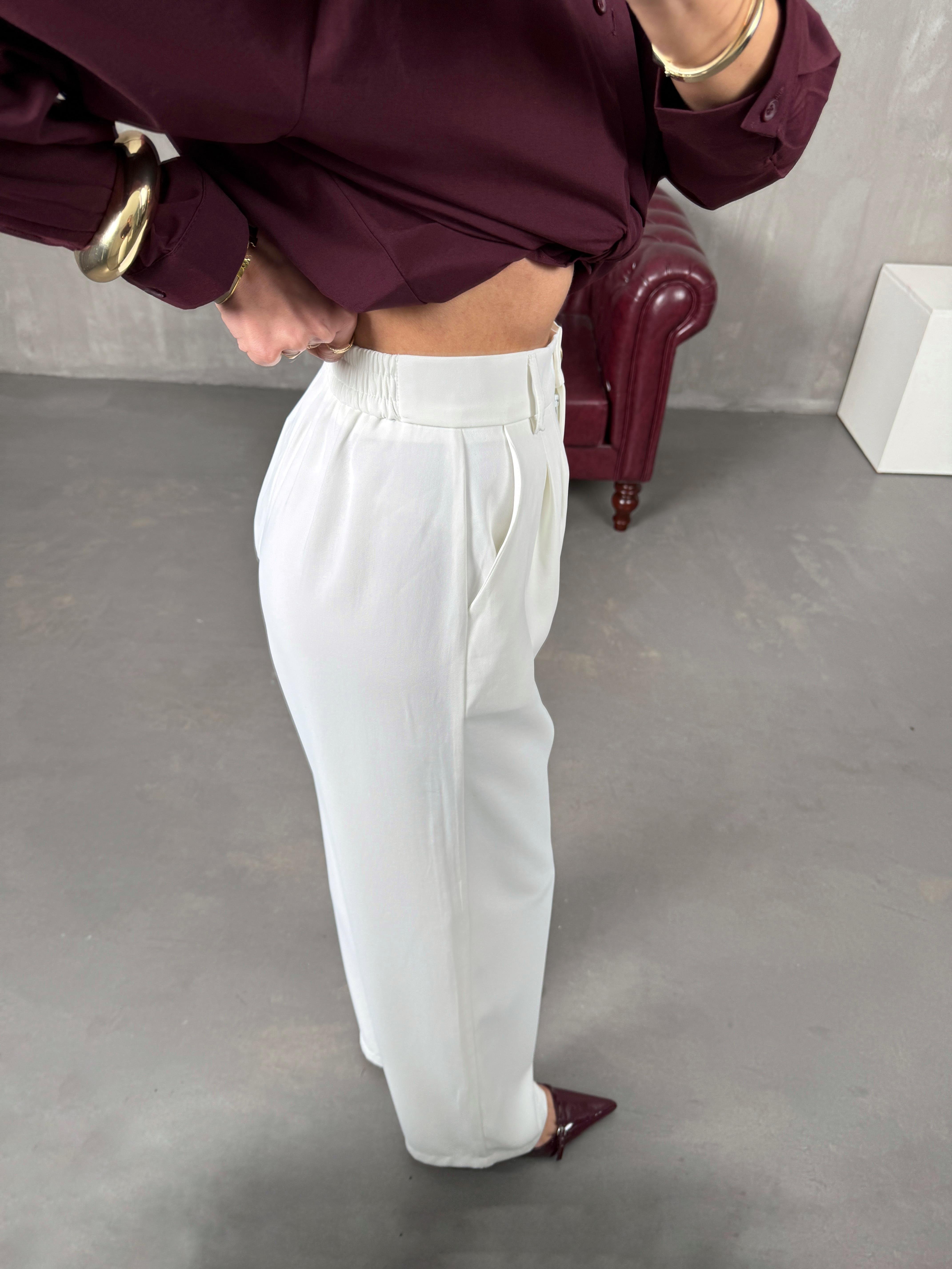 ساغورا بنطال أبيض بريميوم مع جيب وخصر مطاطي
