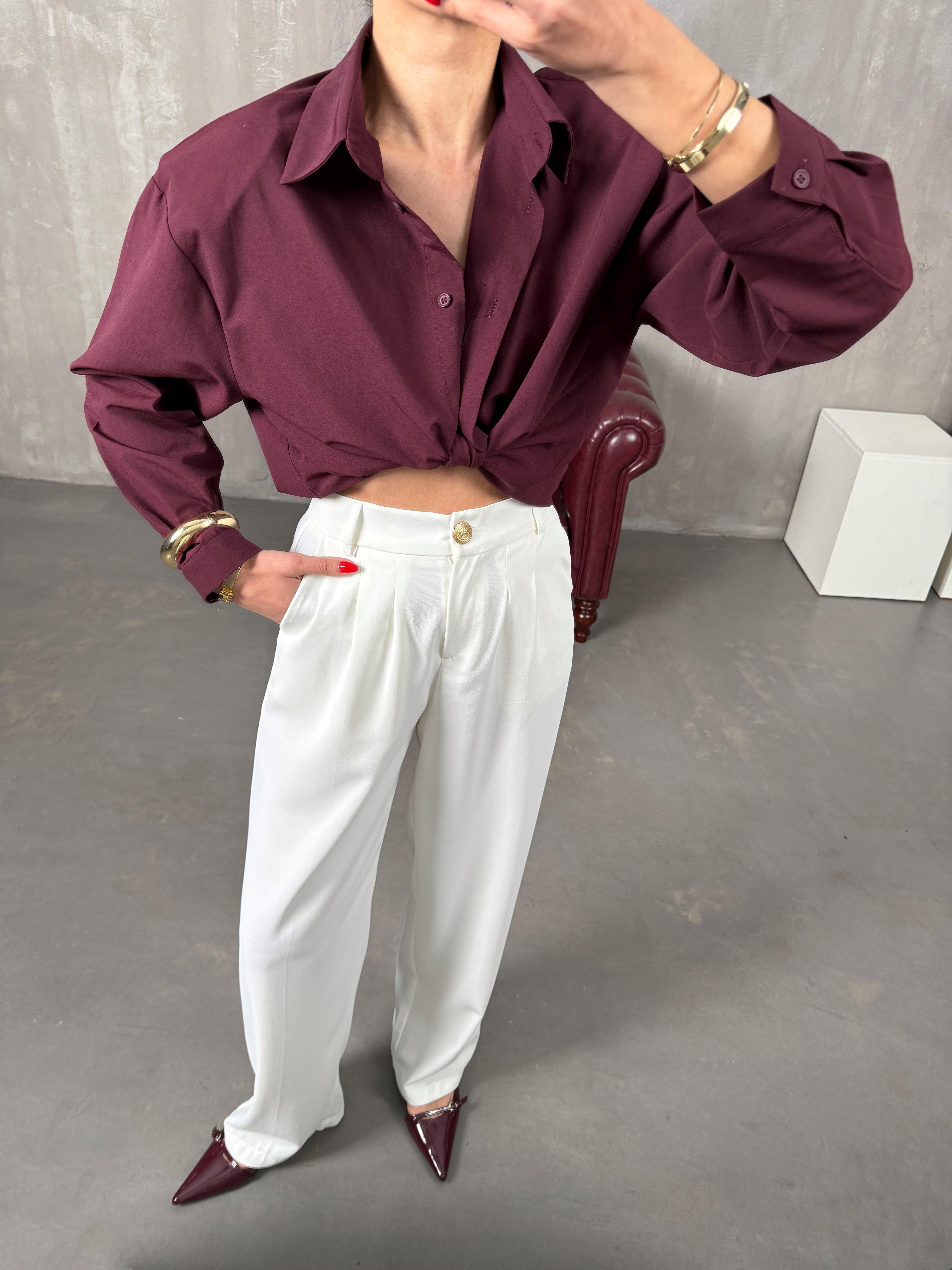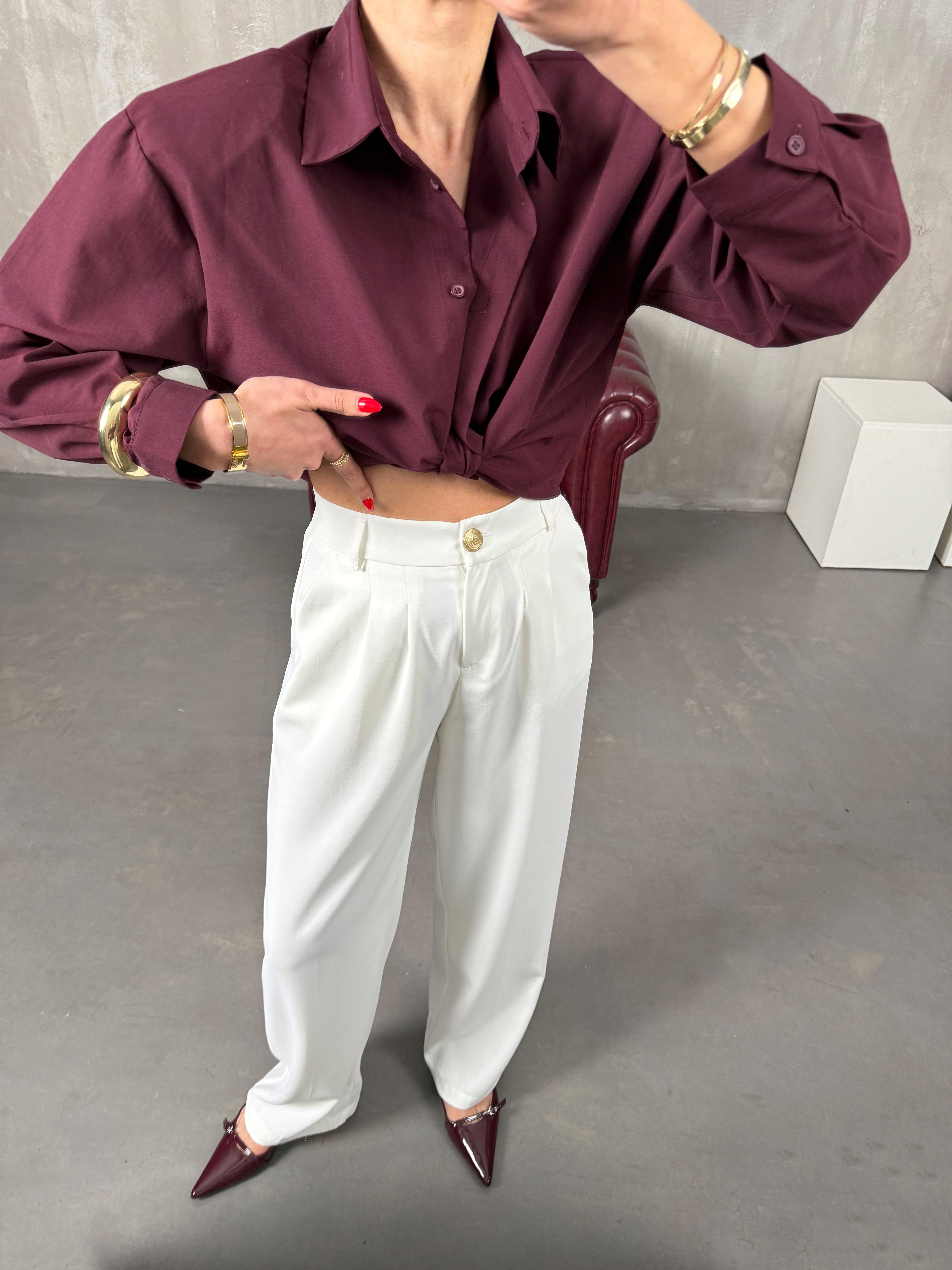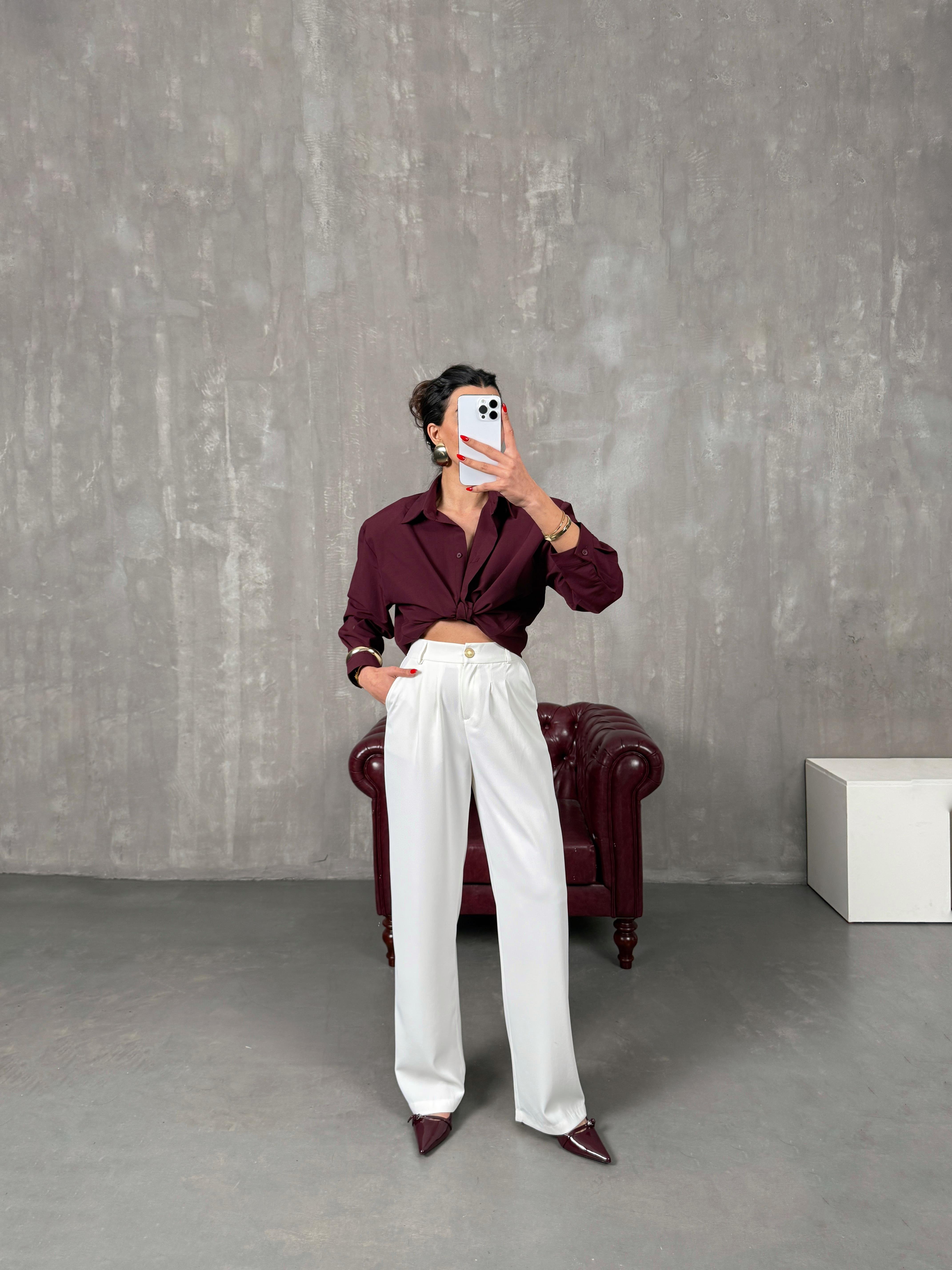 ساغورا بنطال أبيض بريميوم مع جيب وخصر مطاطي