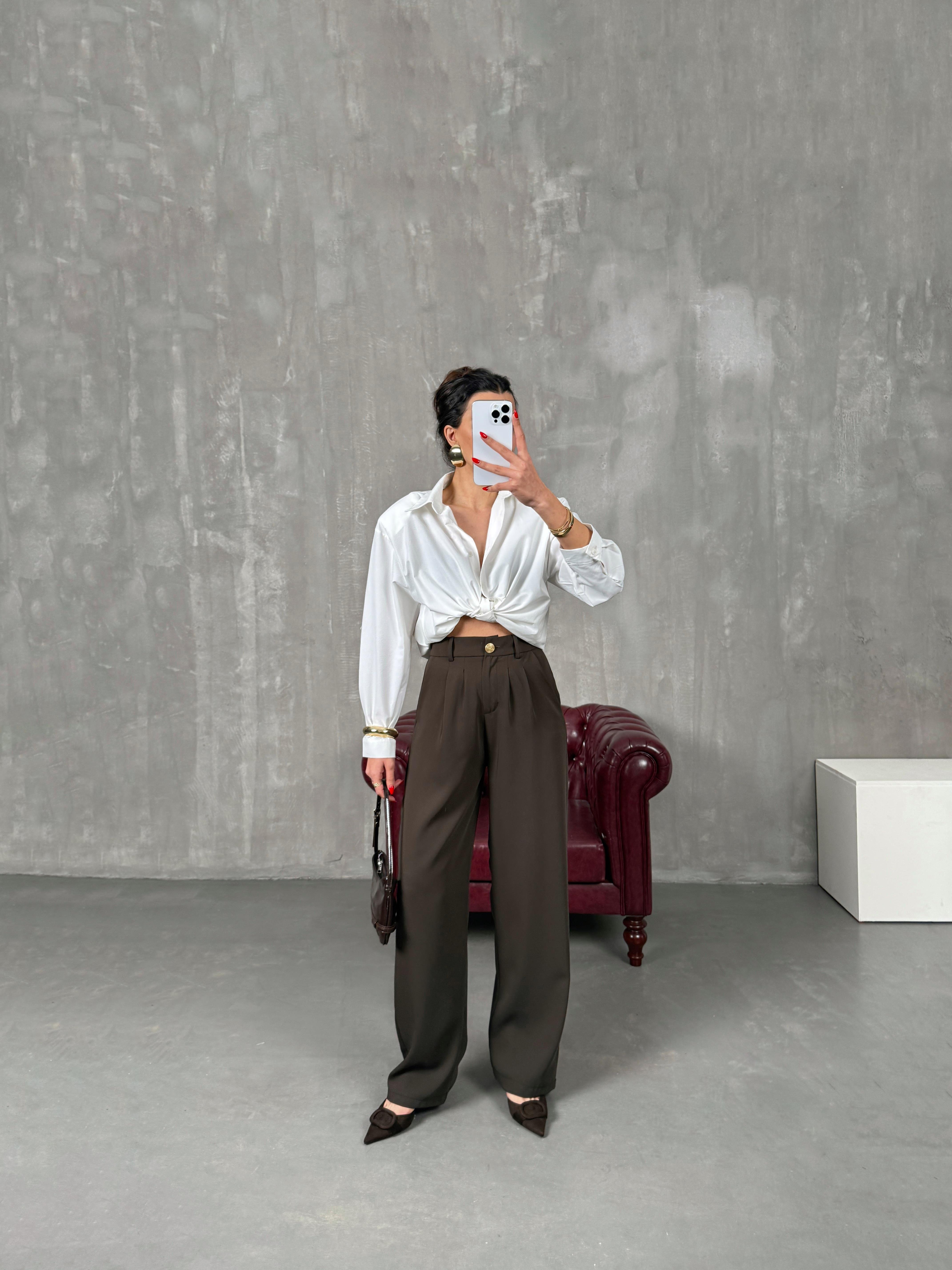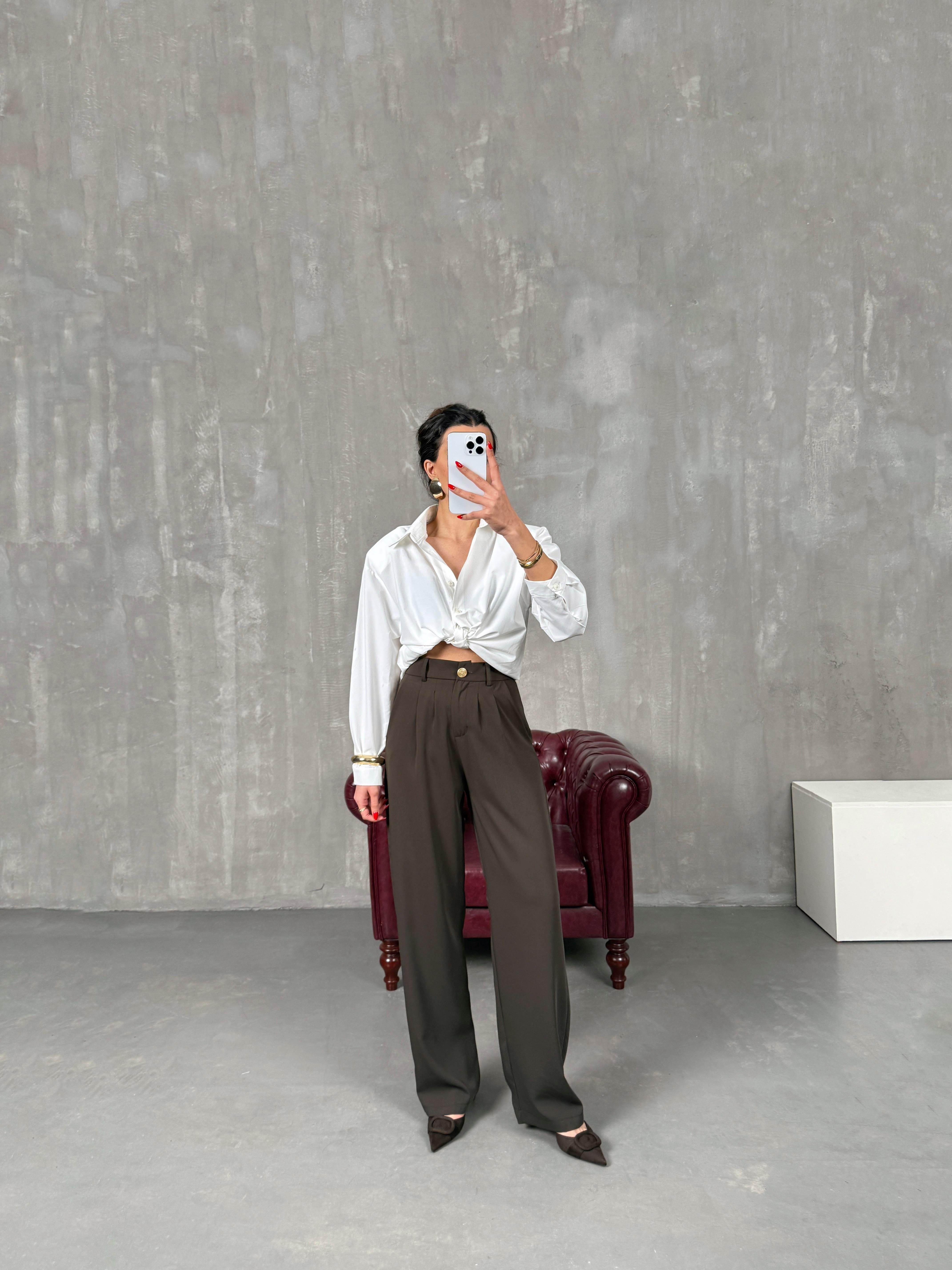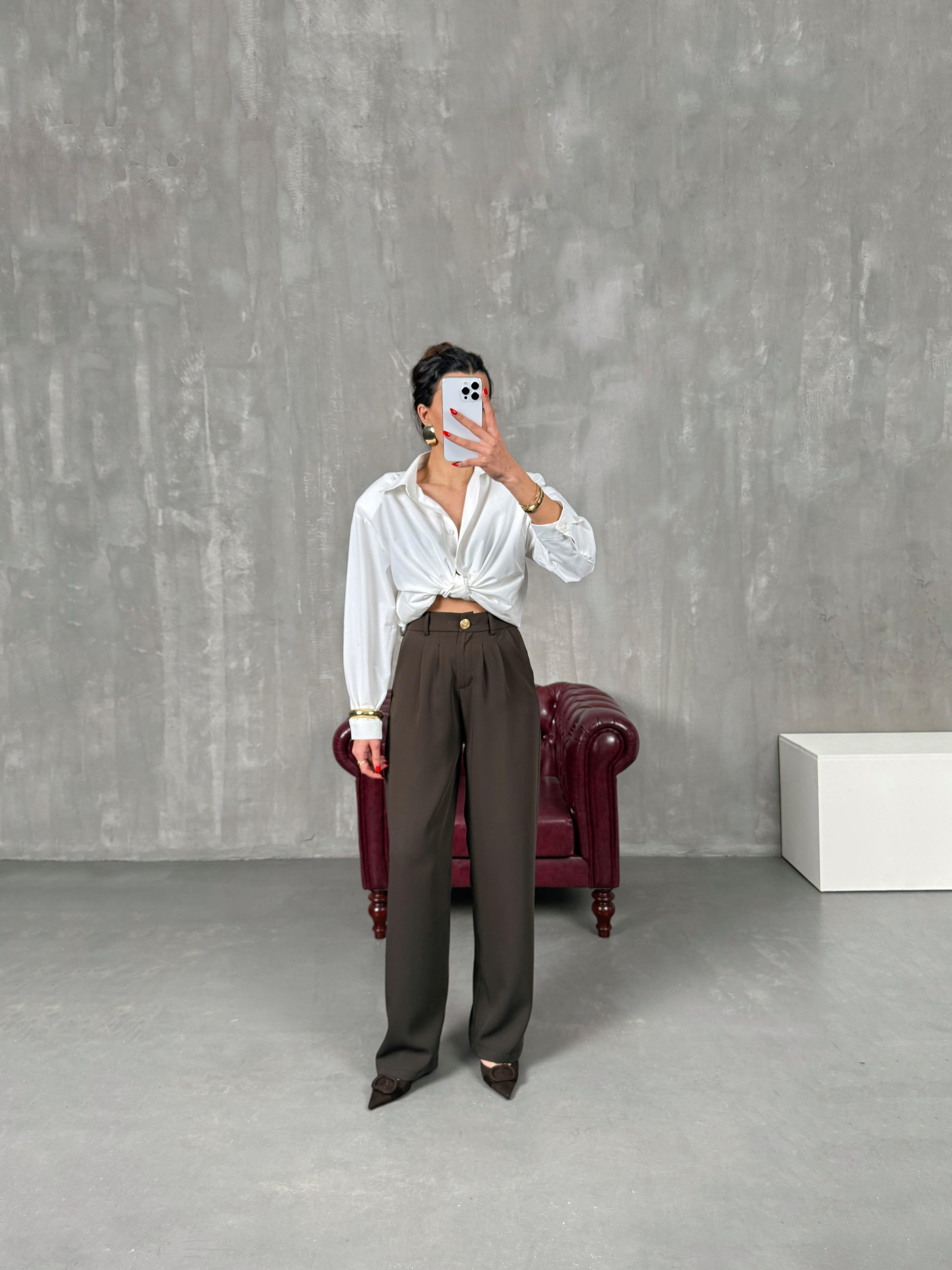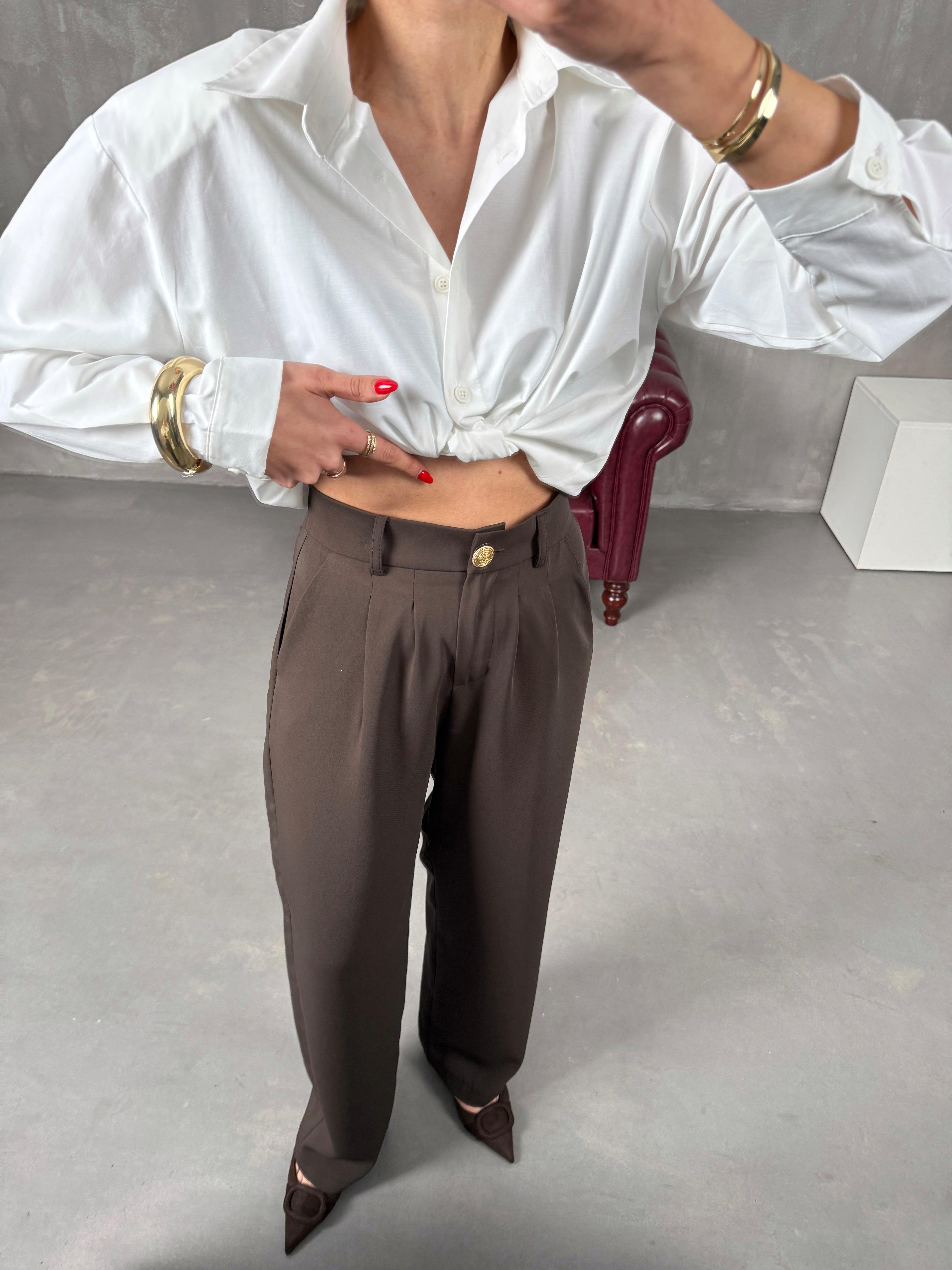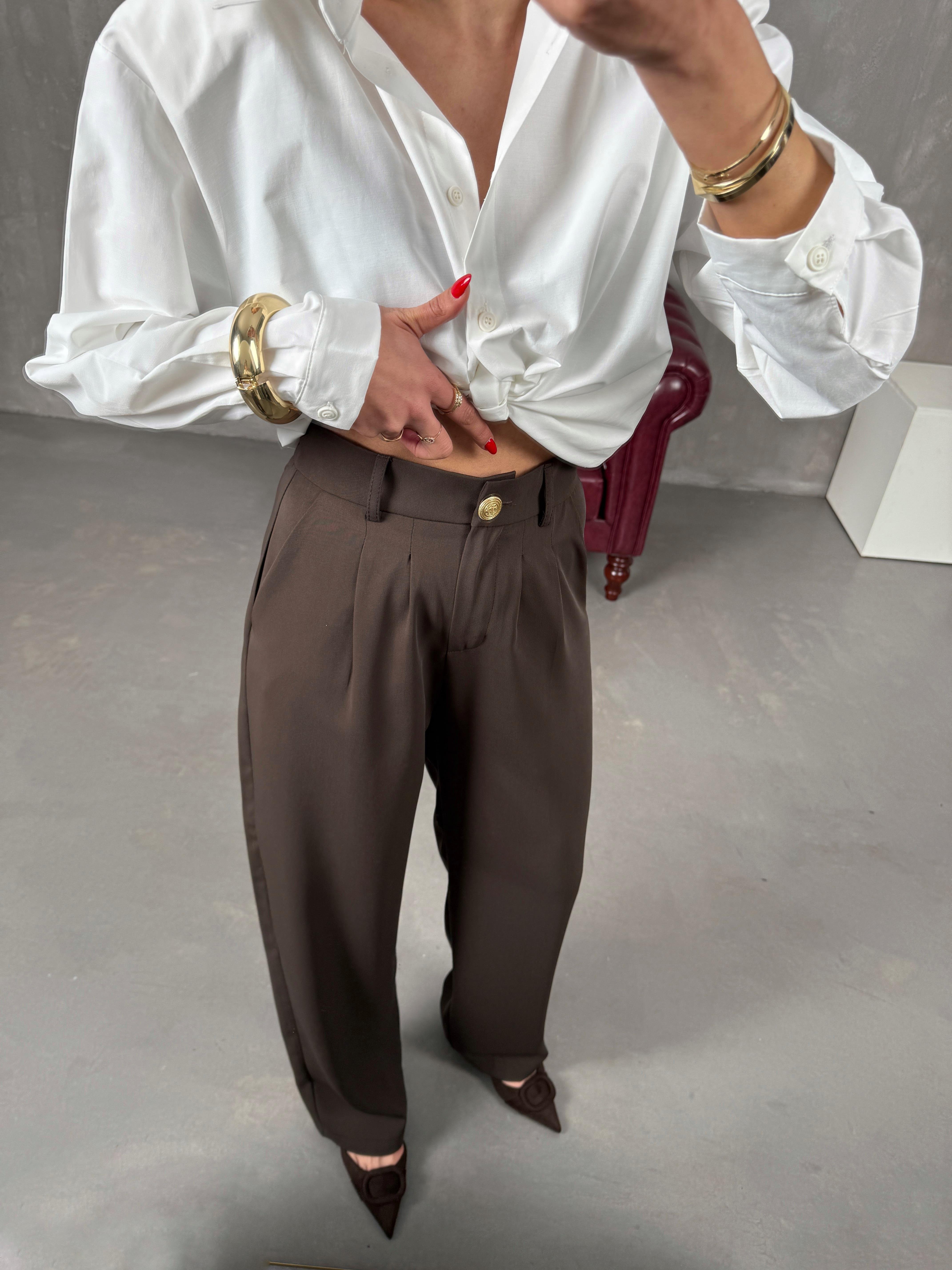 ساغورا بنطال بني بريميوم مع جيب وخصر مطاطي