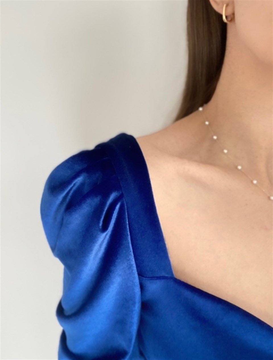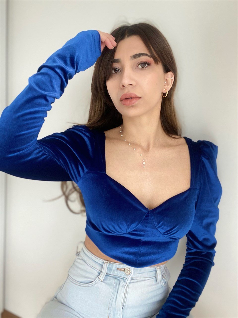 Saks Mavisi Kadife Crop Bluz