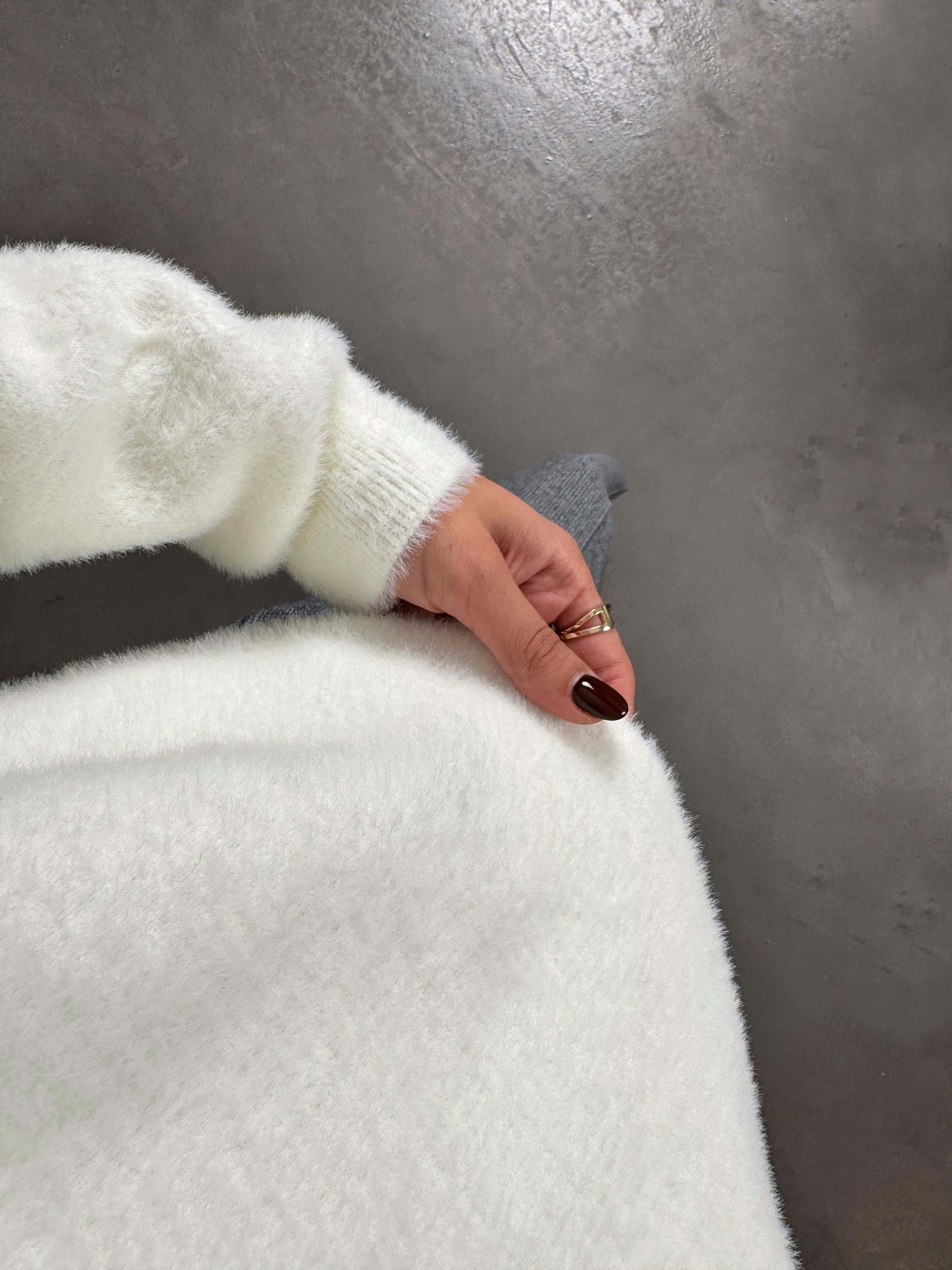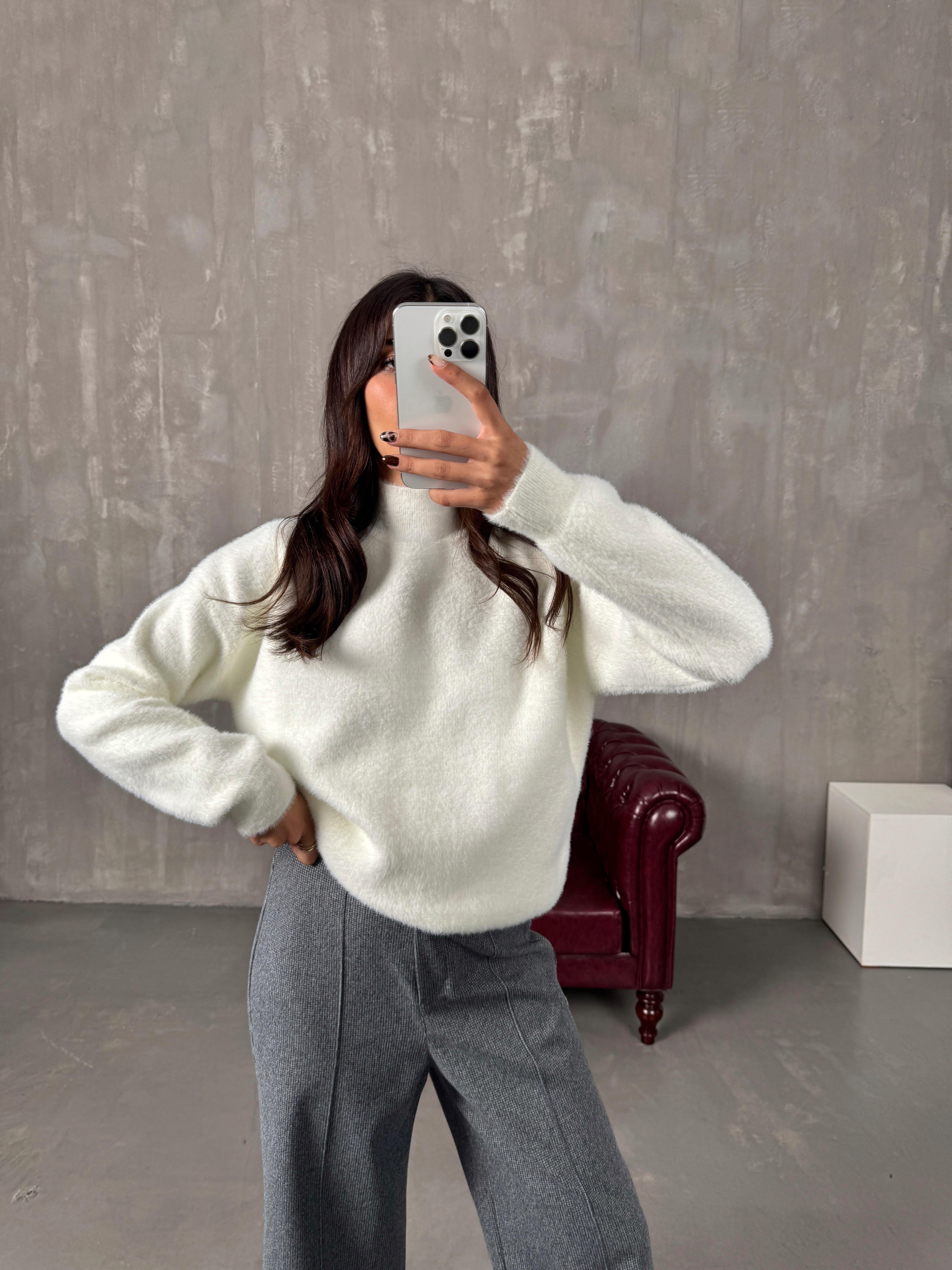Same Beyaz Yarım Balıkçı Yaka Sakallı Kazak