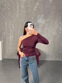 Scorp Bordo Drapeli Tek Kol Detaylı Bluz