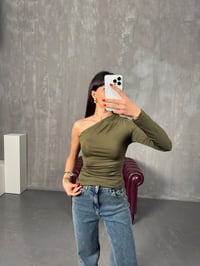Scorp Yeşil Drapeli Tek Kol Detaylı Bluz