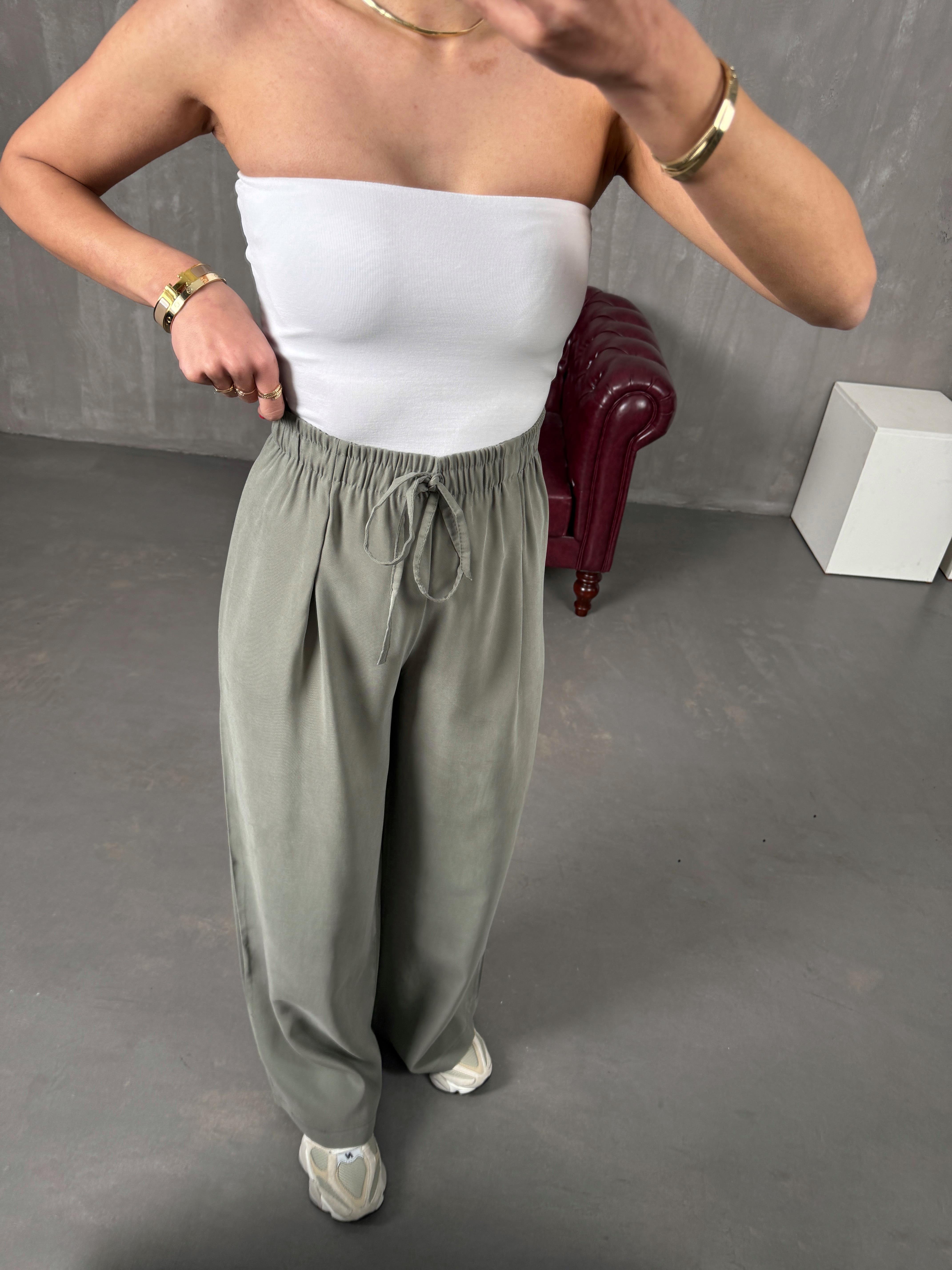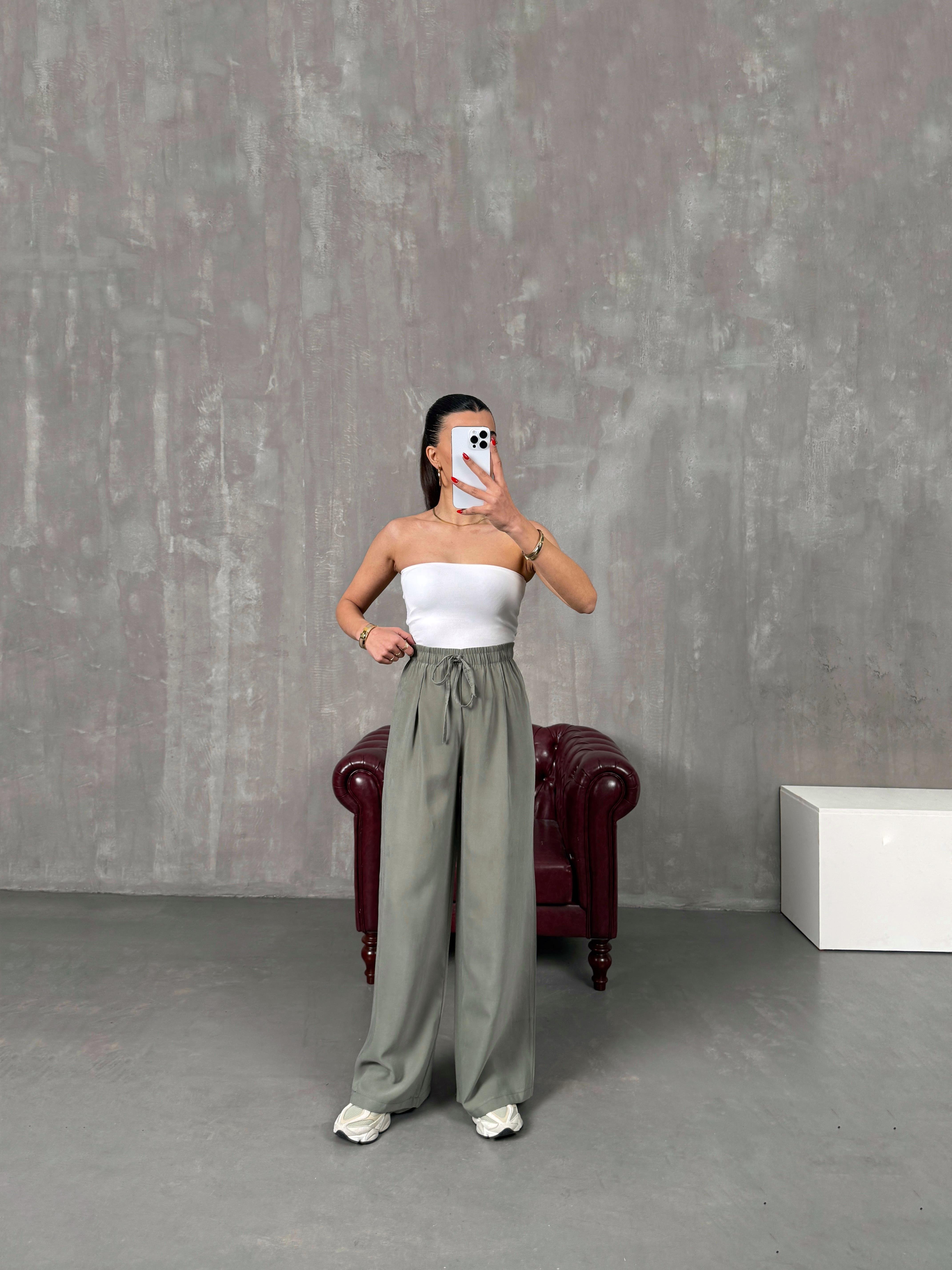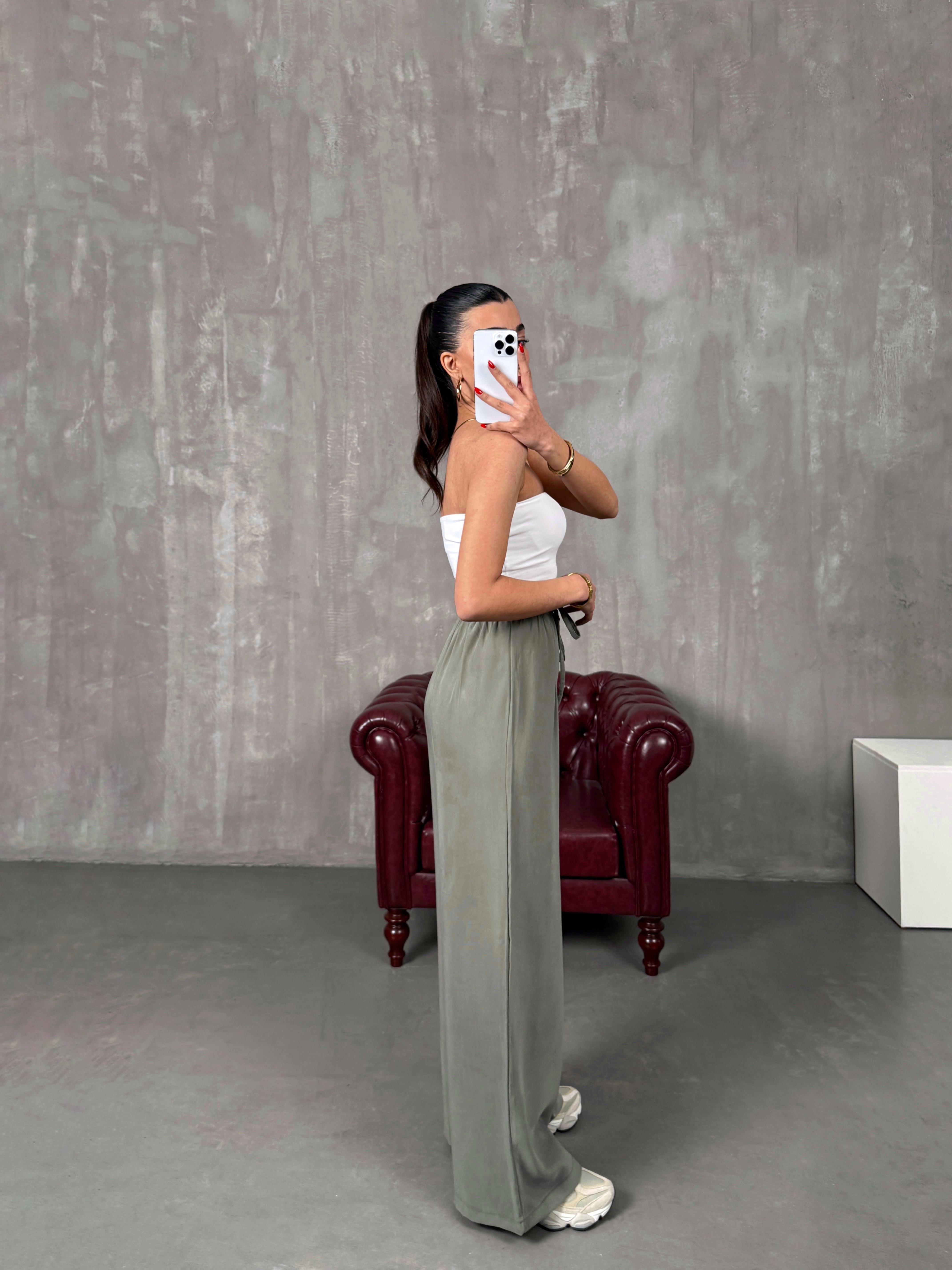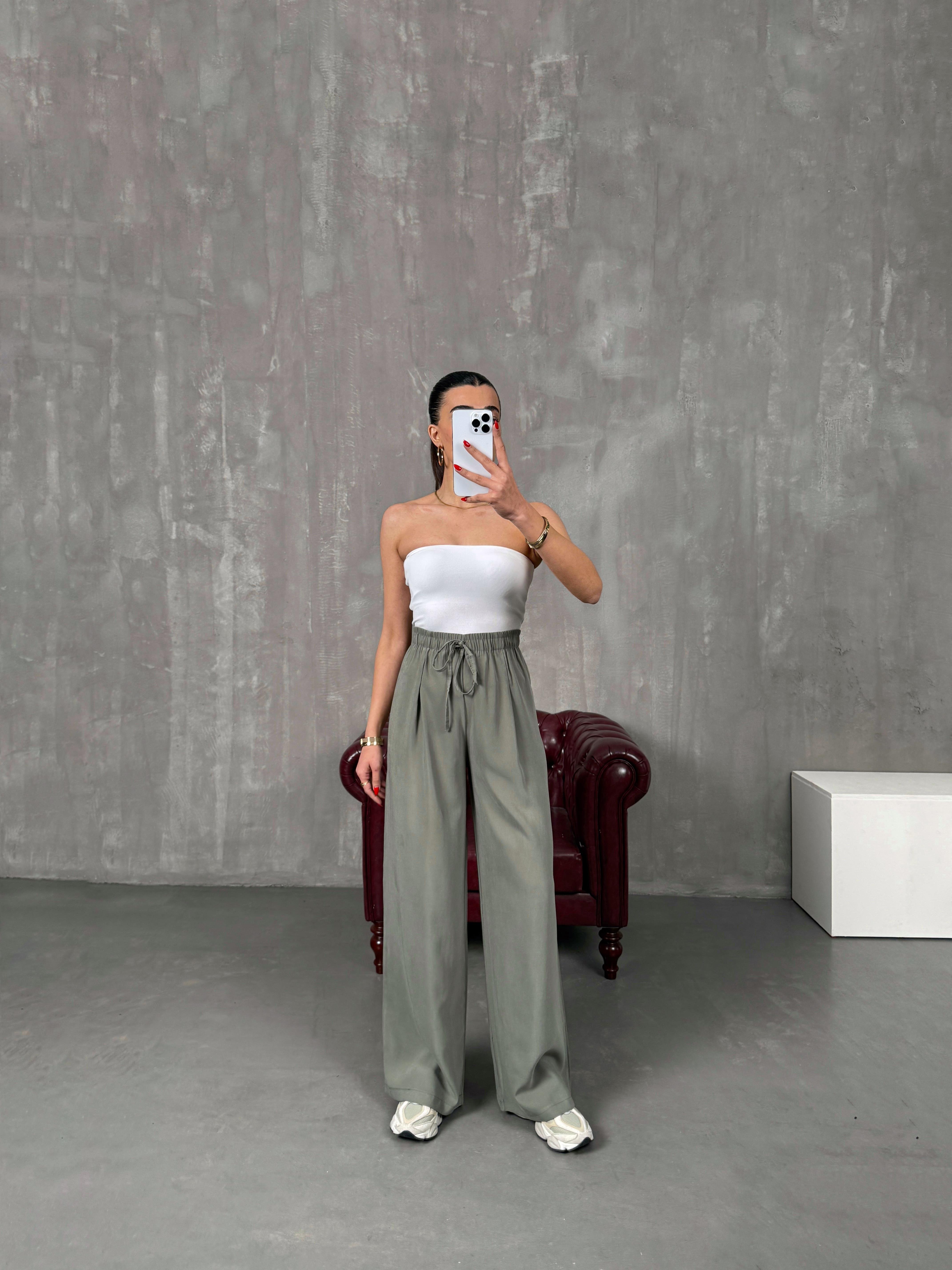 Setra Haki Beli Lastikli Tensel Kumaş Pantolon