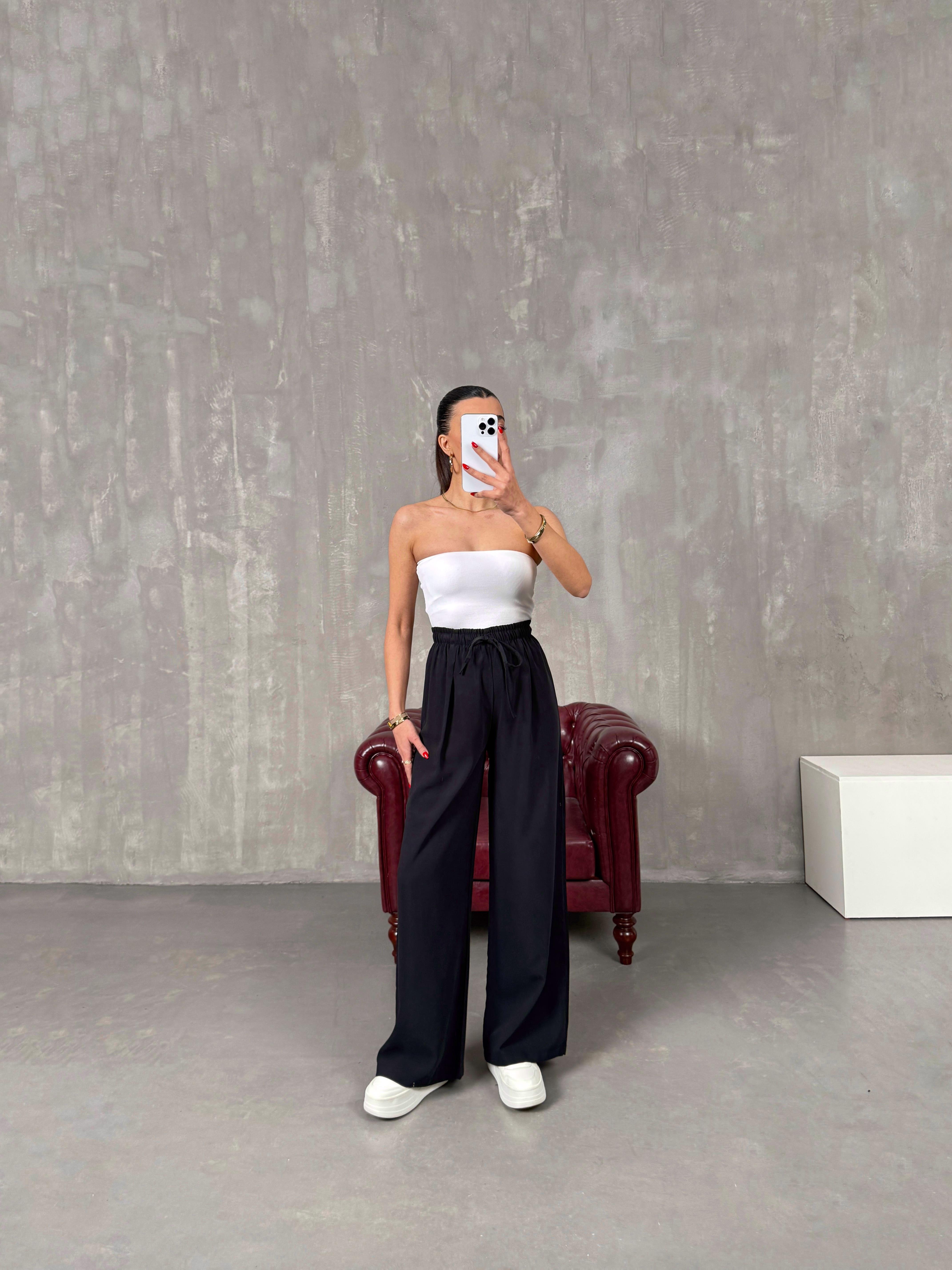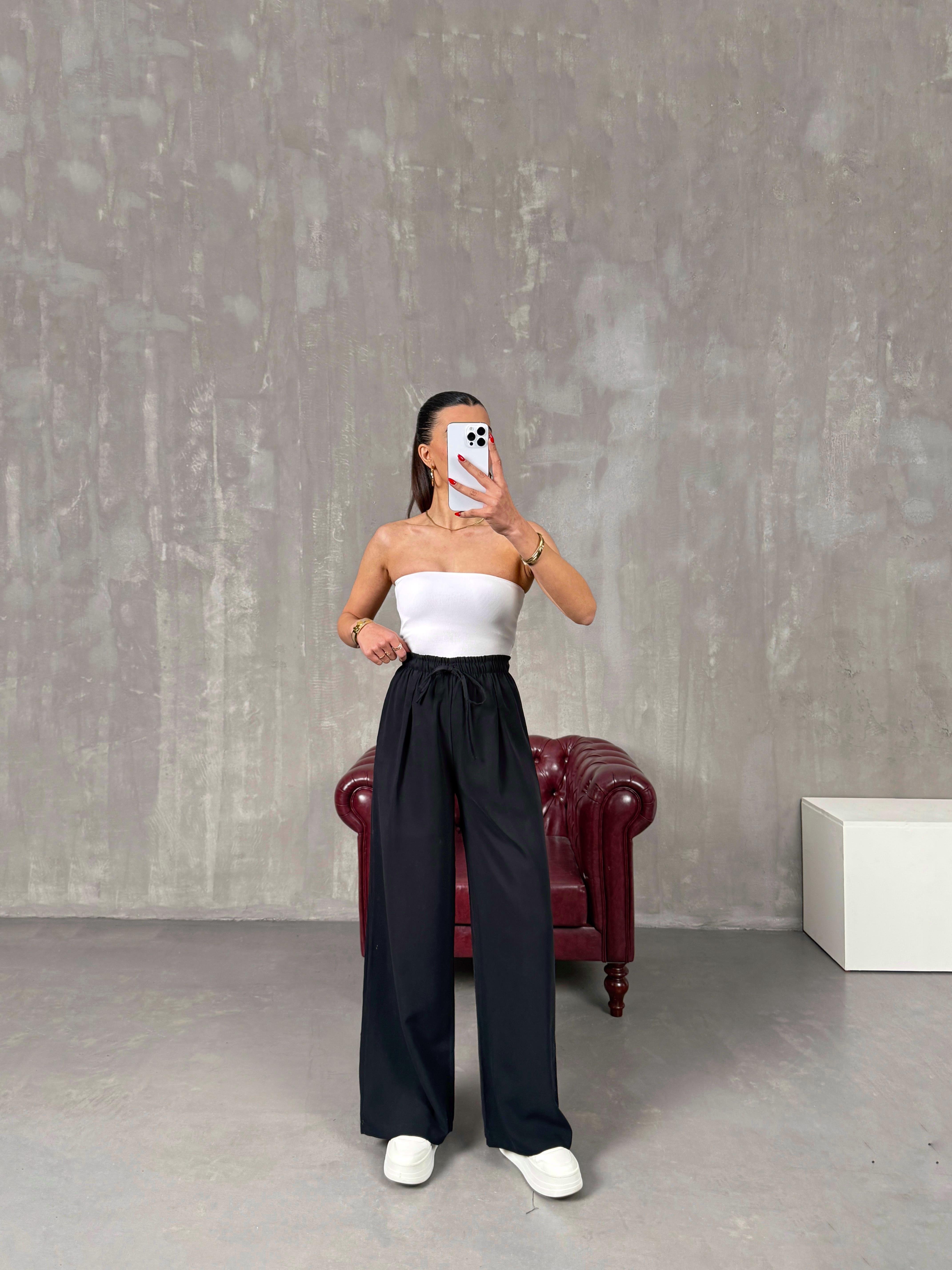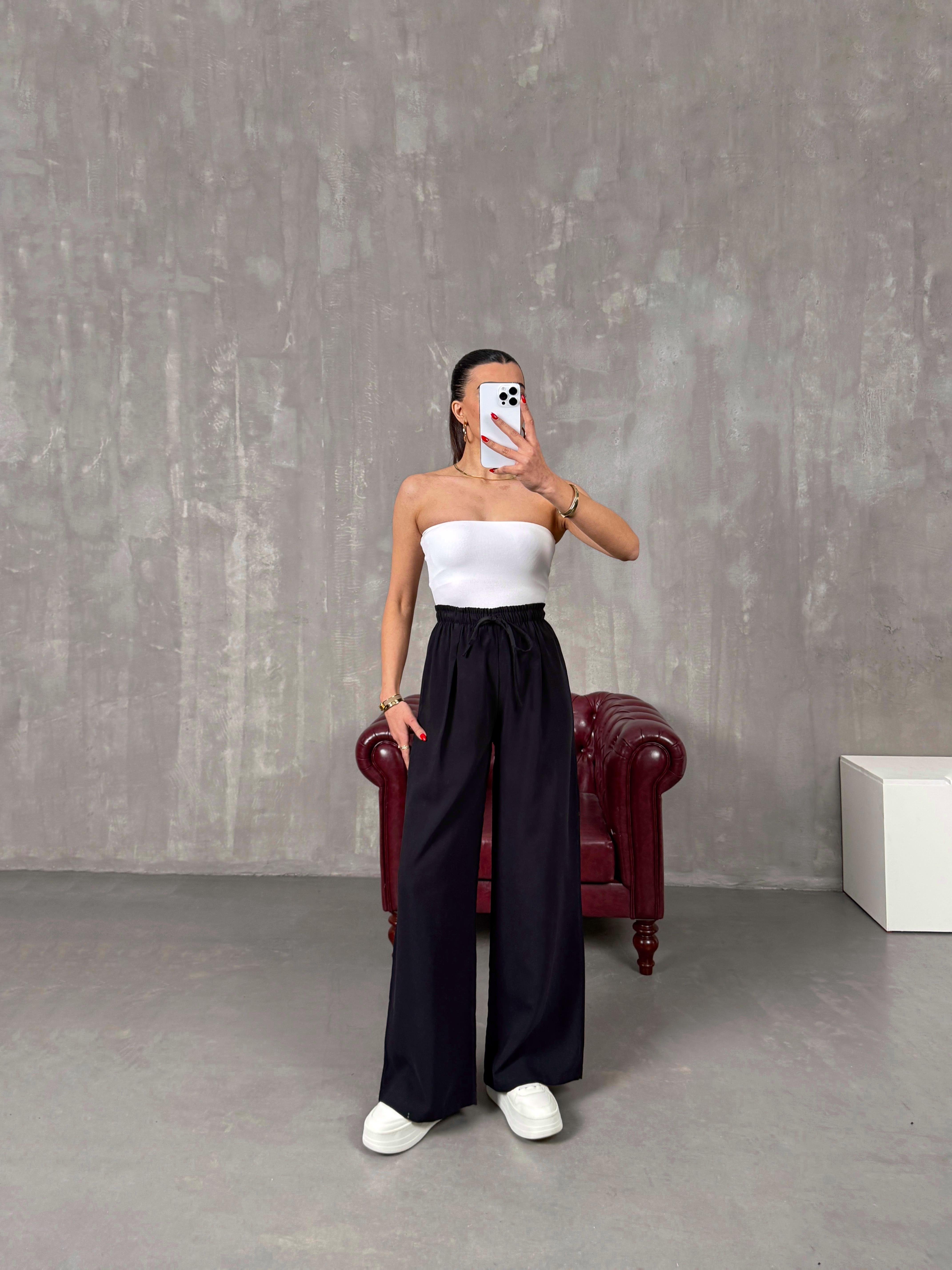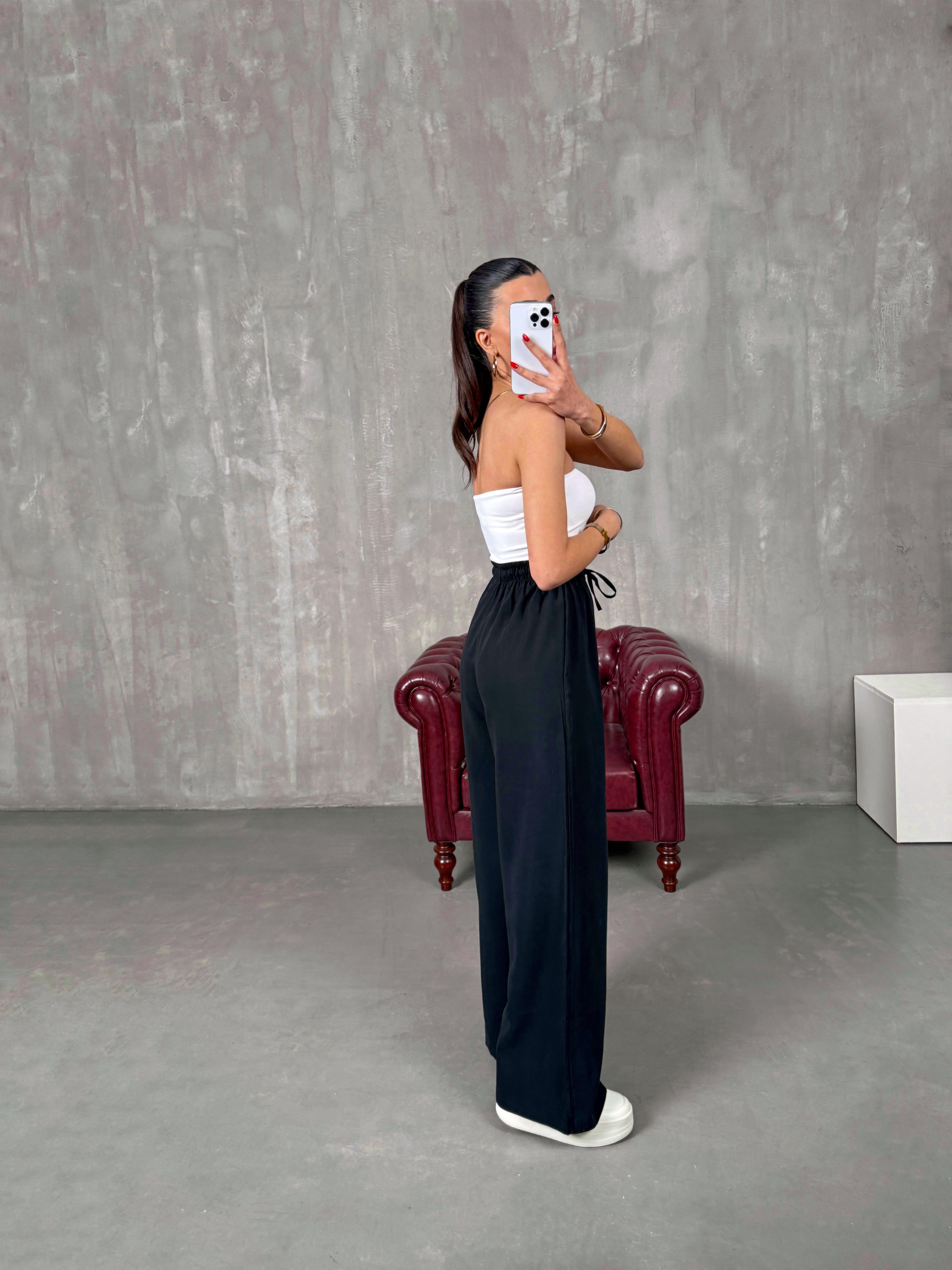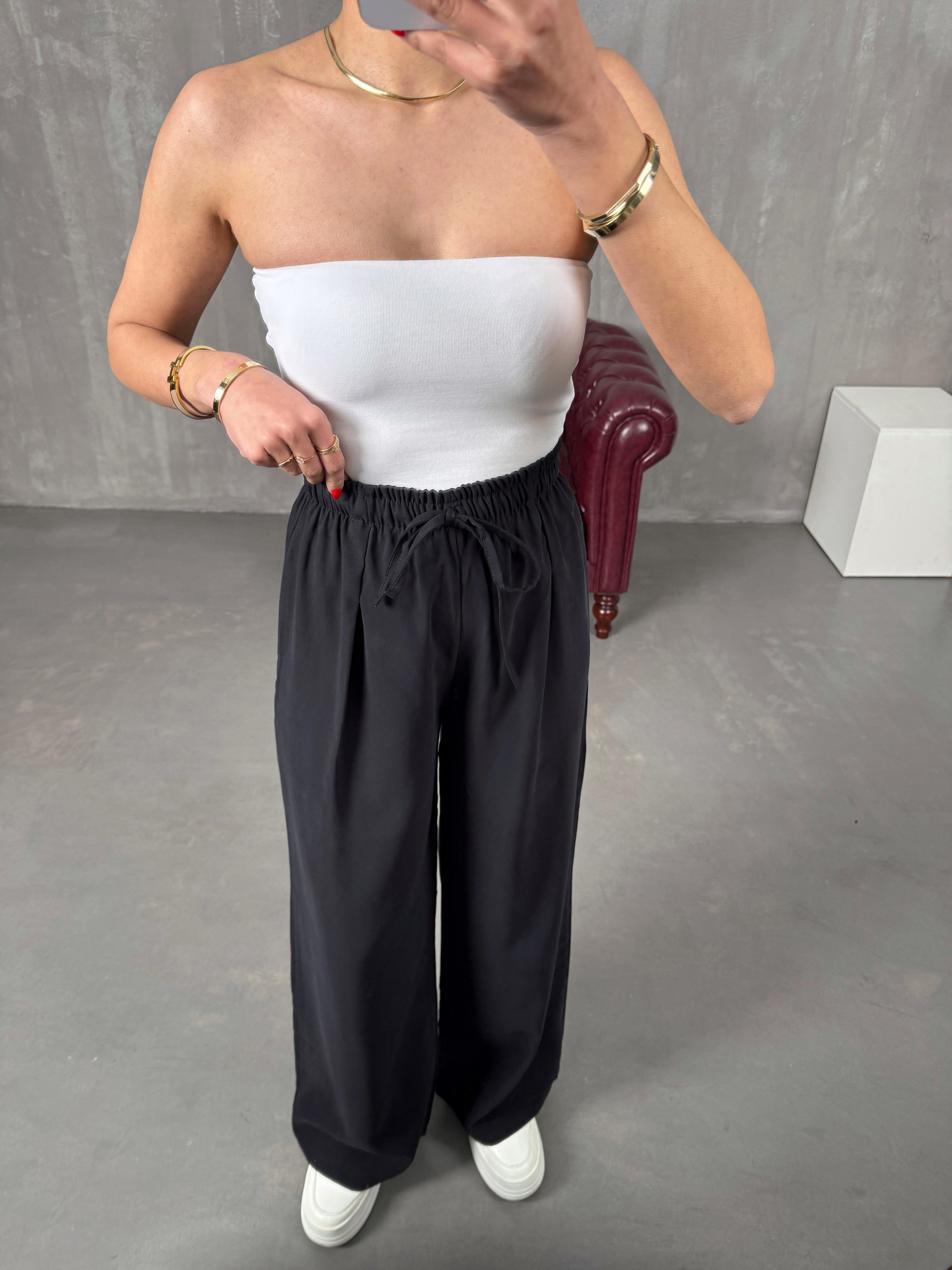 Setra Siyah Beli Lastikli Tensel Kumaş Pantolon