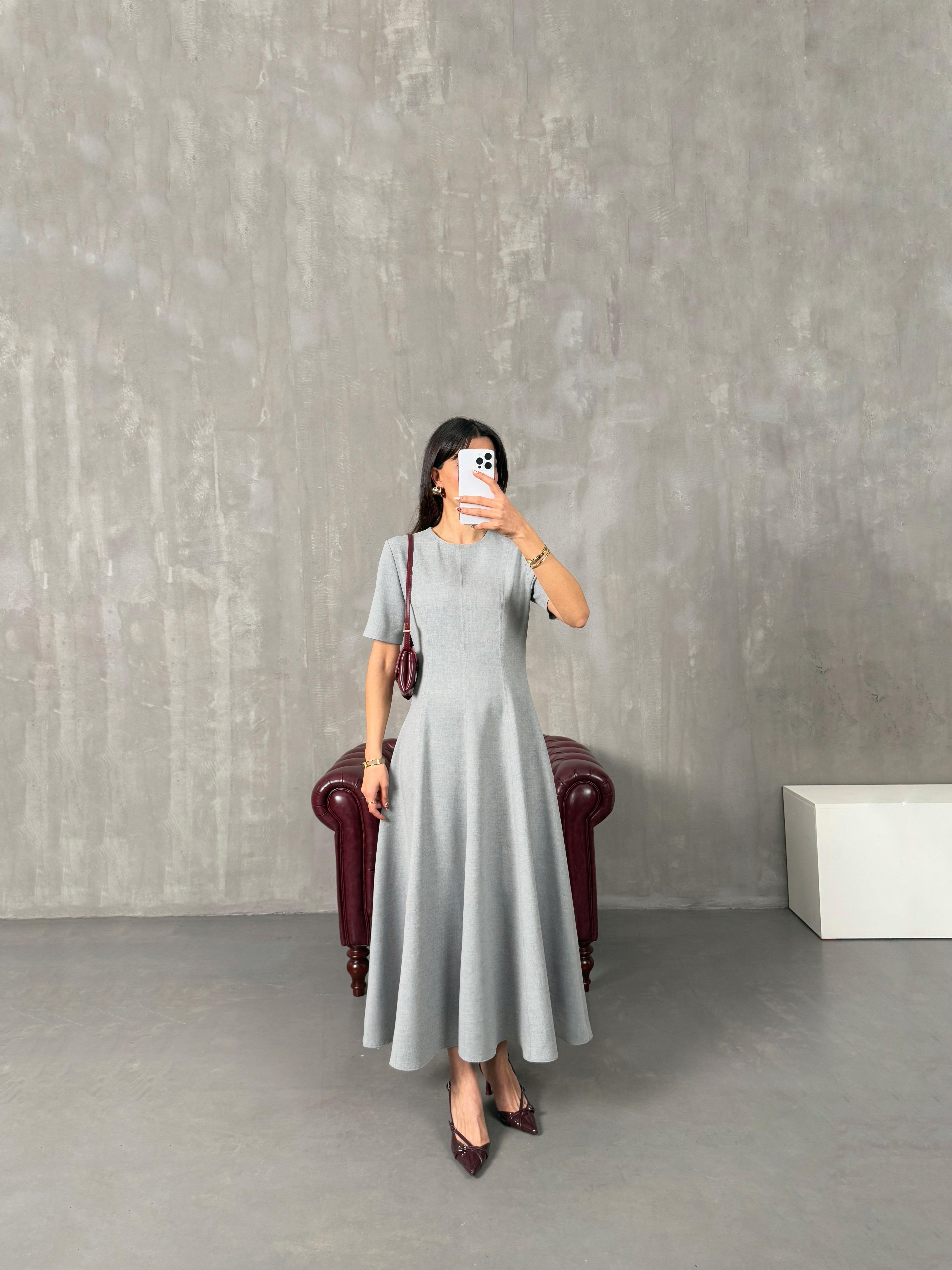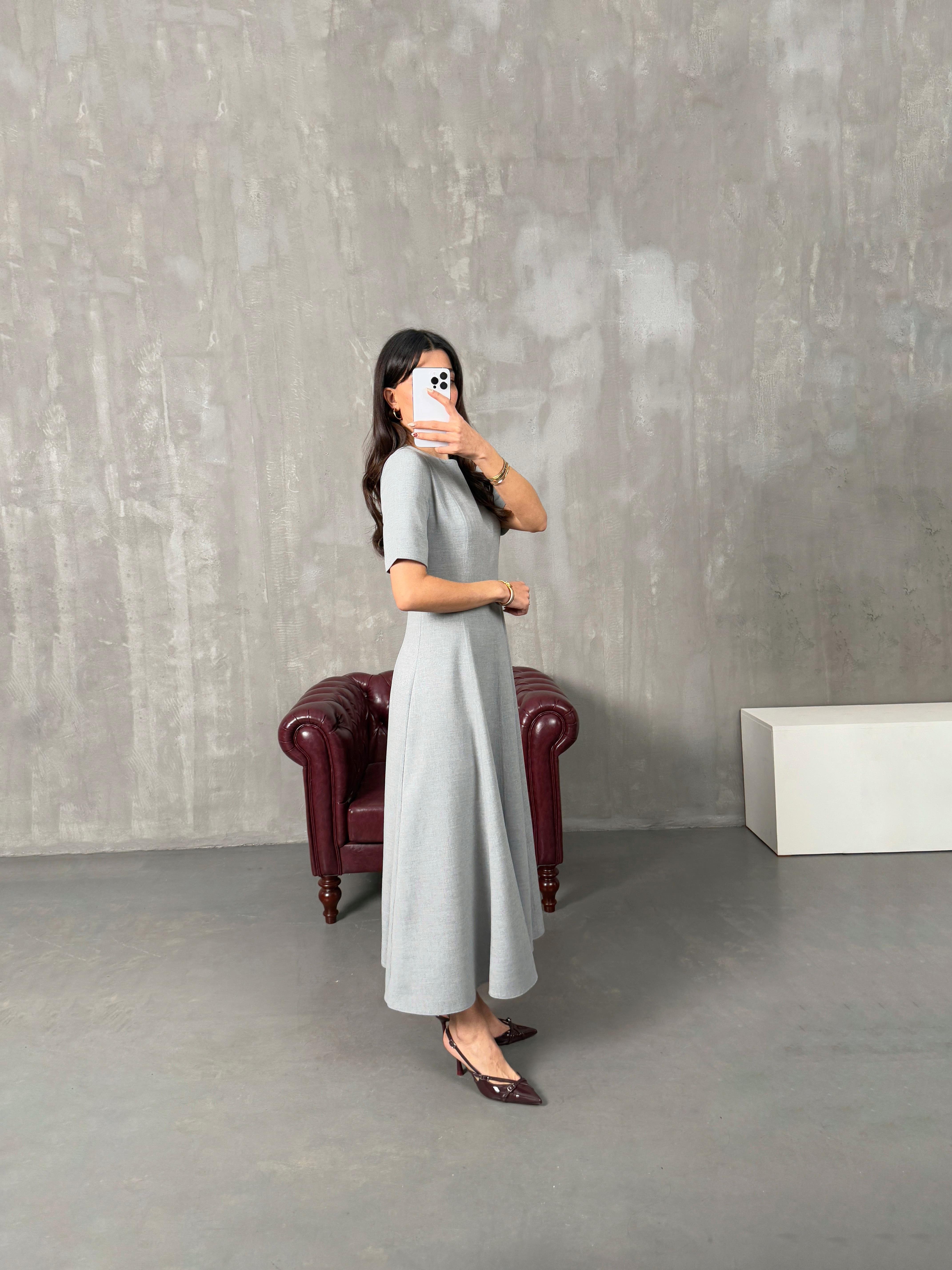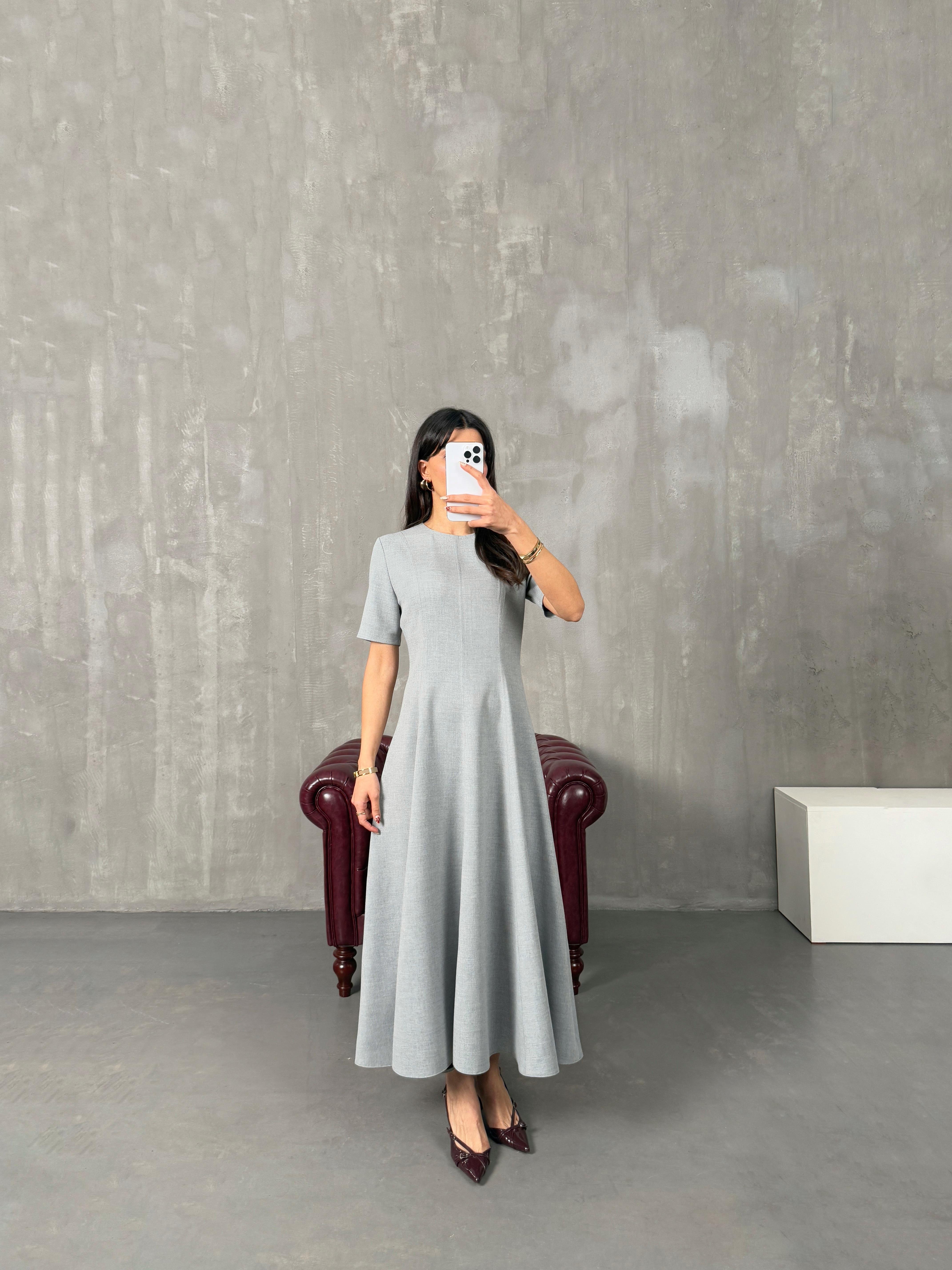 سيّنا فستان رمادي تصميم بريميوم قماش بوليفيسكوز