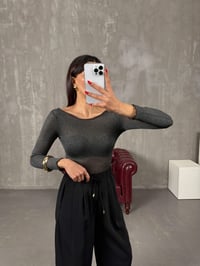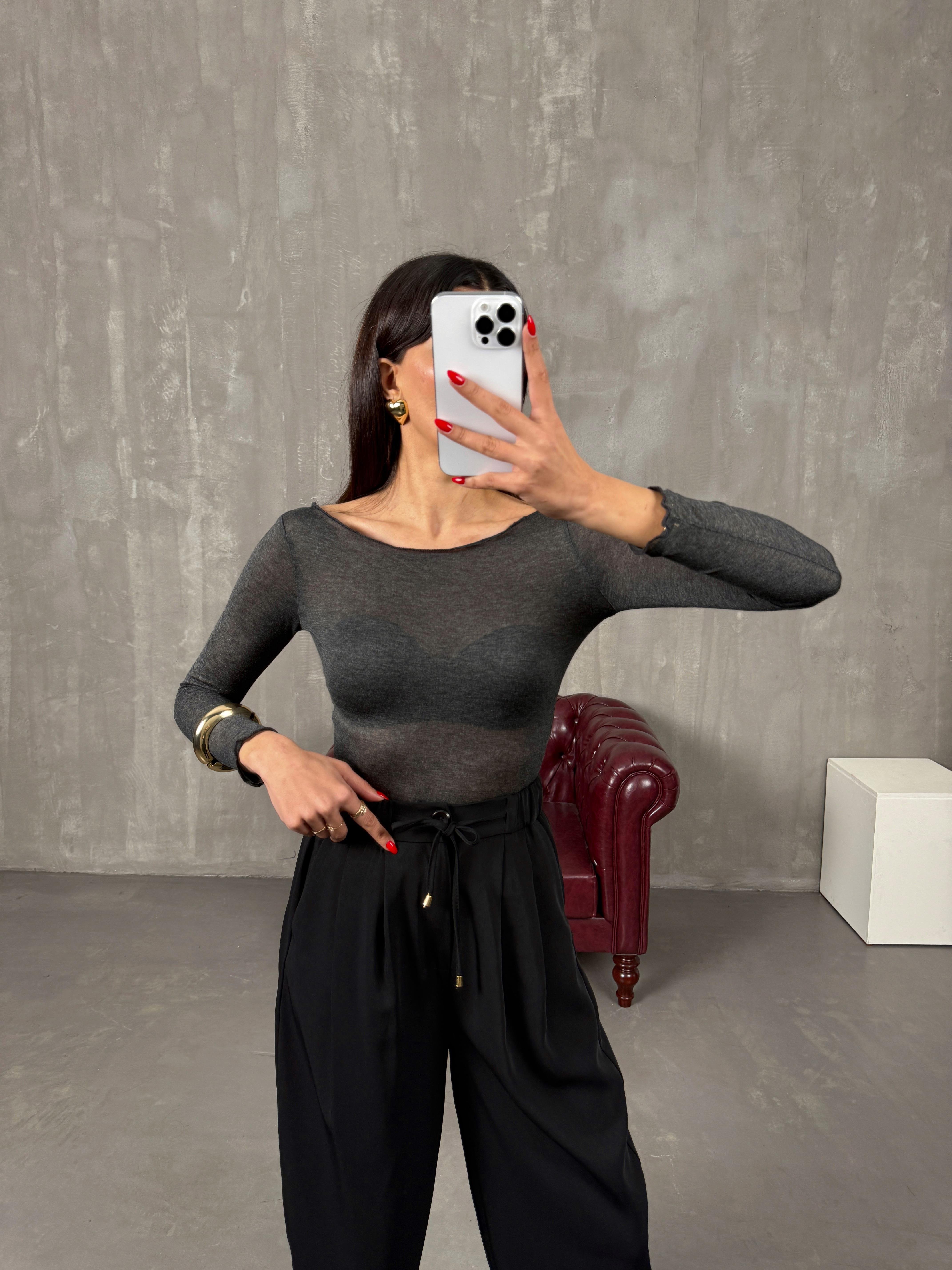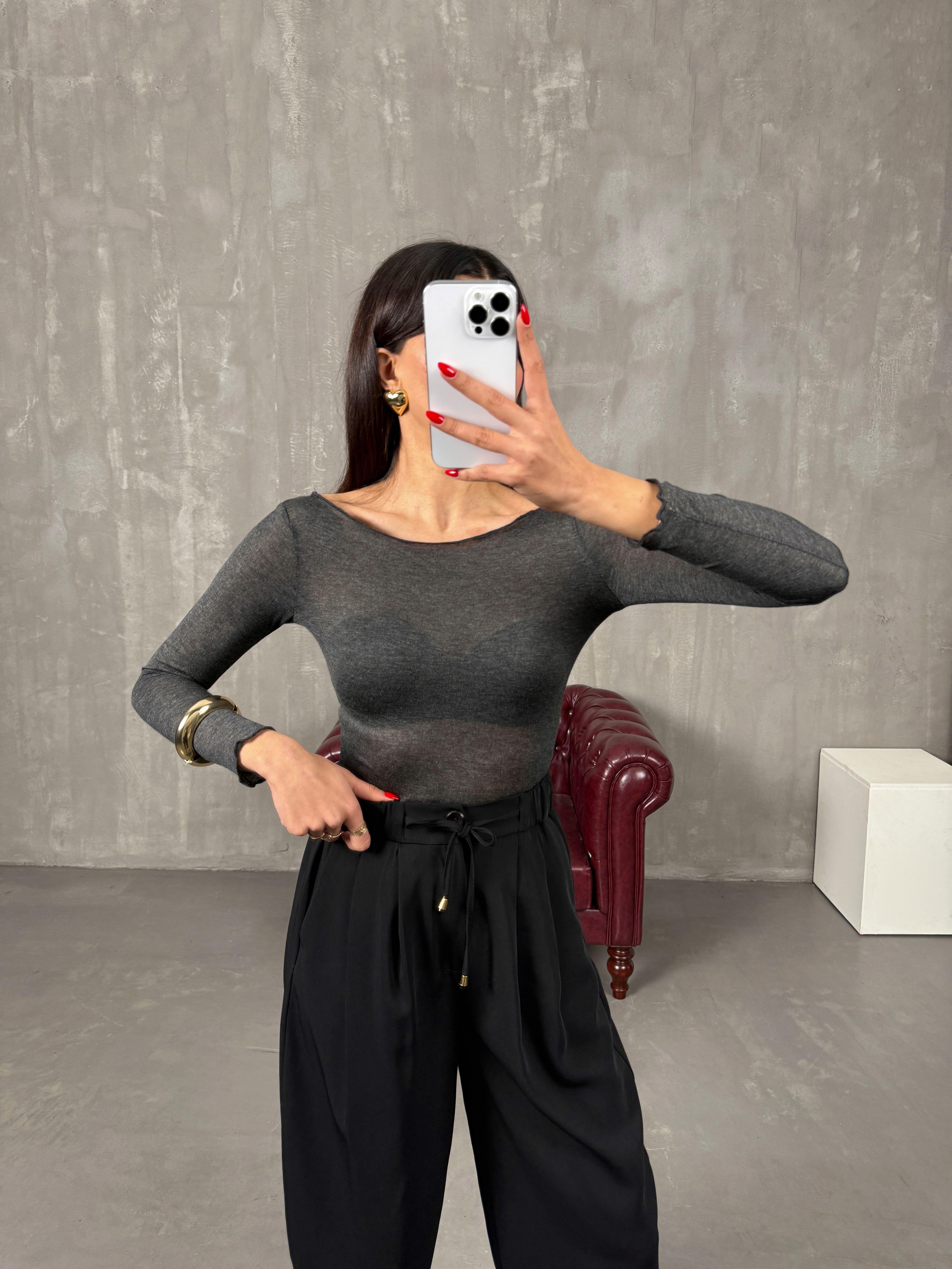 سيمون بلوزة شفافة أنثراسايت بياقة مادونا مكافئ لإم دي