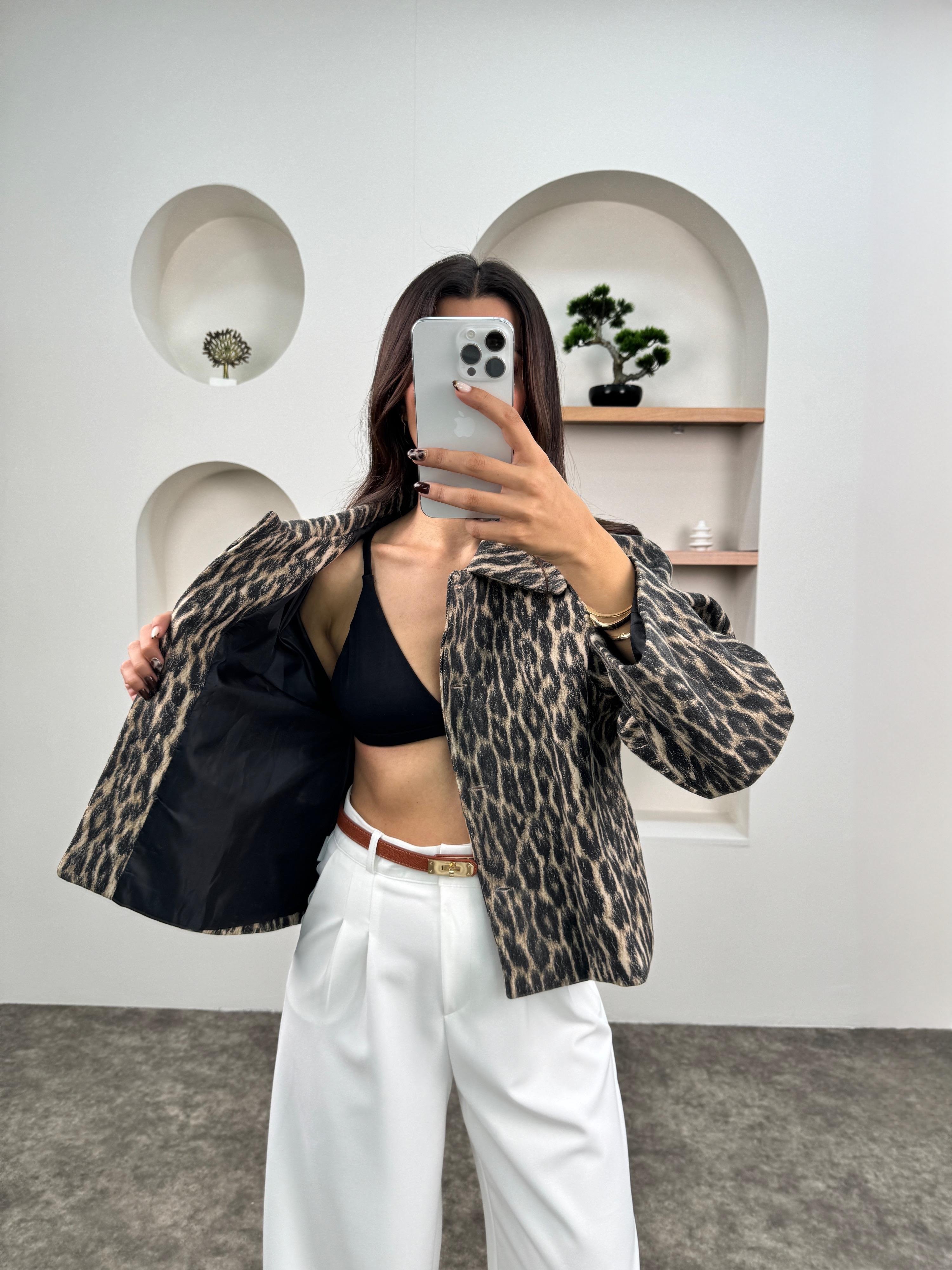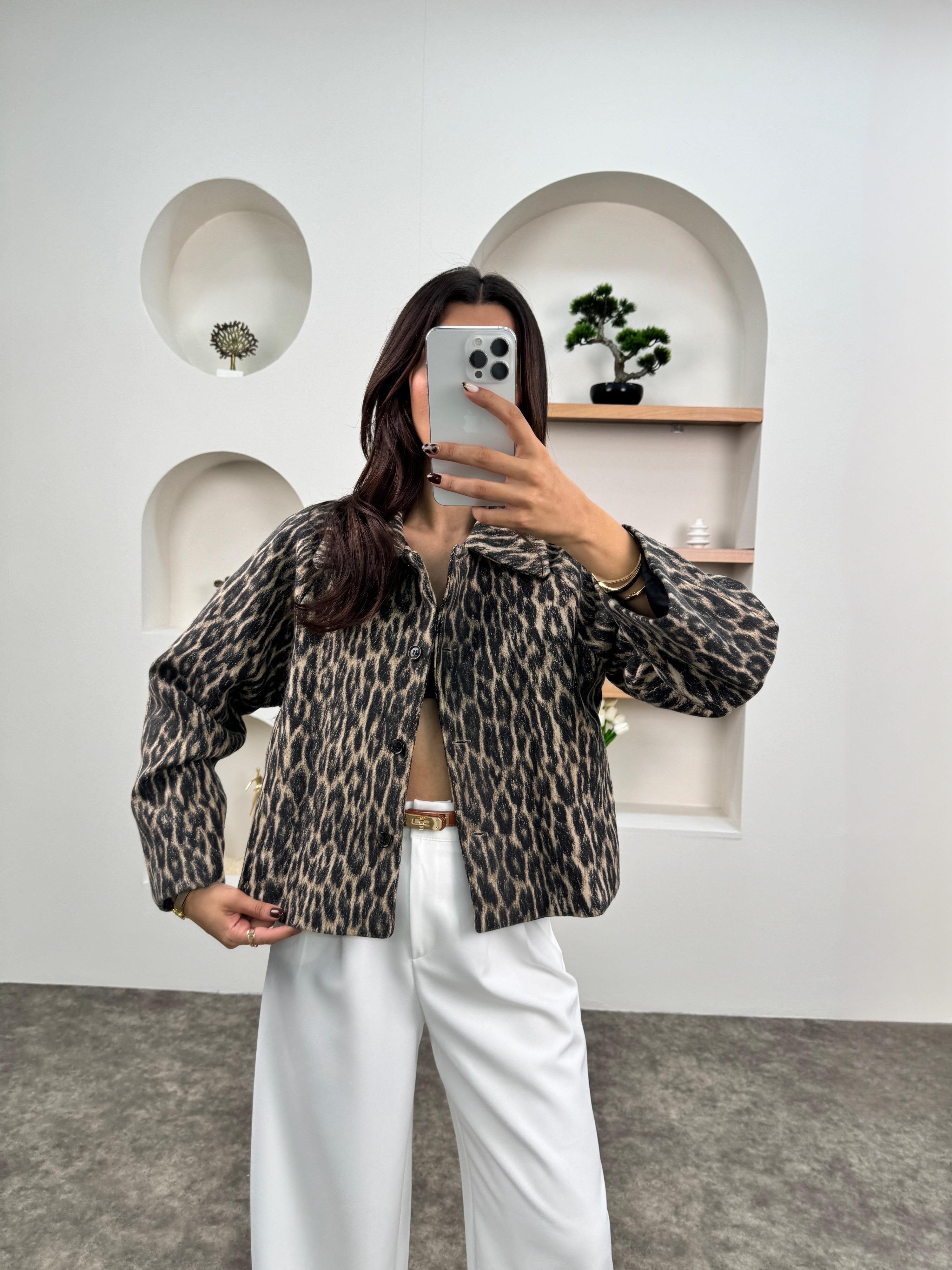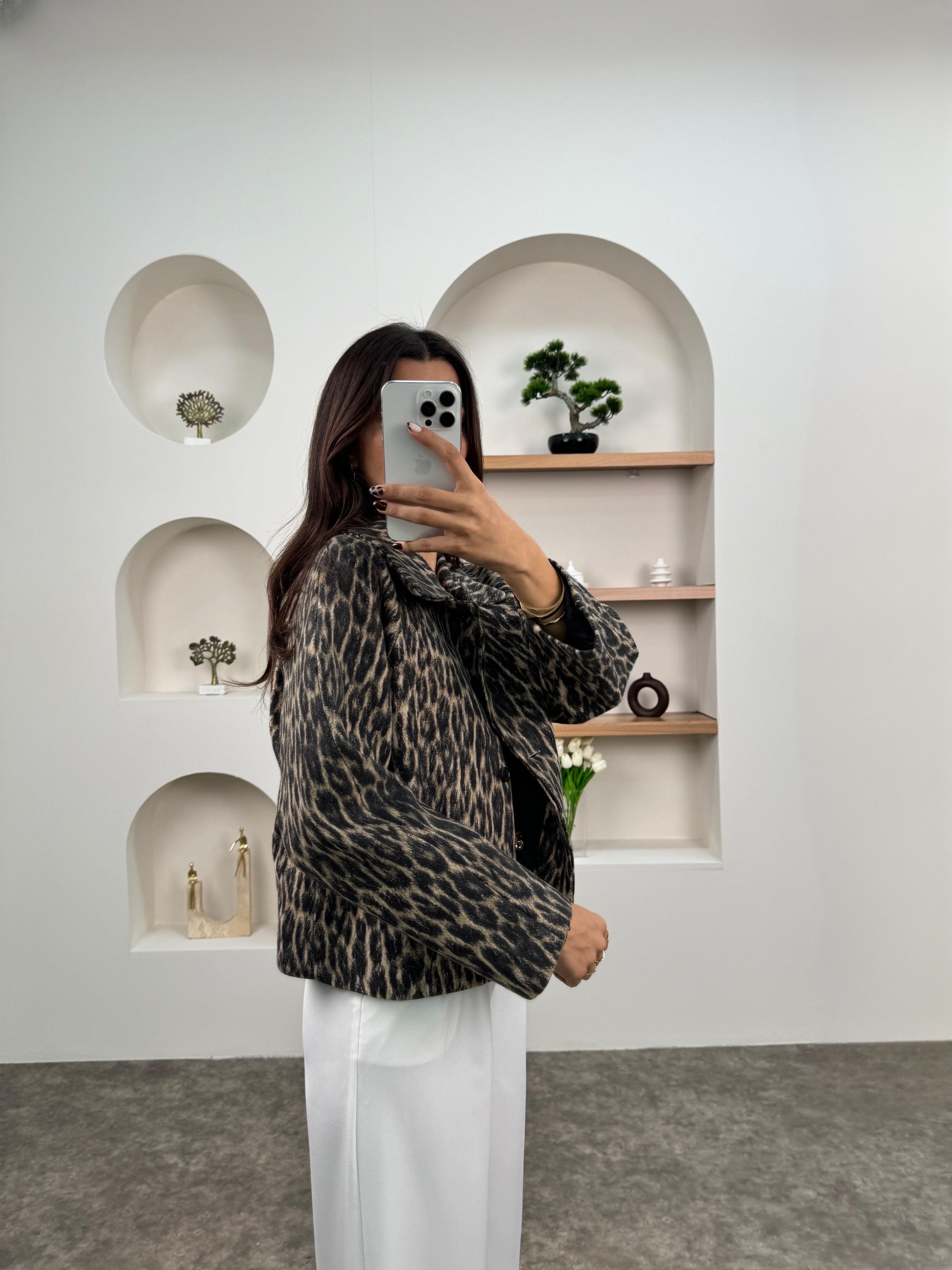 Sita Leopar Astarlı Düğmeli Ceket