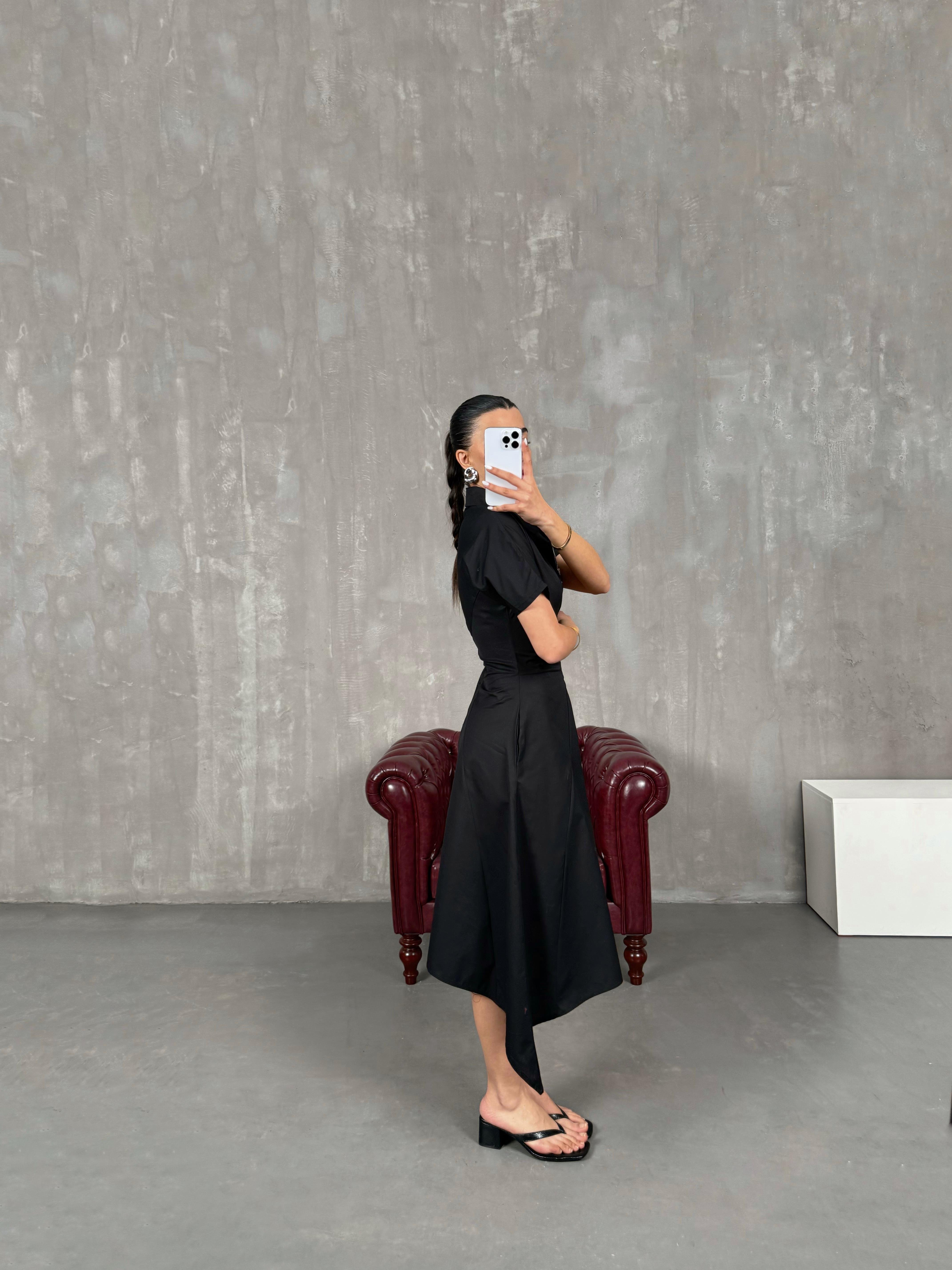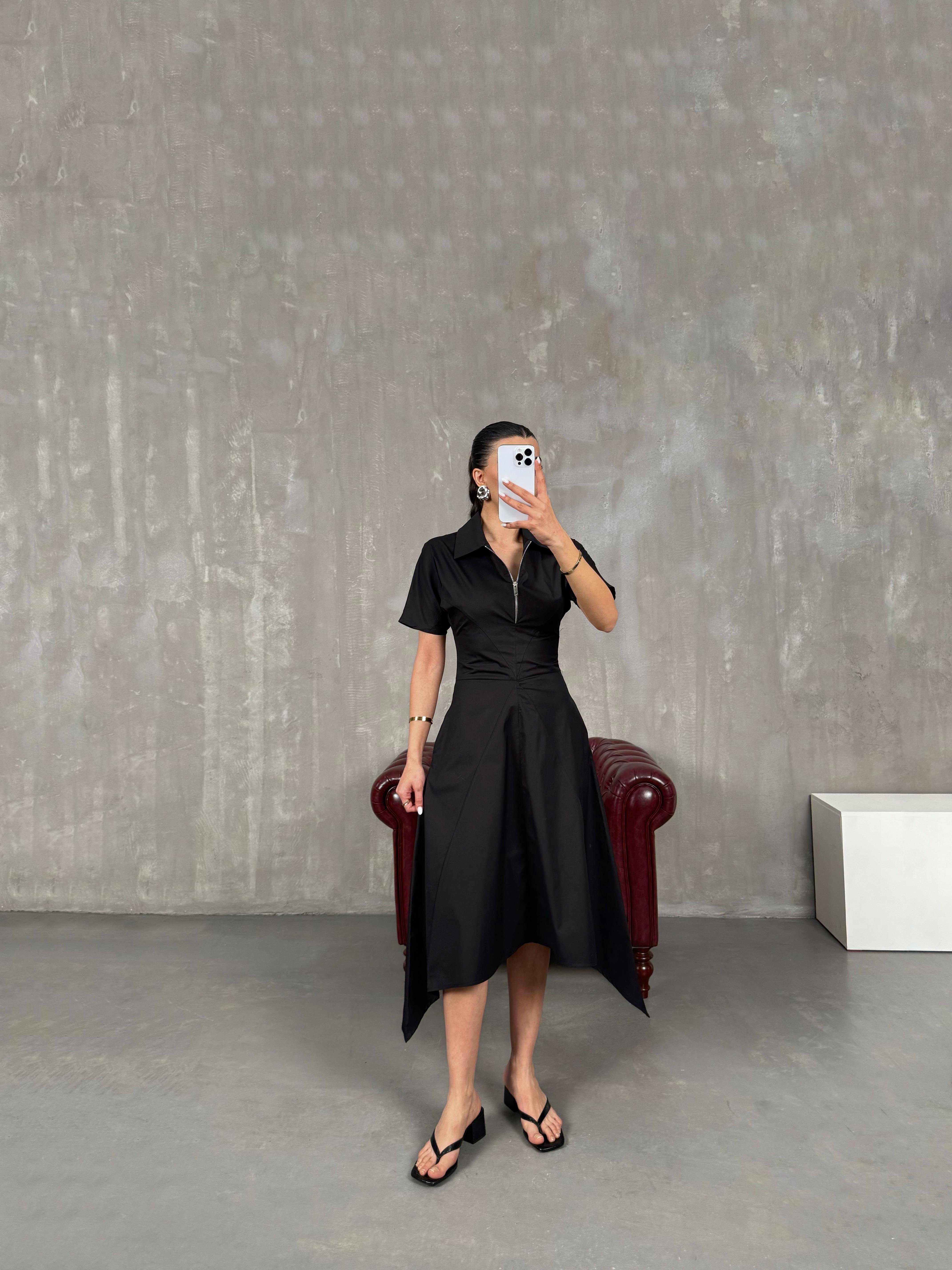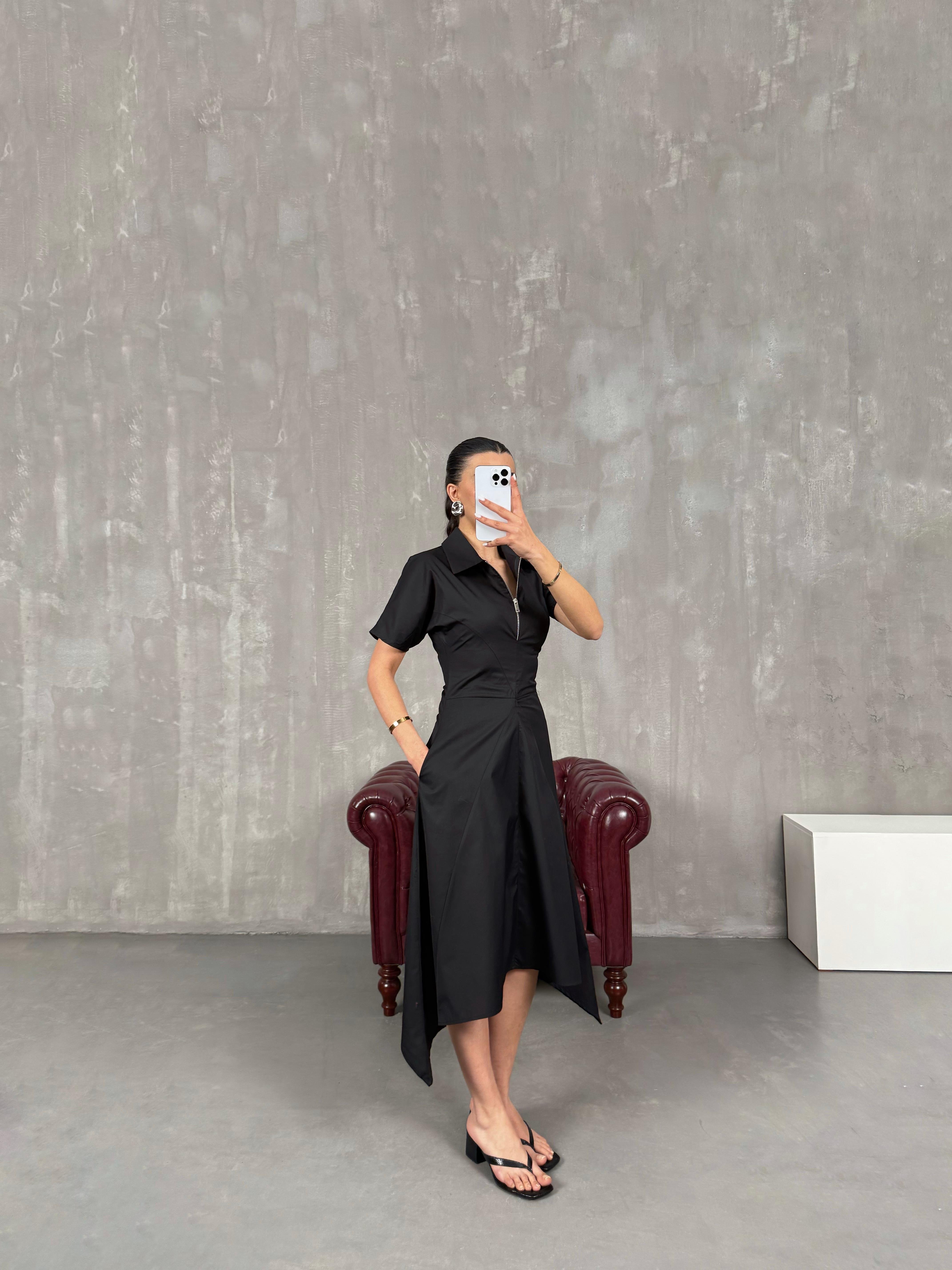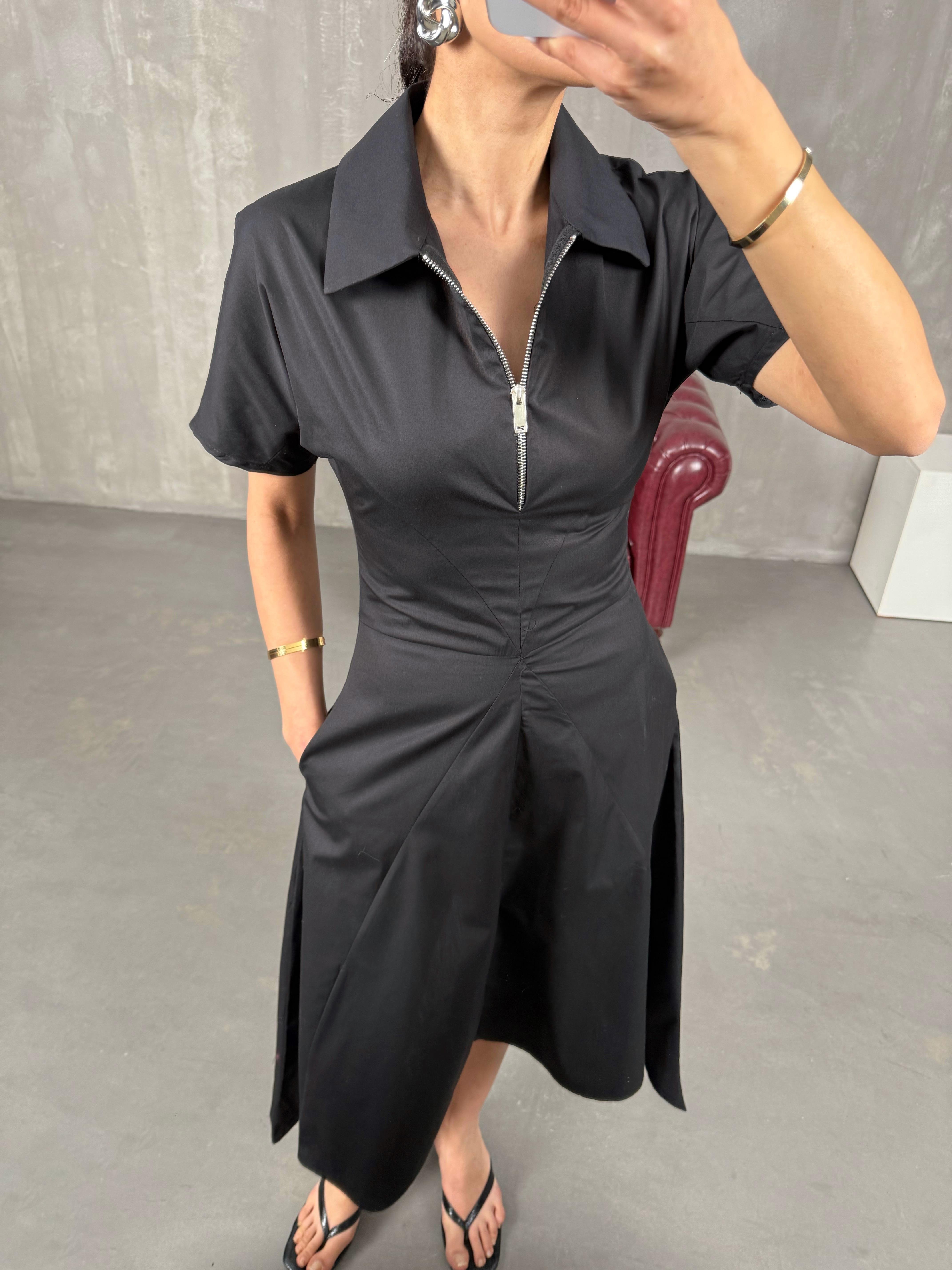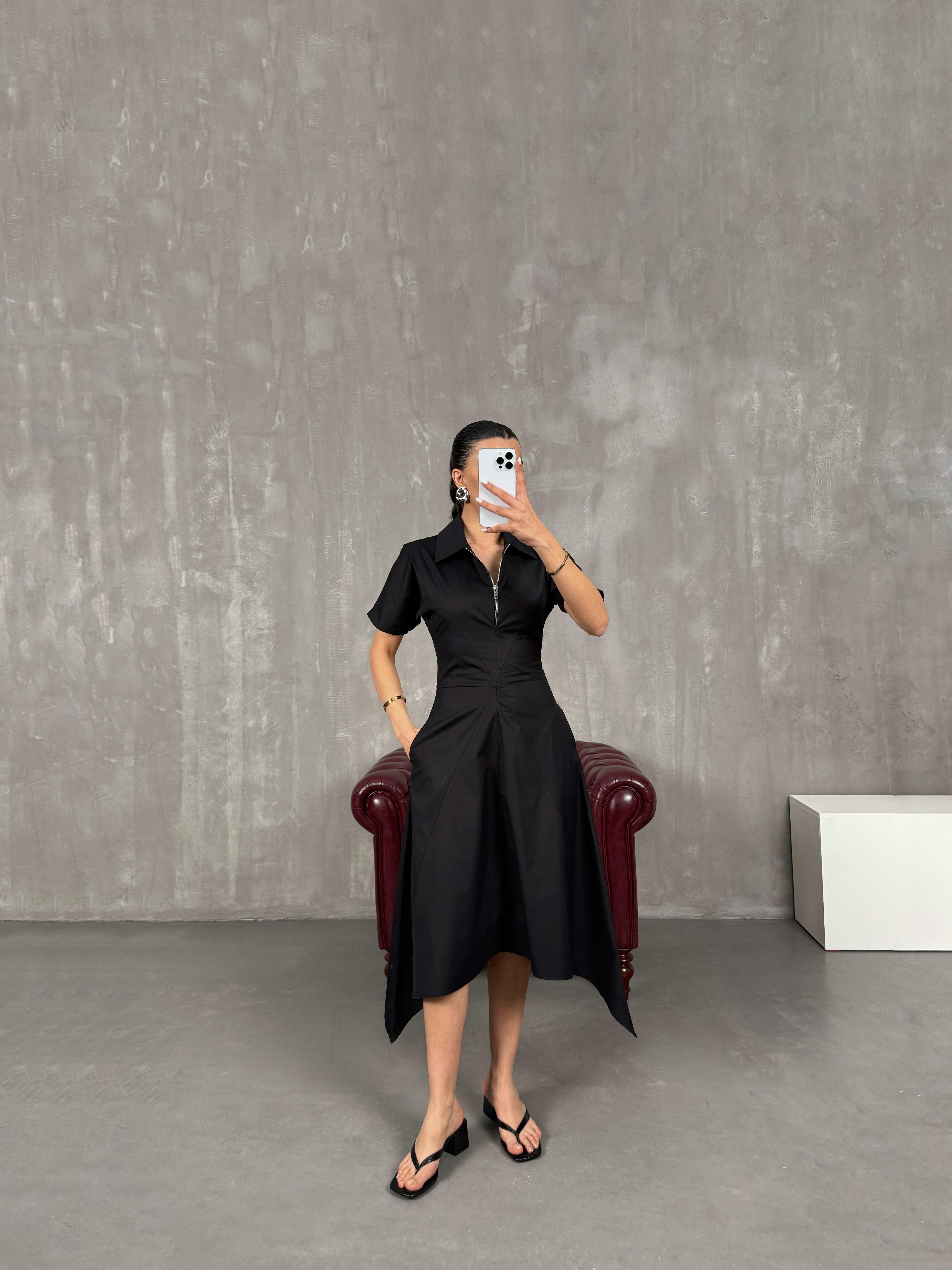 فستان مُعادل أسود مع سحّاب وياقة قميص Gaus00021