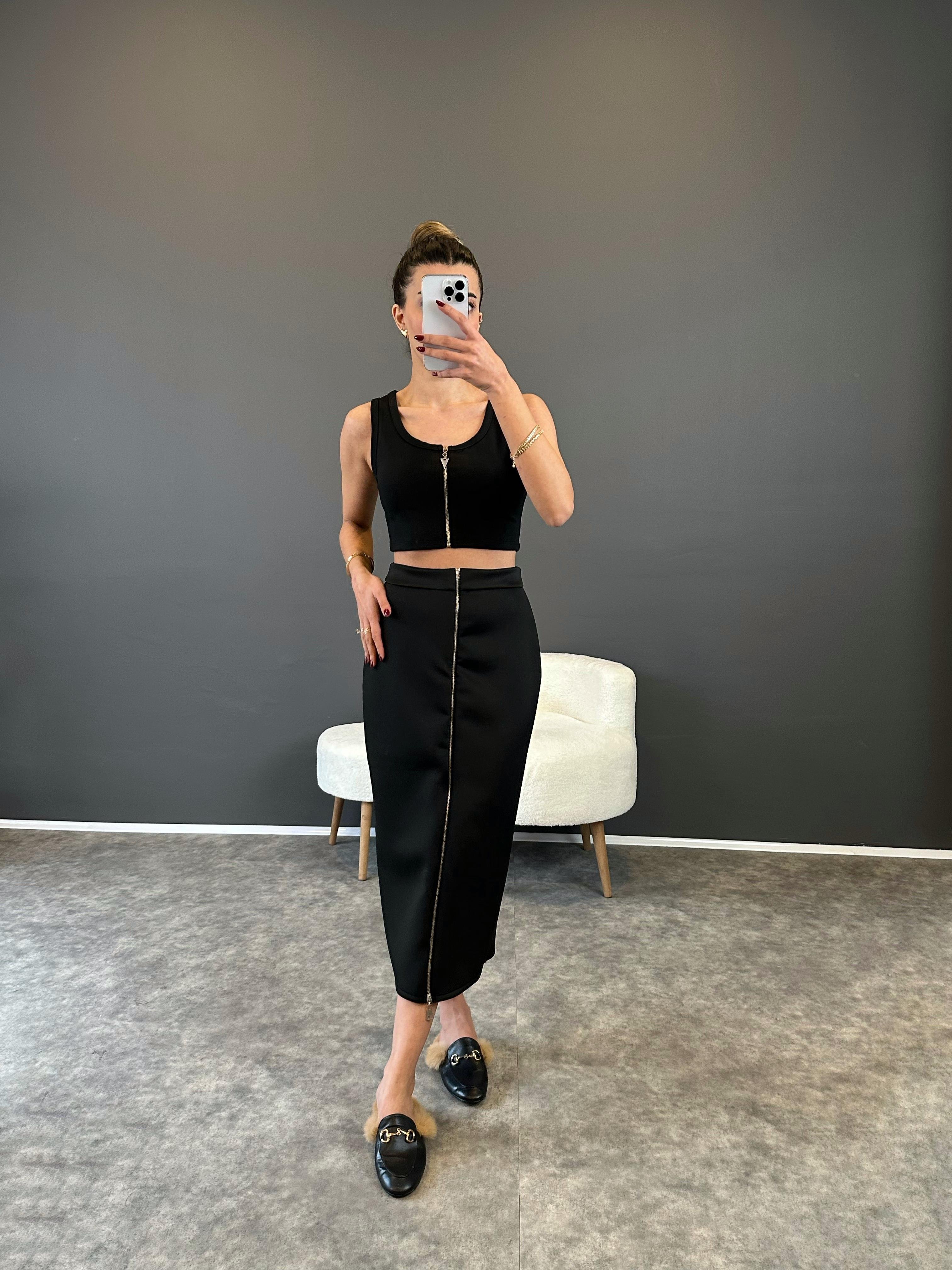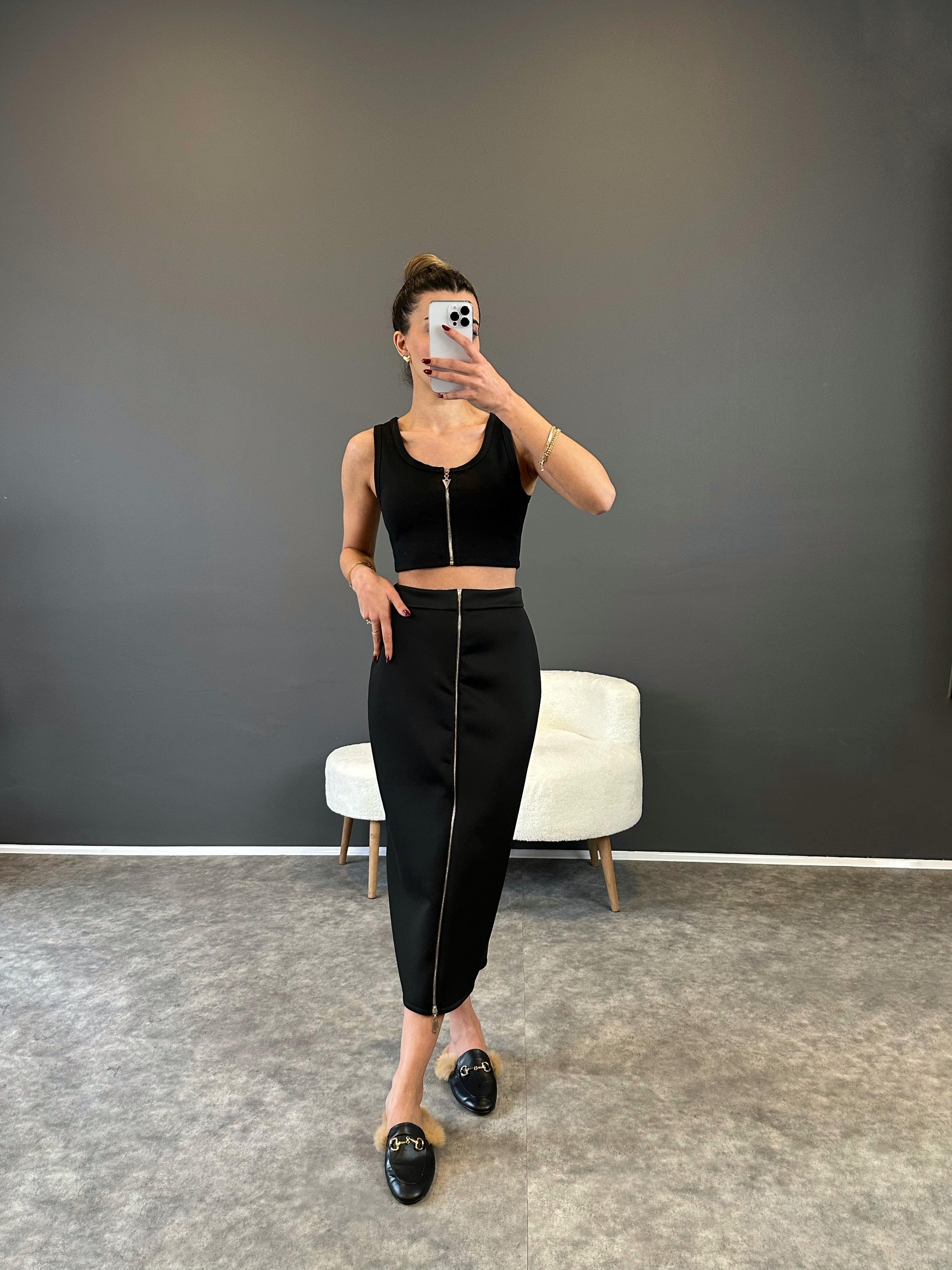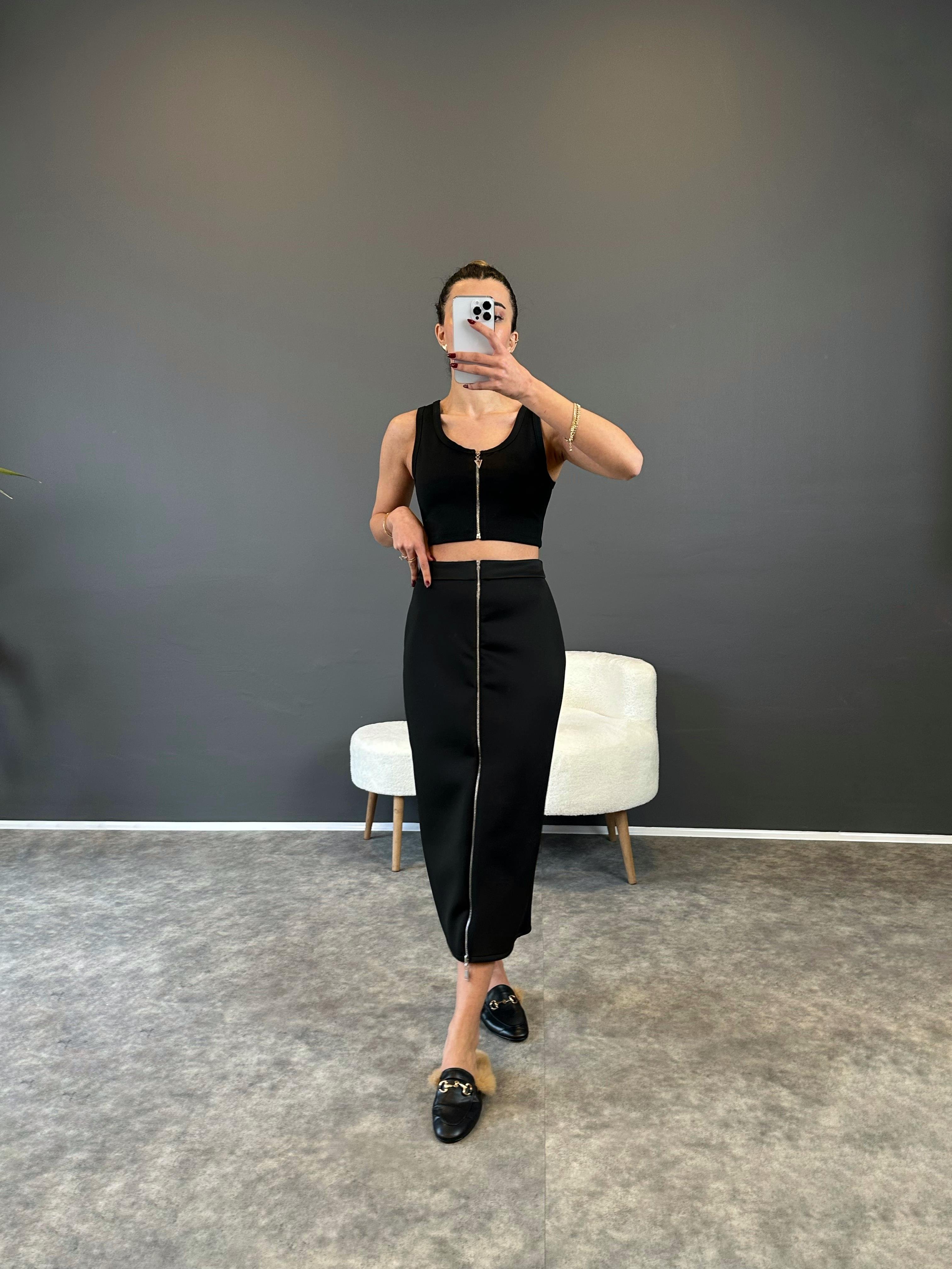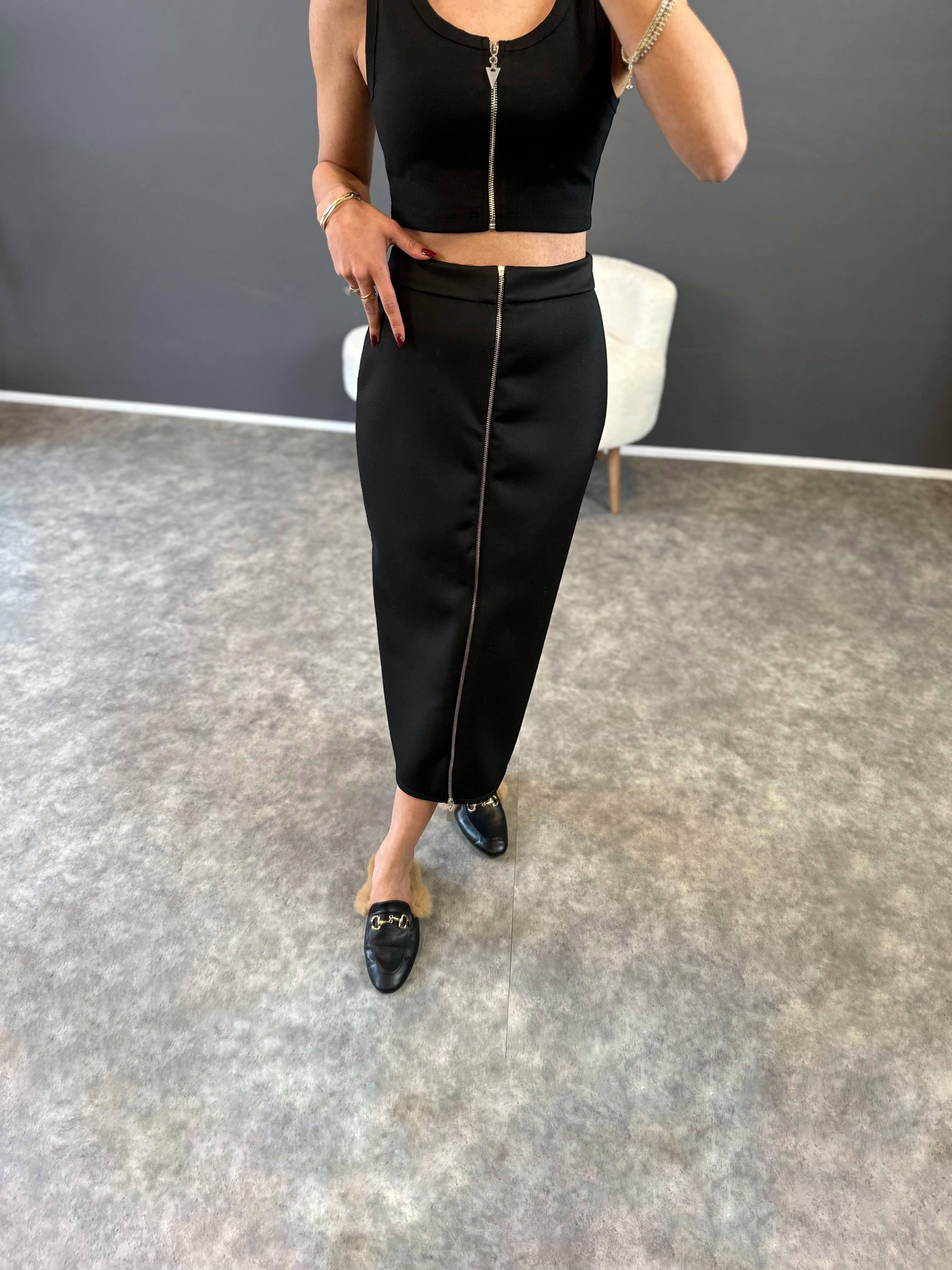 Siyah Fermuarlı Modal Scuba Etek
